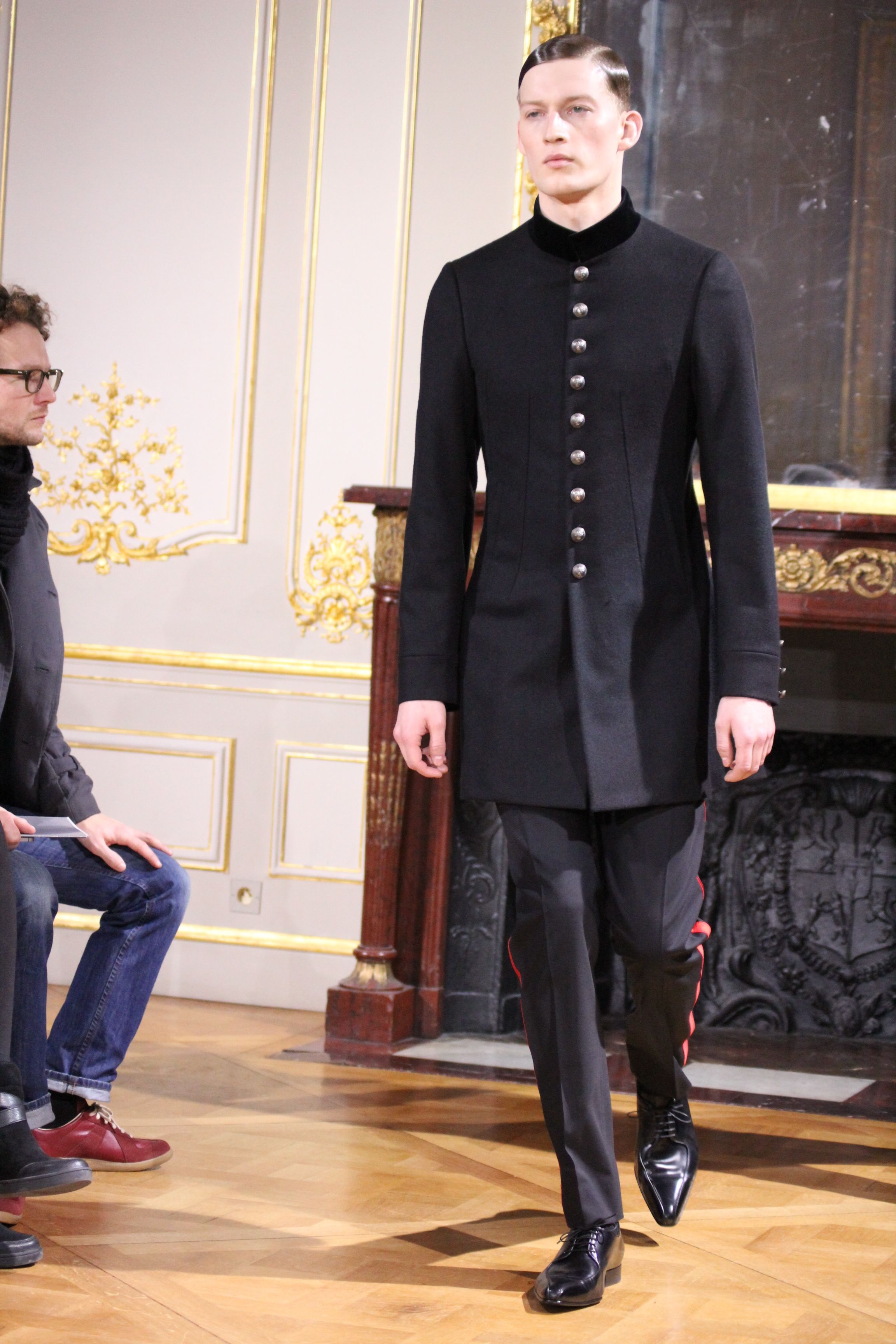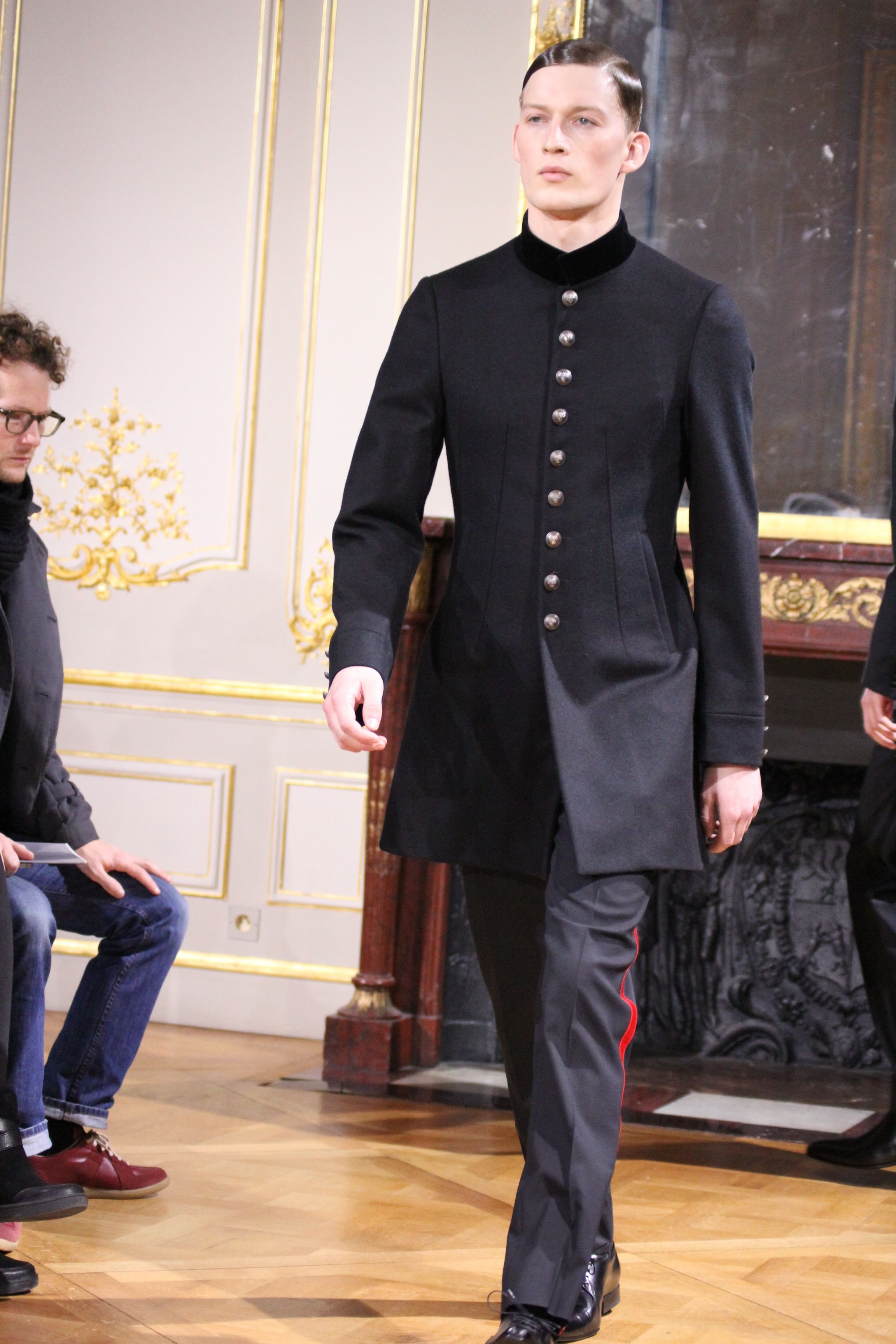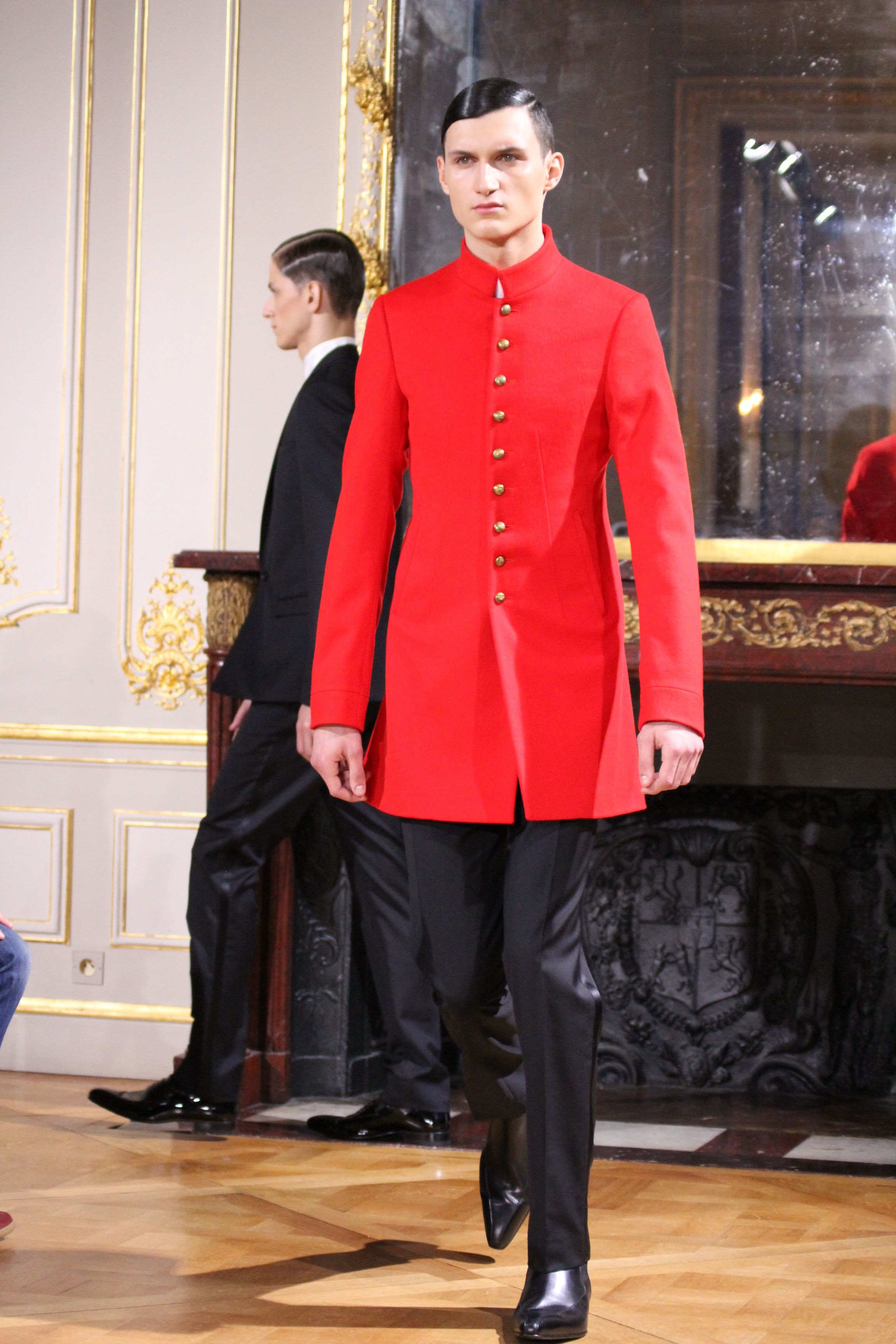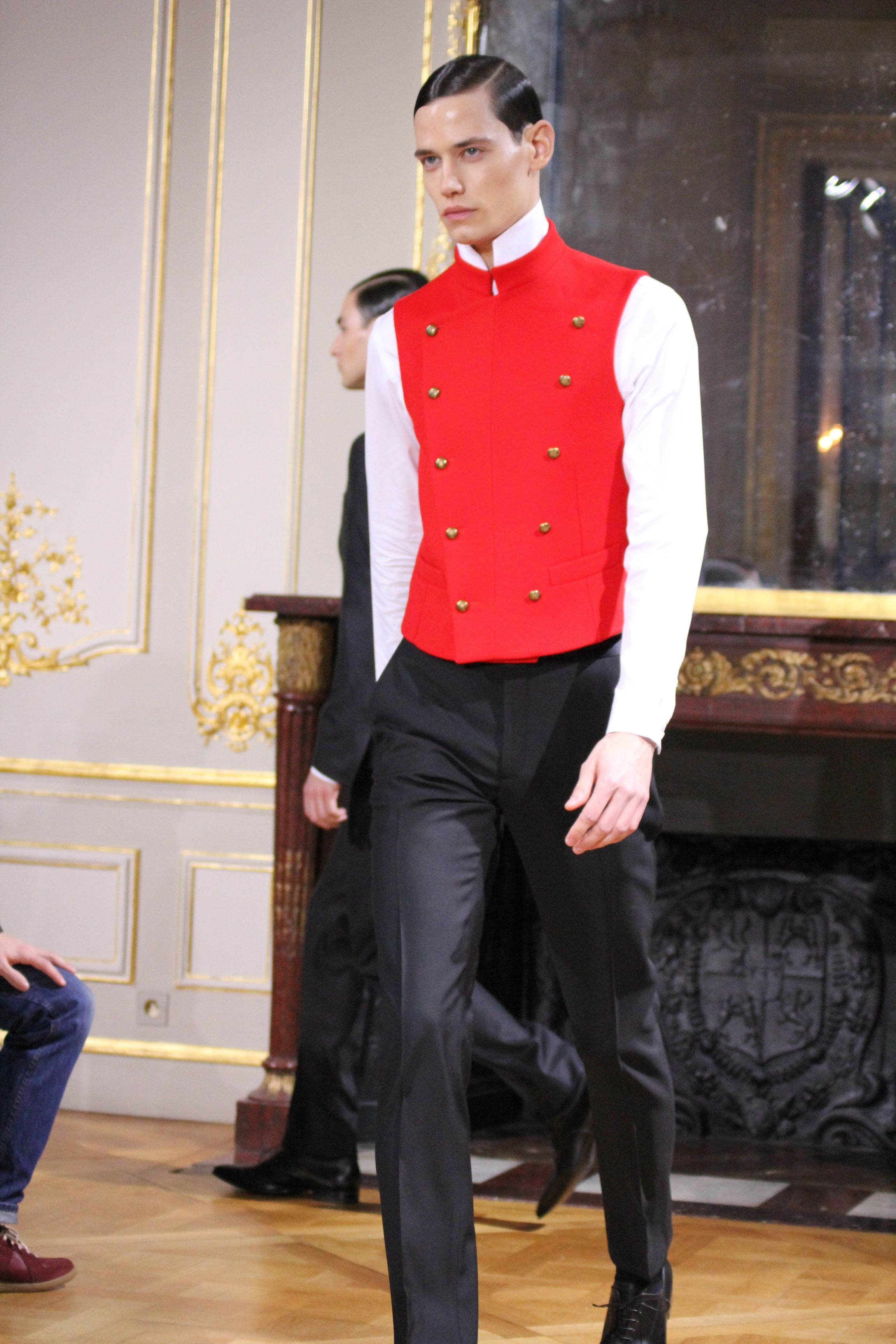 Les vêtements portés durant les batailles inspirant le leadership et se conformant aux mouvements du corps, collent bien aux besoin de l’homme moderne. C’est ainsi que les coupes et details essentiels portant les XVIII et XIX siècles deviennent sont réinventées pour créer des looks parfois futuristes. Il en va de même pour d’autres pièces contemporaines de l’époque comme les chemises à haut col, giles cravates et vêtements de cavalerie que l’on retrouve dans les coupes des pantalons et des vestes sans oublier la haute joaillerie à travers des accessoires précieux : boutons de manchette en or et argenteur complètent cette élégante silhouette.
