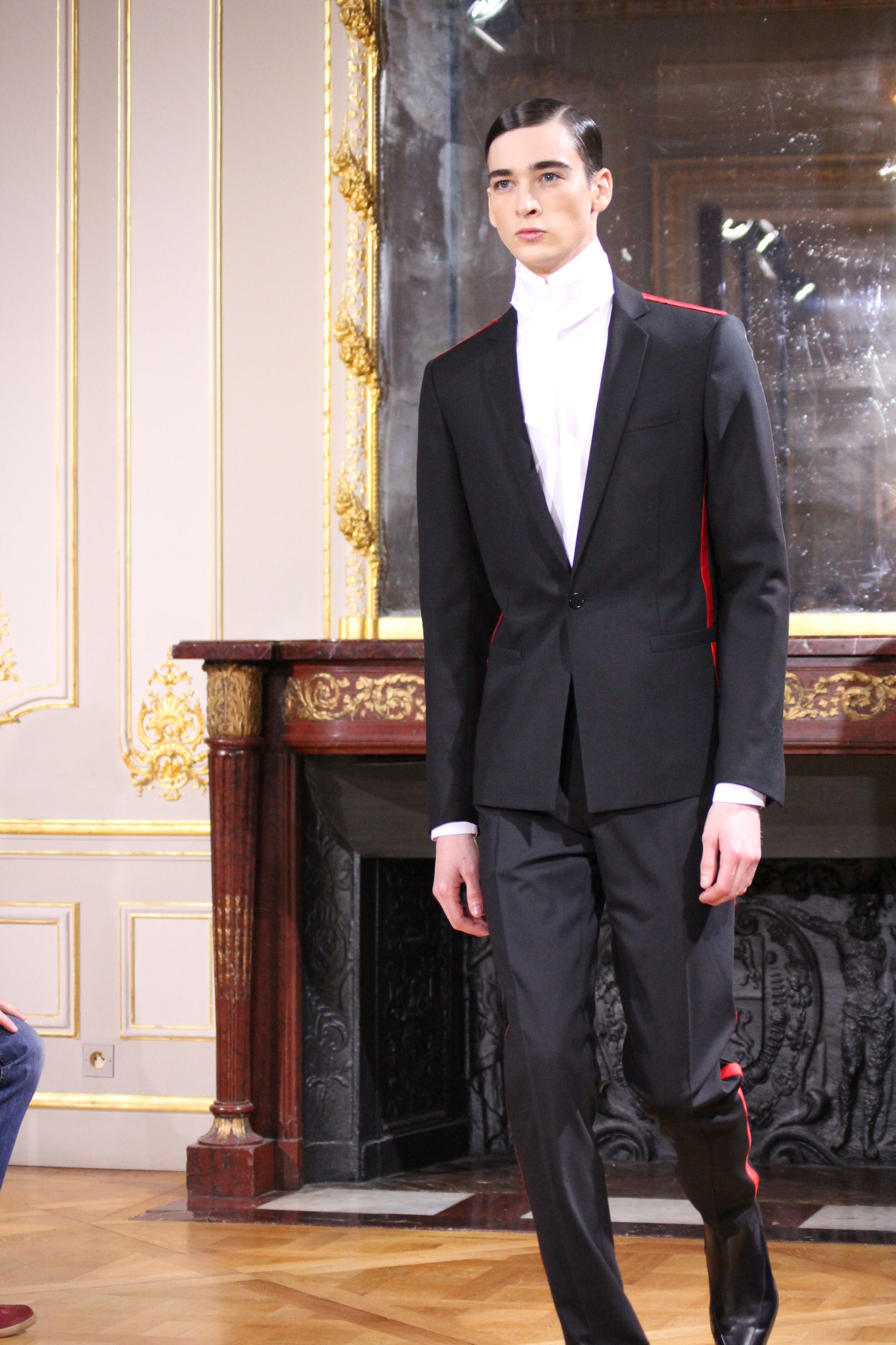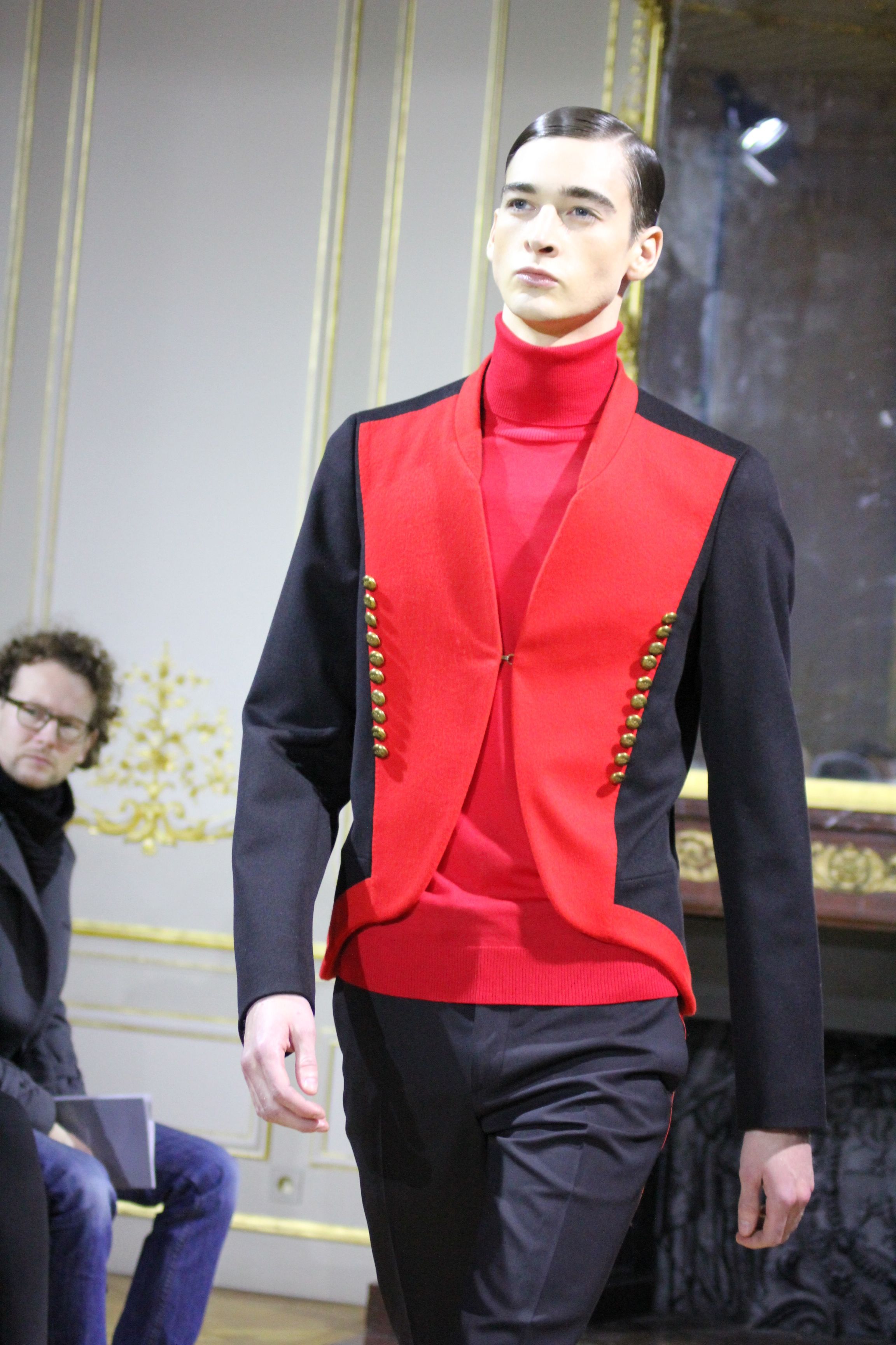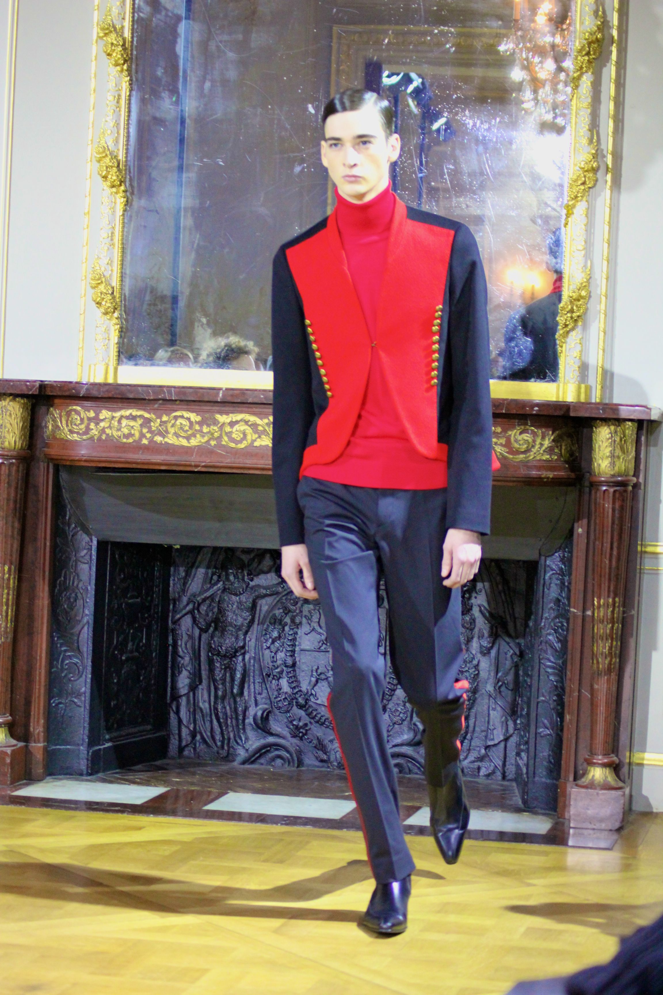 Les vêtements portés durant les batailles inspirant le leadership et se conformant aux mouvements du corps, collent bien aux besoin de l’homme moderne. C’est ainsi que les coupes et details essentiels portant les XVIII et XIX siècles deviennent sont réinventées pour créer des looks parfois futuristes. Il en va de même pour d’autres pièces contemporaines de l’époque comme les chemises à haut col, giles cravates et vêtements de cavalerie que l’on retrouve dans les coupes des pantalons et des vestes sans oublier la haute joaillerie à travers des accessoires précieux : boutons de manchette en or et argenteur complètent cette élégante silhouette.