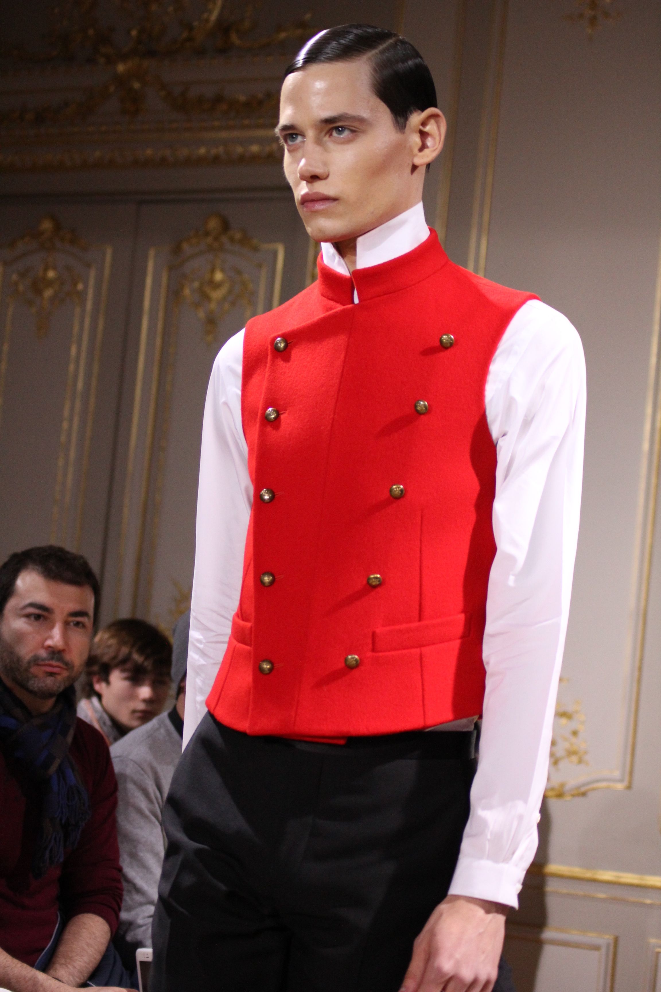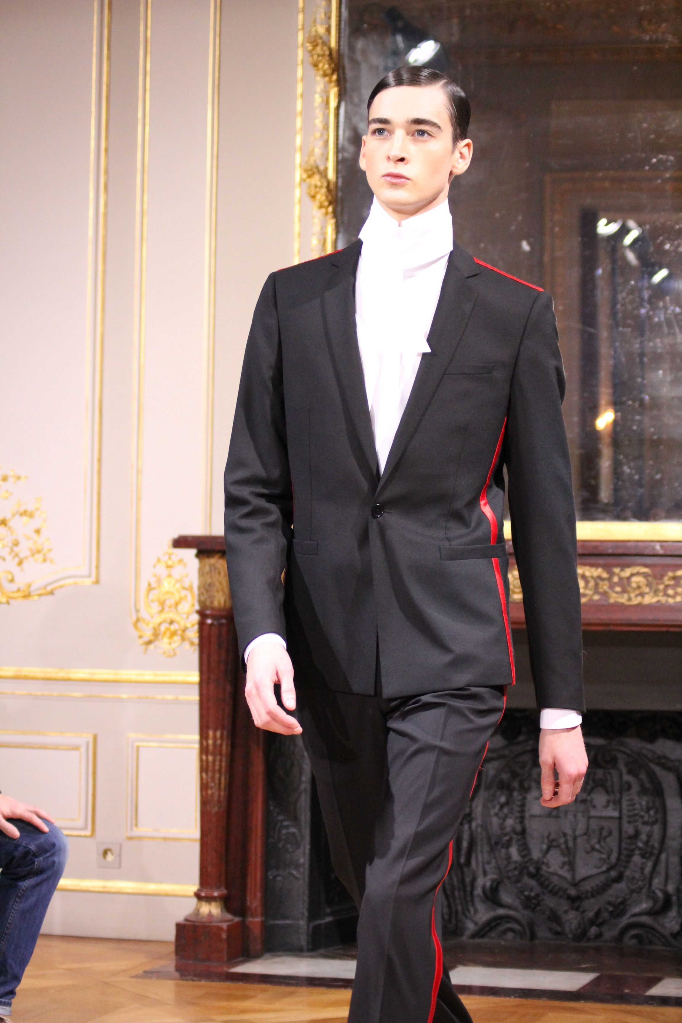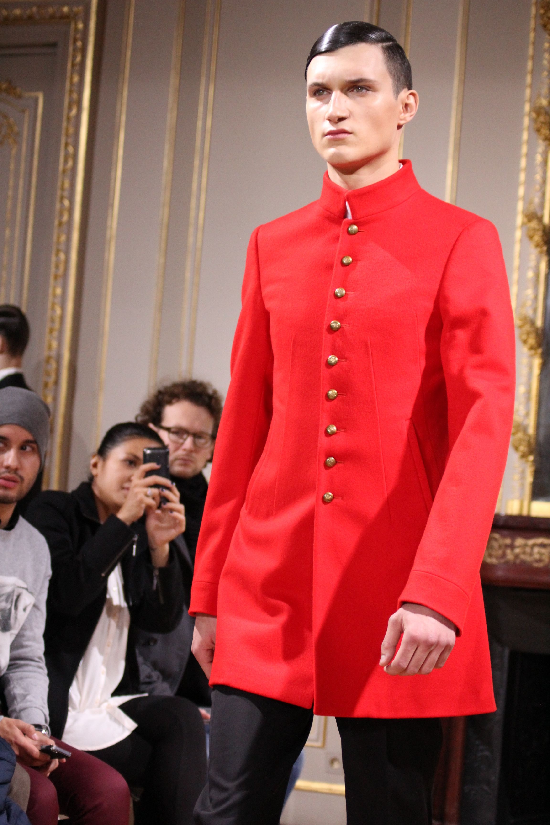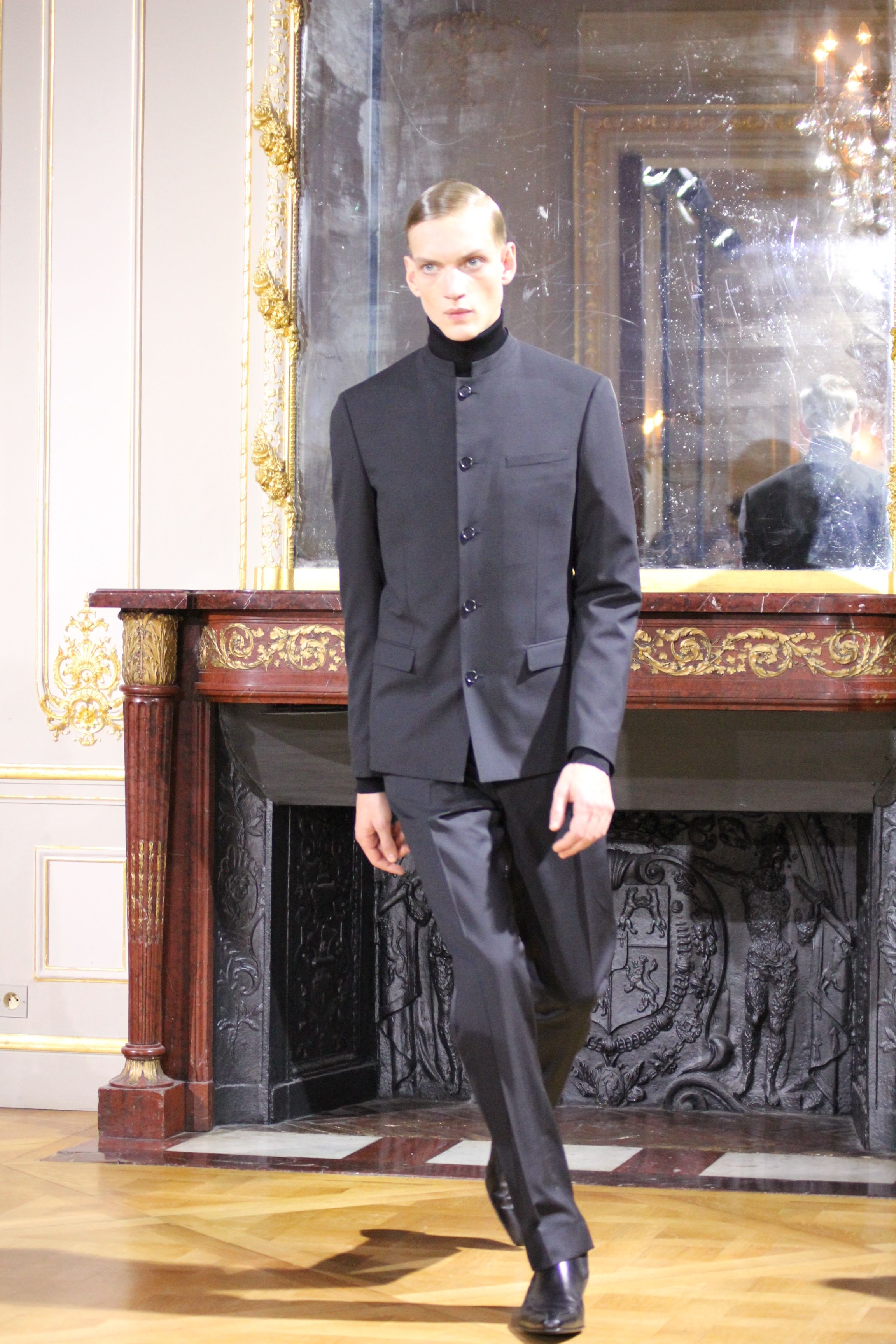 Les vêtements portés durant les batailles inspirant le leadership et se conformant aux mouvements du corps, collent bien aux besoin de l’homme moderne. C’est ainsi que les coupes et details essentiels portant les XVIII et XIX siècles deviennent sont réinventées pour créer des looks parfois futuristes. Il en va de même pour d’autres pièces contemporaines de l’époque comme les chemises à haut col, giles cravates et vêtements de cavalerie que l’on retrouve dans les coupes des pantalons et des vestes sans oublier la haute joaillerie à travers des accessoires précieux : boutons de manchette en or et argenteur complètent cette élégante silhouette.