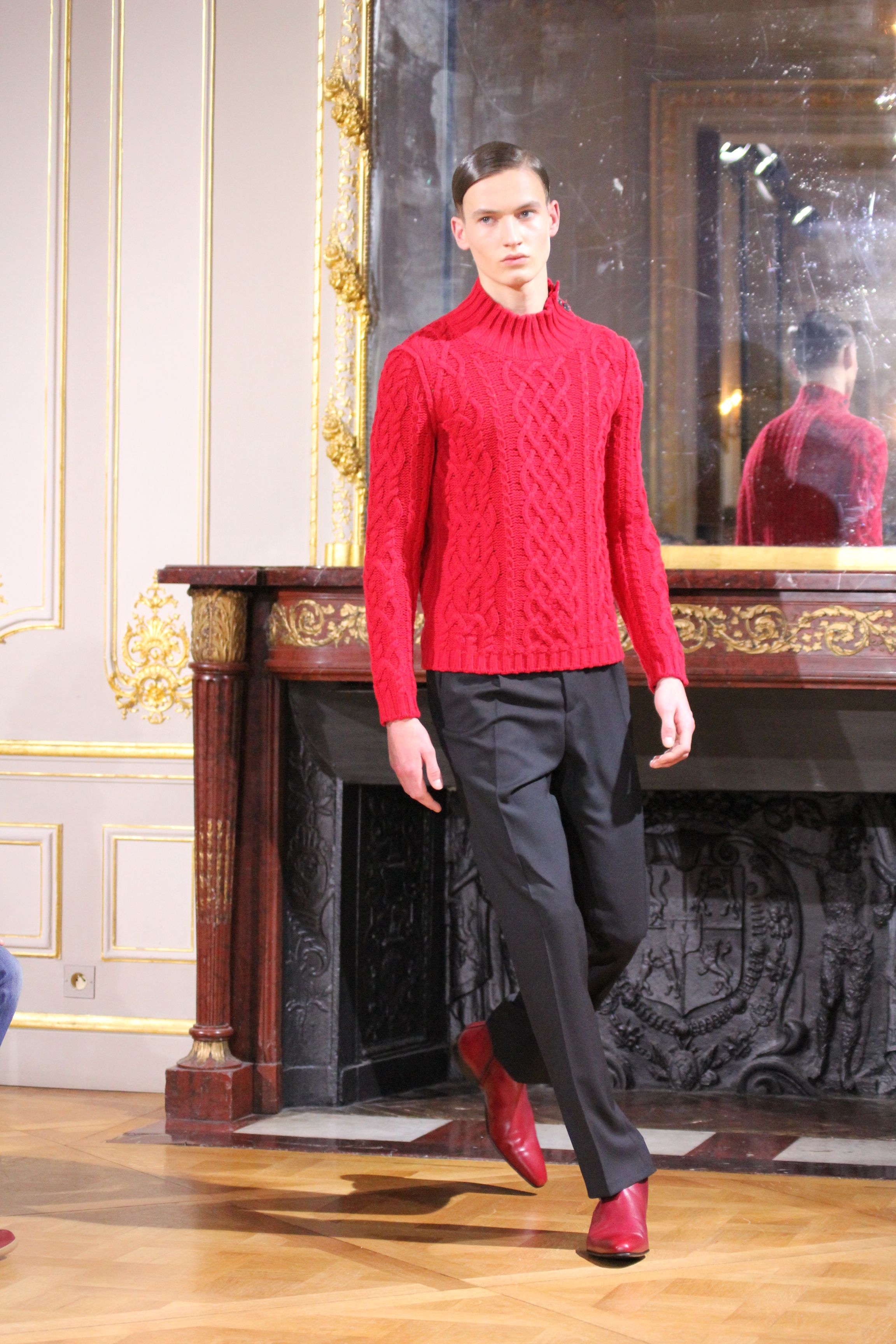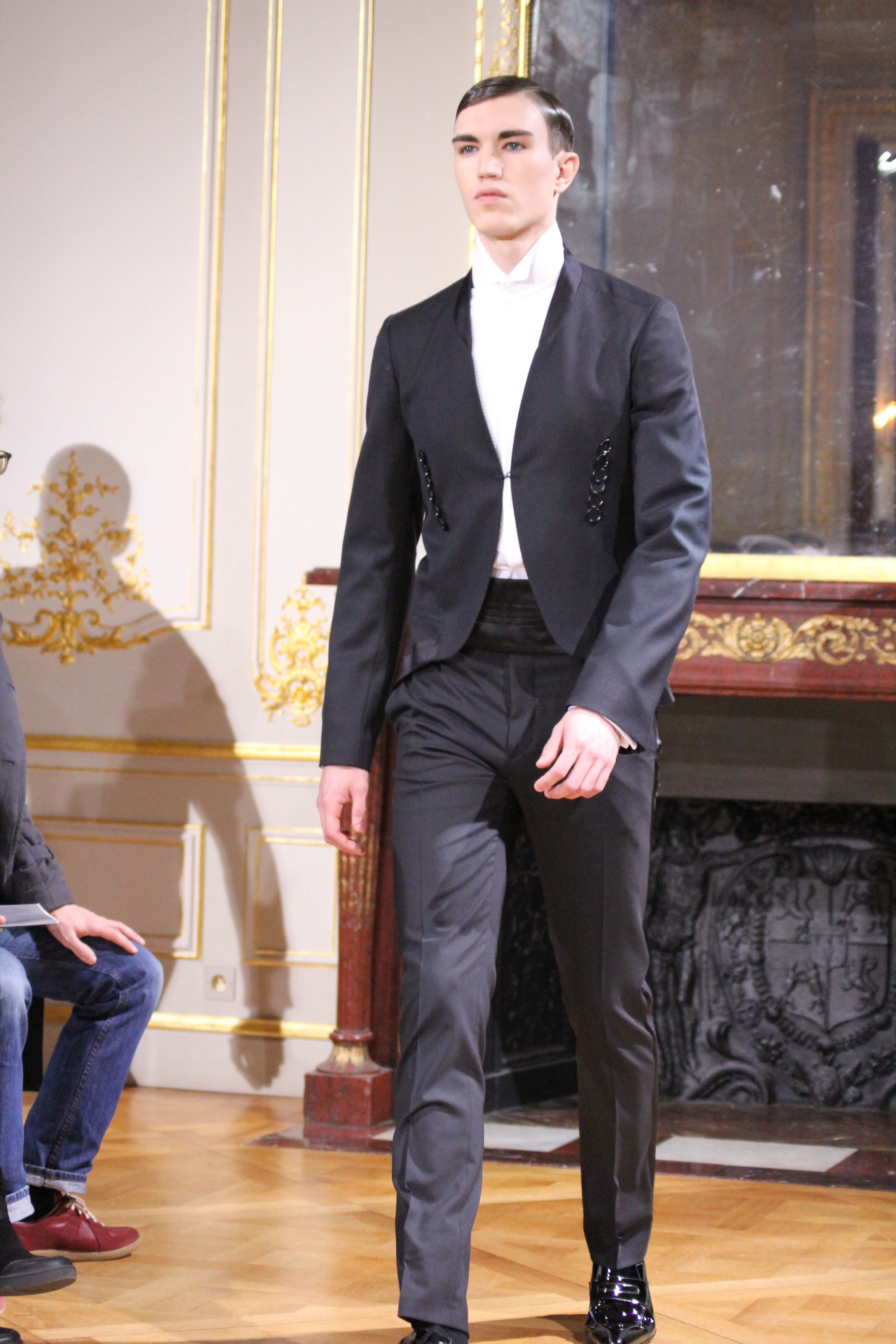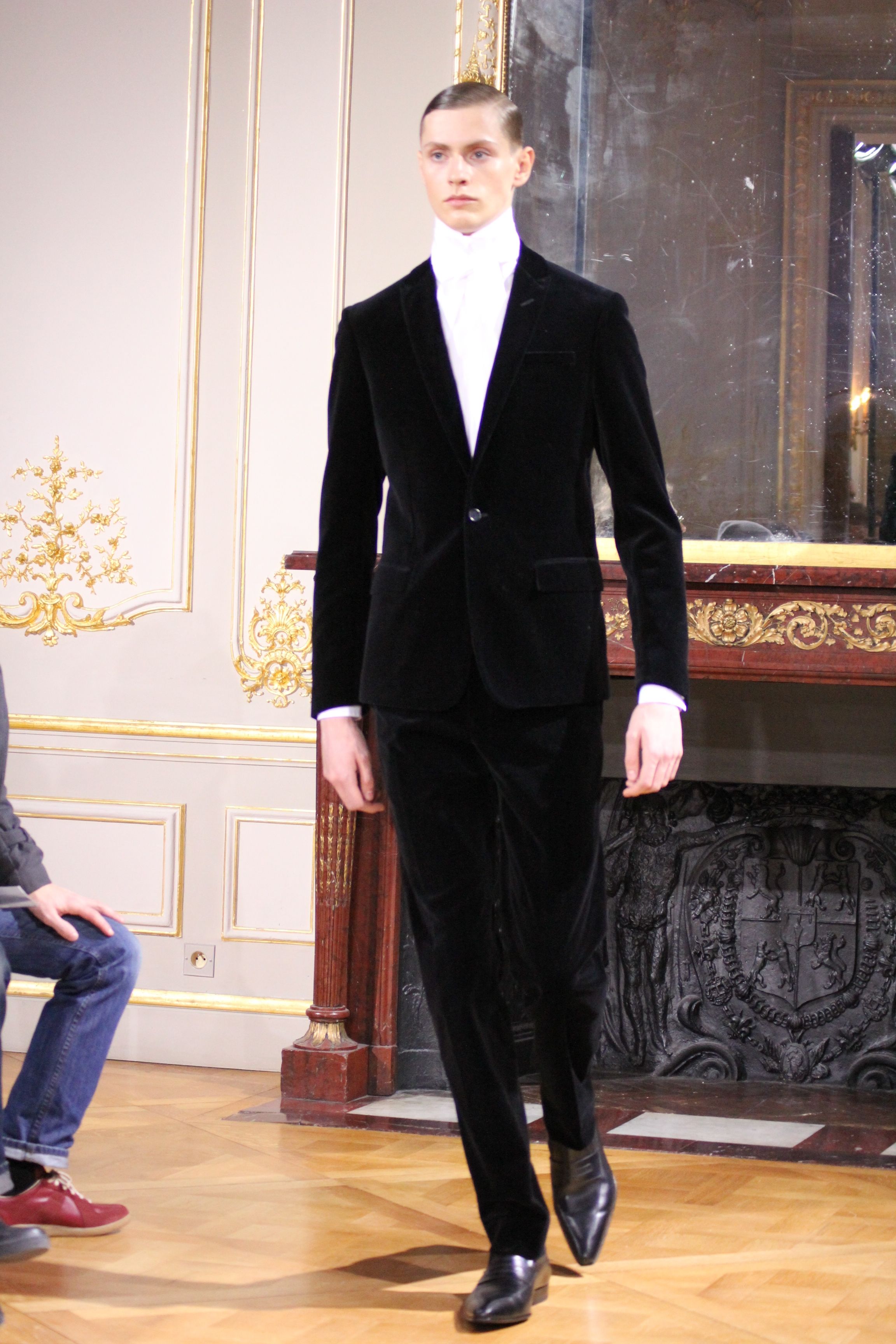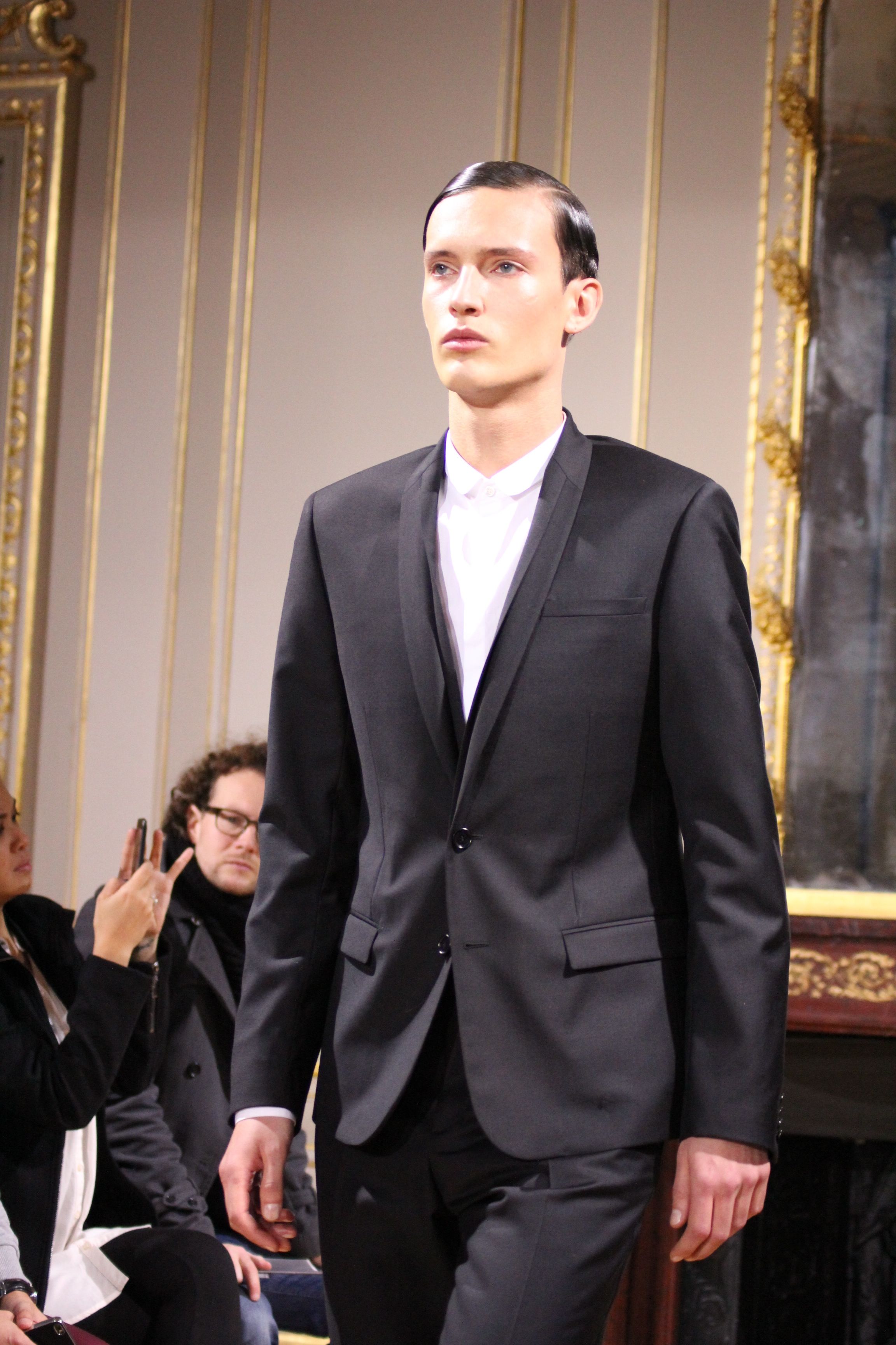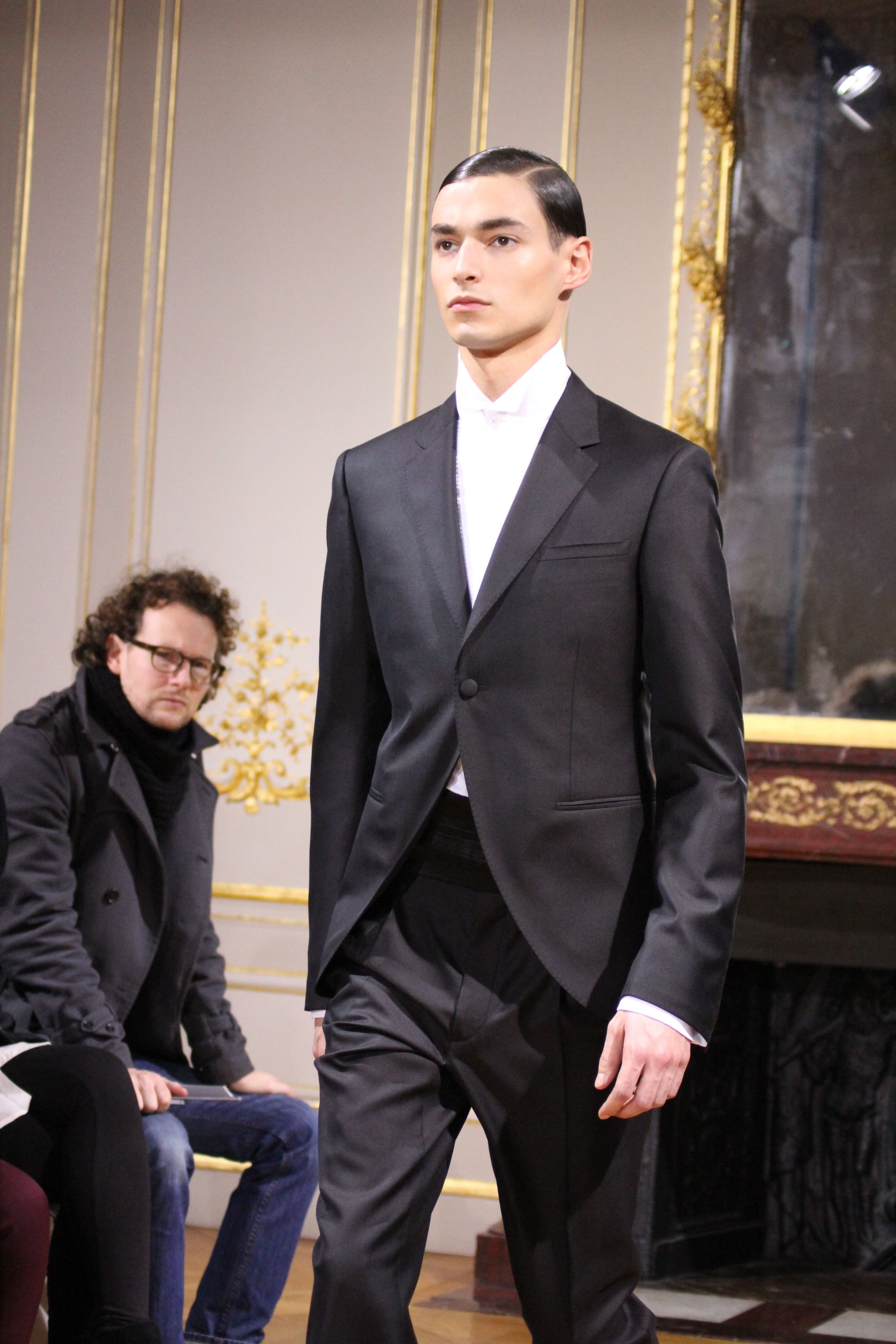 On retrouve une inspiration 60’s via l’utilisation de cravates fines, de petits cols, de revers élaborés et des boots faites main.