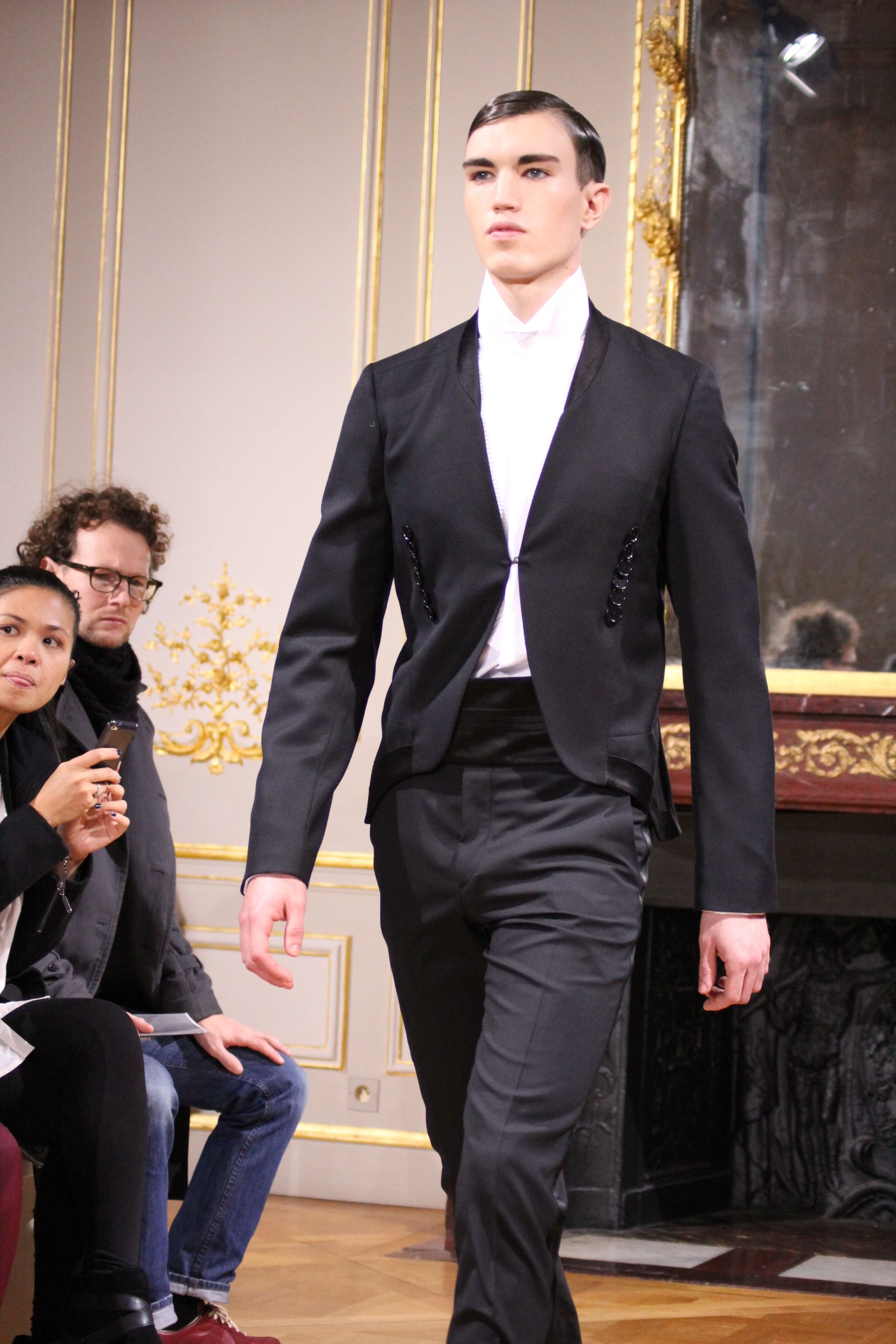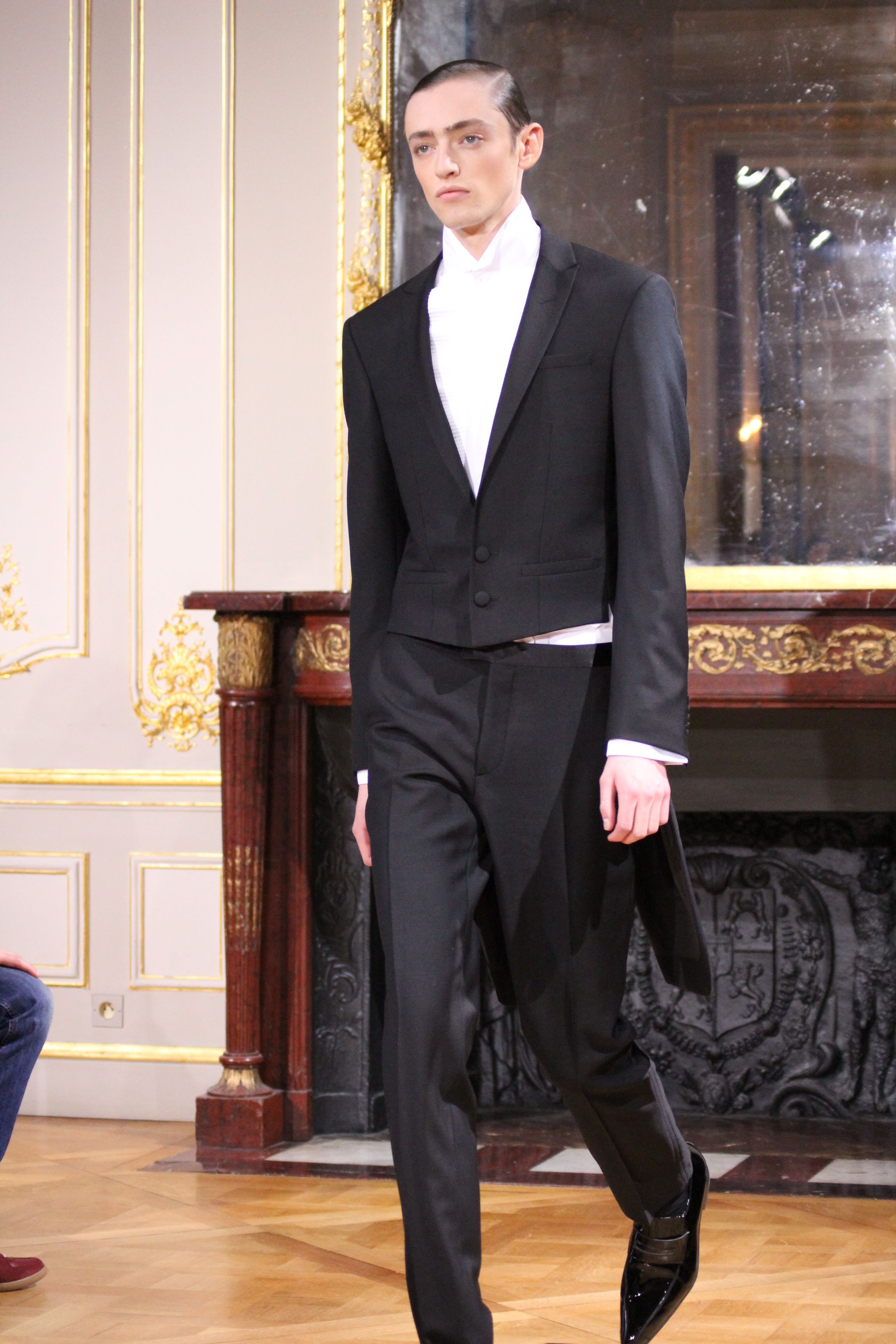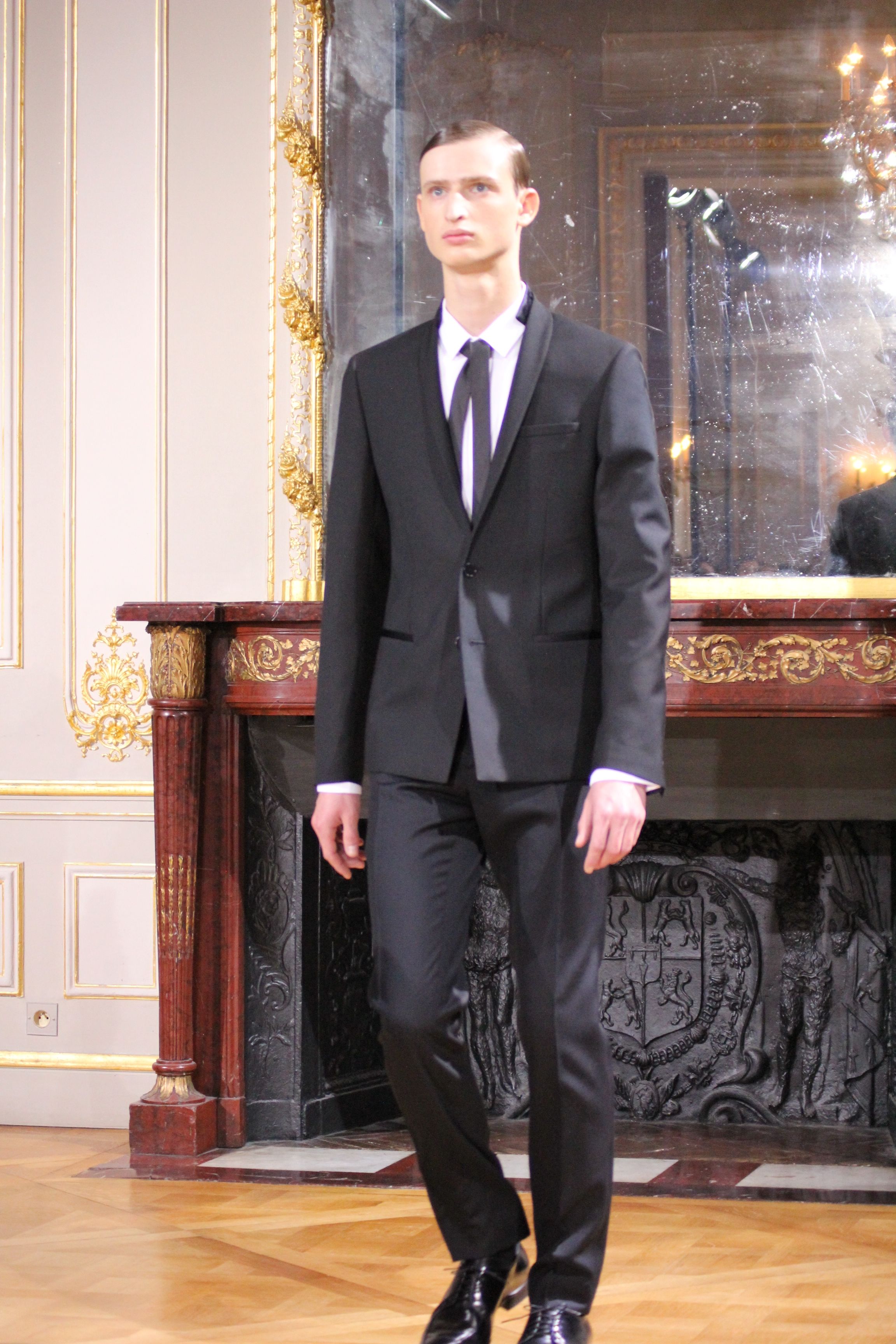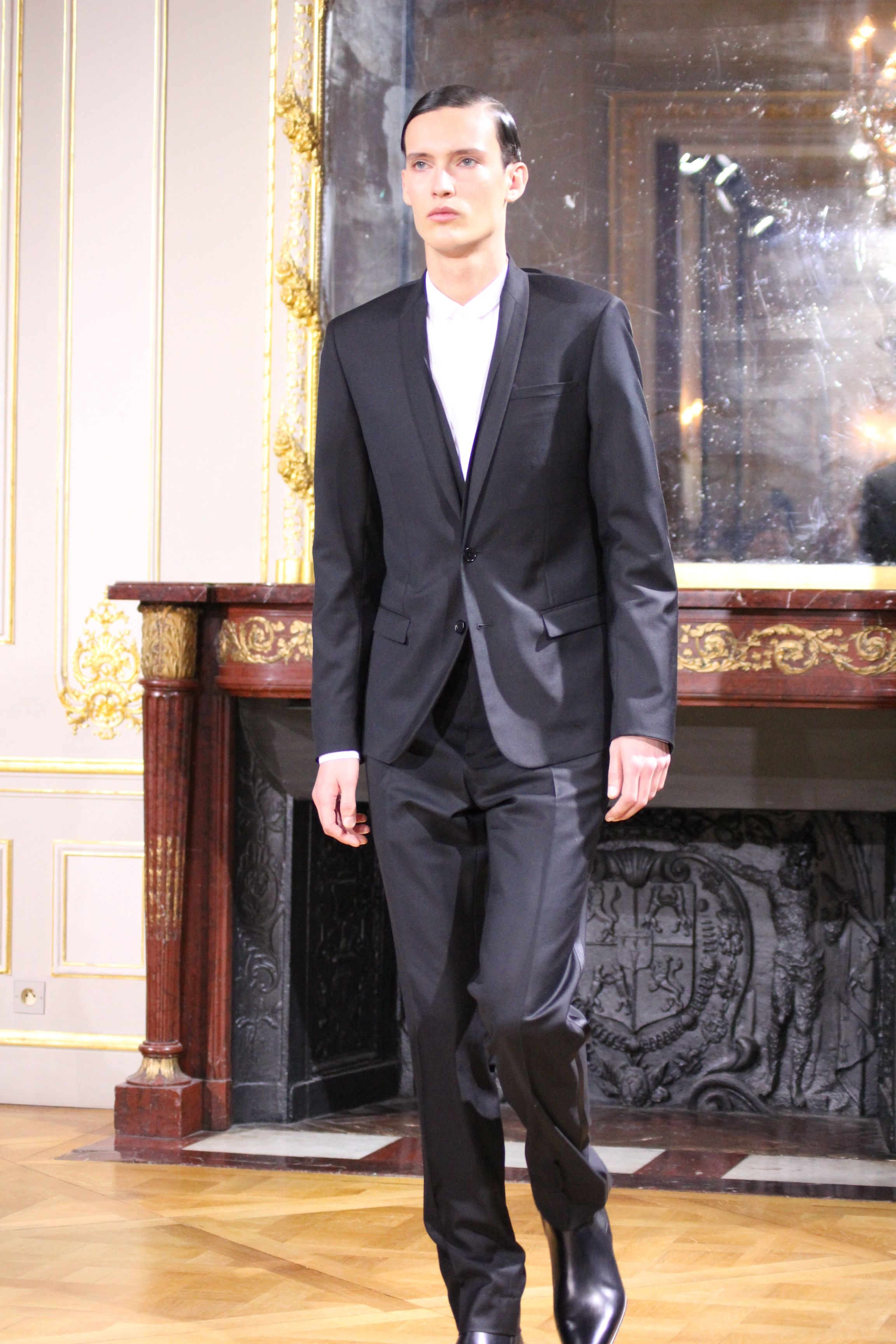 On retrouve une inspiration 60’s via l’utilisation de cravates fines, de petits cols, de revers élaborés et des boots faites main.