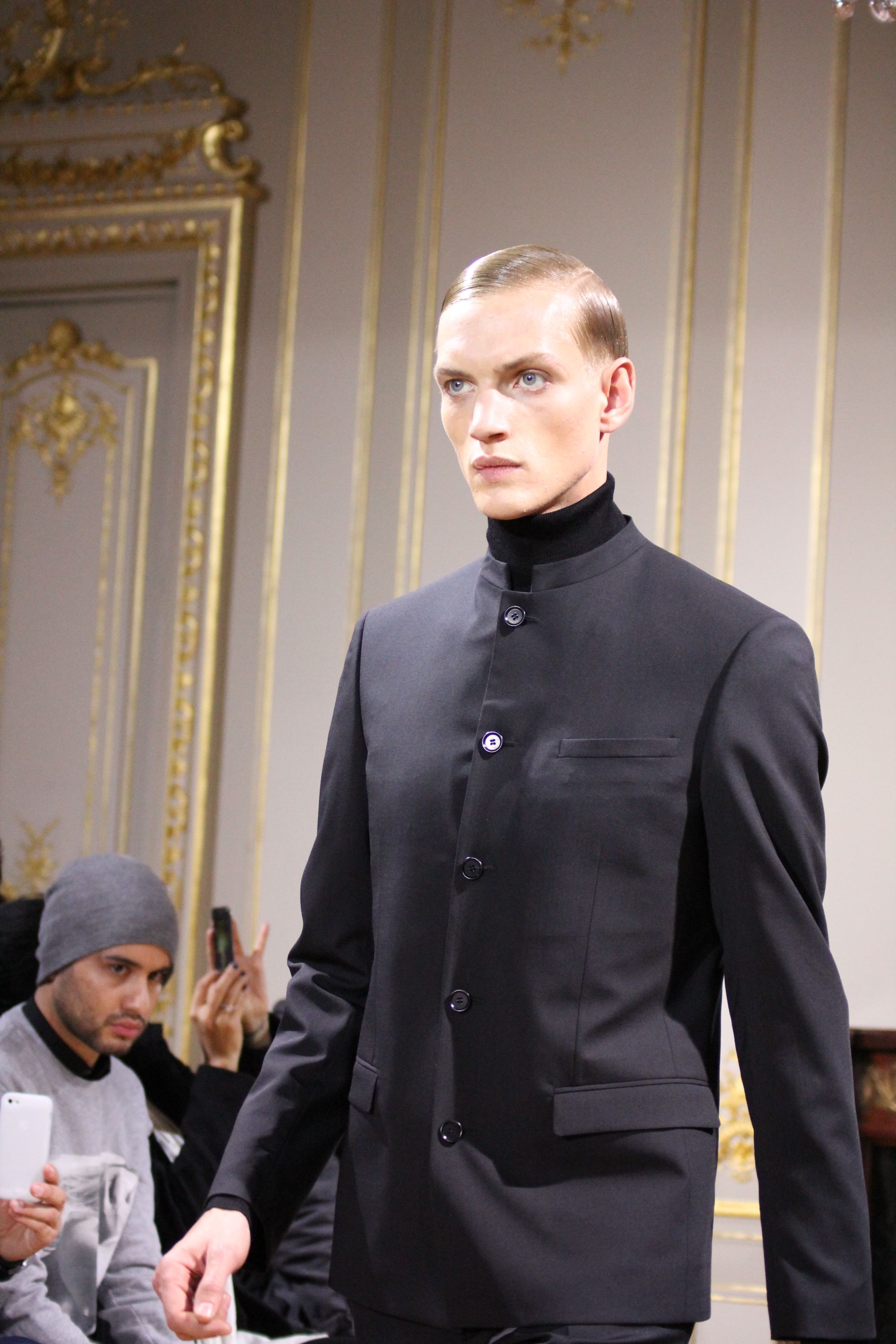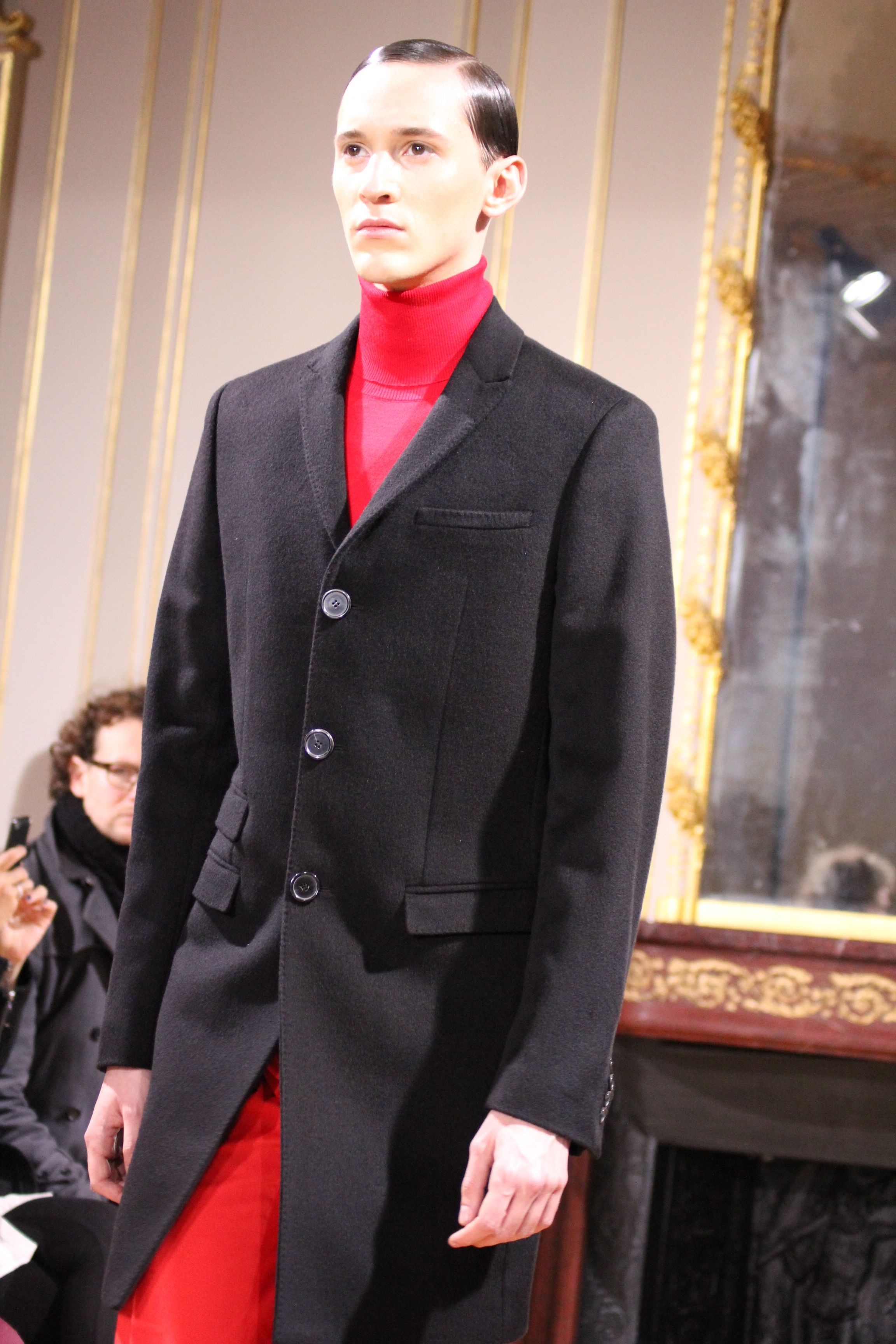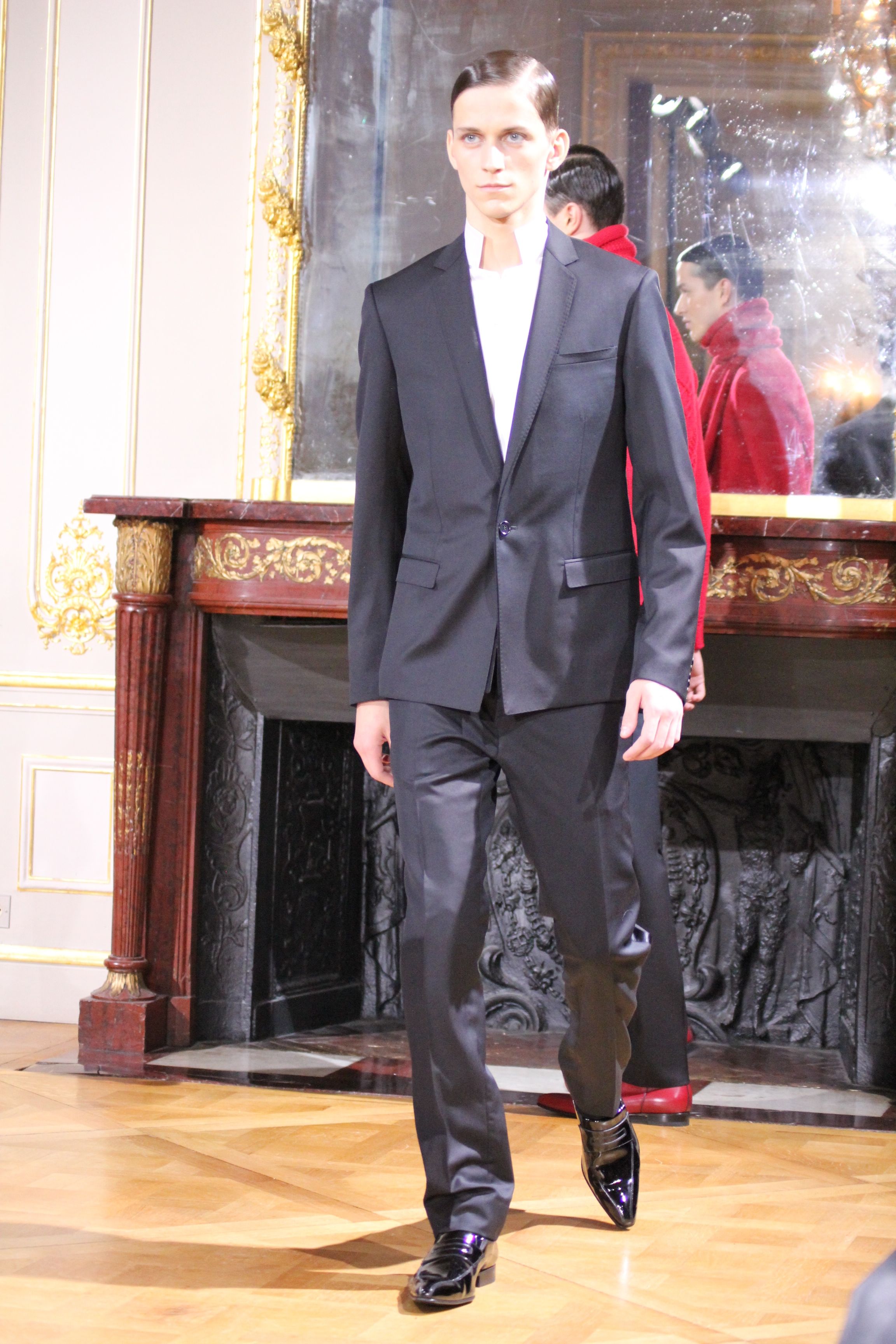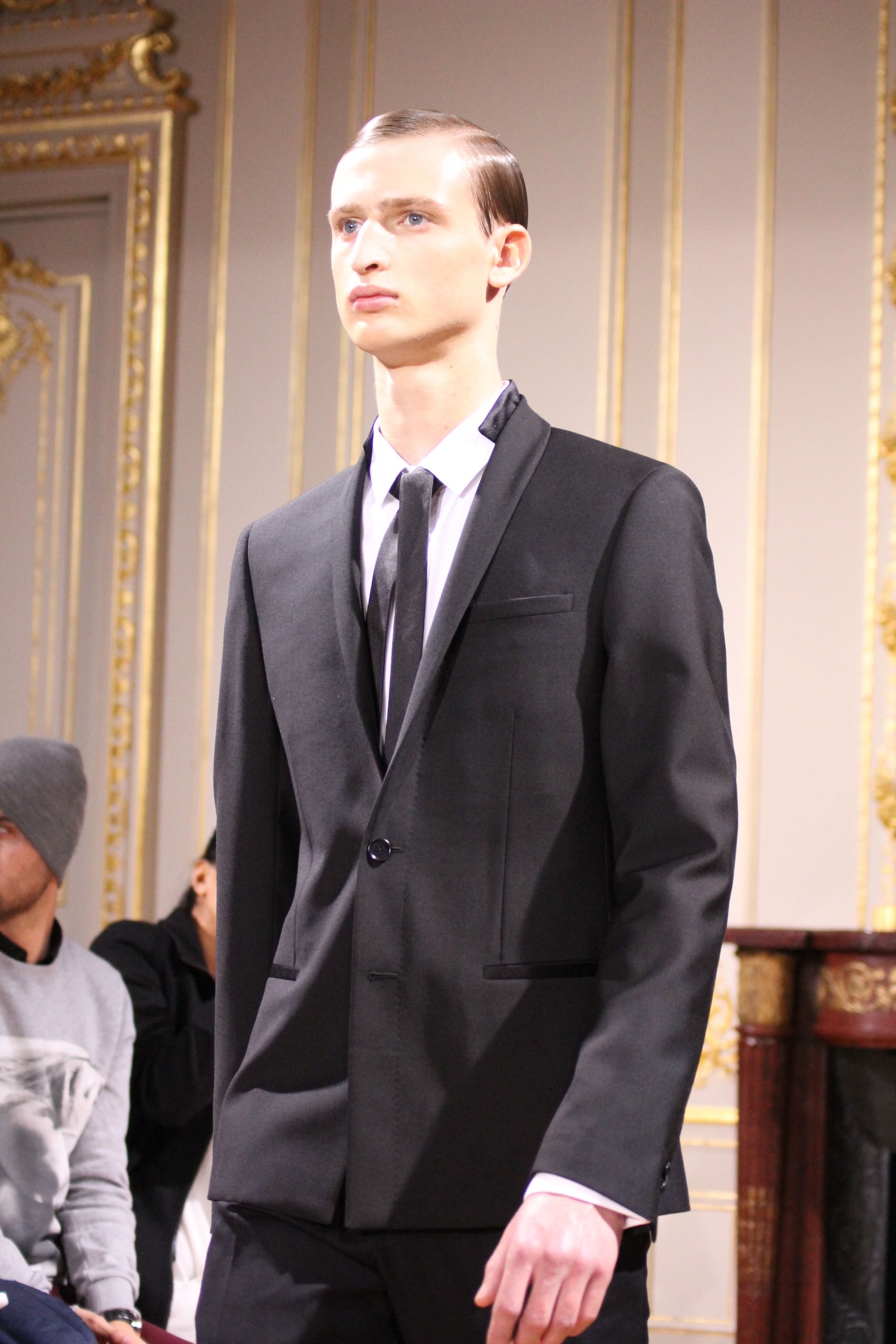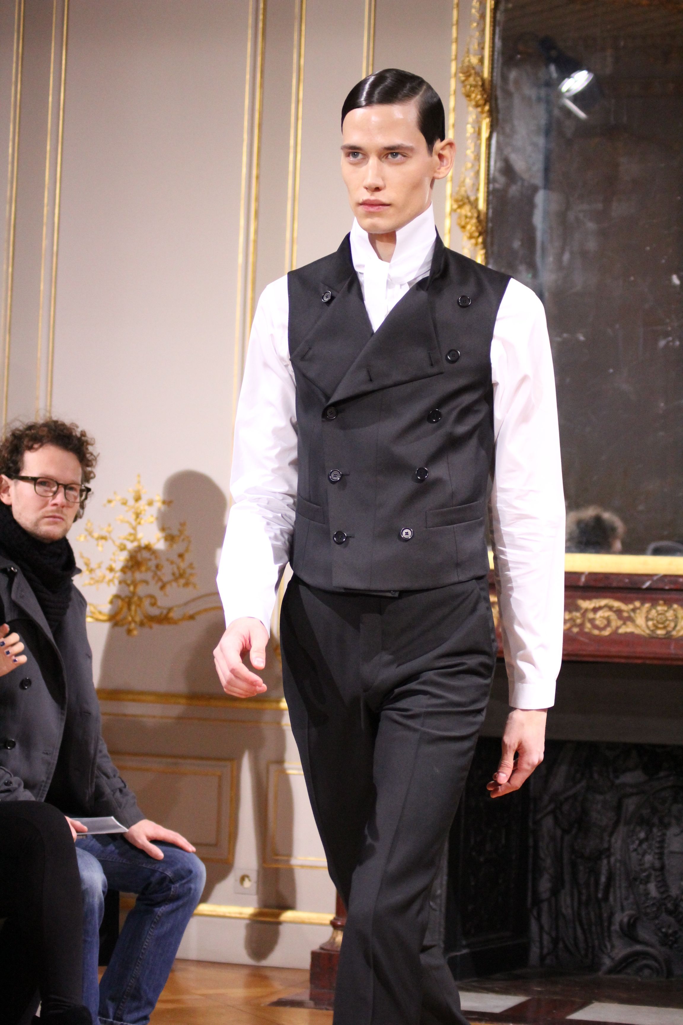 On retrouve une inspiration 60’s via l’utilisation de cravates fines, de petits cols, de revers élaborés et des boots faites main.