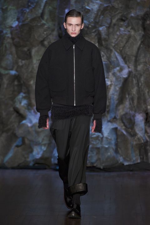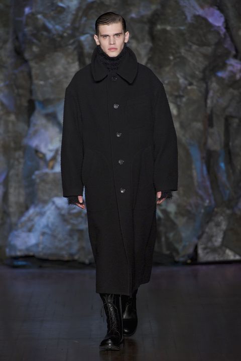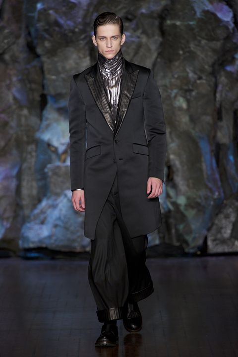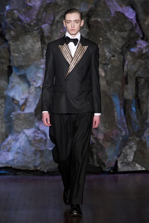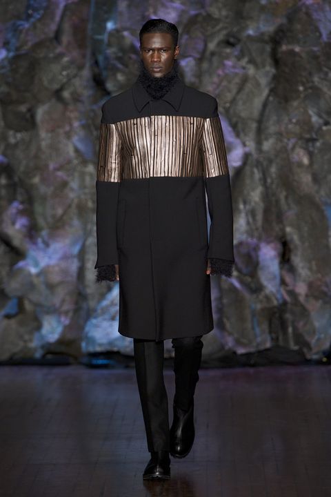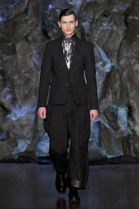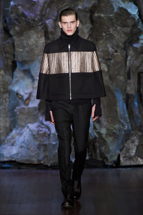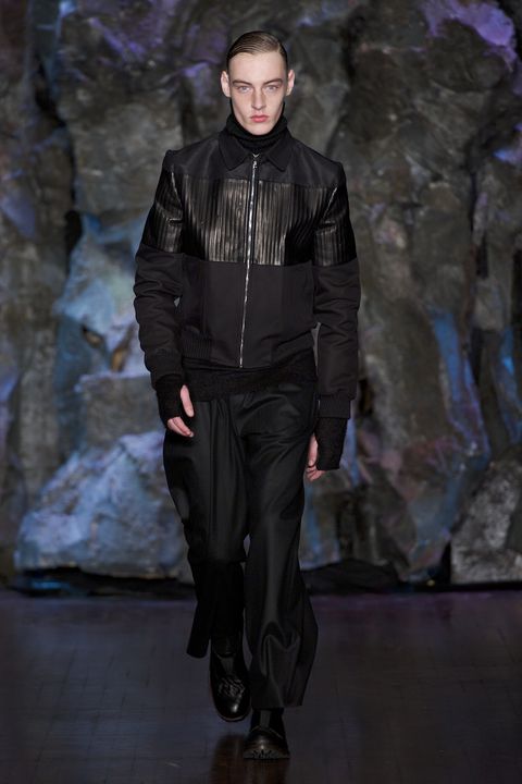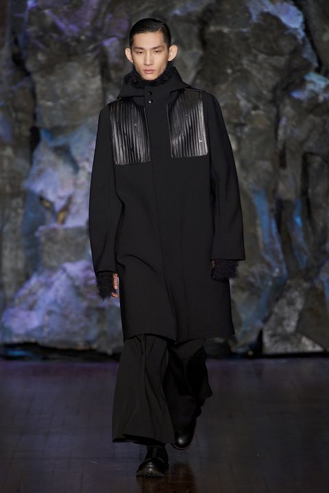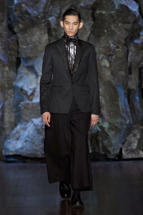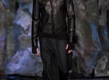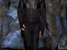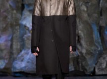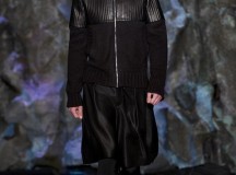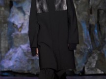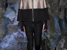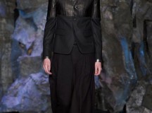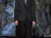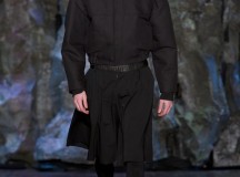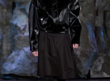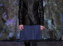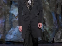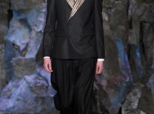 Songzio est le designer coréen que tout le monde s’arrache. Pour sa collection Automne Hiver 2014 -2015, Songzio a puisé sont son inspiration dans la pierre à l’état sauvage et dans la nature. Jouant sur les reliefs, les ombres et la brutalité de la matière, Songzio peint ses vêtements comme il aurait peint un tableau en jouant avec les texture et en y mêlant des tons or et argent.