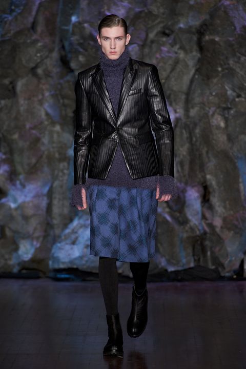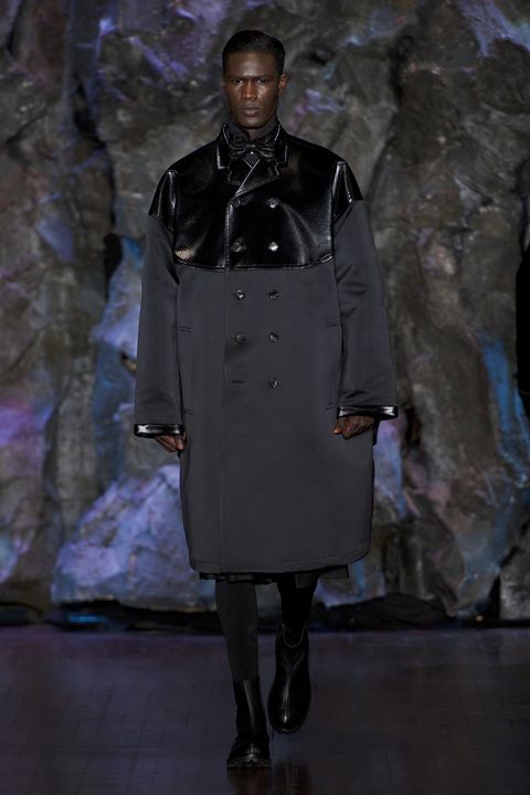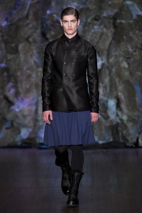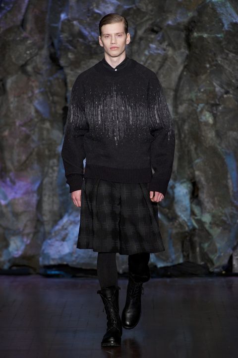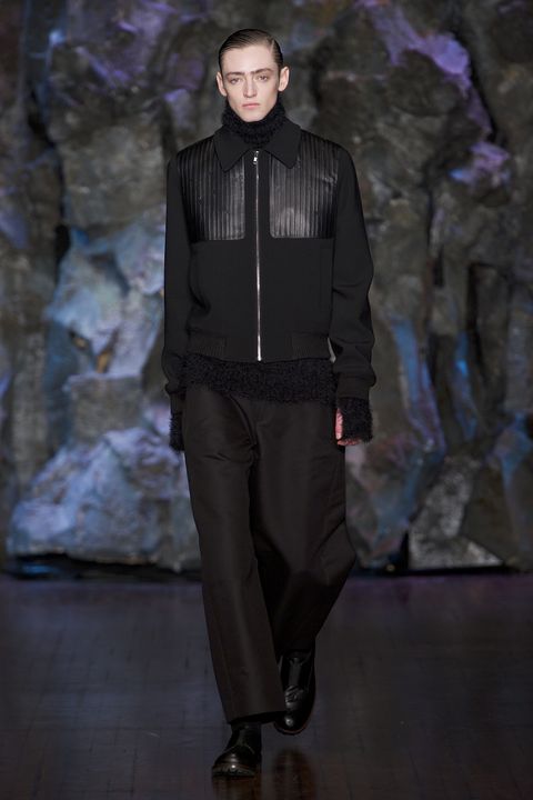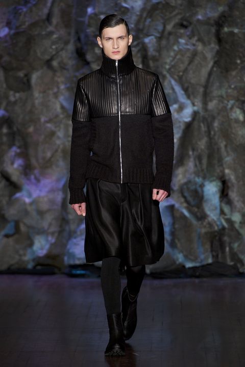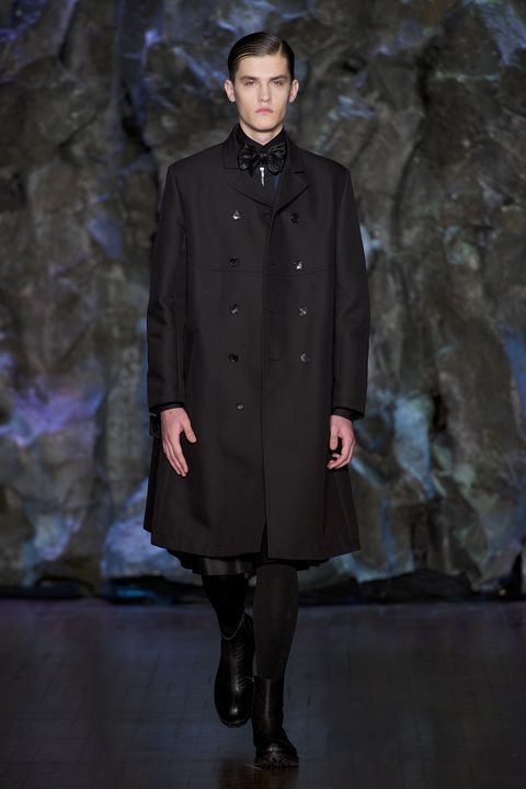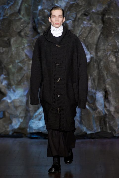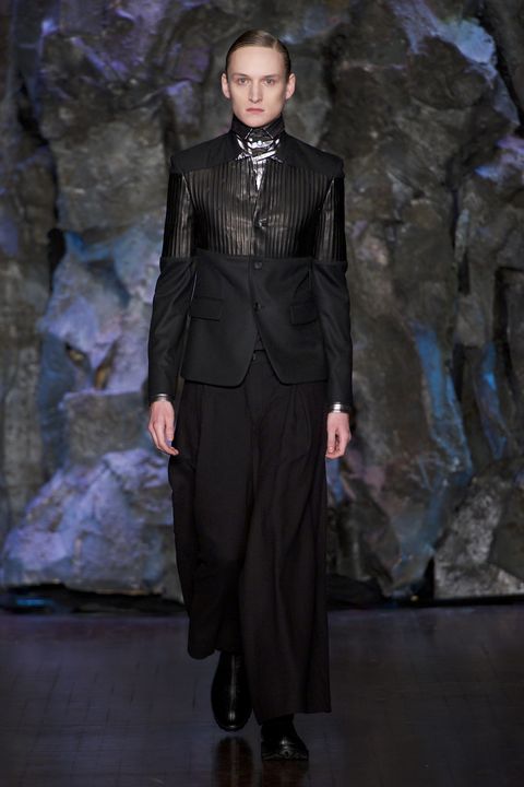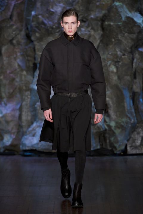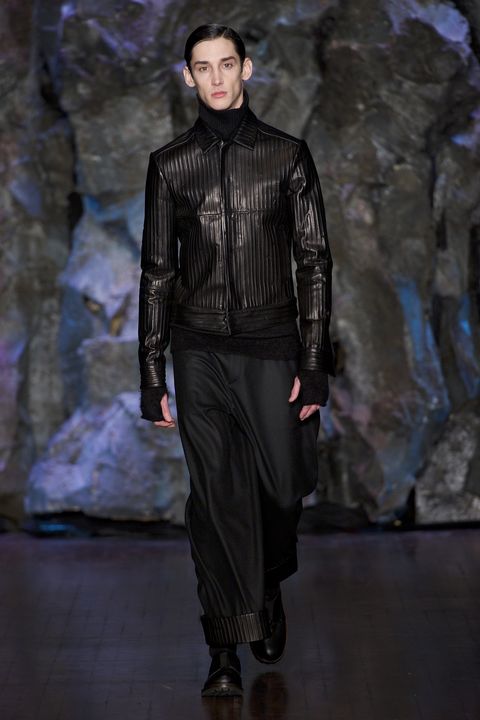 Songzio est le designer coréen que tout le monde s’arrache. Pour sa collection Automne Hiver 2014 -2015, Songzio a puisé sont son inspiration dans la pierre à l’état sauvage et dans la nature. Jouant sur les reliefs, les ombres et la brutalité de la matière, Songzio peint ses vêtements comme il aurait peint un tableau en jouant avec les texture et en y mêlant des tons or et argent.