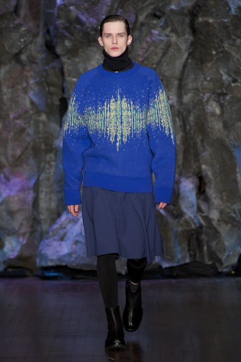 Cet imprimé unique est sur les vestes, chemise, maille, il permet aux vêtements de s’entrelacer et de se mélanger donnant ainsi le spectacle d’une silhouette texturée étrange, un roc de style.