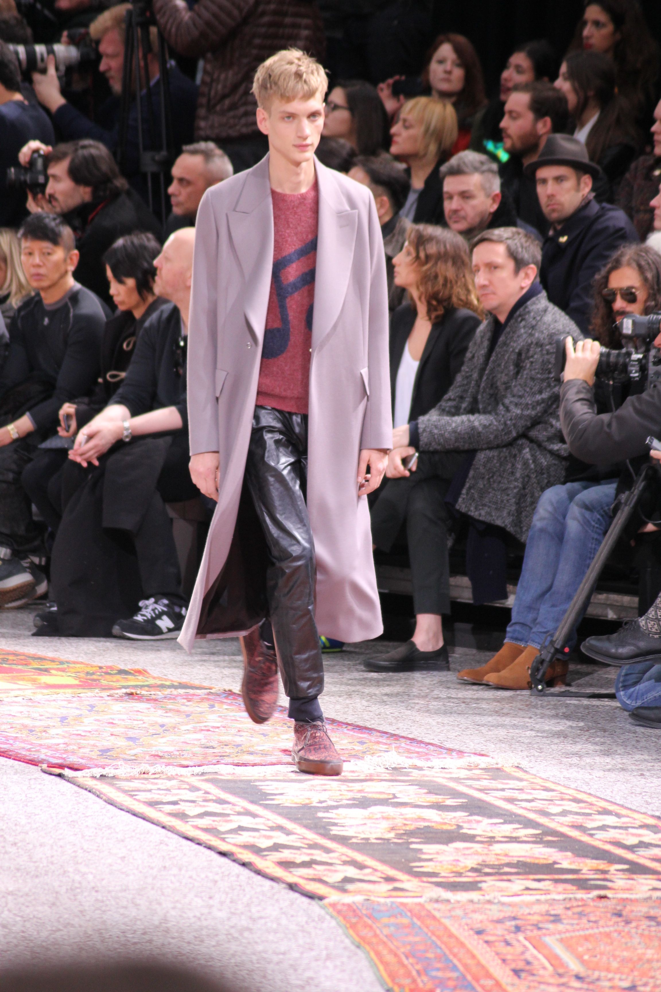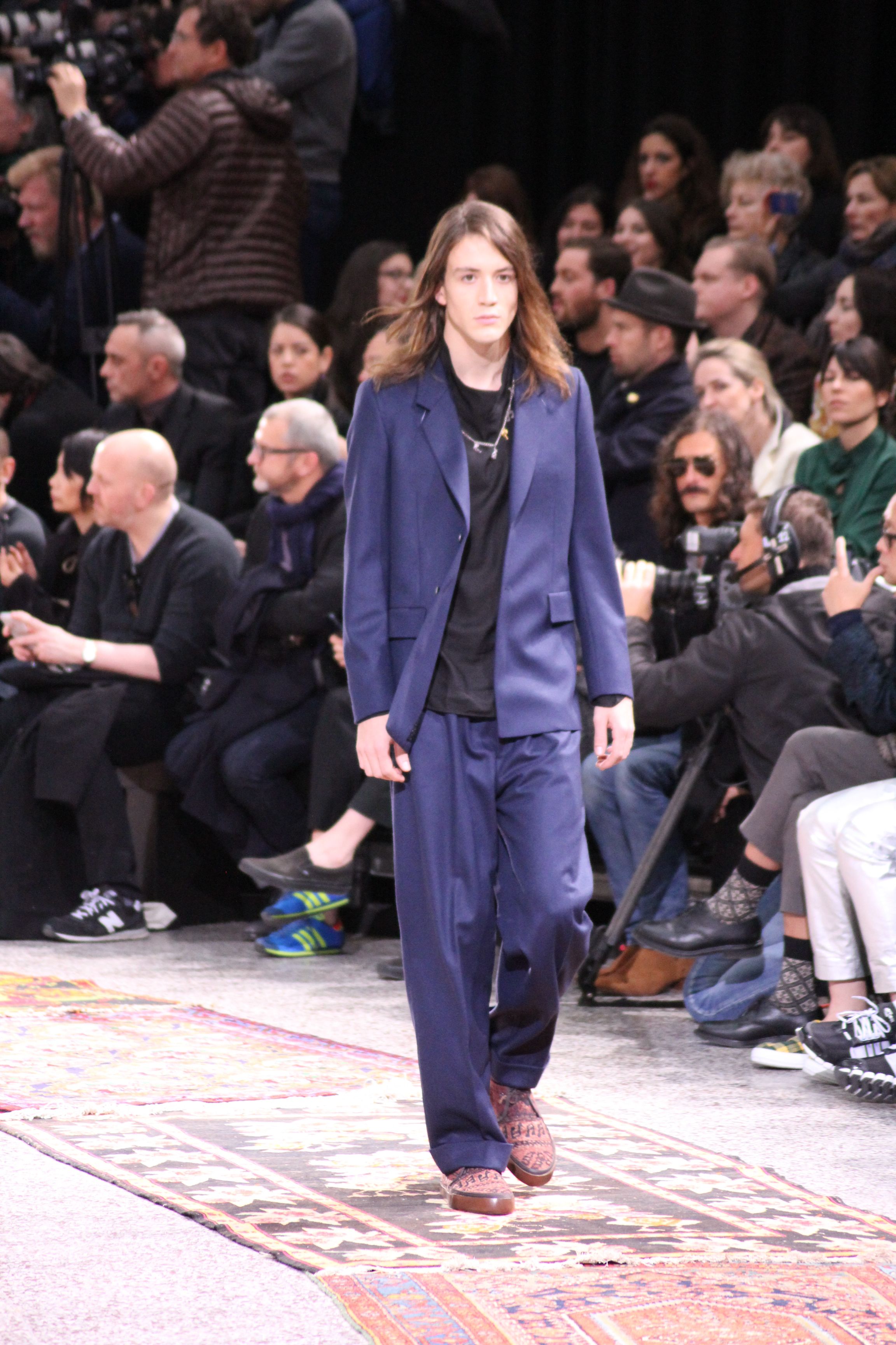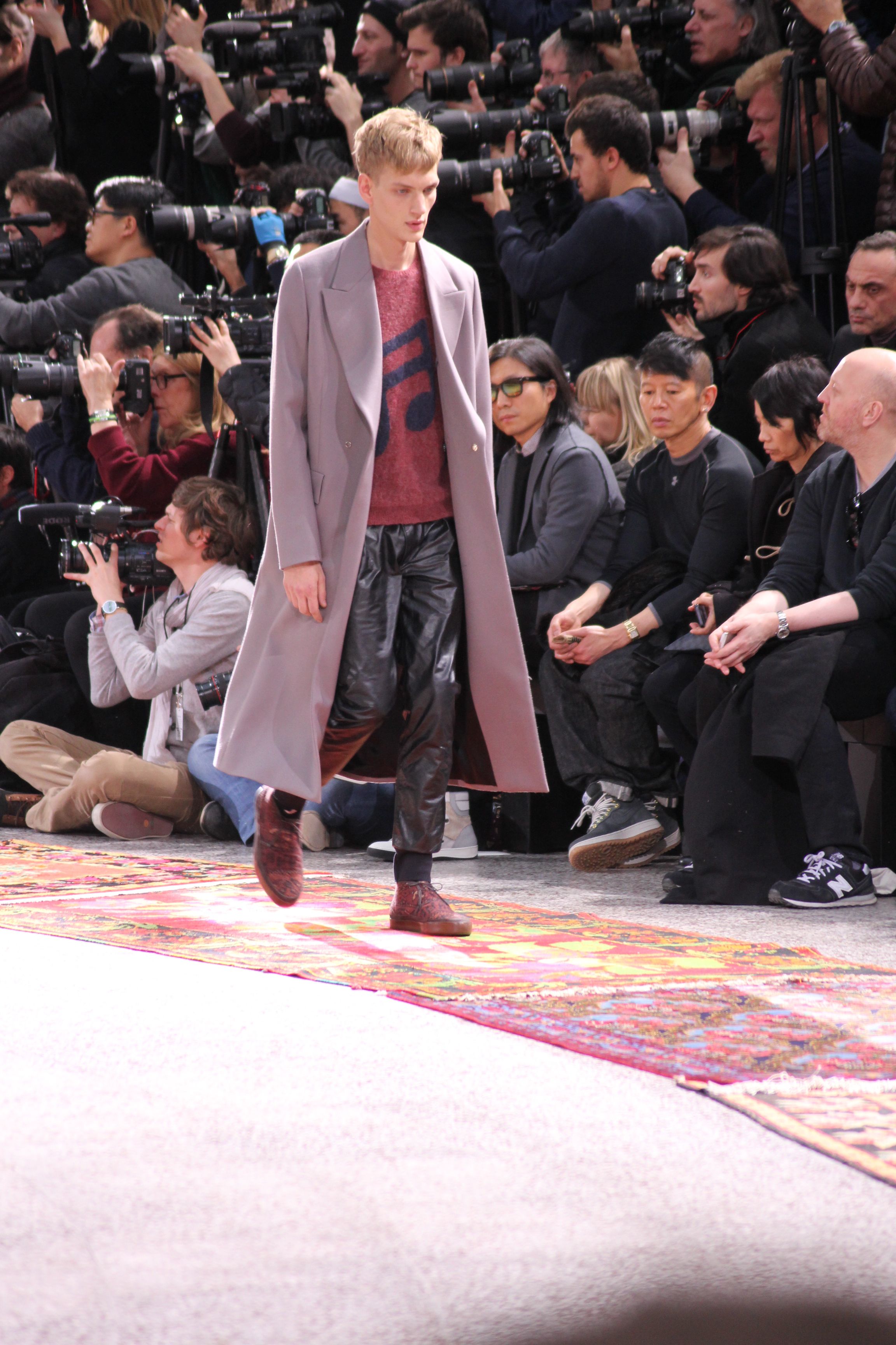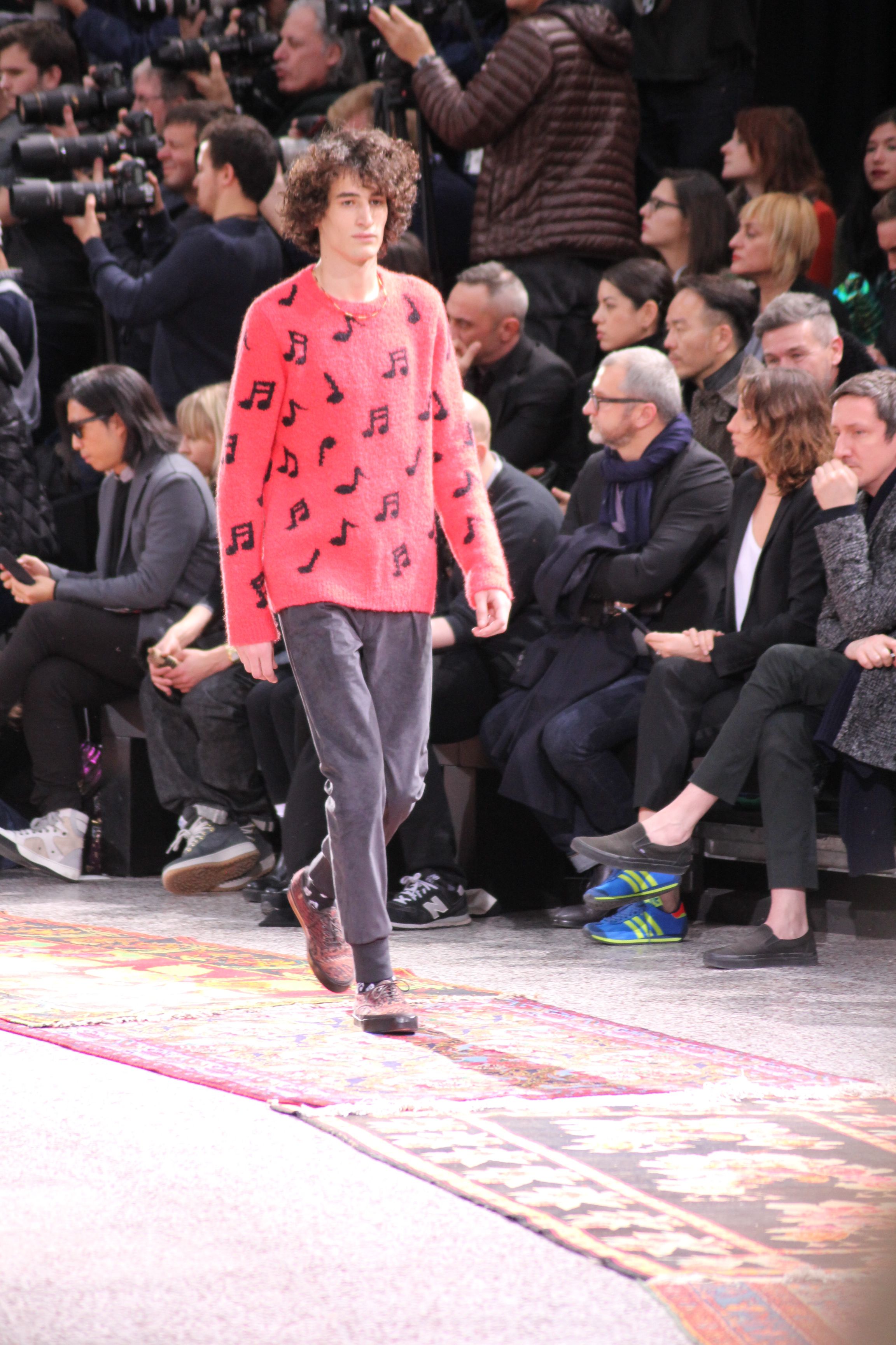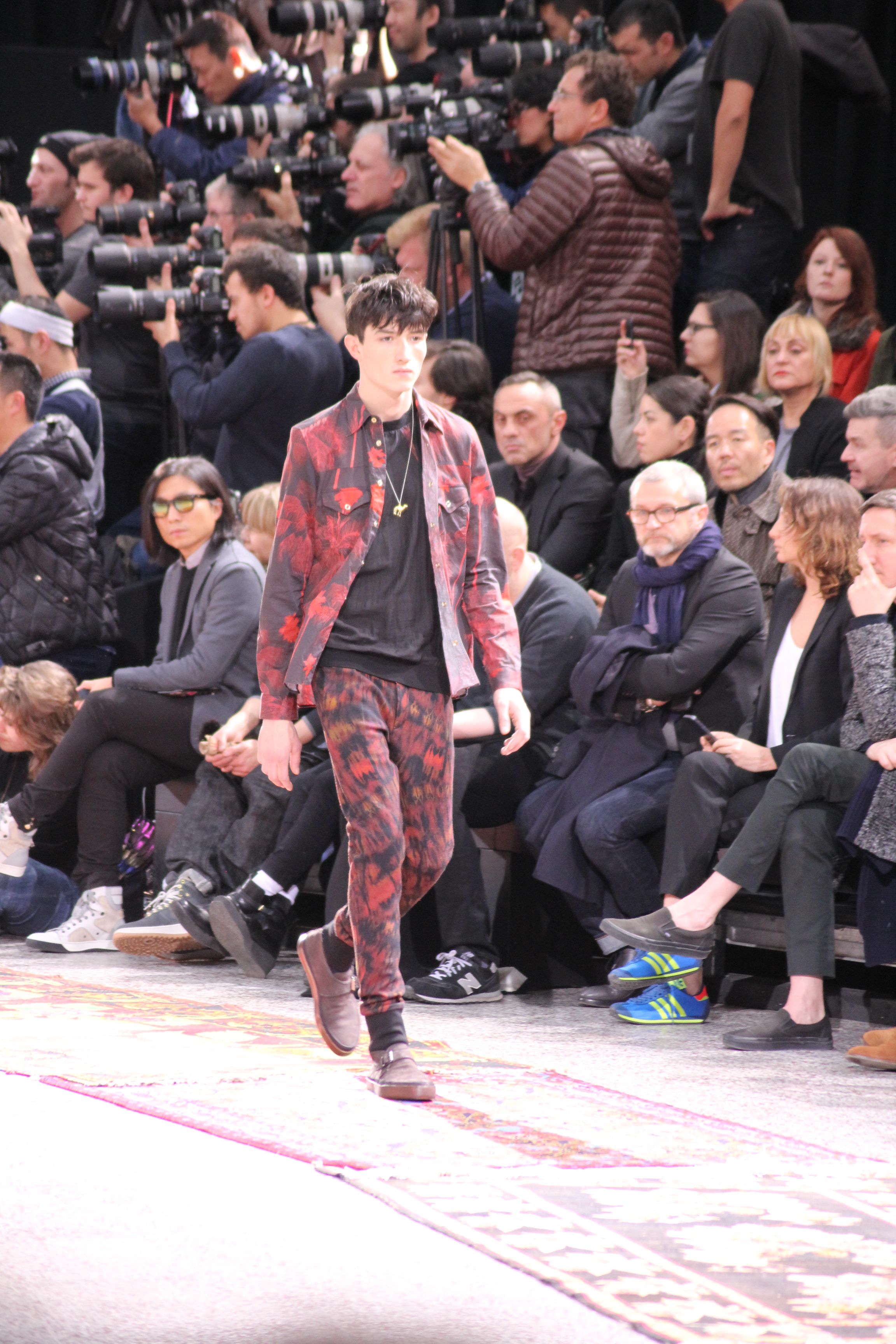 Paul Smith nous fait voyager au pays du rock et de psychédélique pour cette collection automne hiver 2014-2015. On y croise les fantômes de Jim Morrison, les bouffées de hashish, de la folie de woodstock et les champignons hallucinogène.
