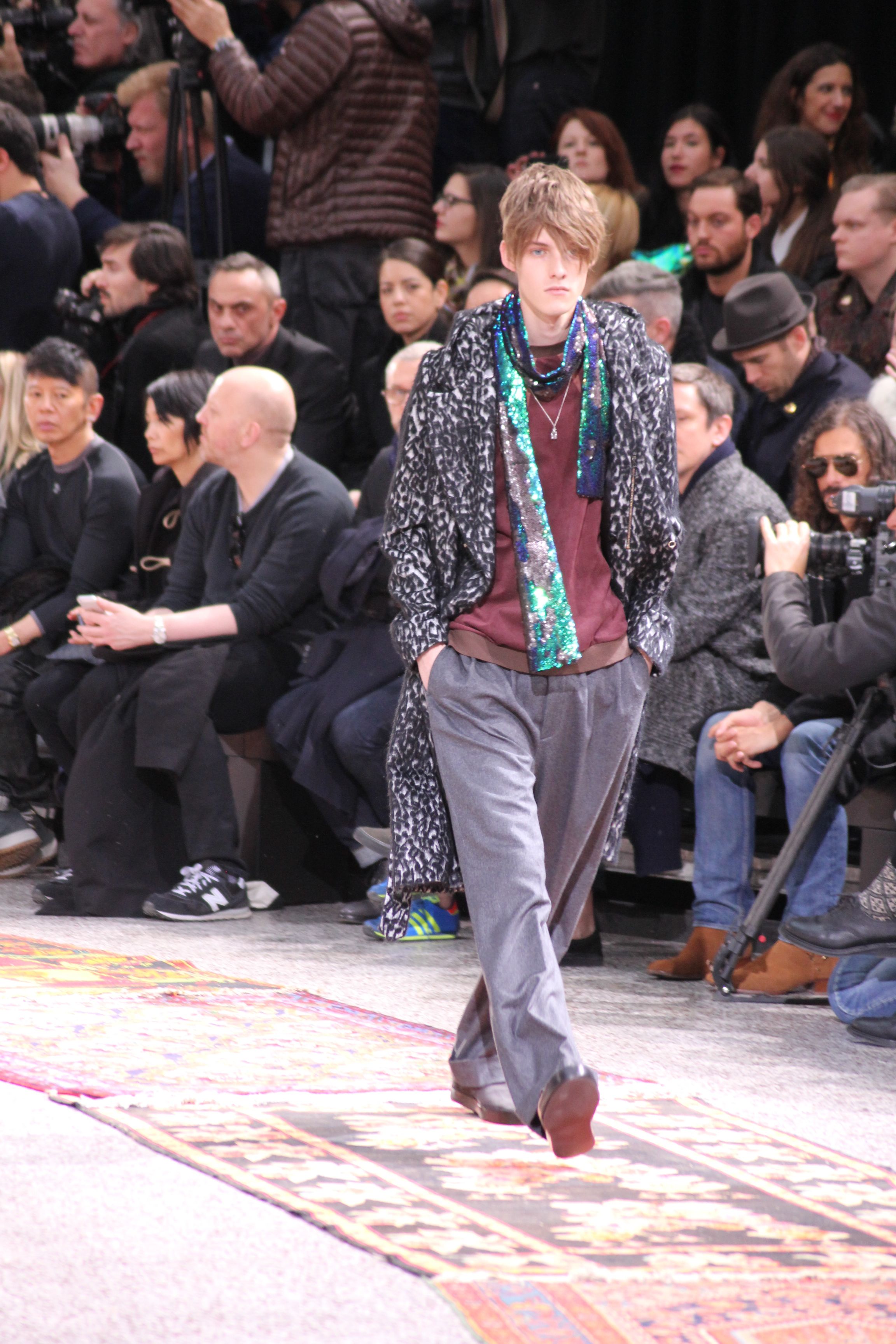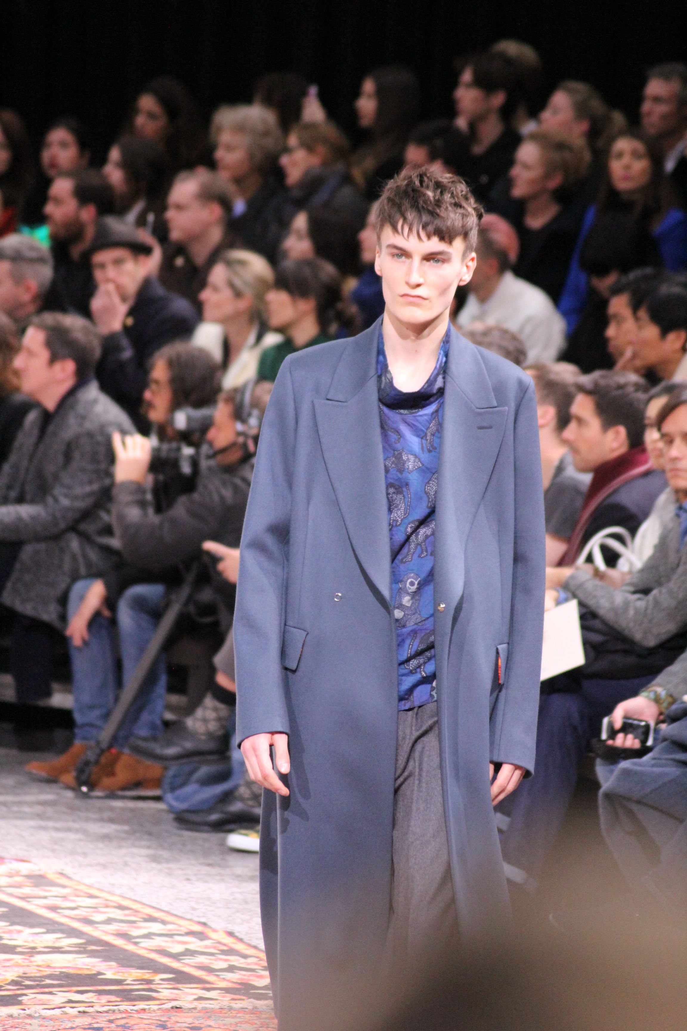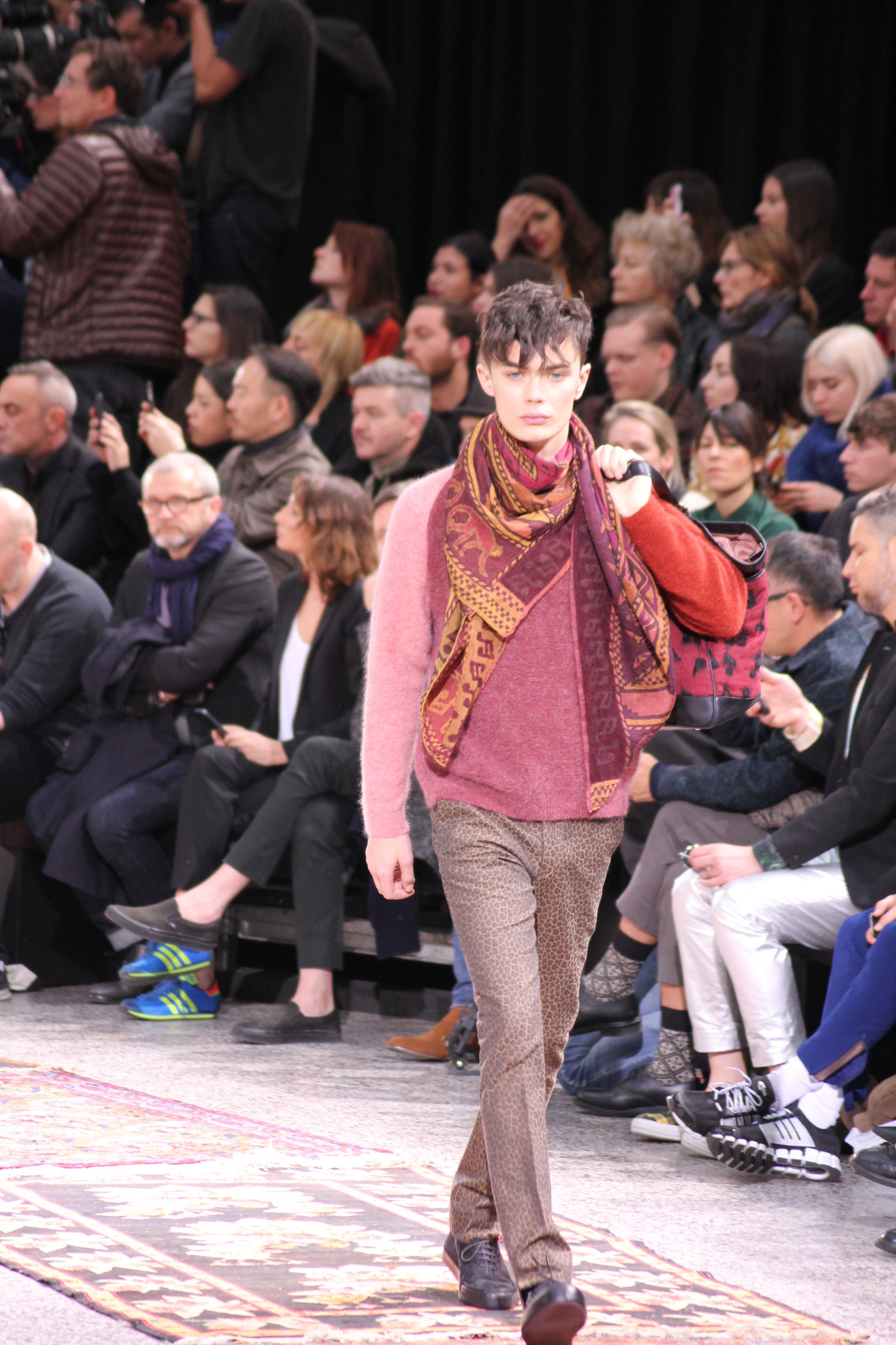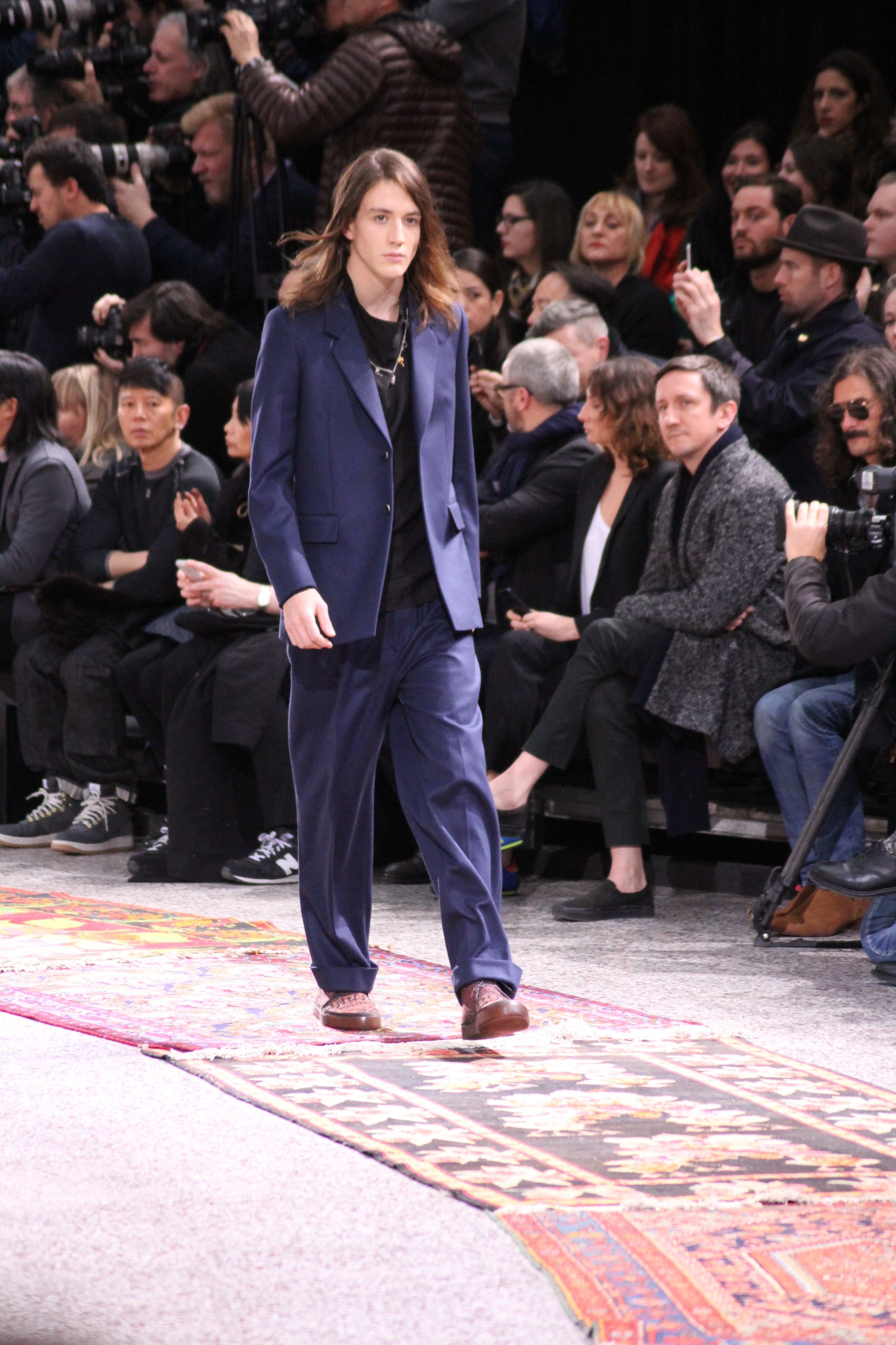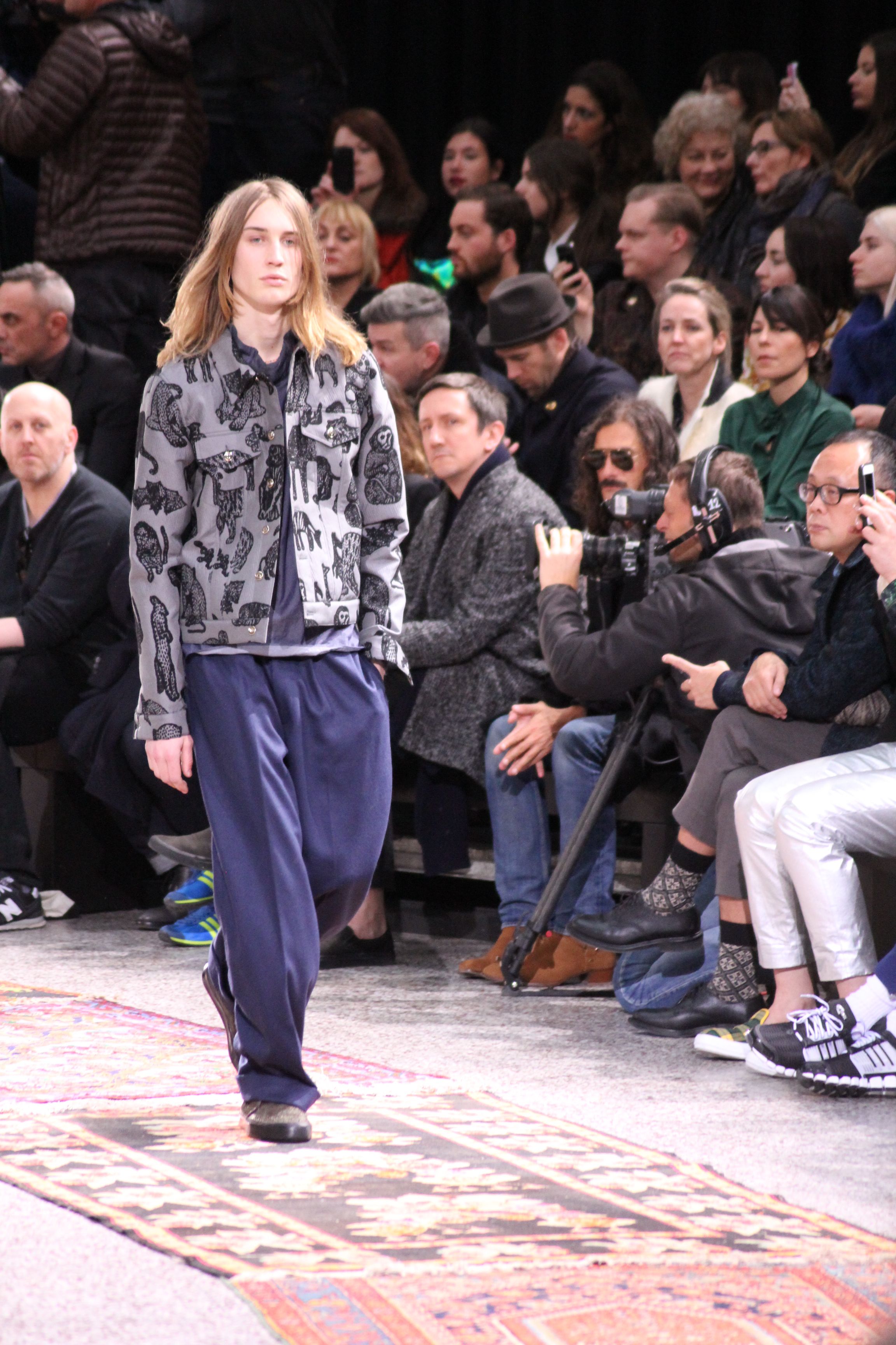 Paul Smith nous fait voyager au pays du rock et de psychédélique pour cette collection automne hiver 2014-2015. On y croise les fantômes de Jim Morrison, les bouffées de hashish, de la folie de woodstock et les champignons hallucinogène.