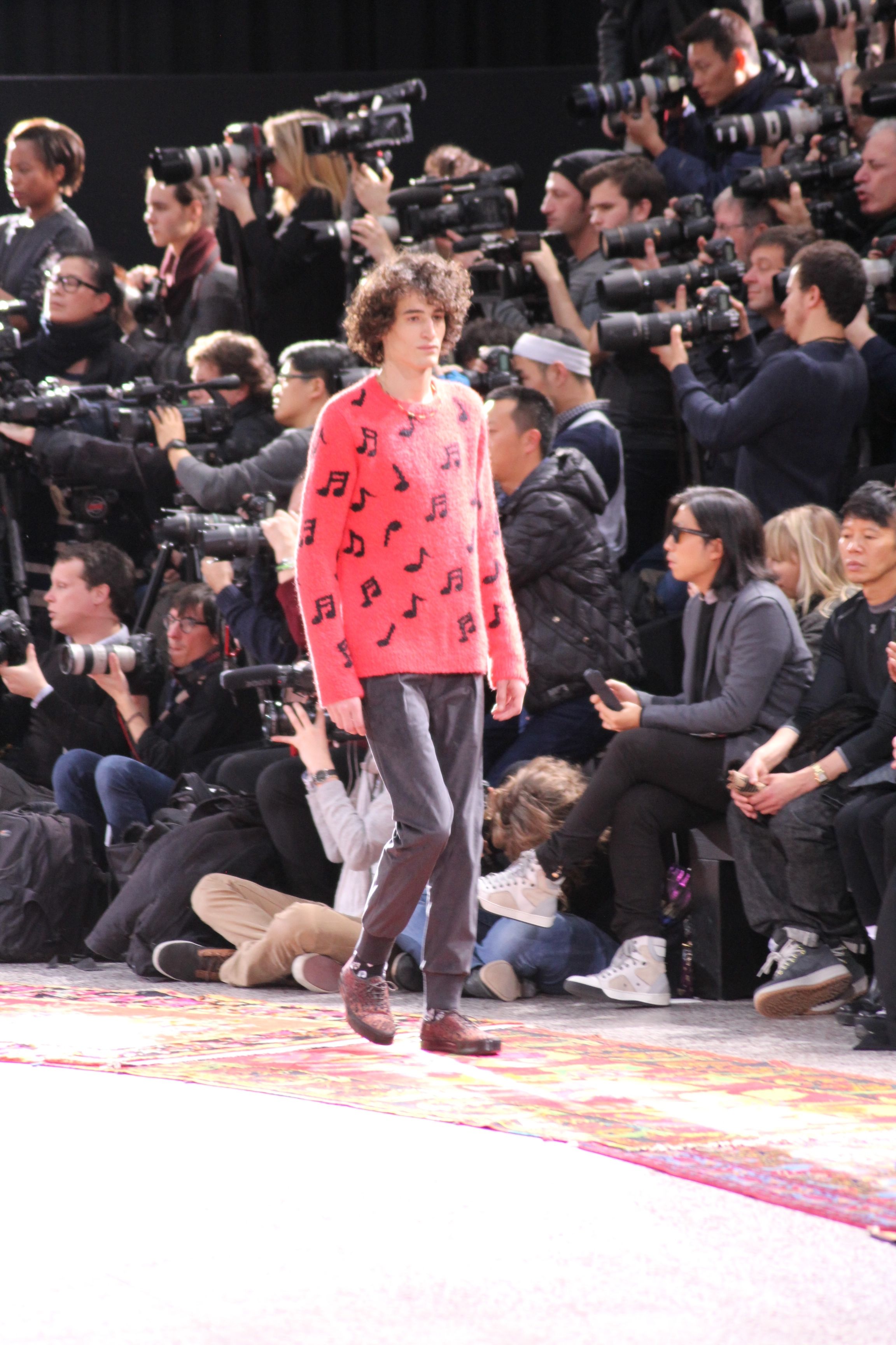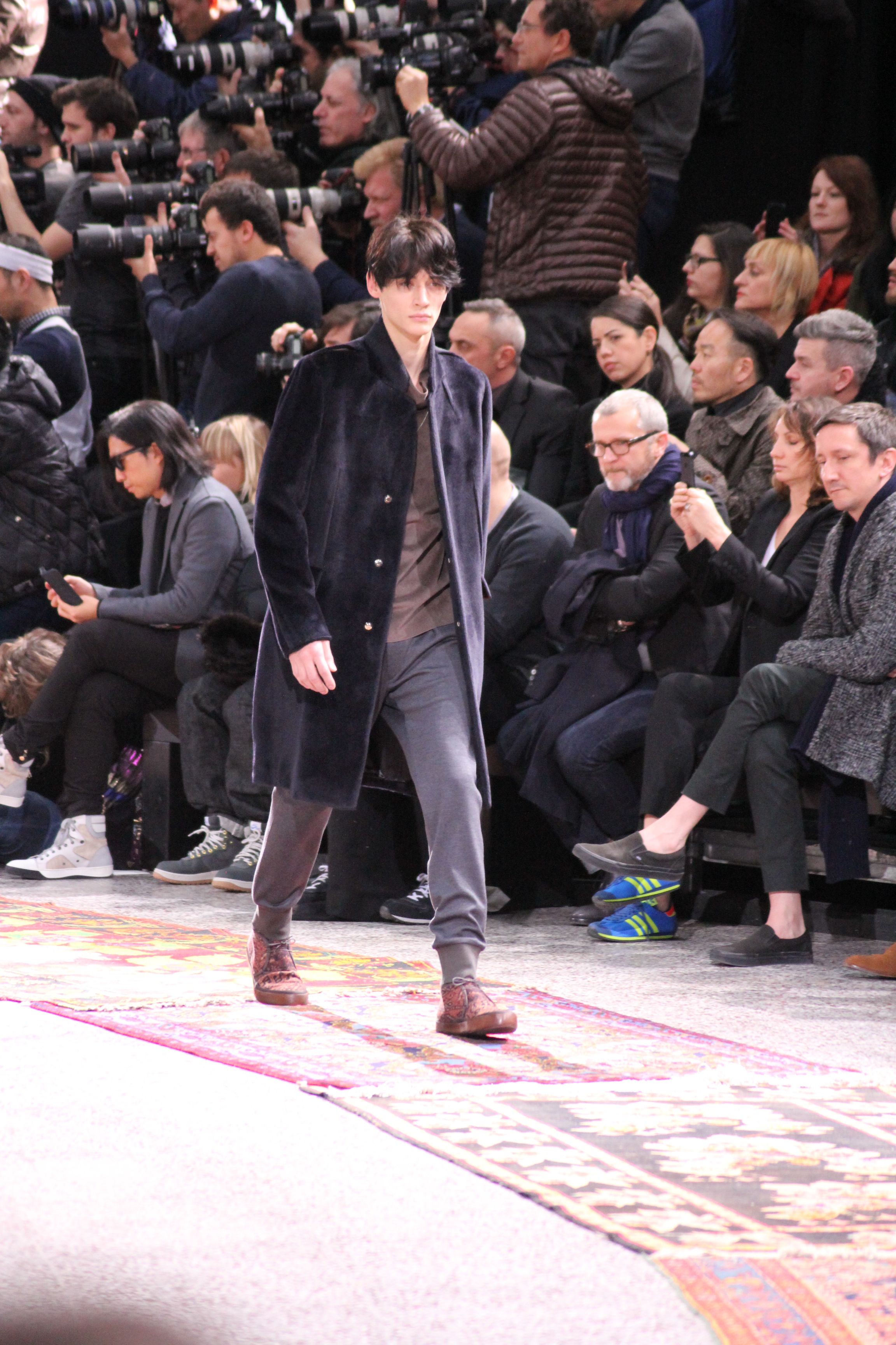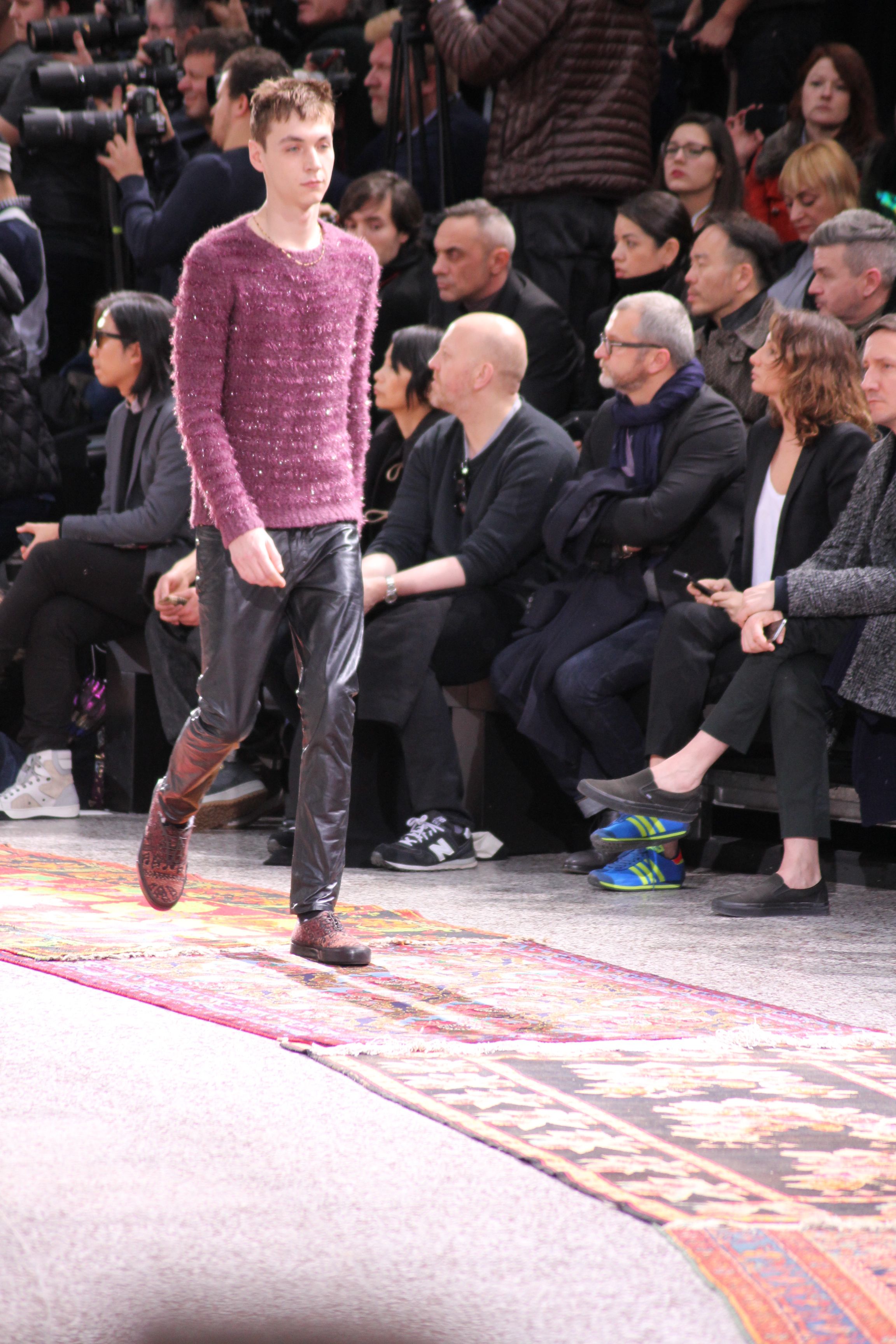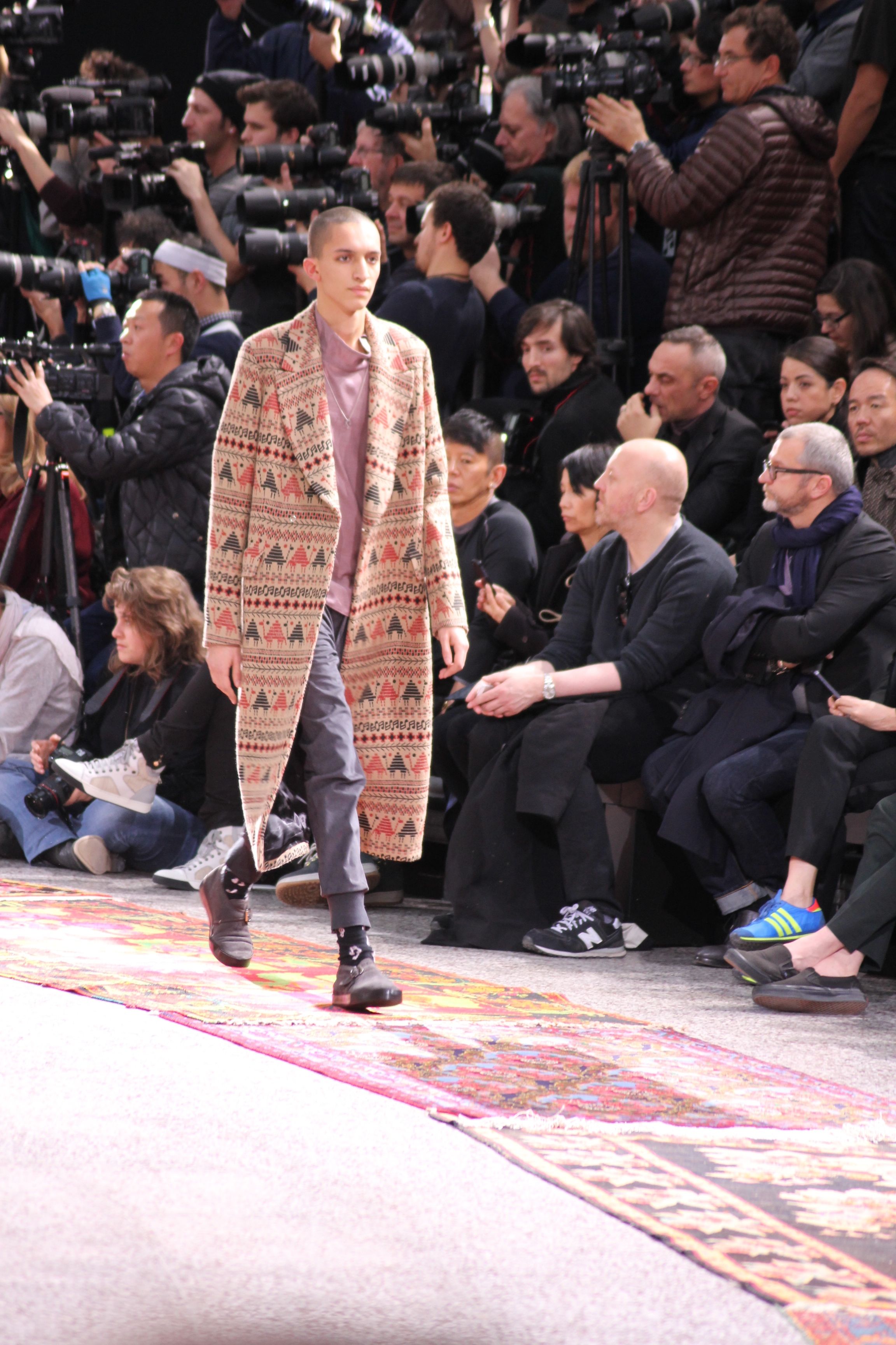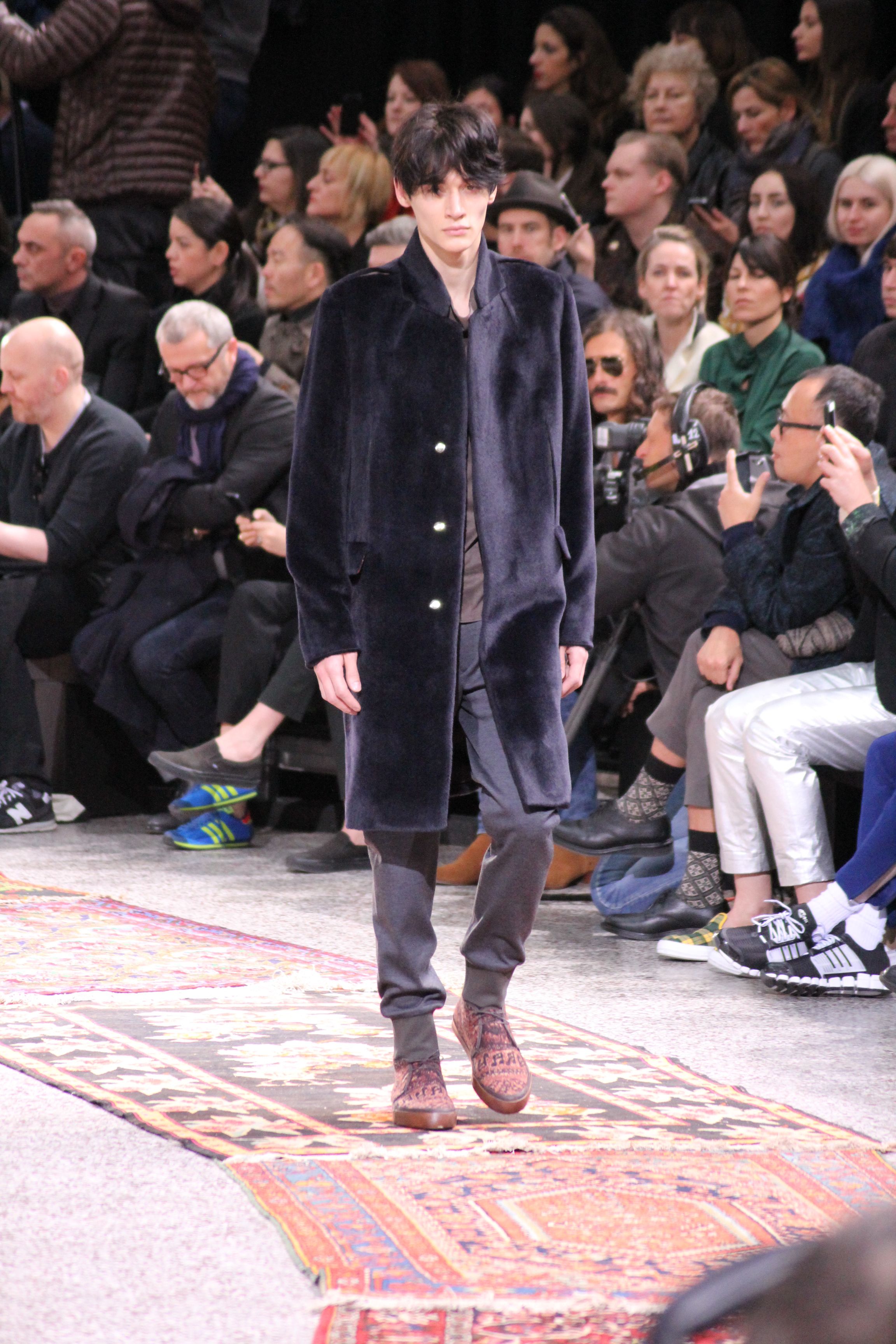 Paul Smith nous fait voyager au pays du rock et de psychédélique pour cette collection automne hiver 2014-2015. On y croise les fantômes de Jim Morrison, les bouffées de hashish, de la folie de woodstock et les champignons hallucinogène.