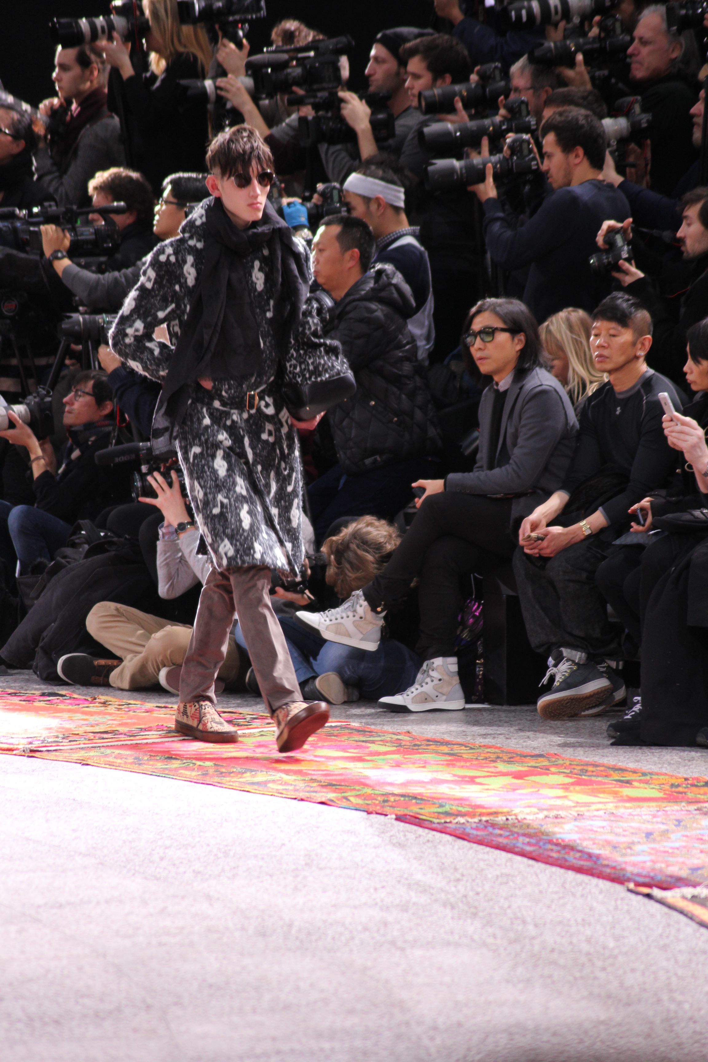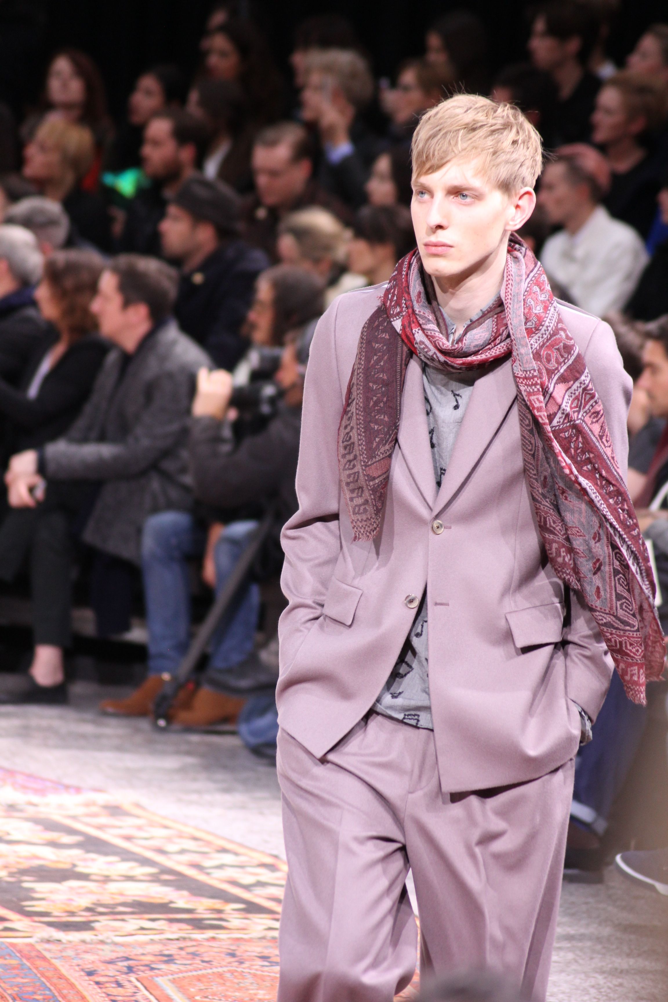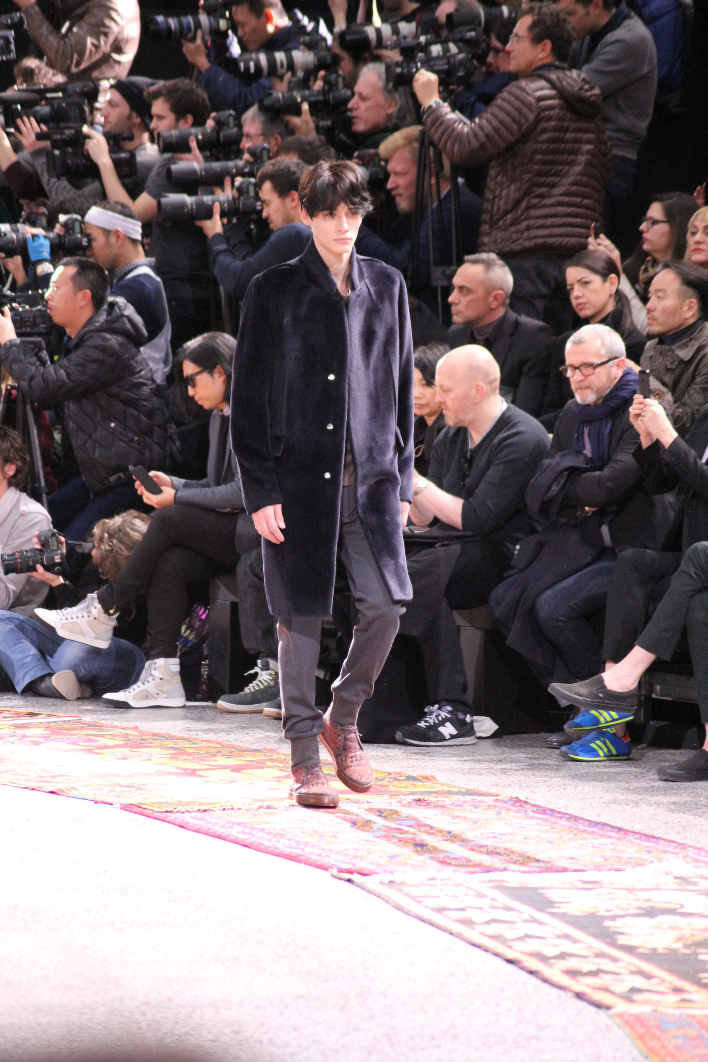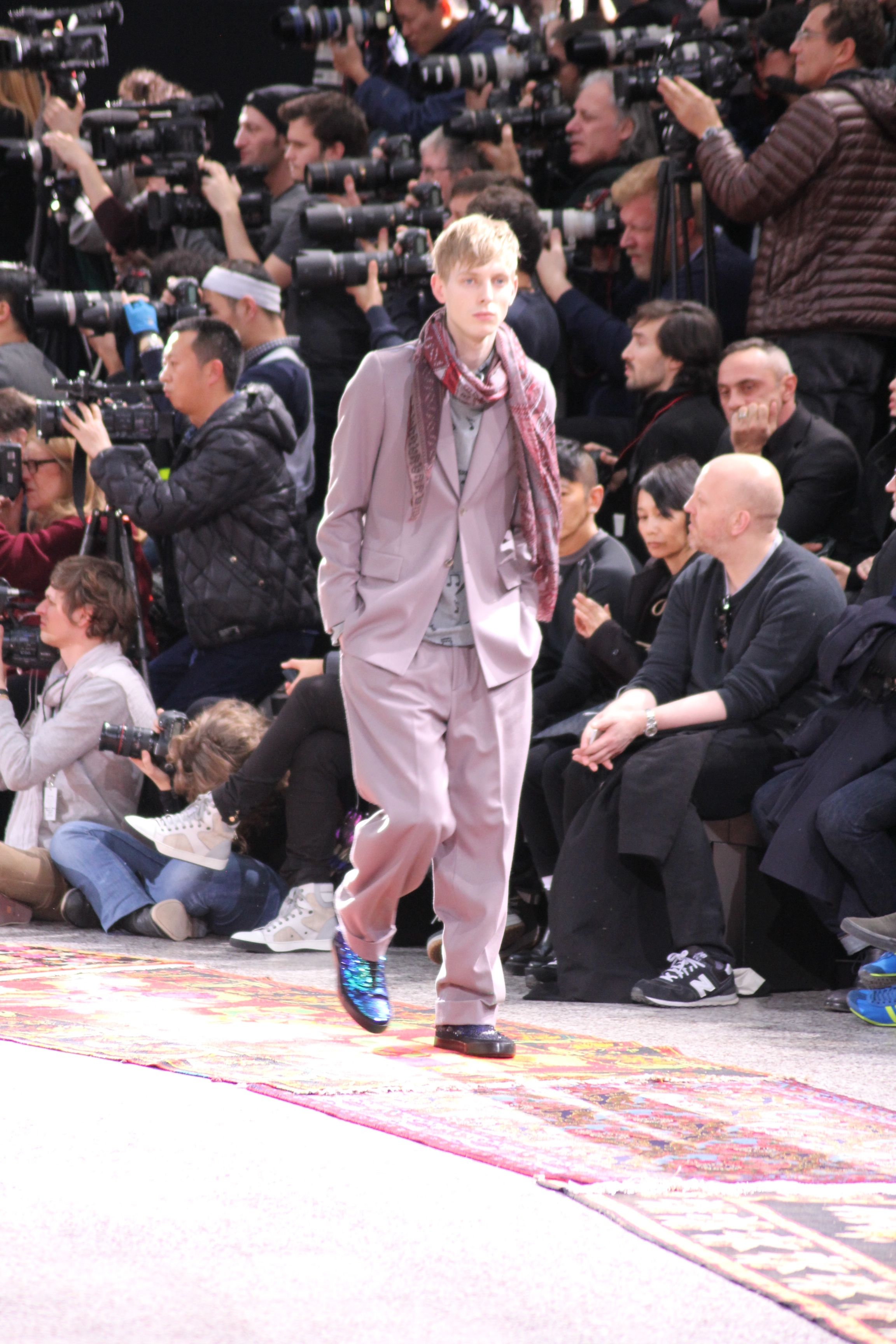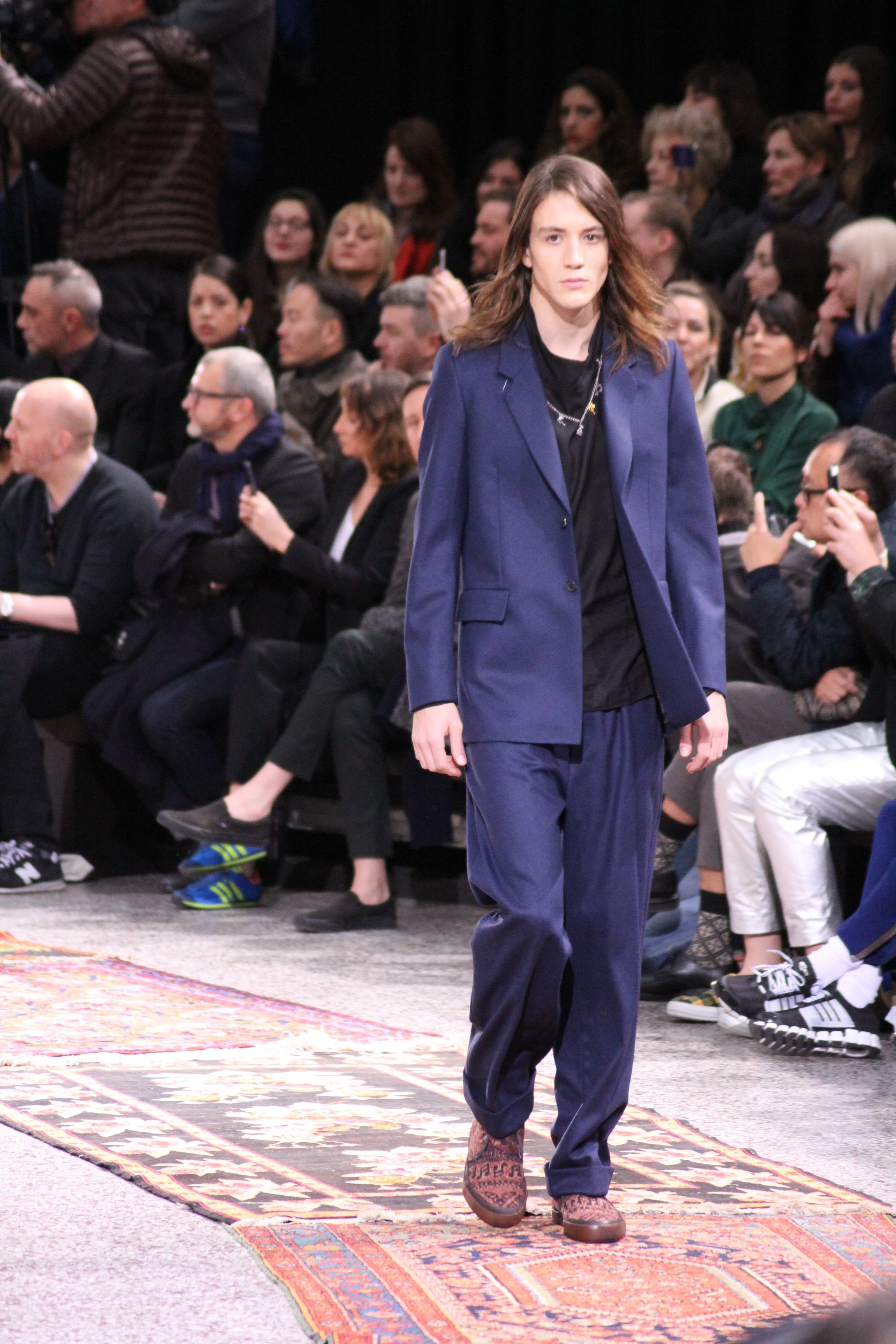 Paul Smith nous fait voyager au pays du rock et de psychédélique pour cette collection automne hiver 2014-2015. On y croise les fantômes de Jim Morrison, les bouffées de hashish, de la folie de woodstock et les champignons hallucinogène.