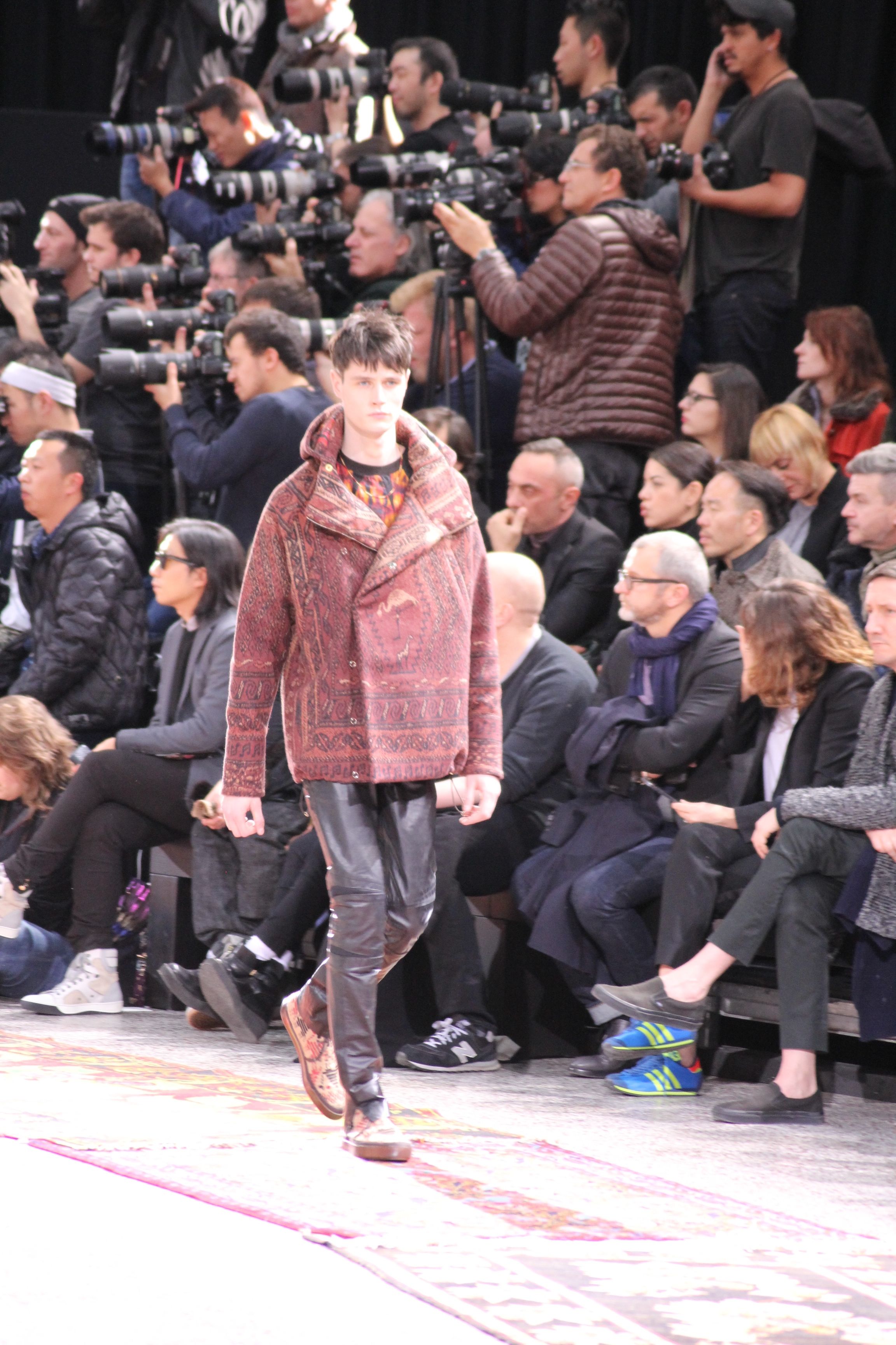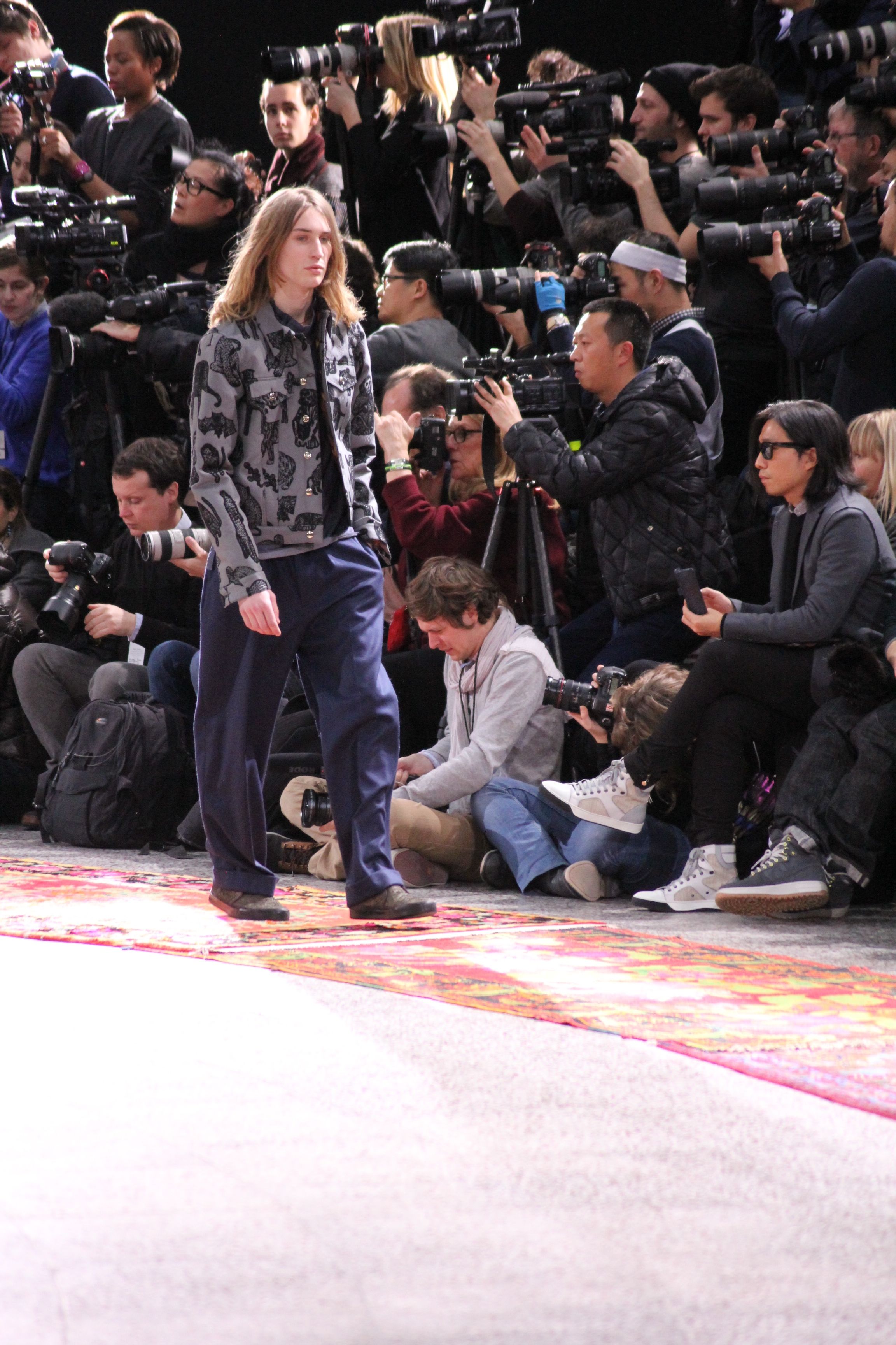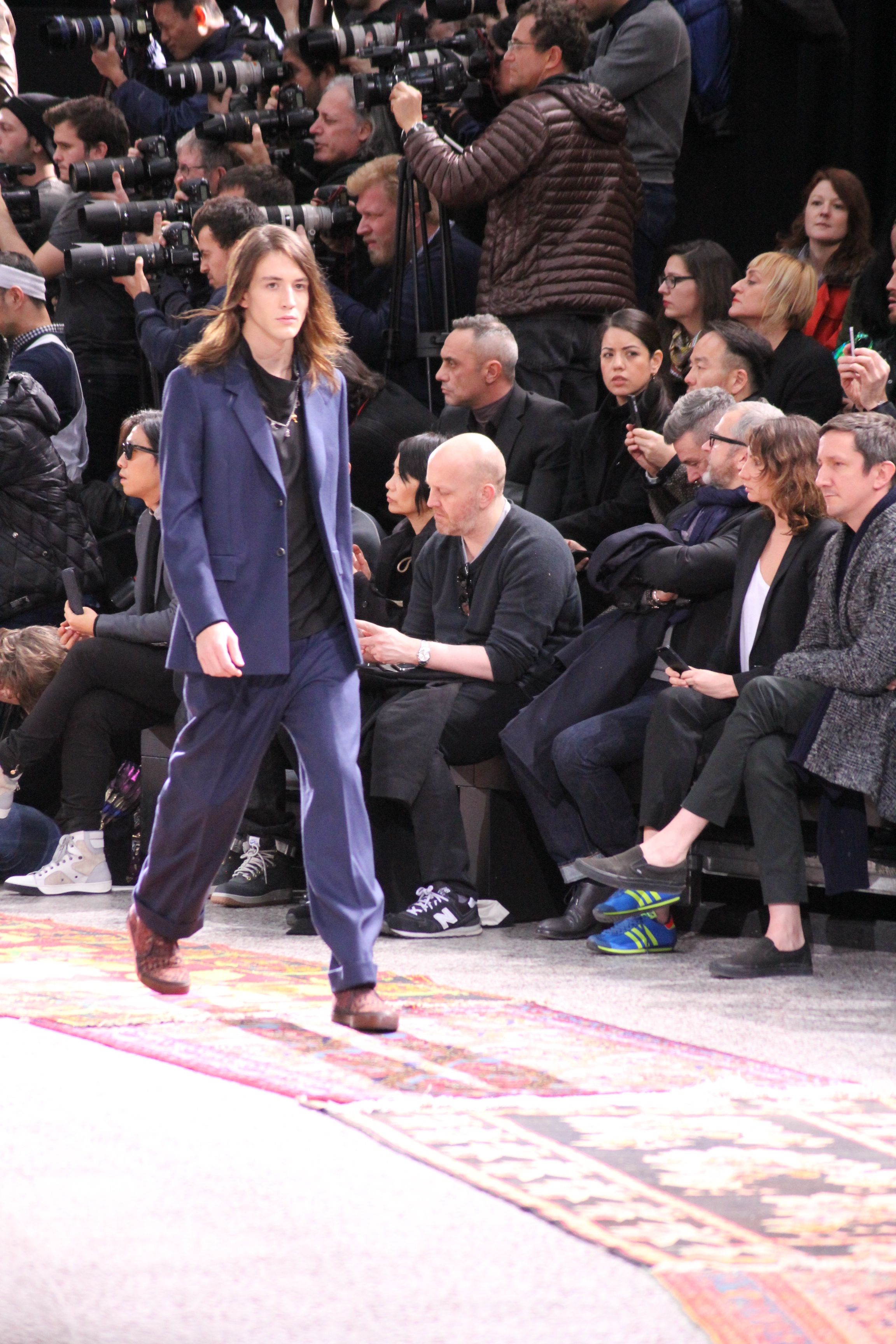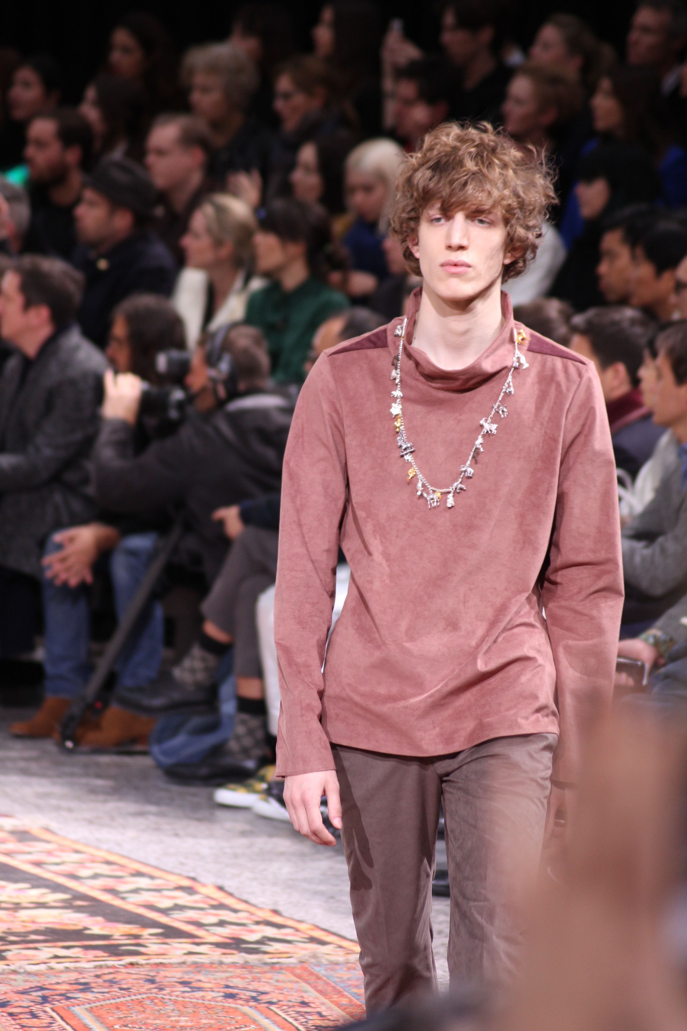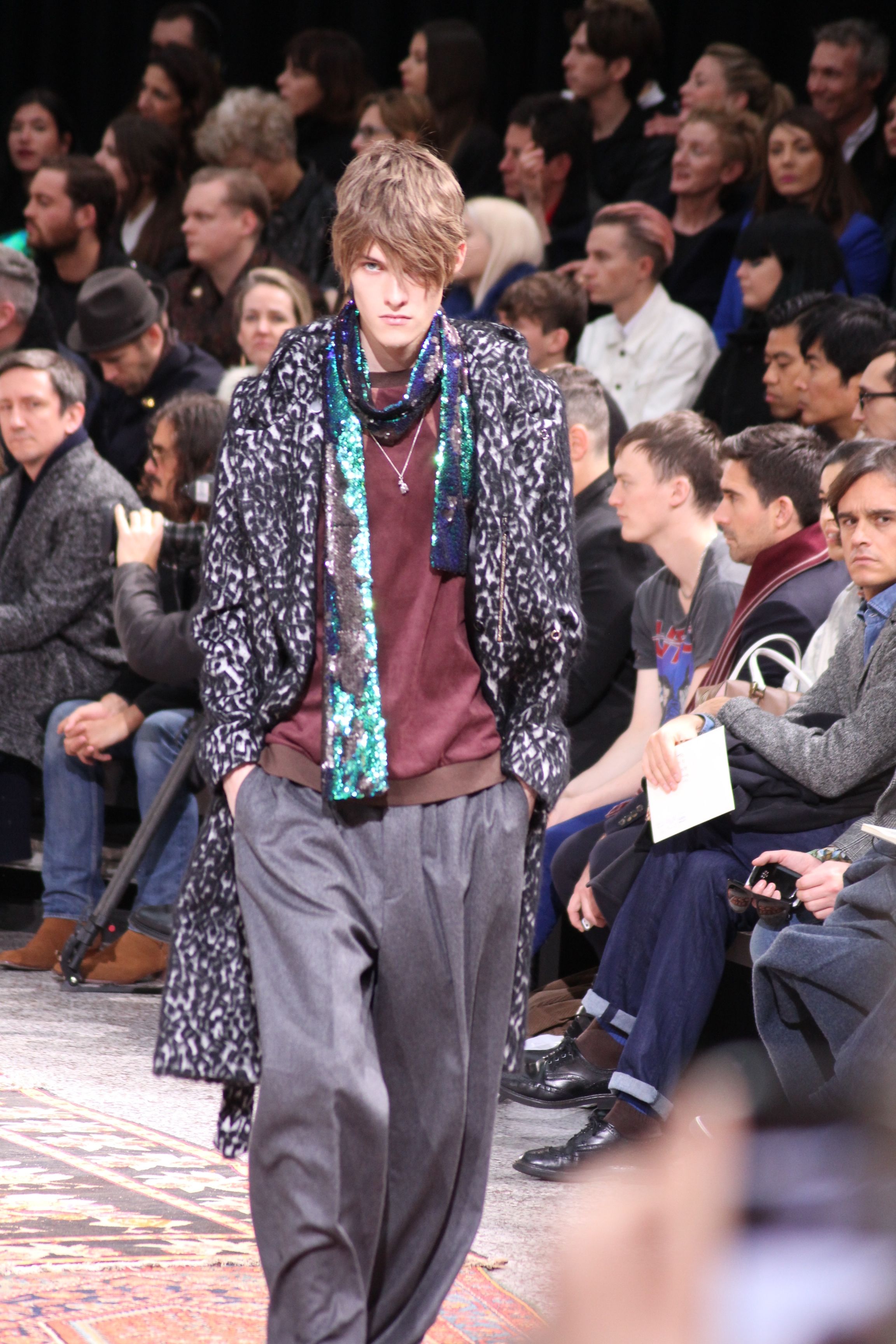 Paul Smith nous fait voyager au pays du rock et de psychédélique pour cette collection automne hiver 2014-2015. On y croise les fantômes de Jim Morrison, les bouffées de hashish, de la folie de woodstock et les champignons hallucinogène.