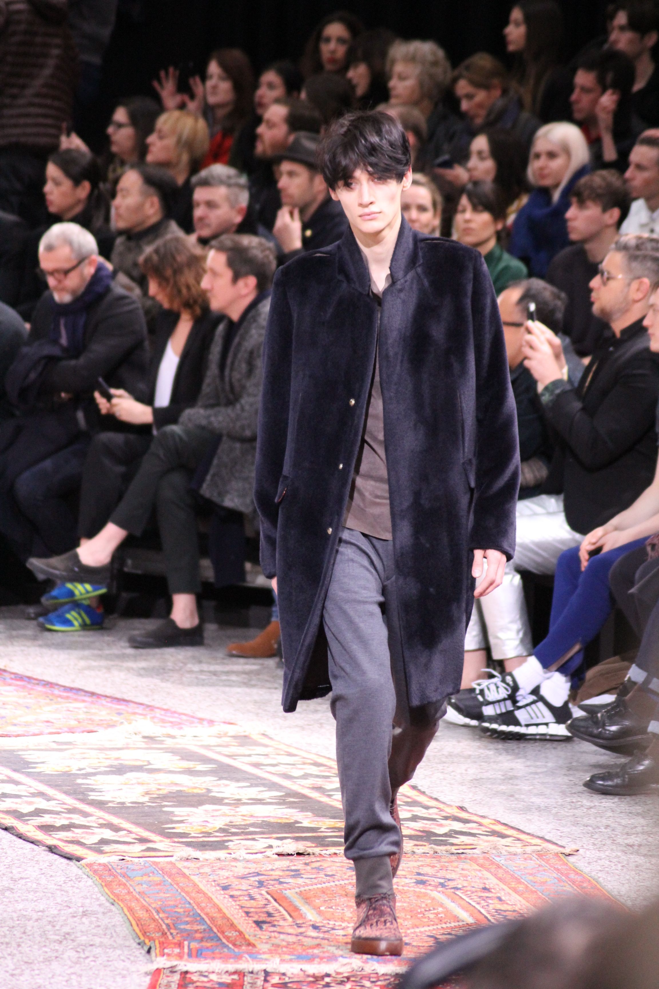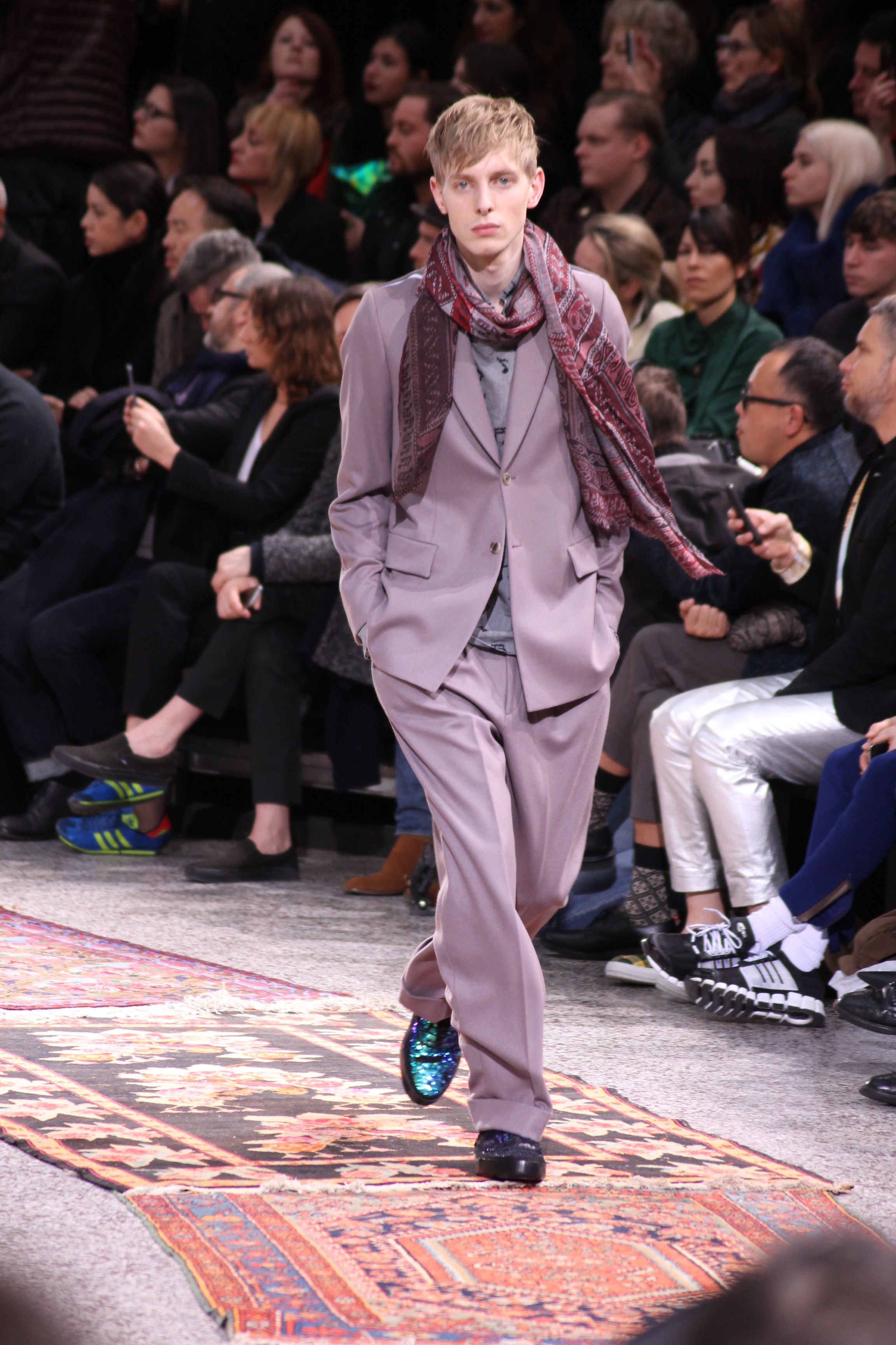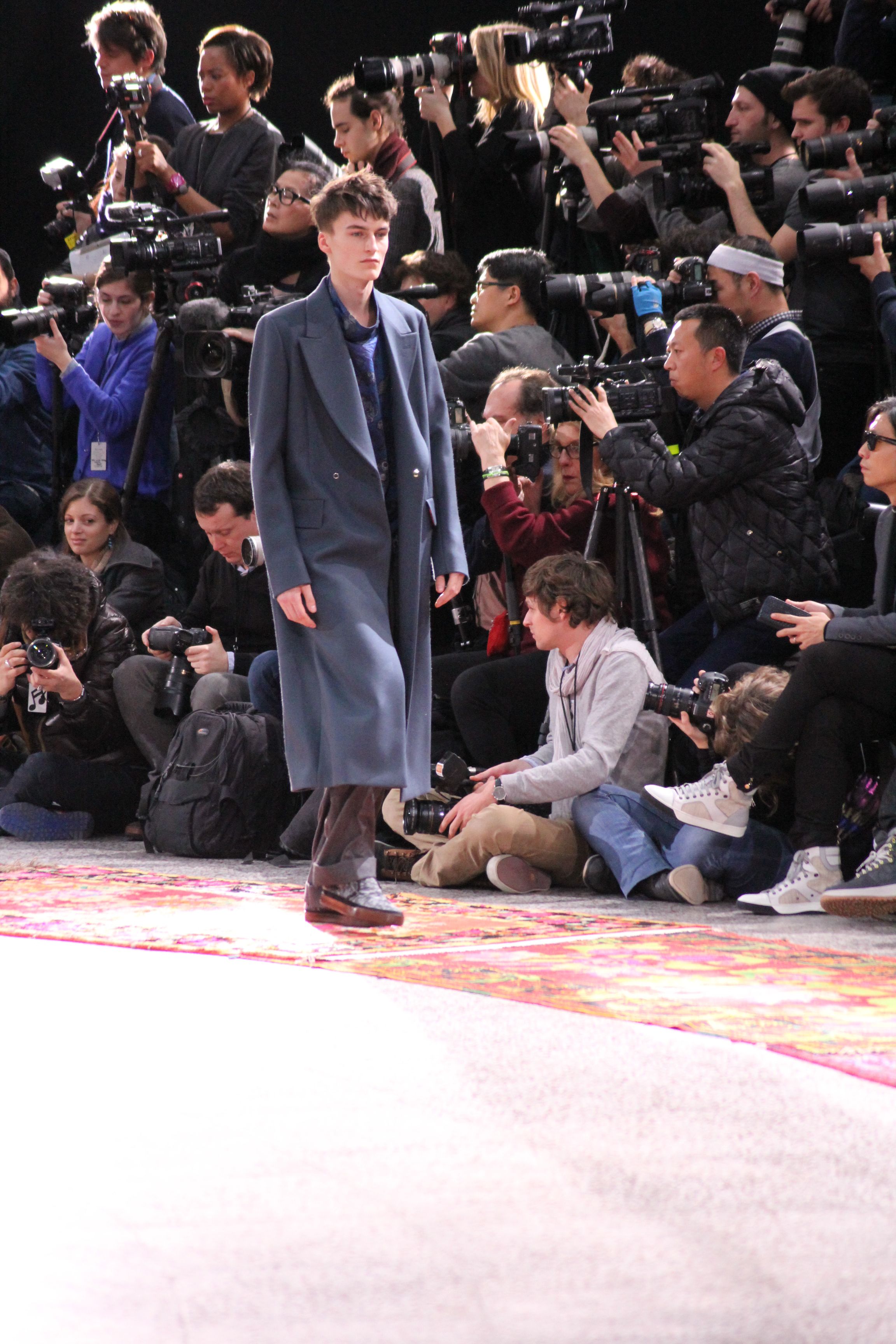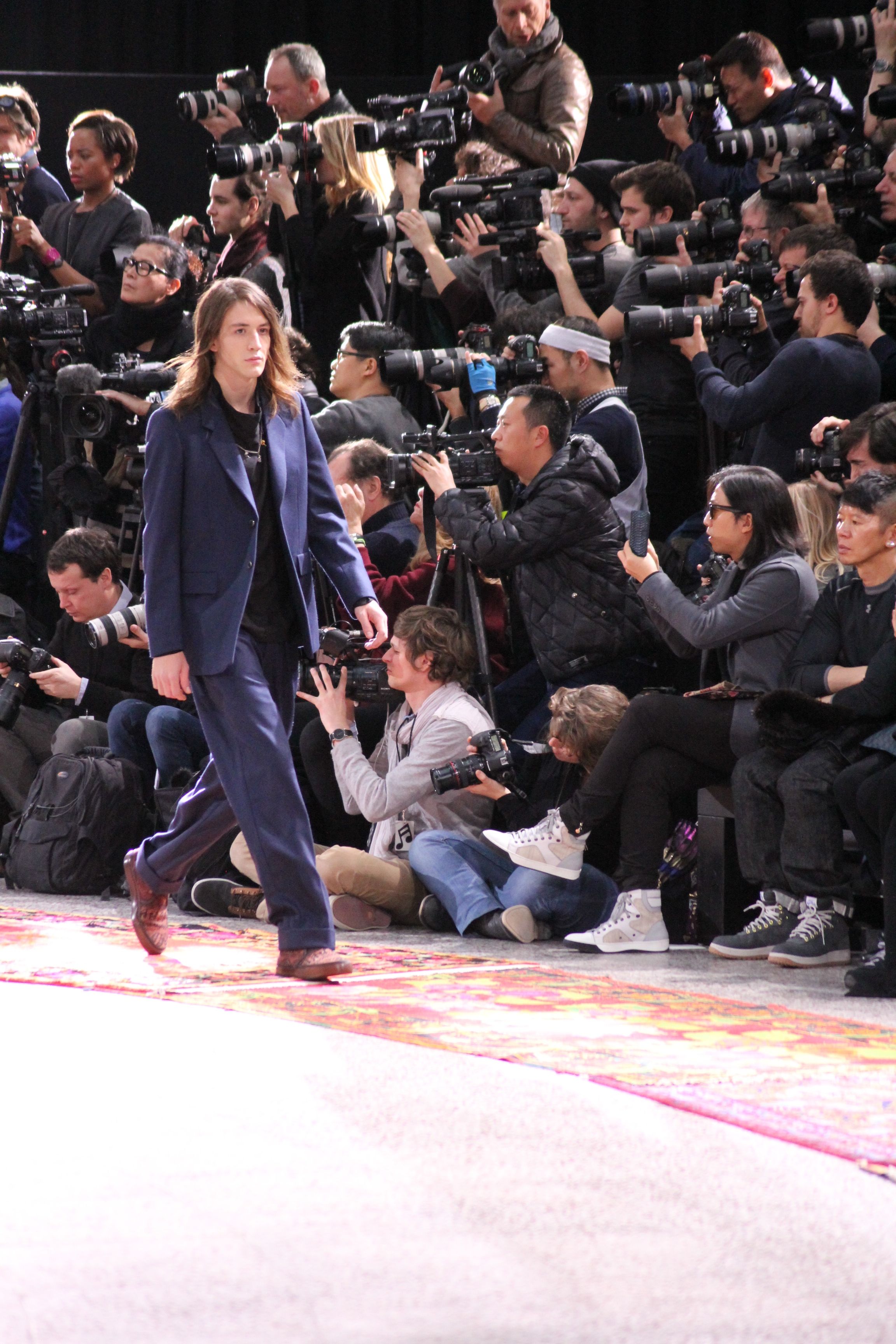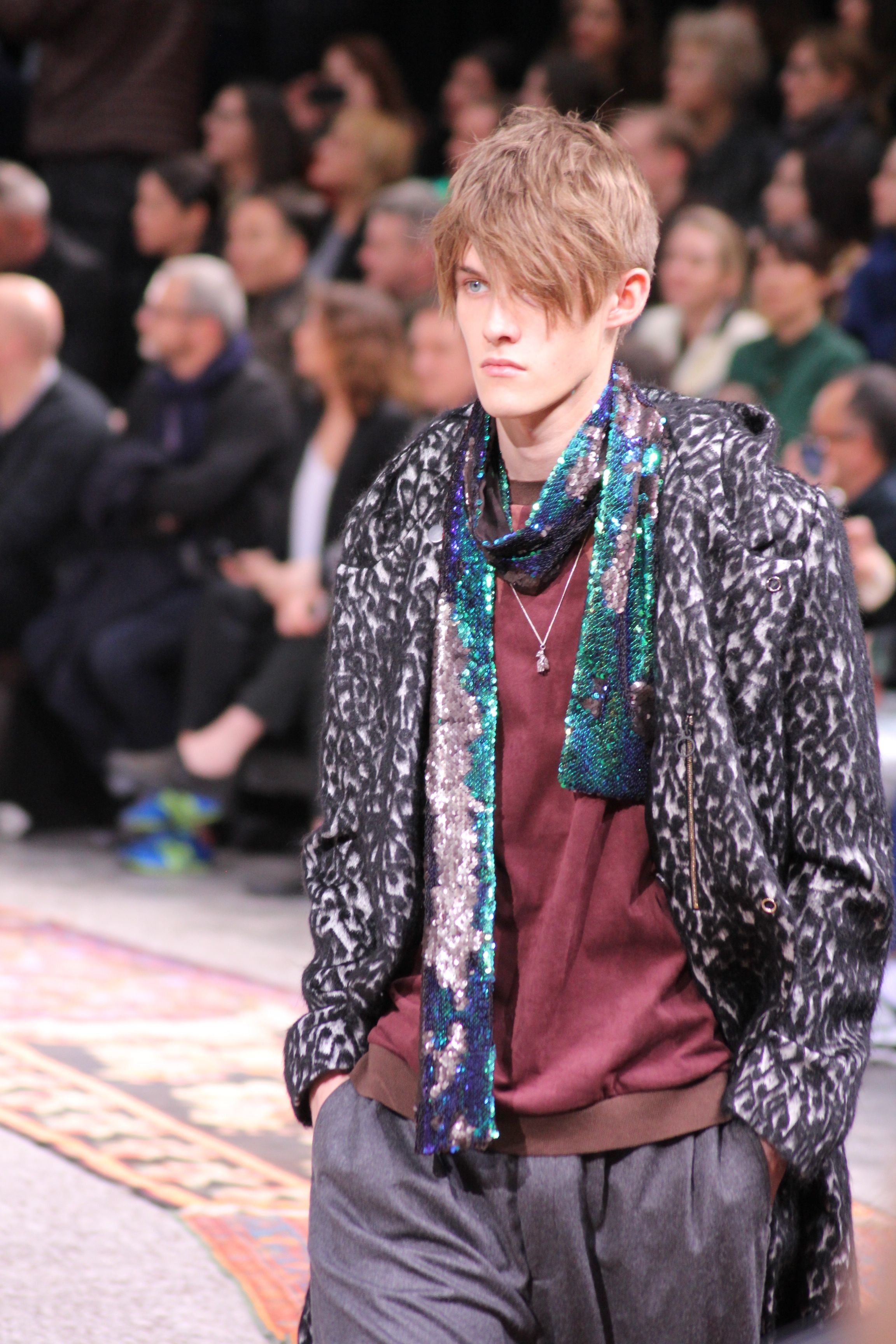 Paul Smith nous fait voyager au pays du rock et de psychédélique pour cette collection automne hiver 2014-2015. On y croise les fantômes de Jim Morrison, les bouffées de hashish, de la folie de woodstock et les champignons hallucinogène.