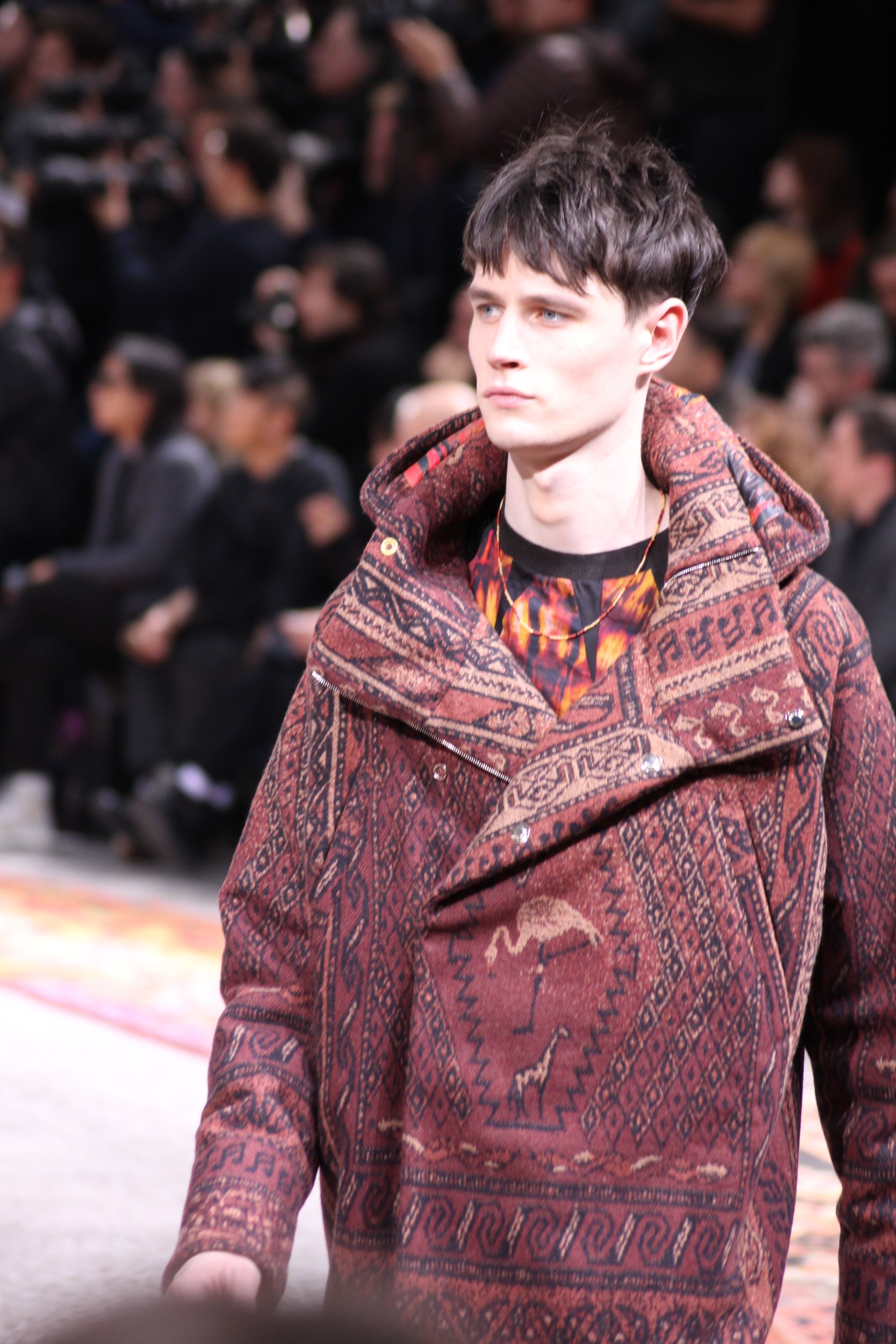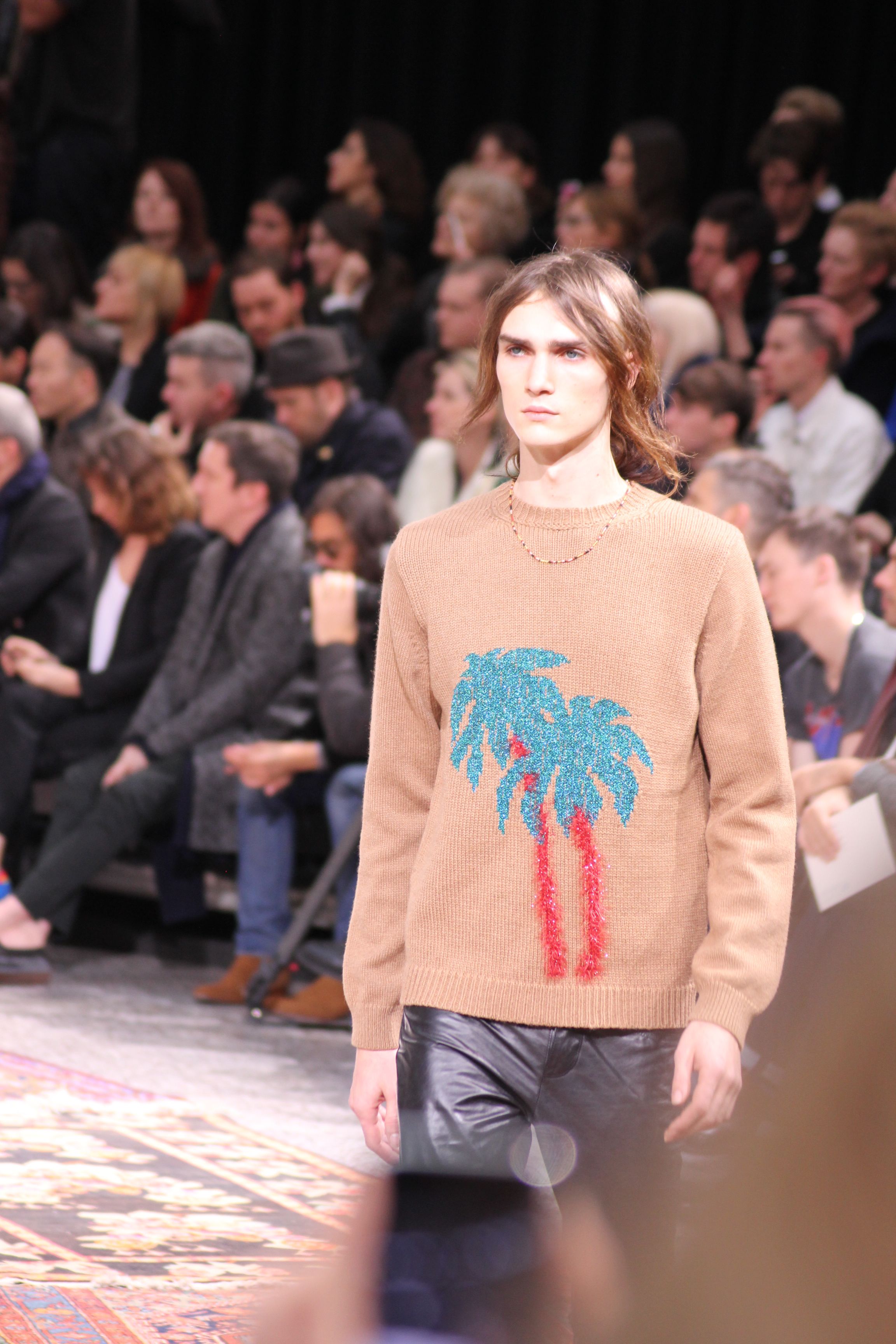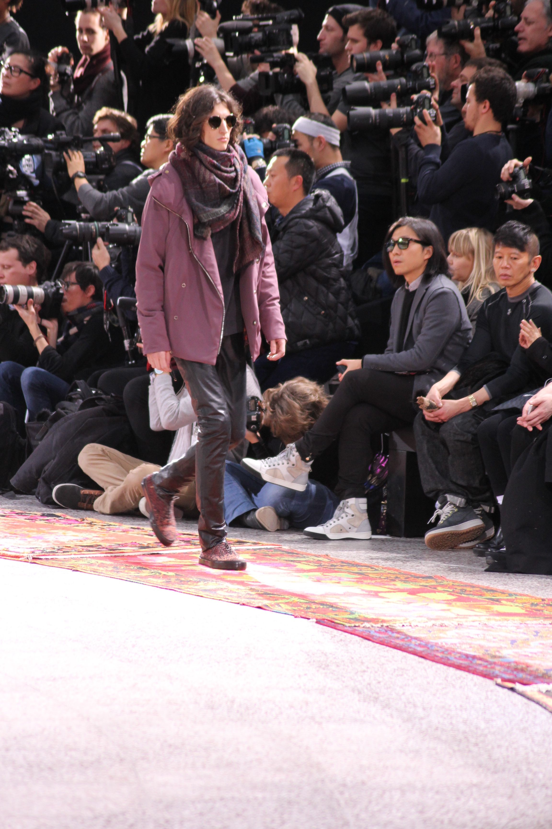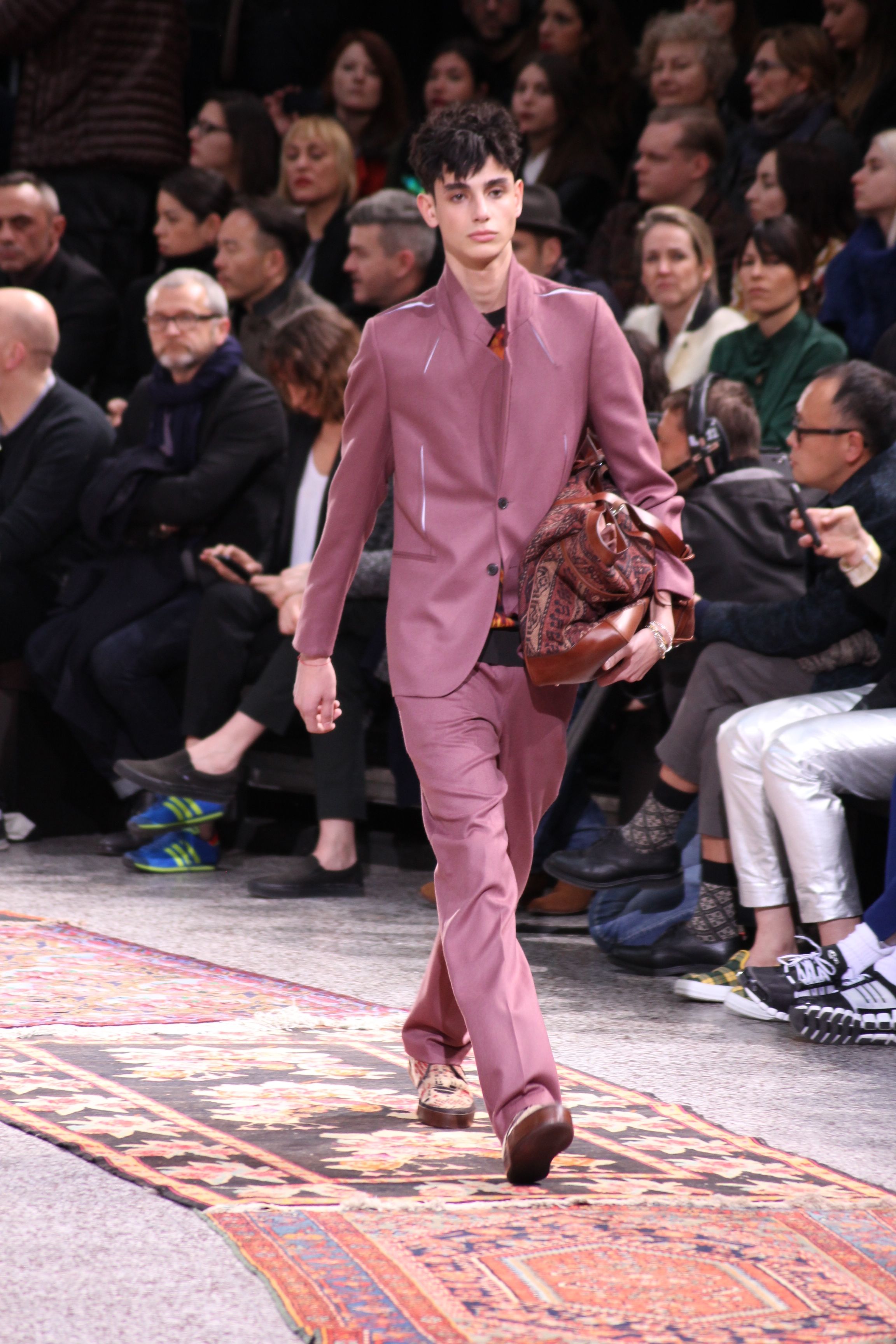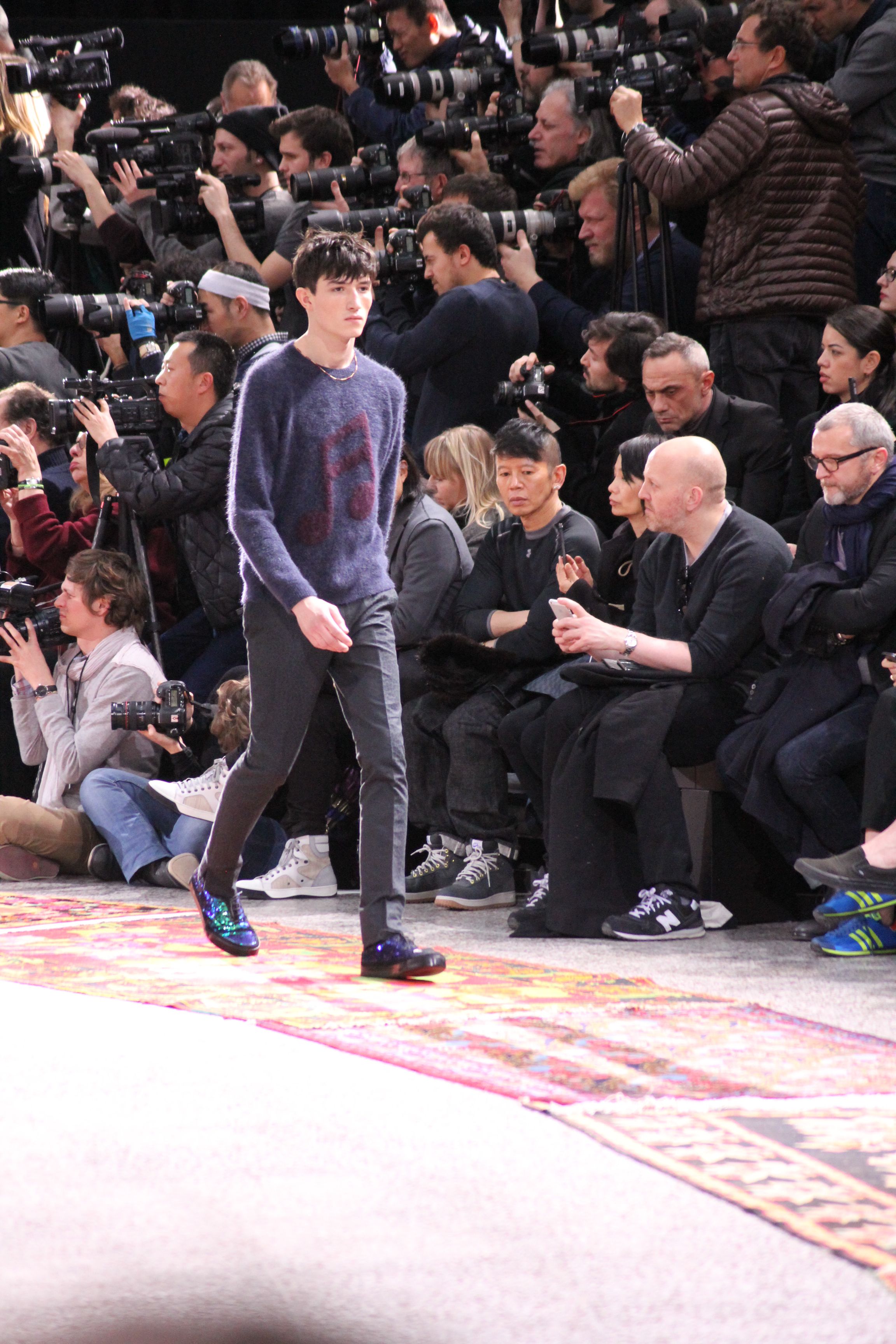 Paul Smith nous fait voyager au pays du rock et de psychédélique pour cette collection automne hiver 2014-2015. On y croise les fantômes de Jim Morrison, les bouffées de hashish, de la folie de woodstock et les champignons hallucinogène.