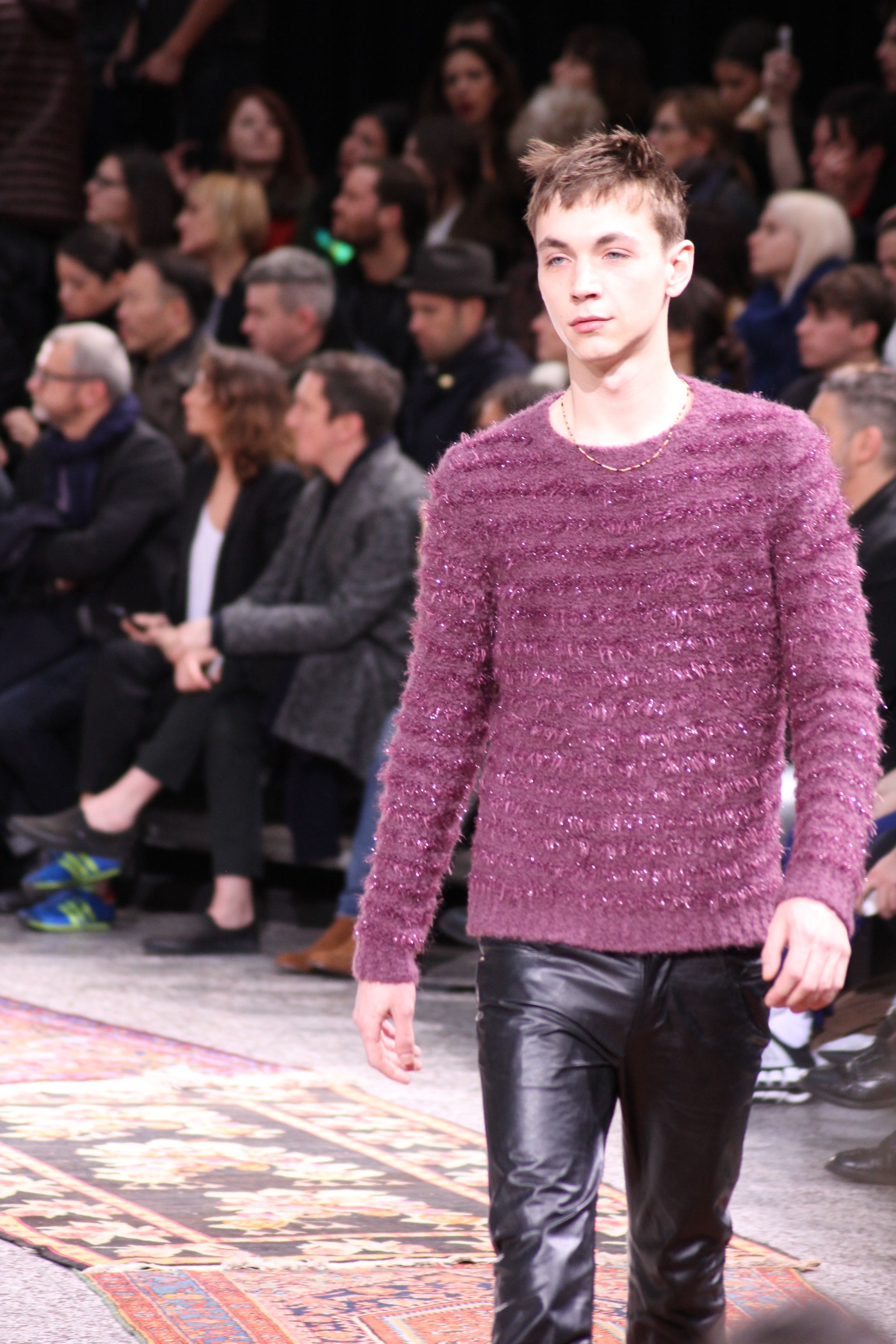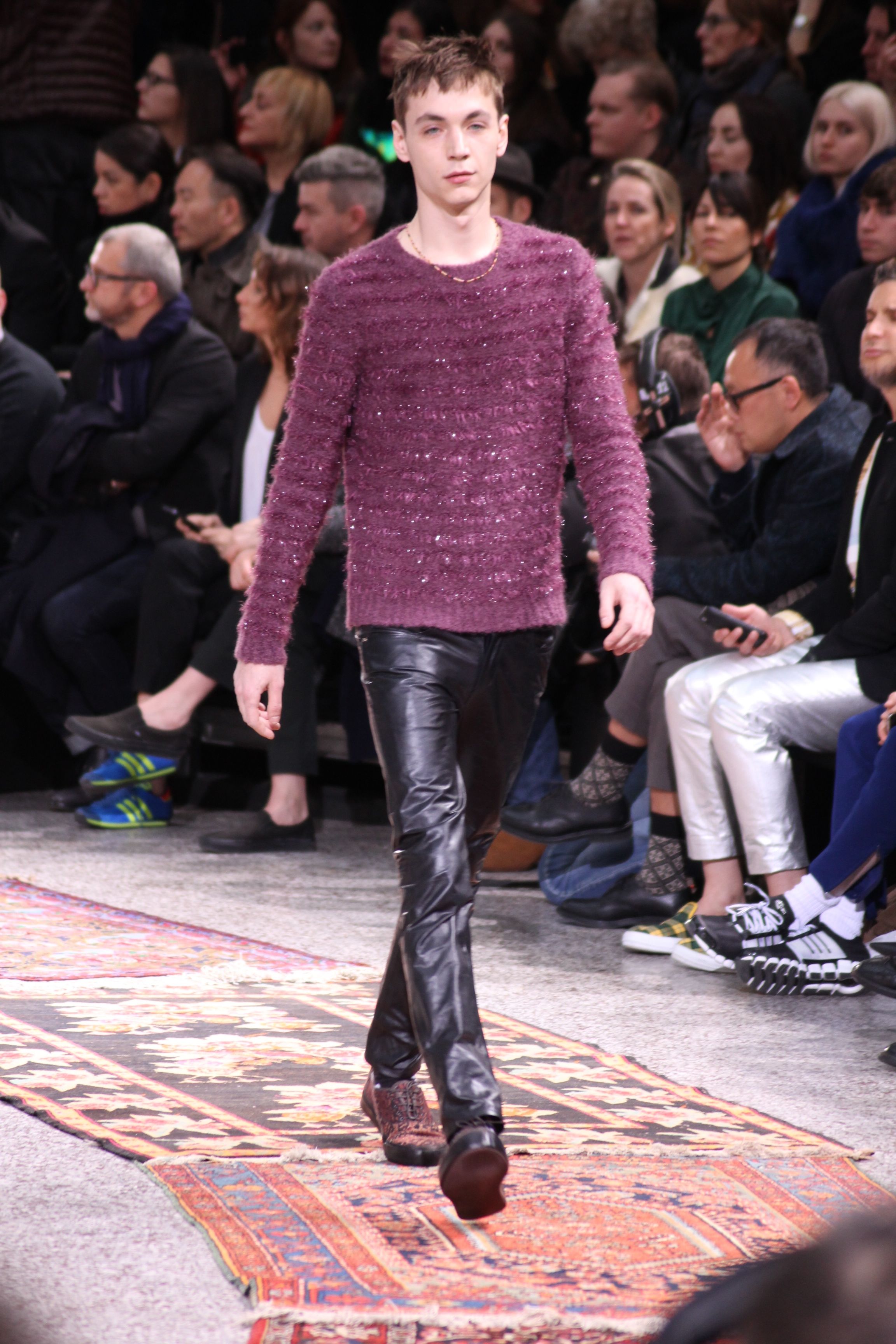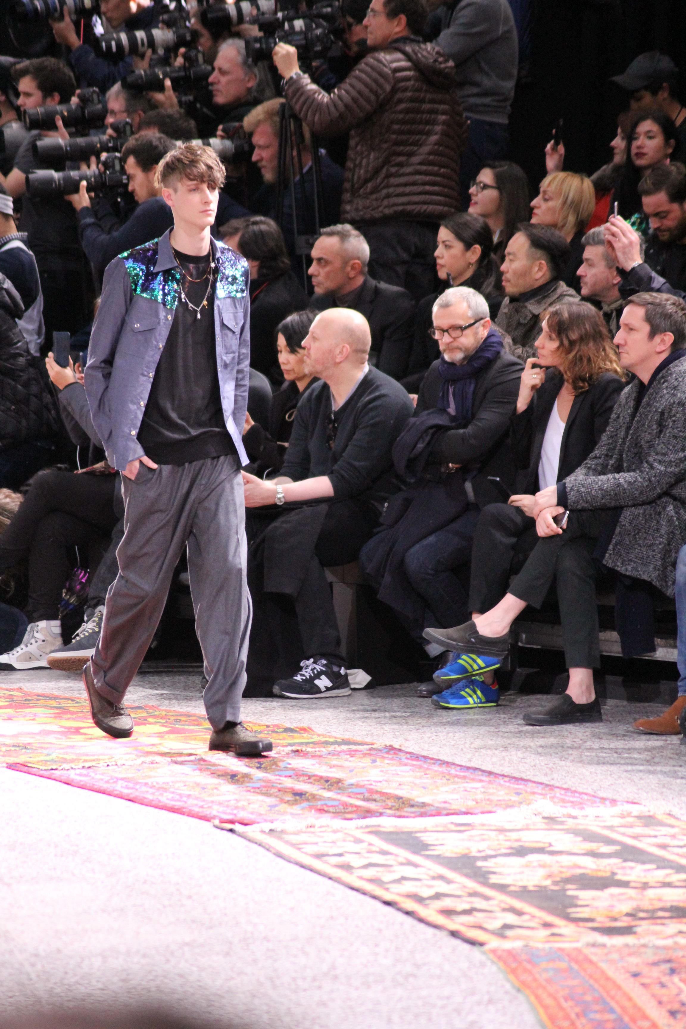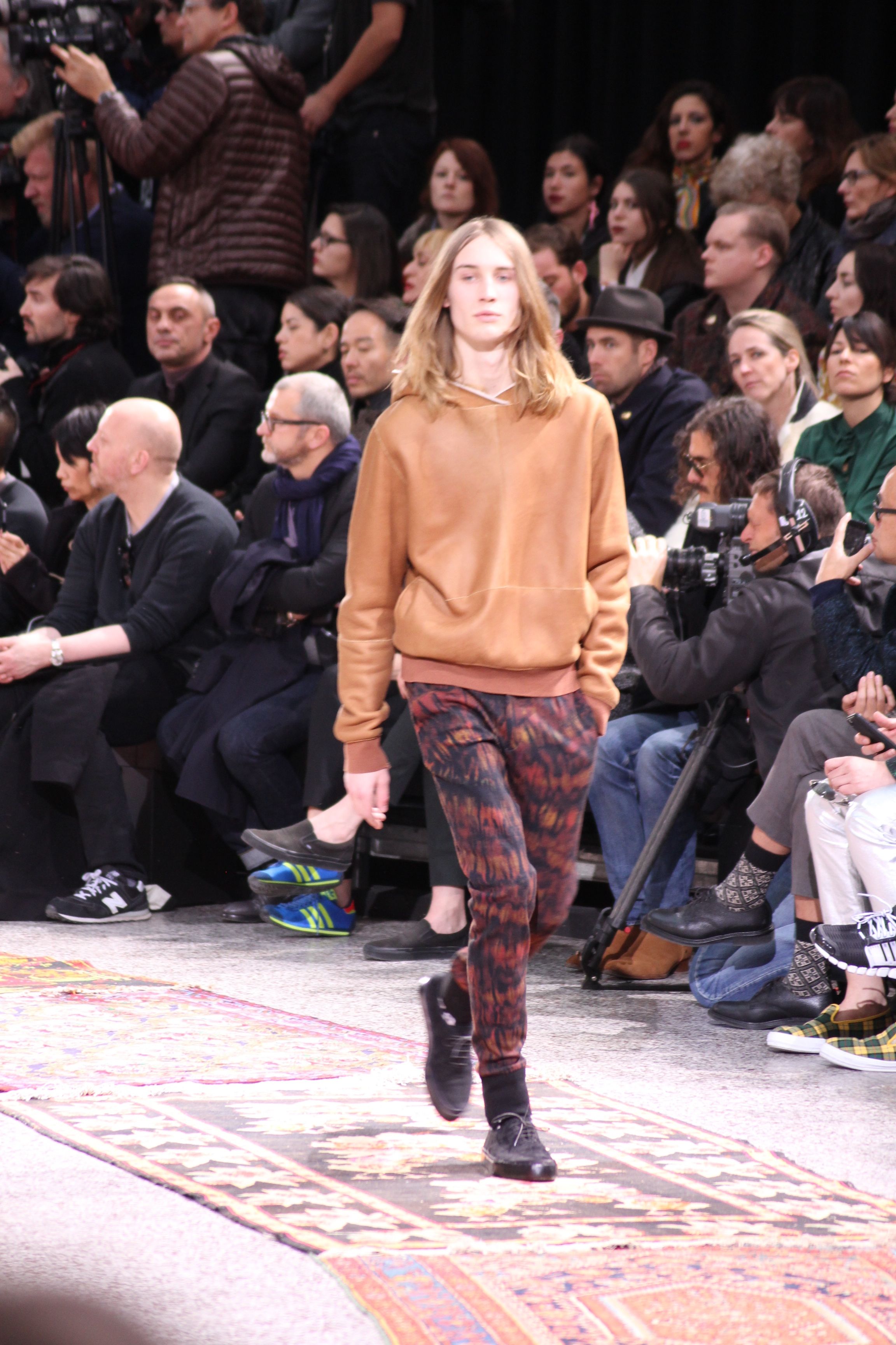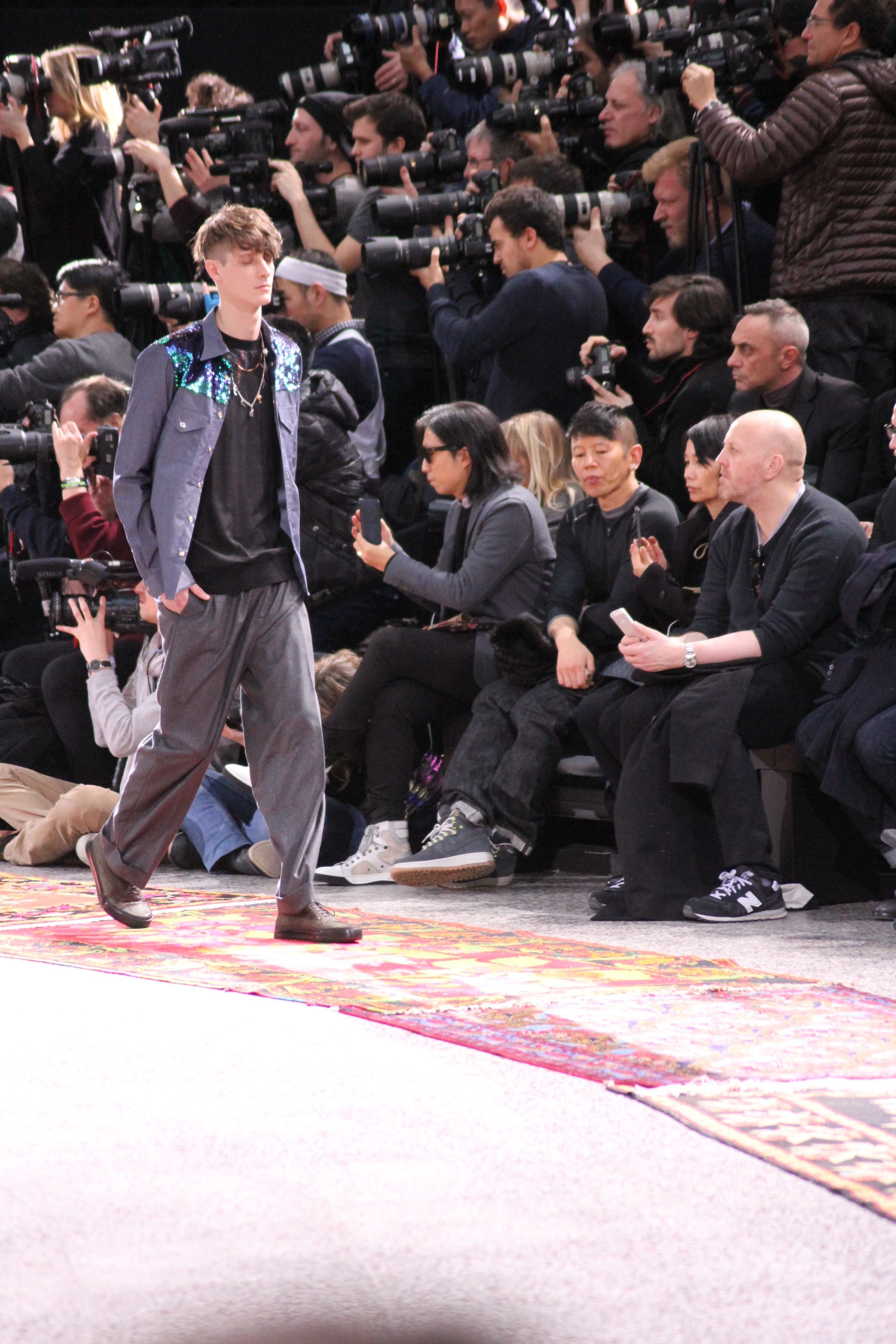 Paul Smith nous fait voyager au pays du rock et de psychédélique pour cette collection automne hiver 2014-2015. On y croise les fantômes de Jim Morrison, les bouffées de hashish, de la folie de woodstock et les champignons hallucinogène.