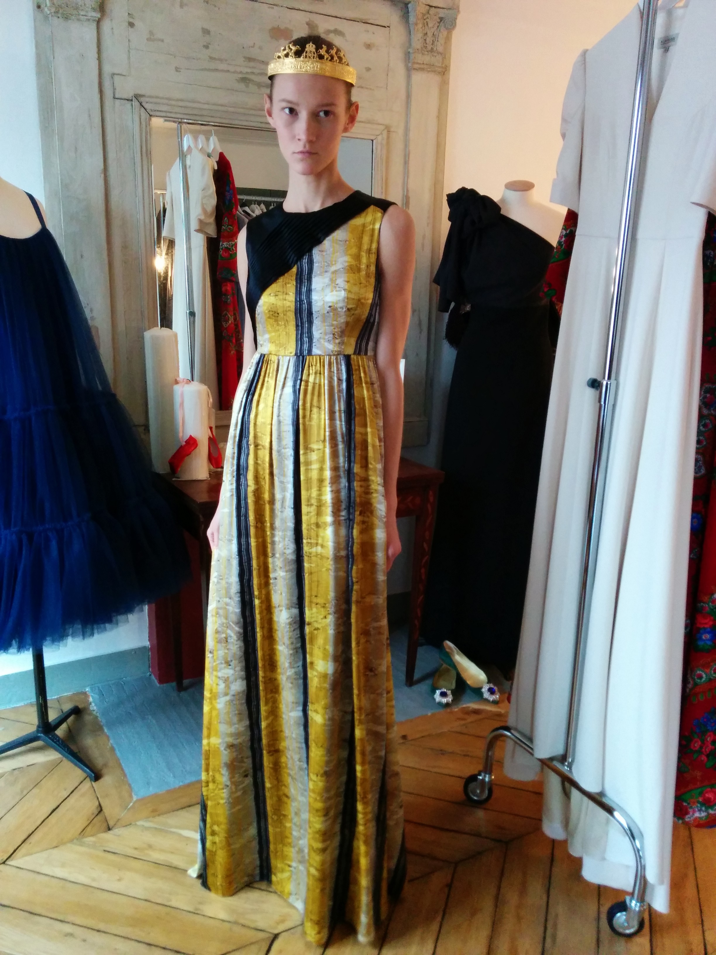 D’inspiration impériale, la pré-collection A La Russe se veut très patriotique ; aux couleurs du drapeau russe, les robes ont la taille marquée et portent les écharpes des tsars et des impératrices d’antan. Très colorée, cette pré-collection comprend aussi des imprimés slaves, très chatoyants et originaux. Un vrai coup de cœur pour l’hommage à l’histoire de son pays rendu par la créatrice.