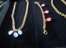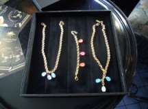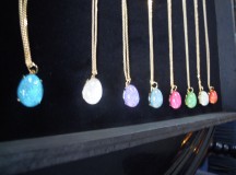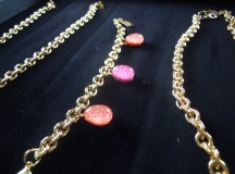 La deuxième partie de la collection est la plus récente ; prénommée « city », les bijoux qui la composent sont plus discrets et peut-être plus facilement portables pour les plus craintives d’entre nous. Les pendentifs à la perle unique sont très simples, mais déclinés dans plusieurs coloris ; si l’on veut plus se faire remarquer, on optera pour le collier à grosse chaîne, ou le bracelet assorti. Dans tous les cas, on applaudit la finesse du travail et la volupté des perles, qu’on ne quitte plus des yeux.