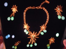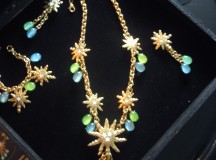 La première partie de cette collection se veut du « soir », car elle comprend des colliers, bracelets et boucles d’oreille plus imposants. L’image du soleil y est très présente. Ceux-ci, ainsi que les chaînes, sont en plaqué or. Les perles de résine, quant à elles, se déclinent dans des couleurs chaudes, comme le rose et l’orange, mais aussi dans des couleurs froides, le vert, le bleu, le violet. Ces pièces, une fois portées, font vite impression. Associées à une tenue très simple, les perles photoluminescentes ainsi que les soleils joueront parfaitement leur rôle lumineux !