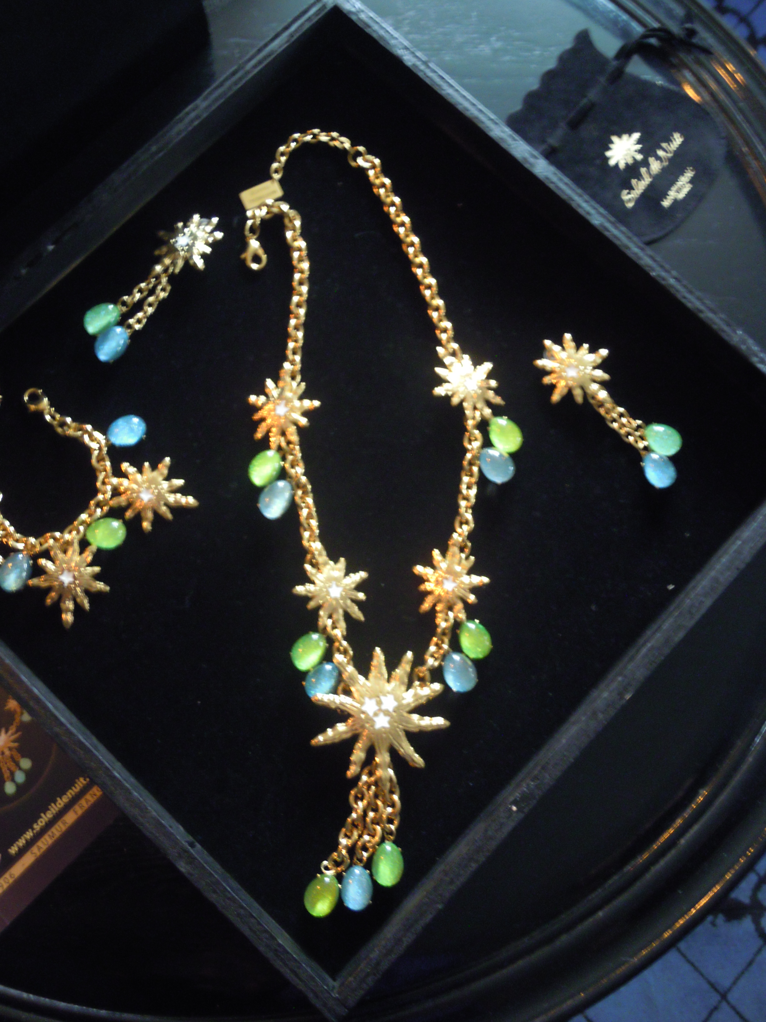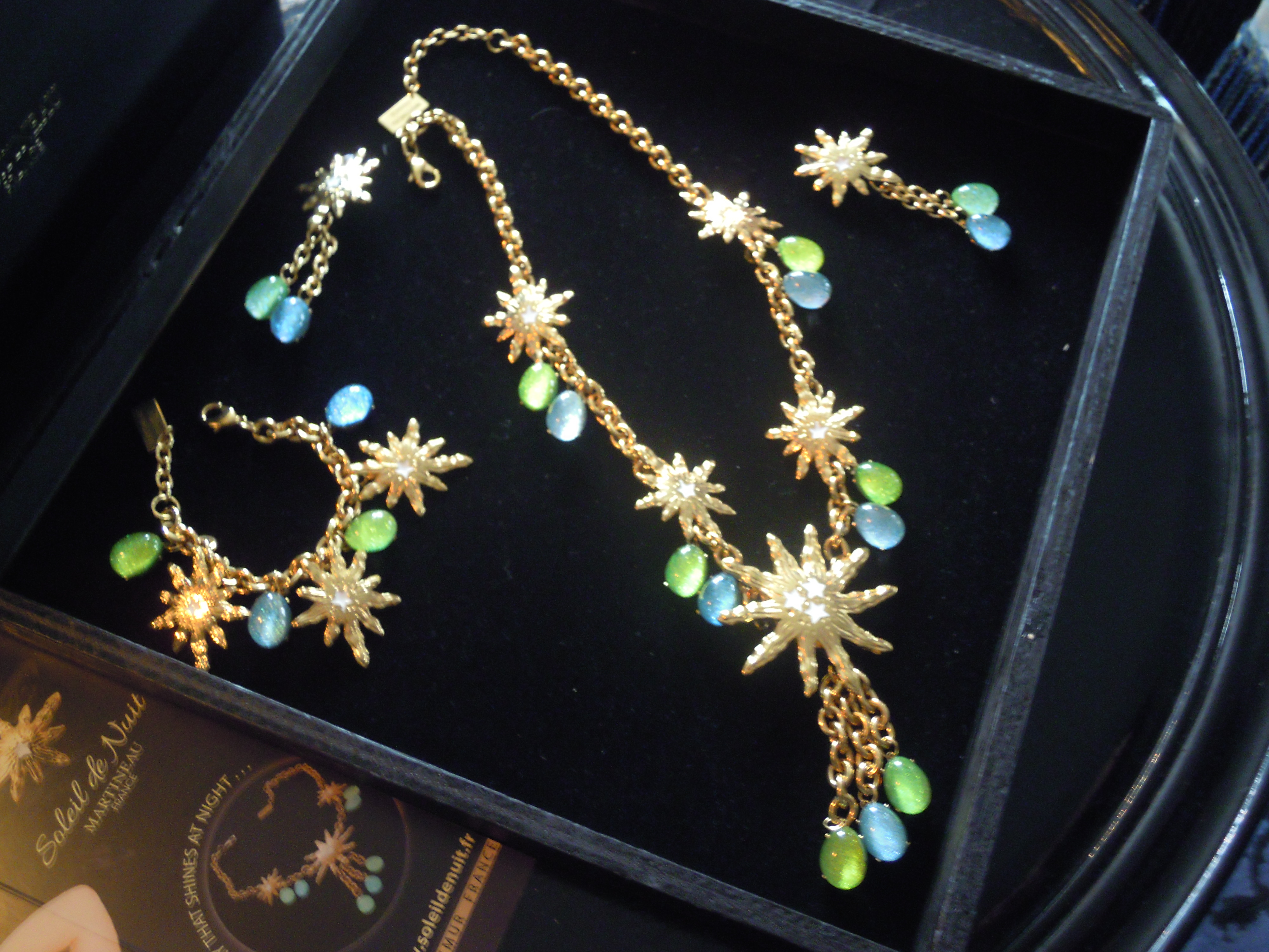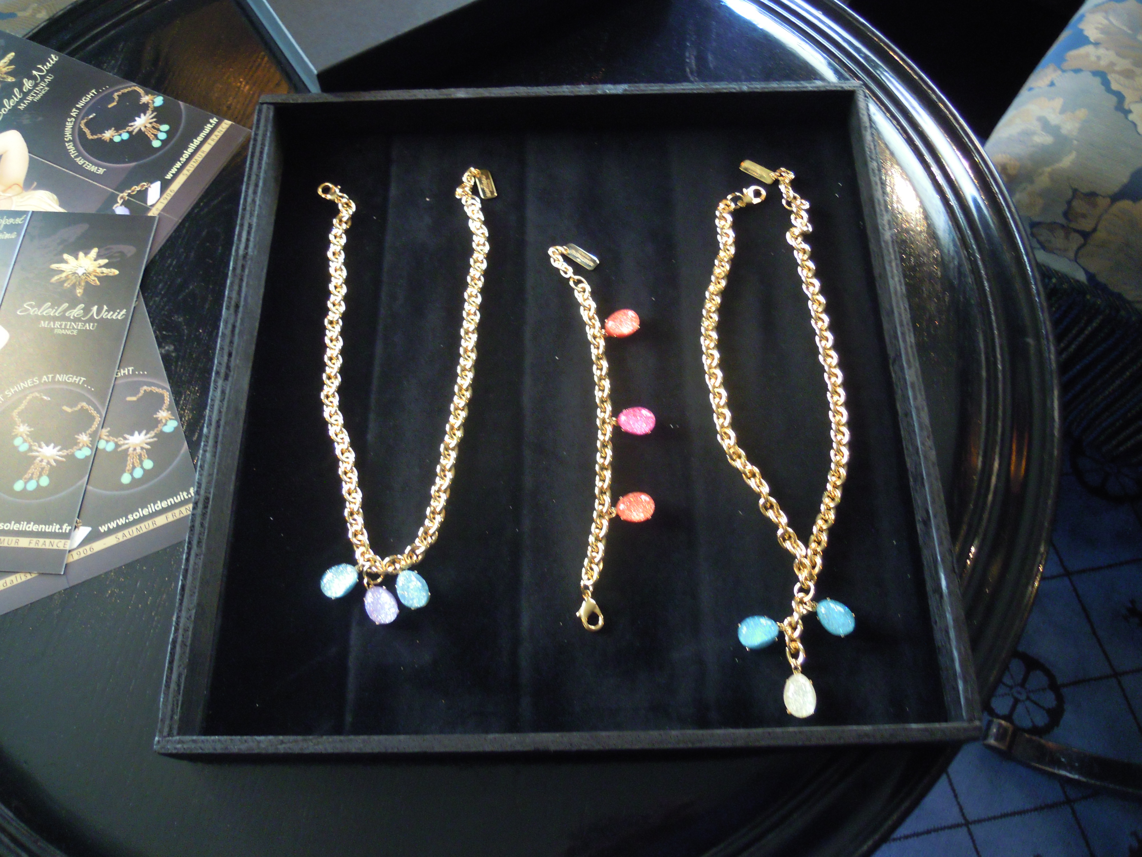 C’est ainsi qu’est née la collection Soleil de Nuit. Fruit d’une recherche de 25 ans, Martineau a élaboré un résine innovante et unique qui emmagasine la lumière naturelle du jour et la restitue une fois dans l’ombre. Et il ne suffit parfois que de quelques minutes pour obtenir un résultat. Ces perles de résine sont infusées de paillettes qui leur donne un côté tendance. Les bijoux sont tous faits à la main, et en France, ce qui est remarquable.