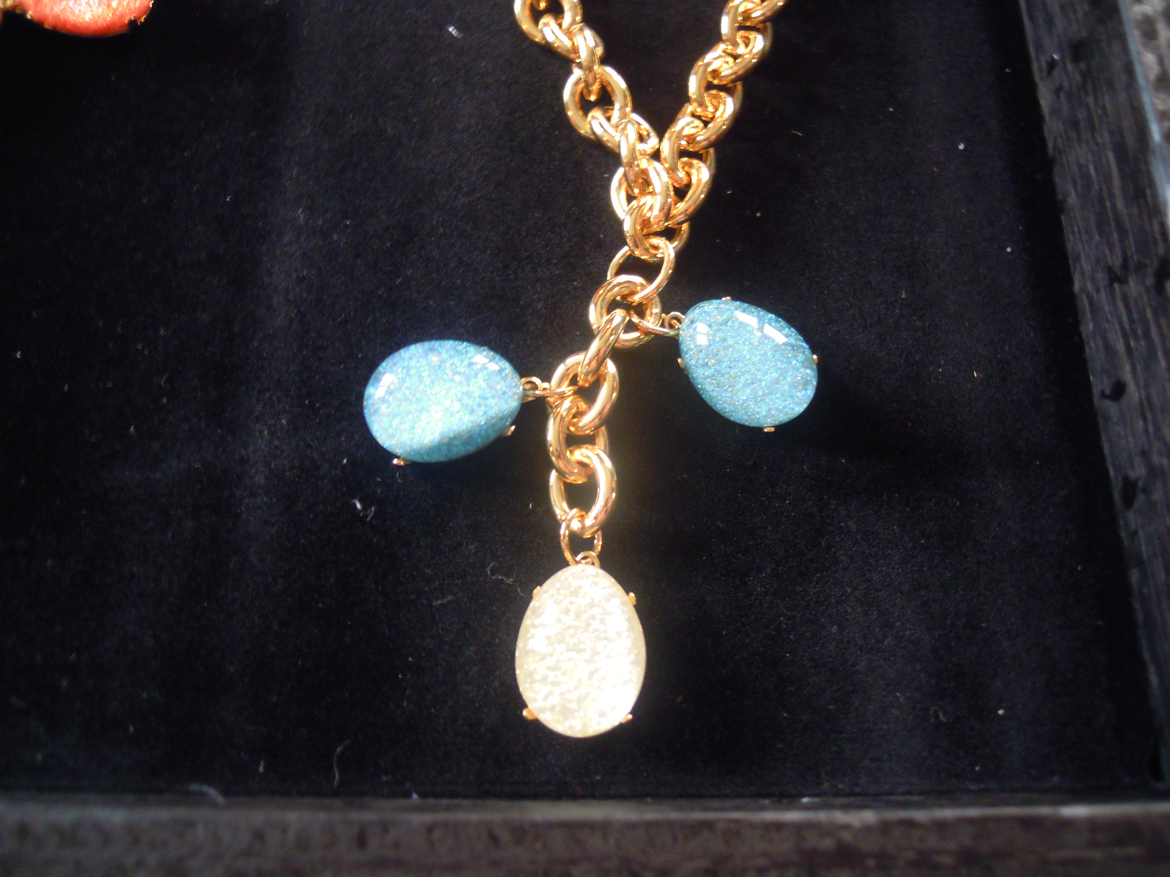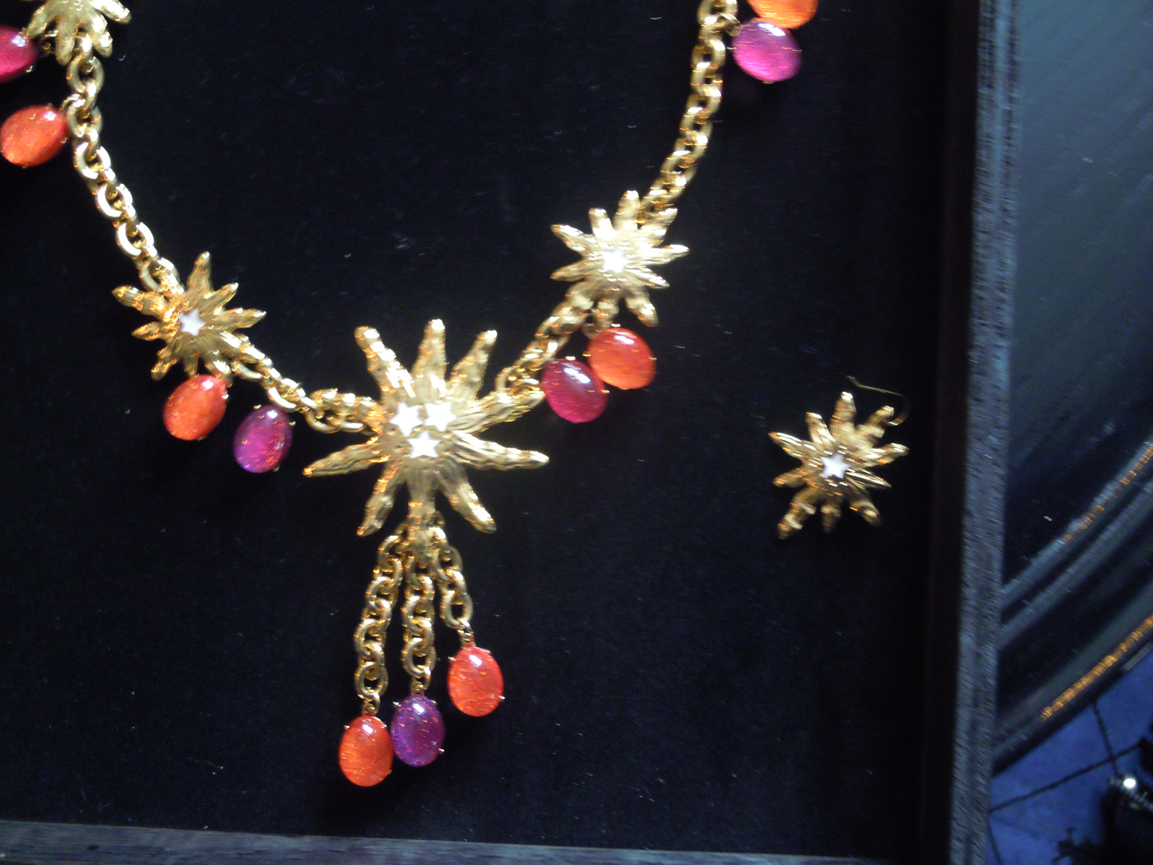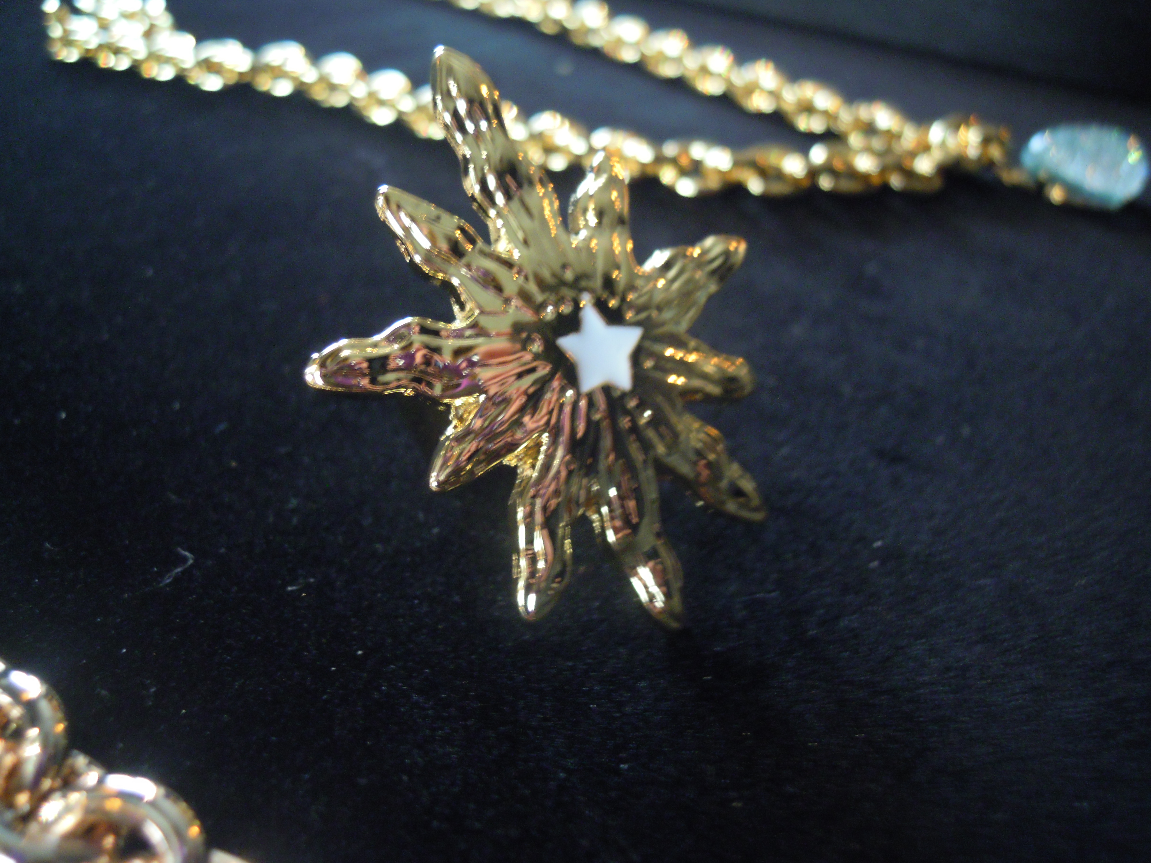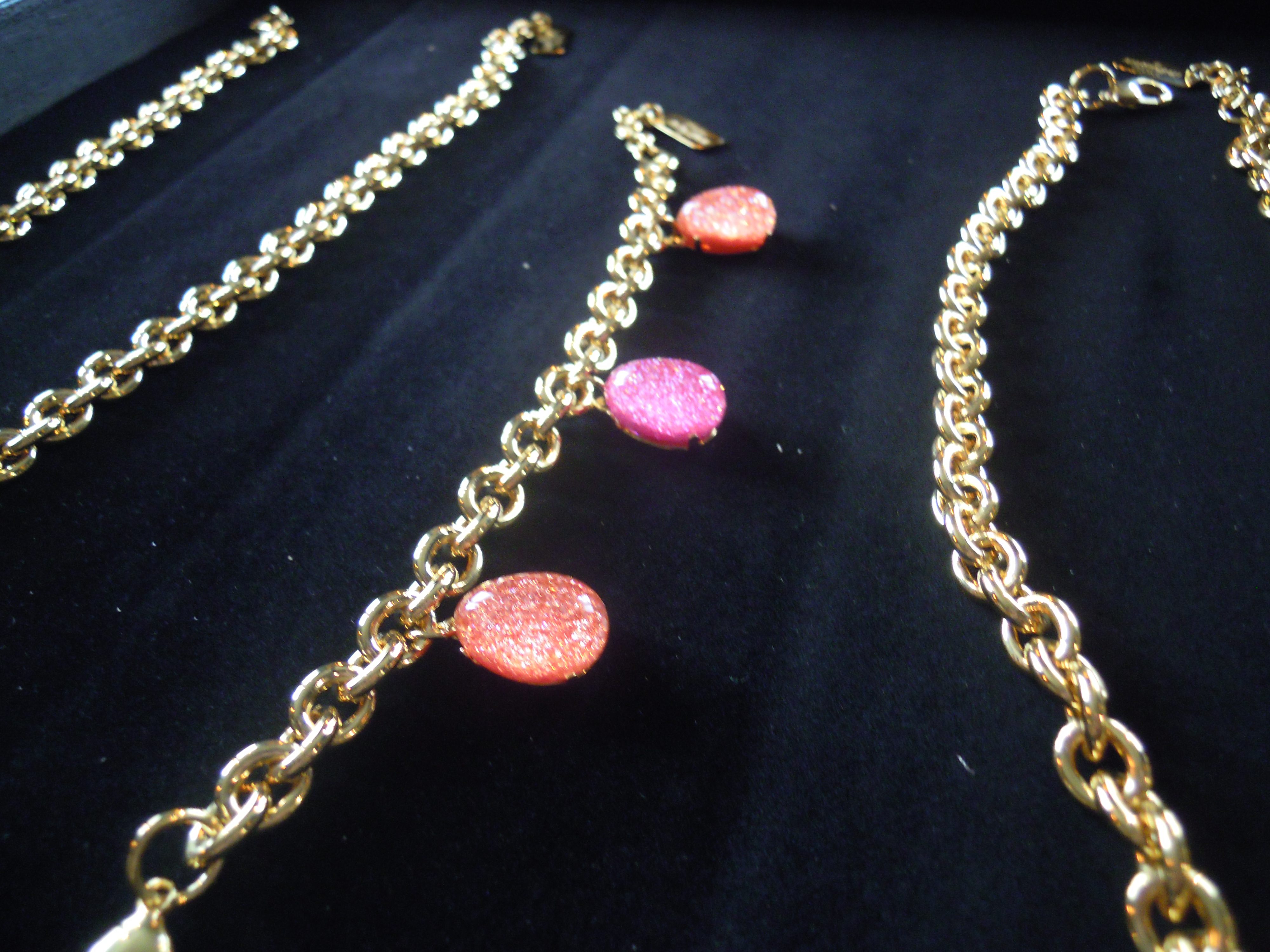 La première partie de cette collection se veut du « soir », car elle comprend des colliers, bracelets et boucles d’oreille plus imposants. L’image du soleil y est très présente. Ceux-ci, ainsi que les chaînes, sont en plaqué or. Les perles de résine, quant à elles, se déclinent dans des couleurs chaudes, comme le rose et l’orange, mais aussi dans des couleurs froides, le vert, le bleu, le violet. Ces pièces, une fois portées, font vite impression. Associées à une tenue très simple, les perles photoluminescentes ainsi que les soleils joueront parfaitement leur rôle lumineux !