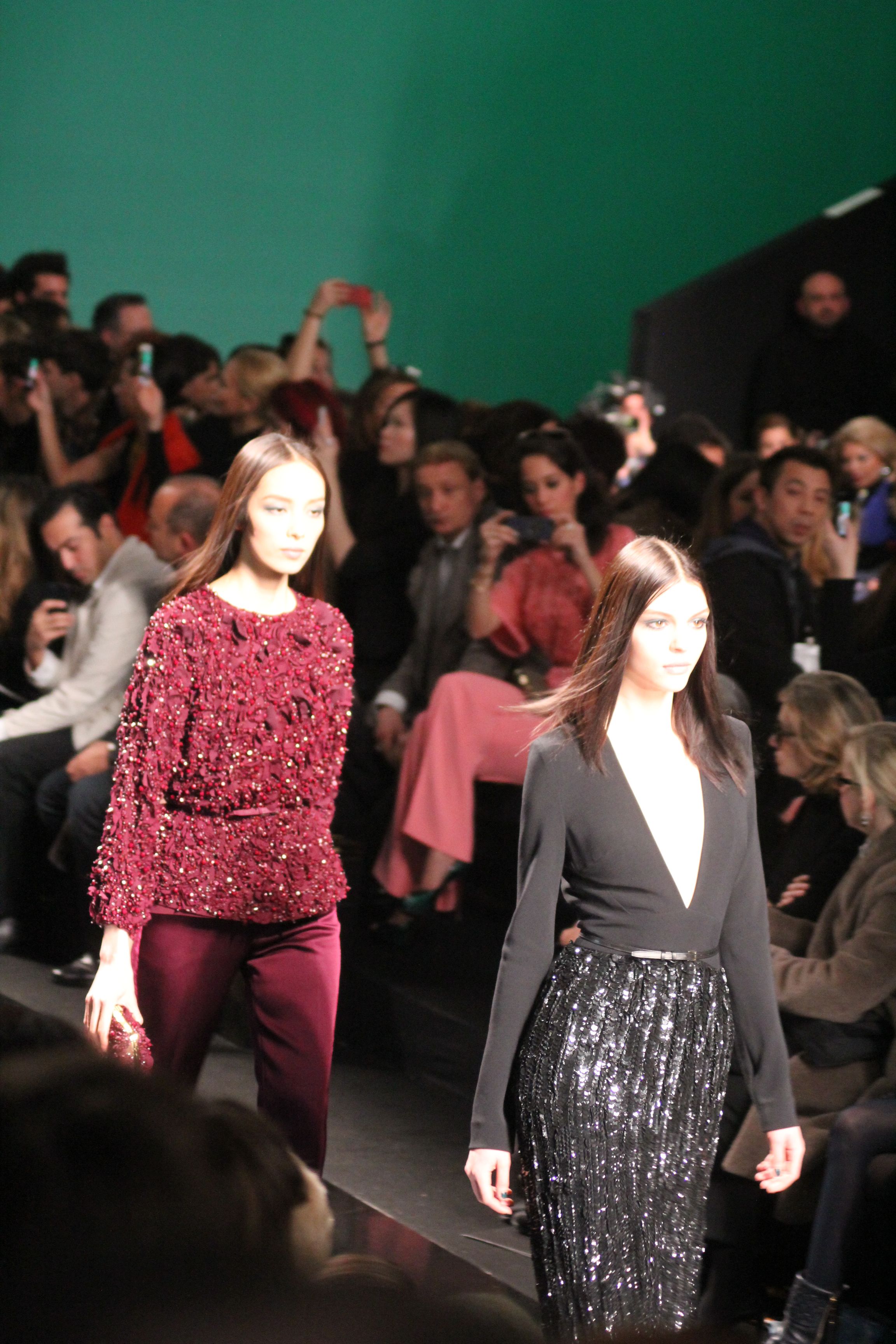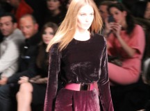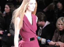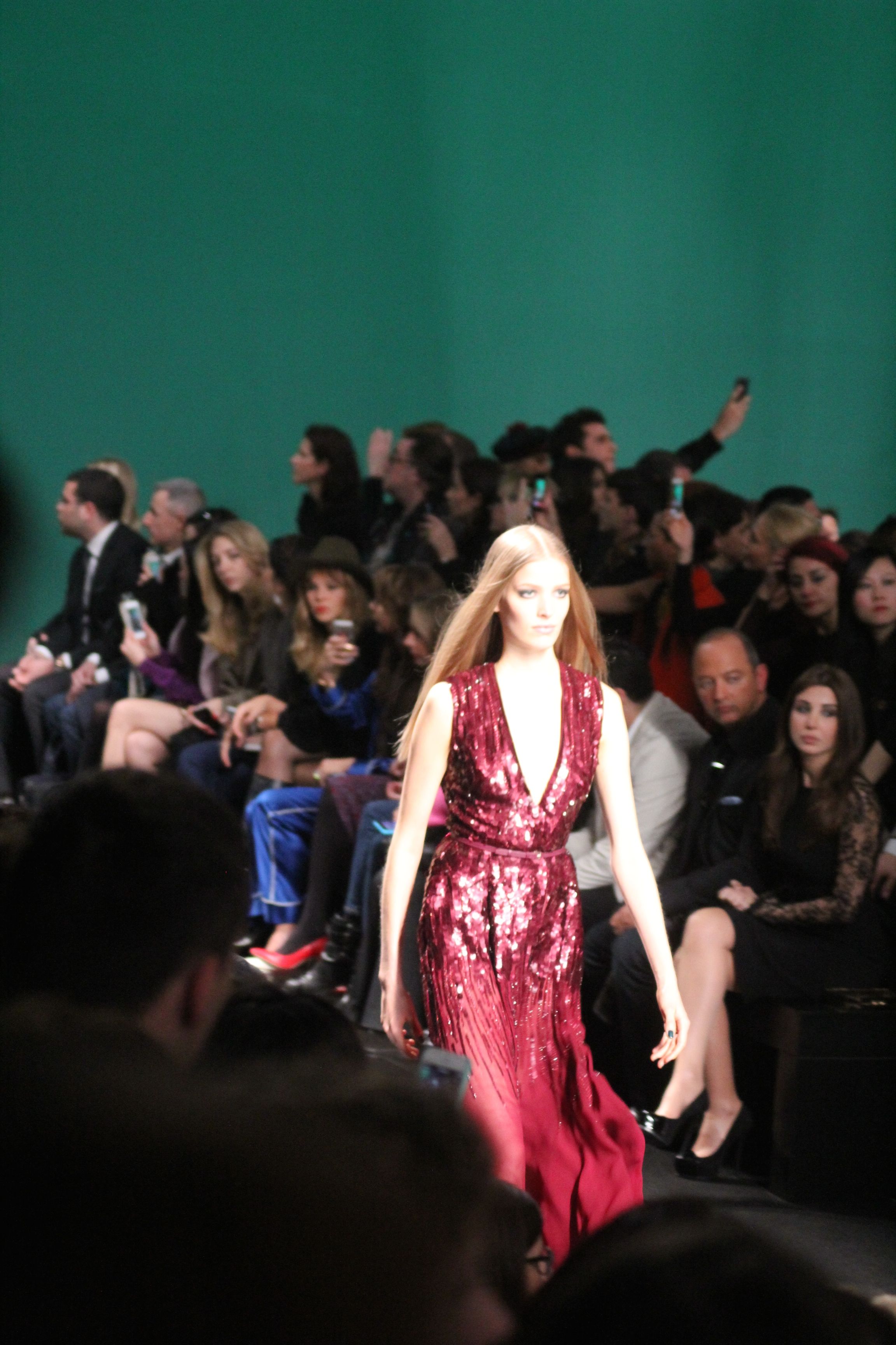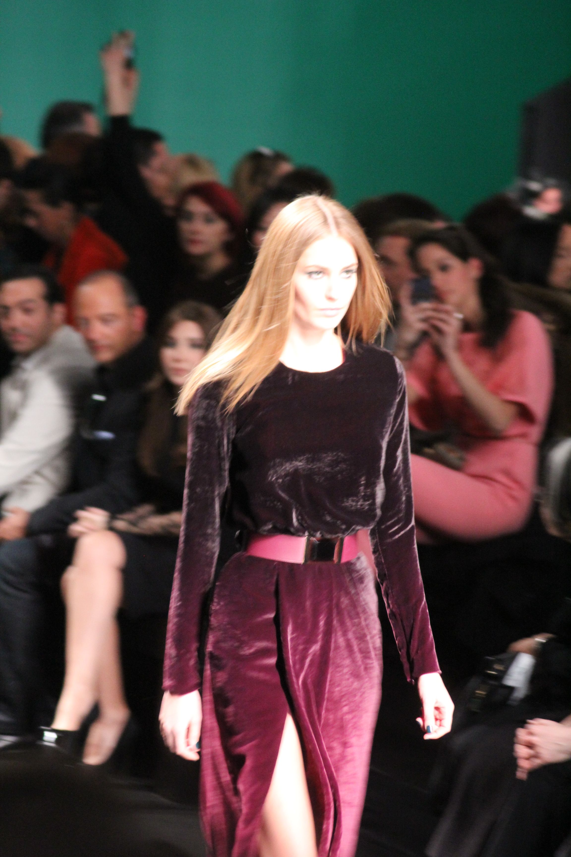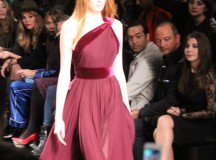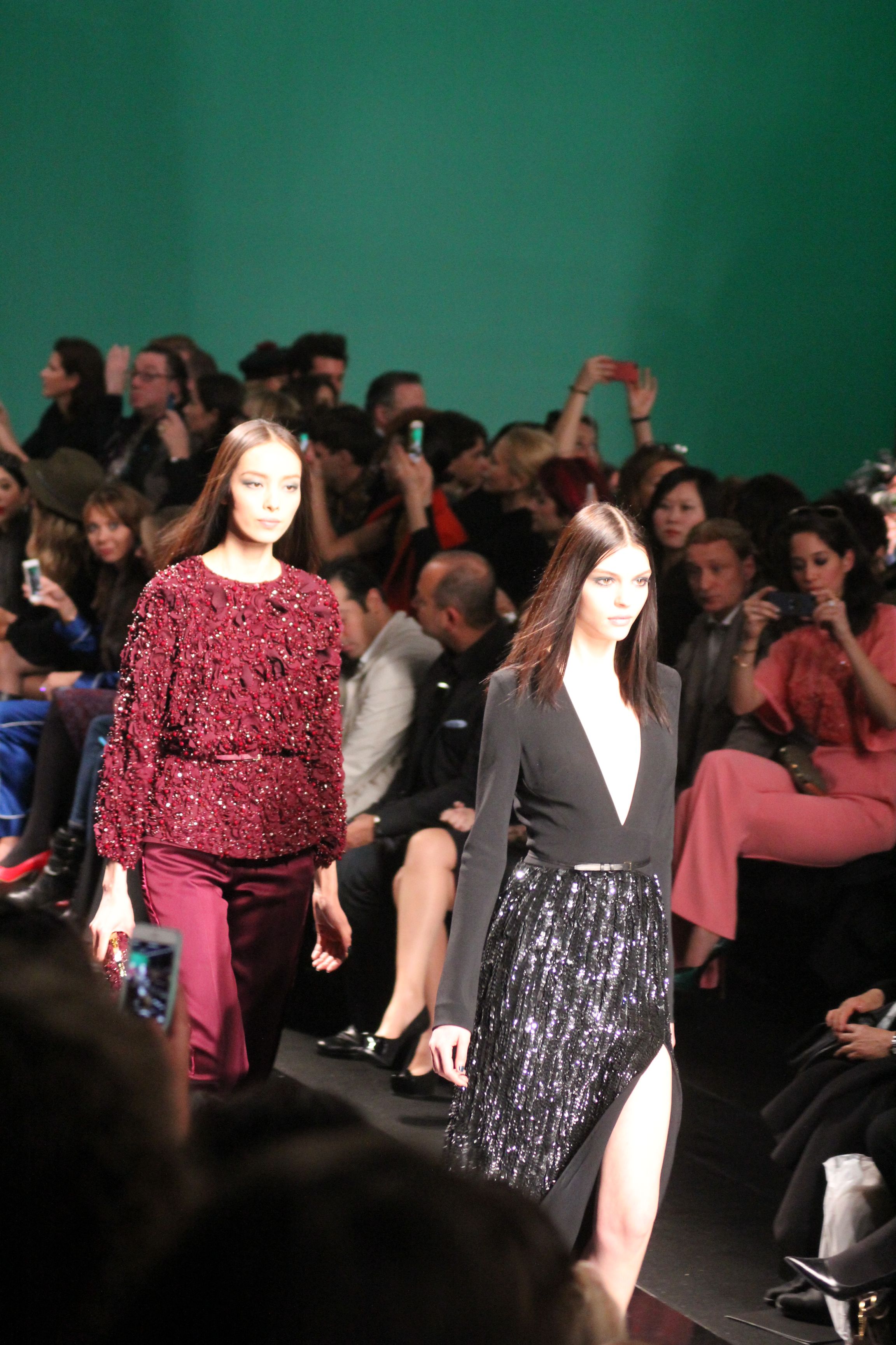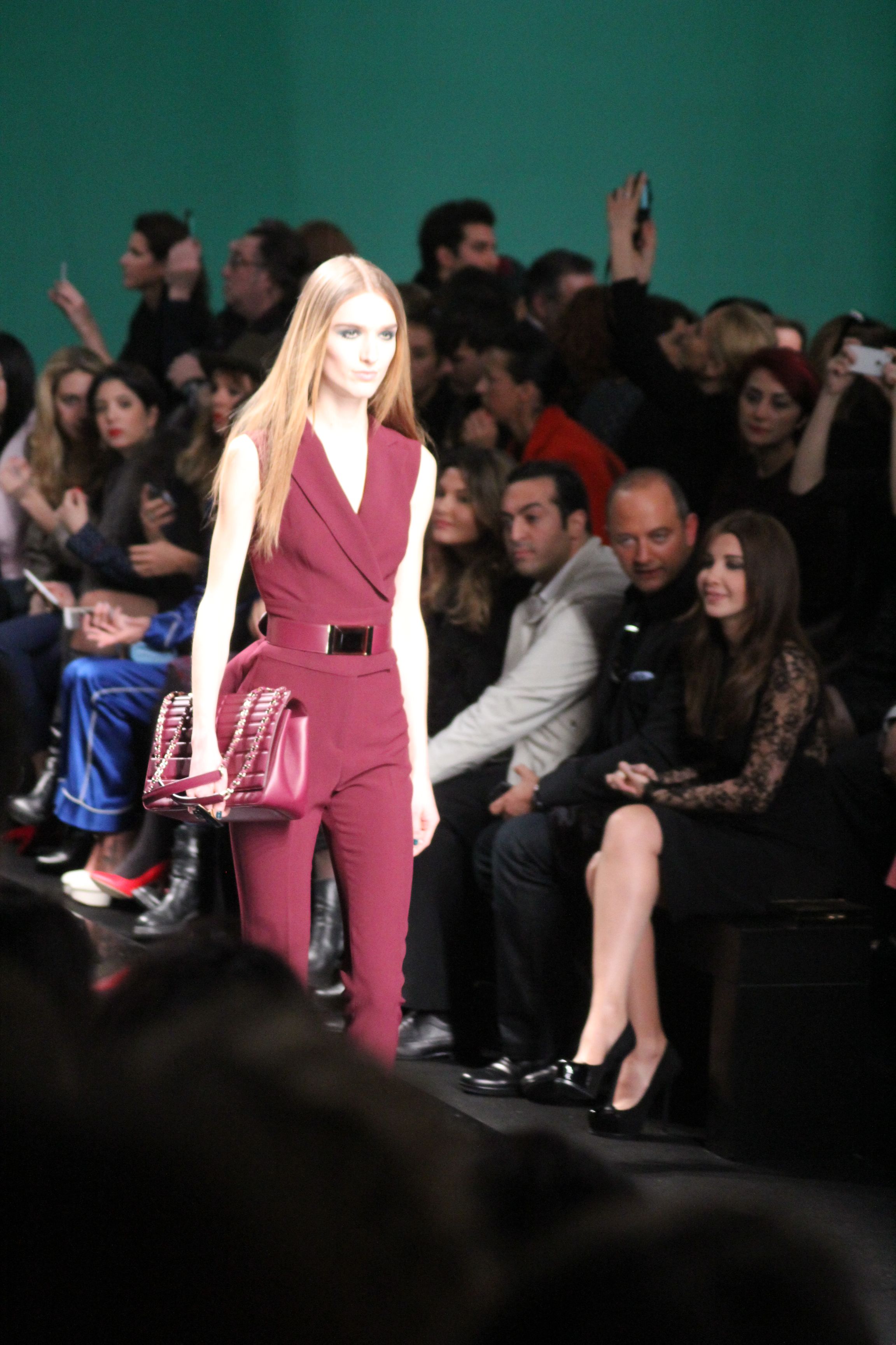 Pour cette collection automne hiver 2014-2015, Elie Saab propose un collection minimaliste, graphique et lumineuse. Inspirée d’abord par Mark Rohtko, elle est vouée comme son oeuvre à la couleur : ici rouge profond et vert empire, maître des corps, sculptent l’allure de manière envoutante. Chaque nuance est prétexte à recourir à une déclinaison de lignes asymétriques qui rappellent celles très structurées des années 50-60.