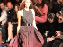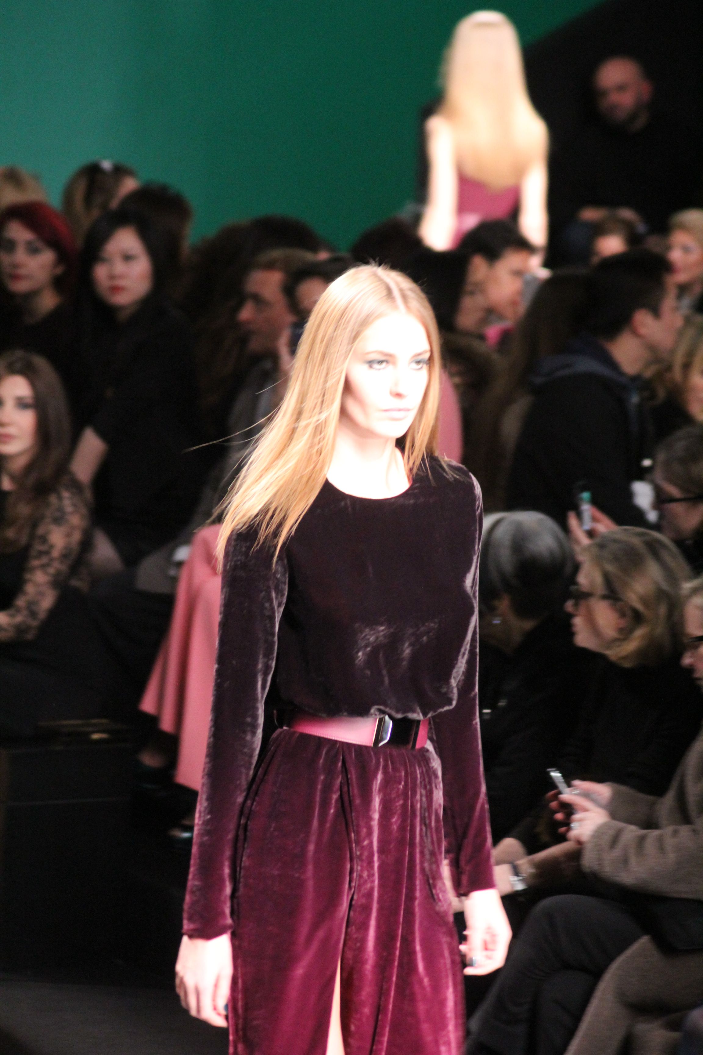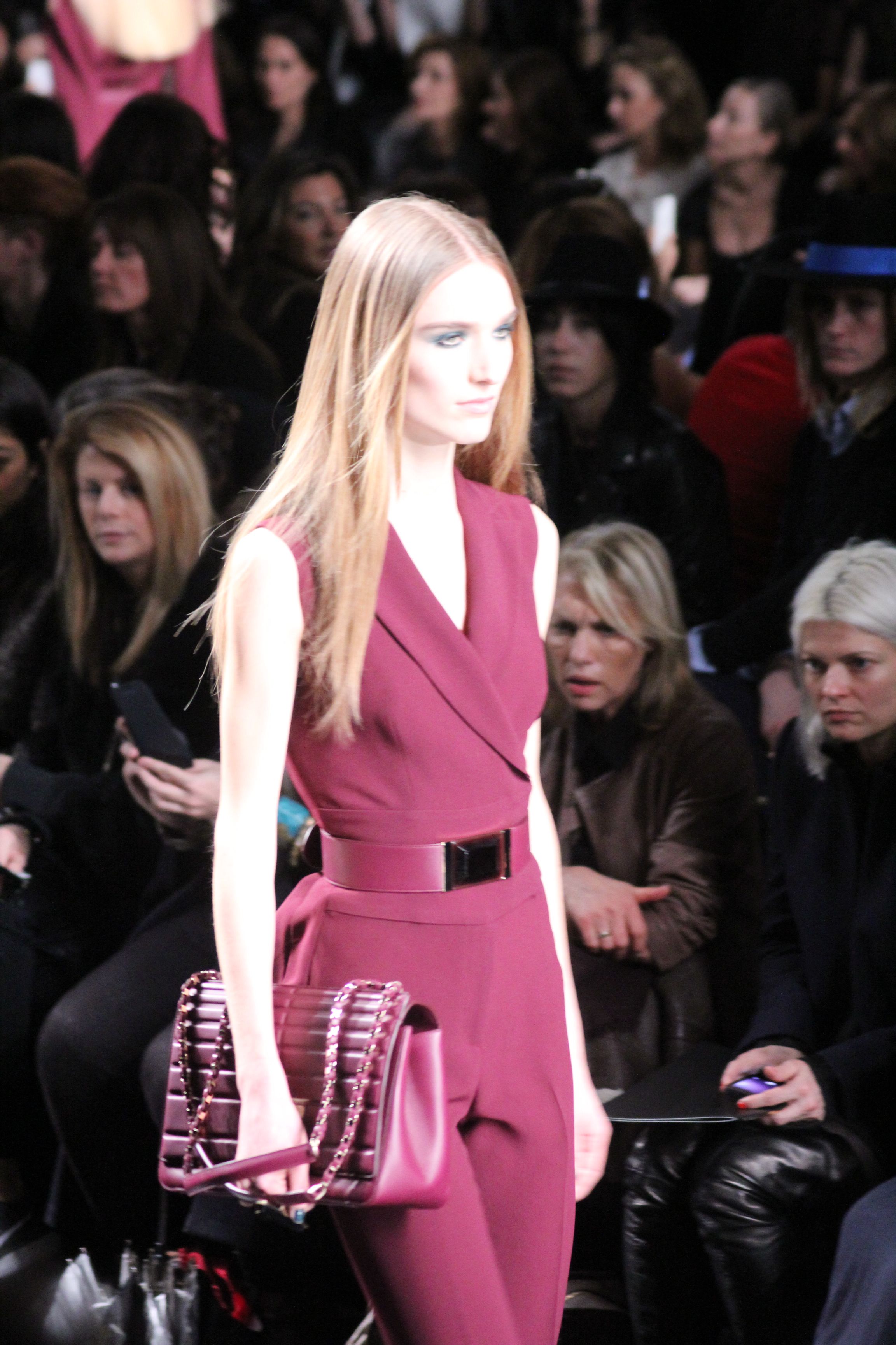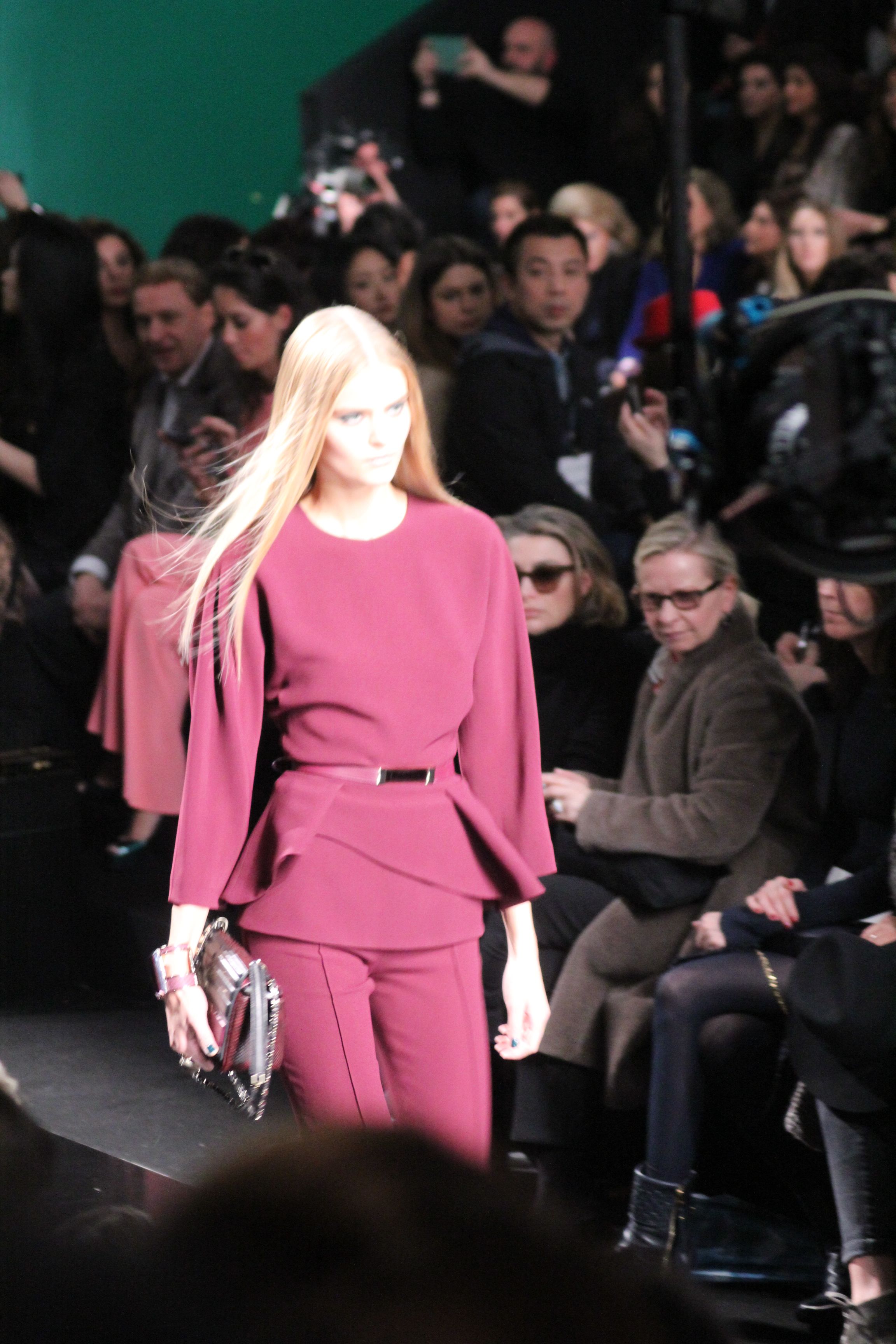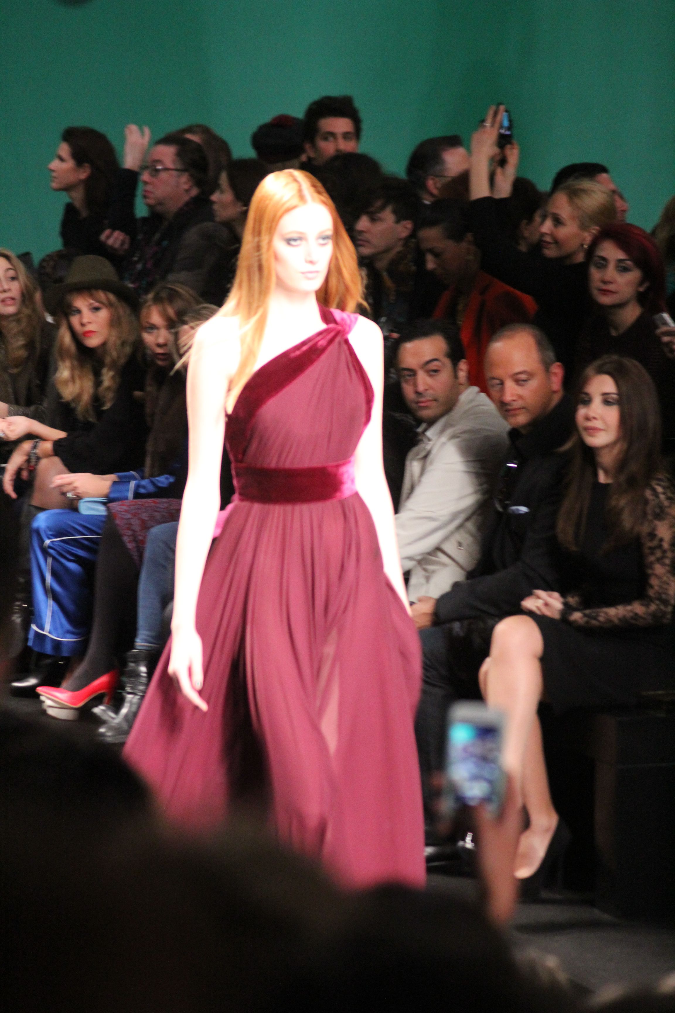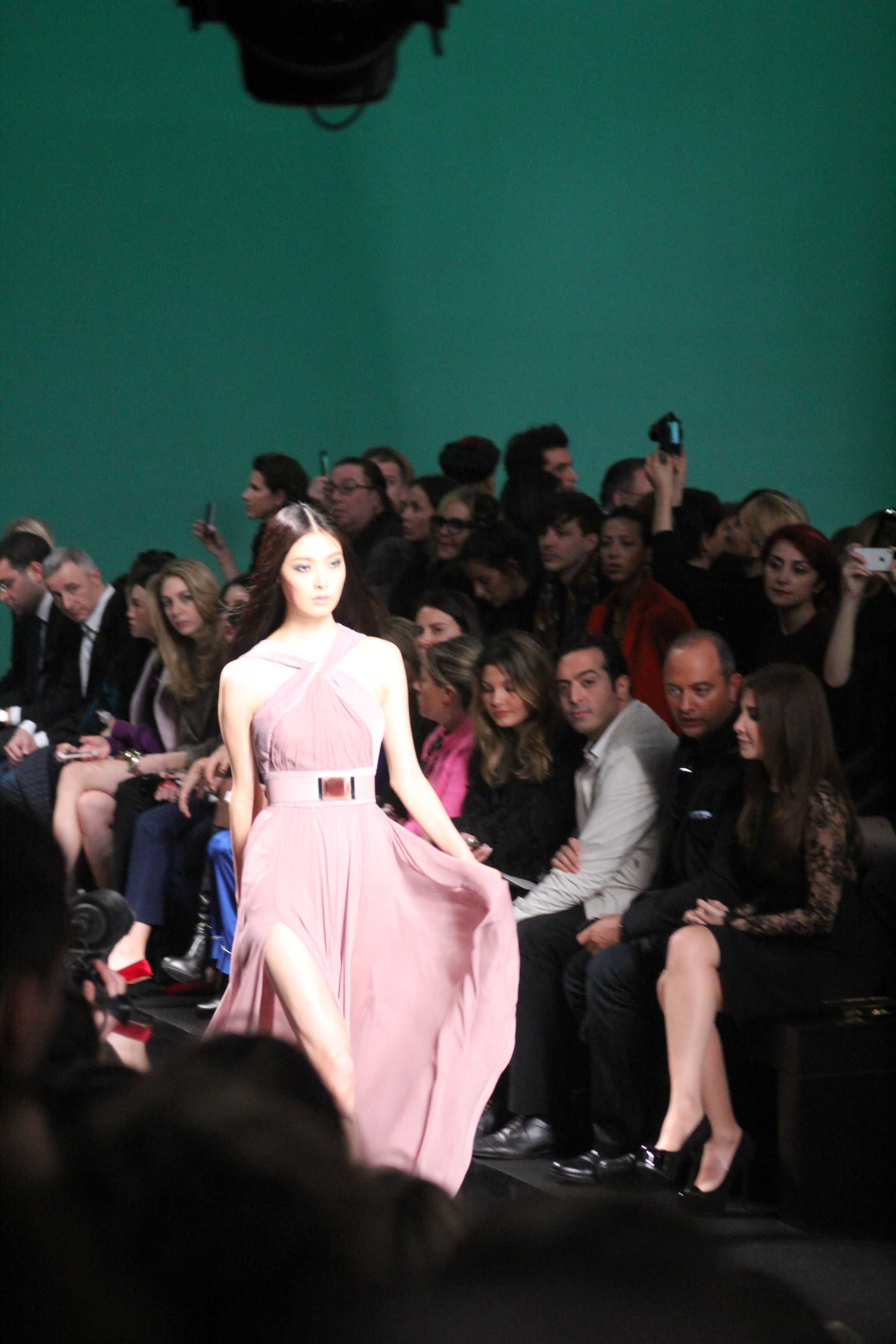 Pour cette collection automne hiver 2014-2015, Elie Saab propose un collection minimaliste, graphique et lumineuse. Inspirée d’abord par Mark Rohtko, elle est vouée comme son oeuvre à la couleur : ici rouge profond et vert empire, maître des corps, sculptent l’allure de manière envoutante. Chaque nuance est prétexte à recourir à une déclinaison de lignes asymétriques qui rappellent celles très structurées des années 50-60.
