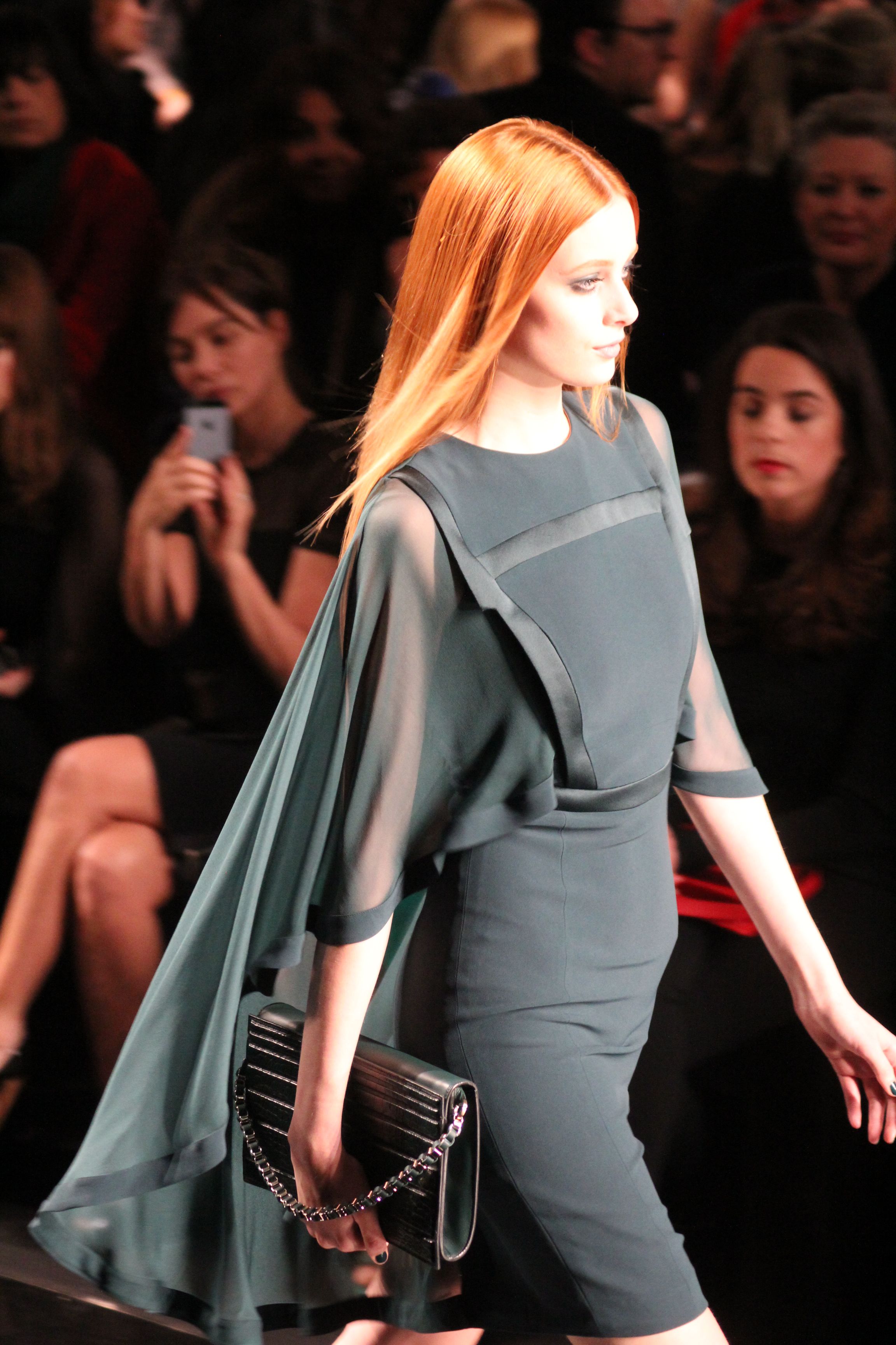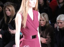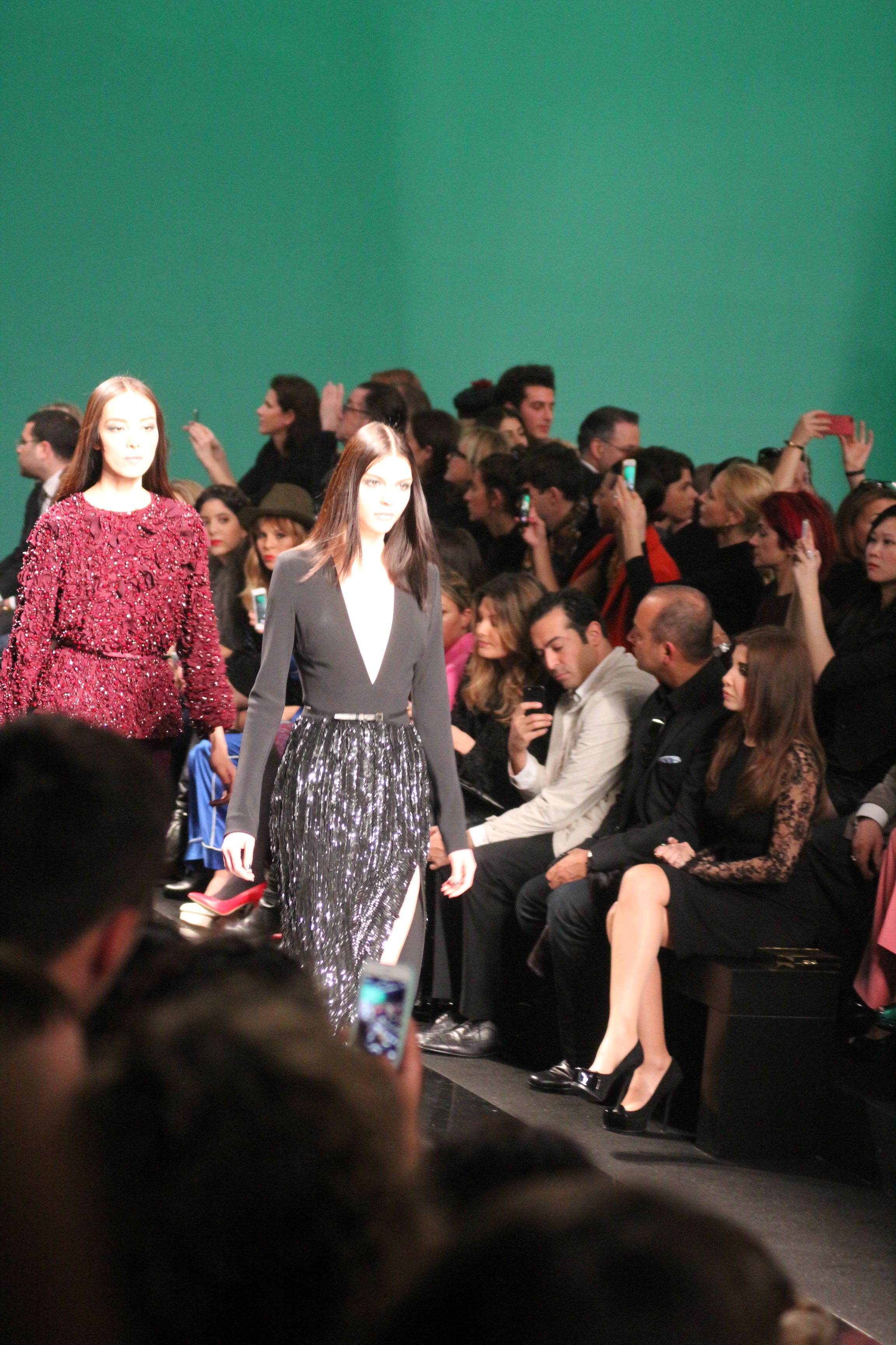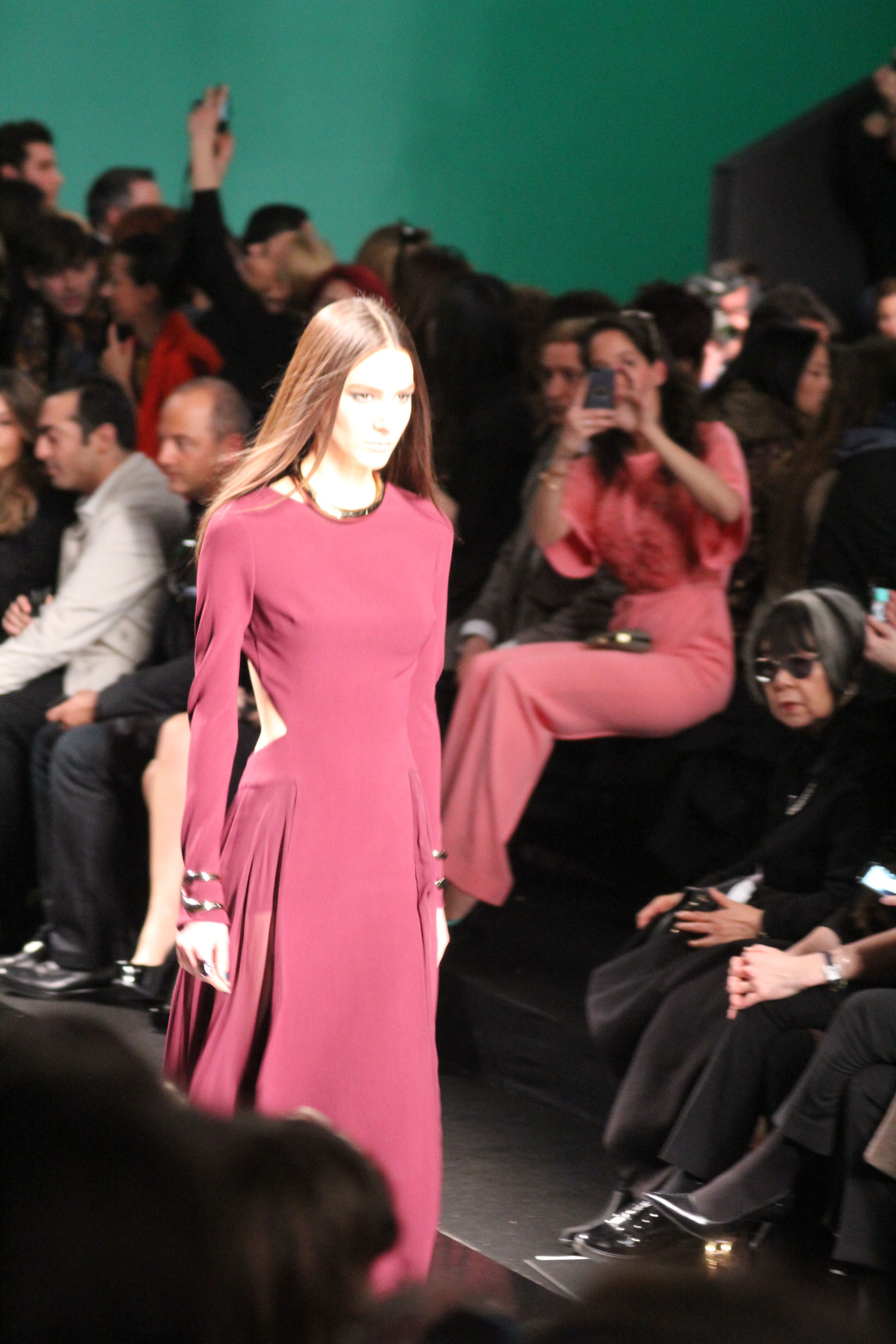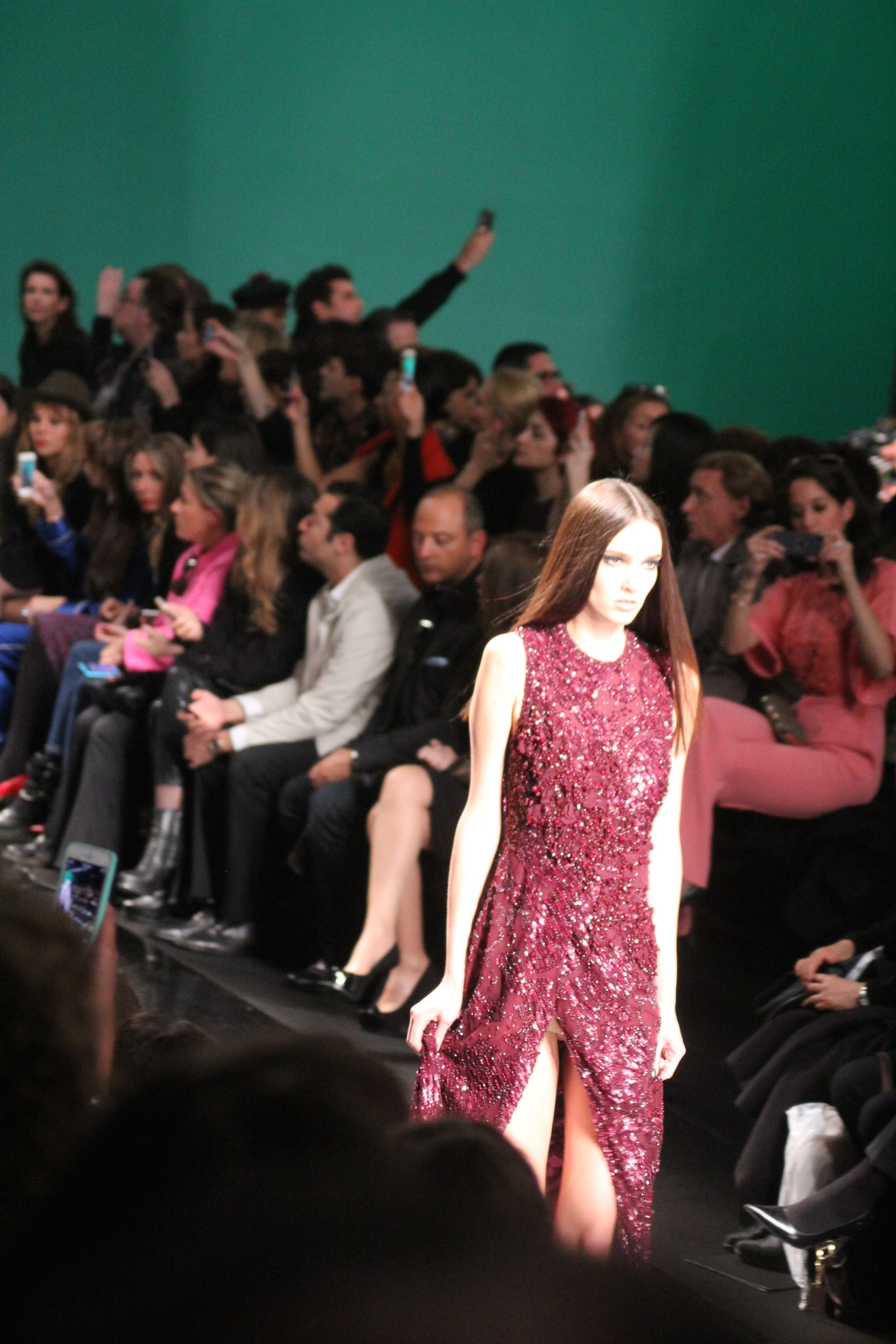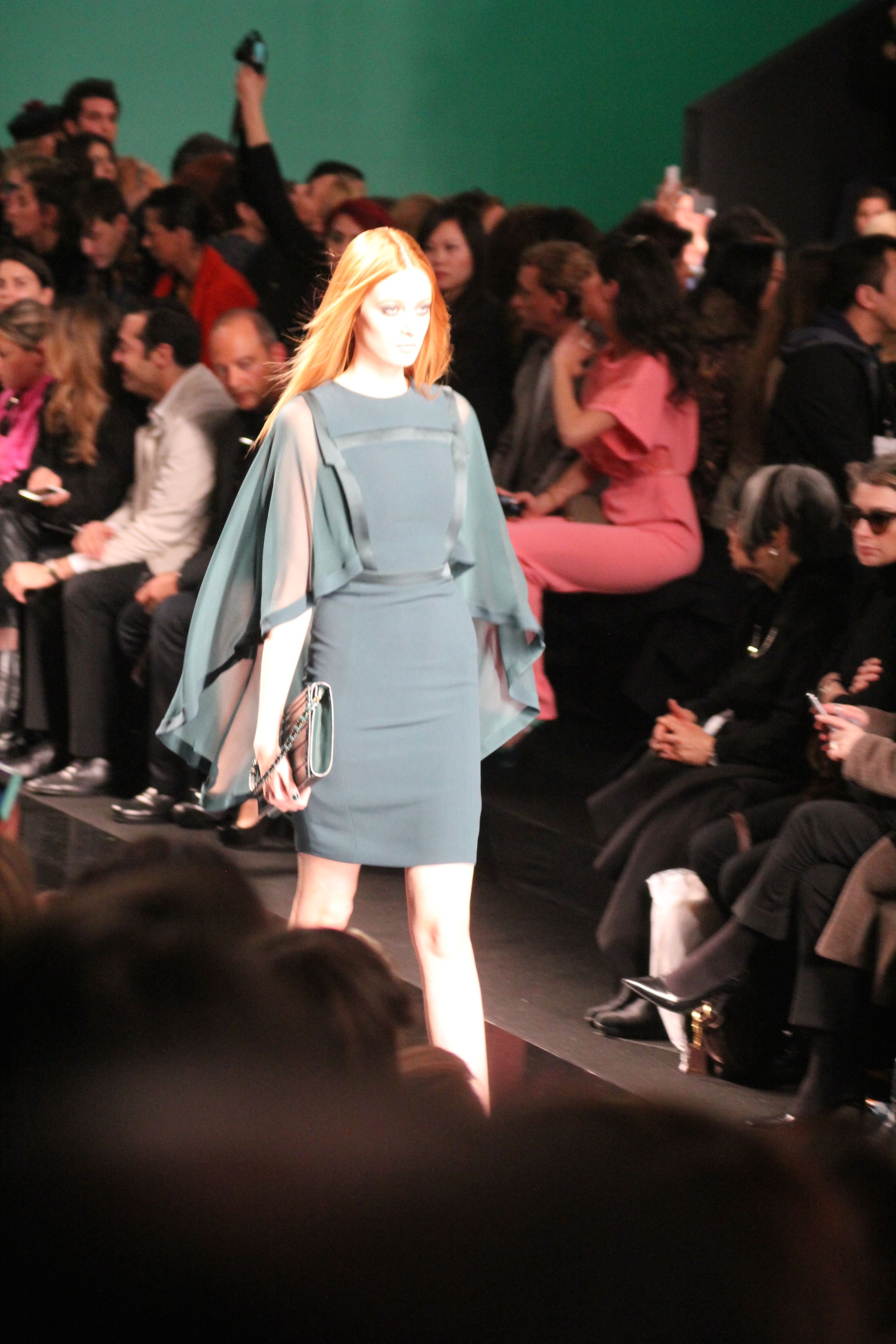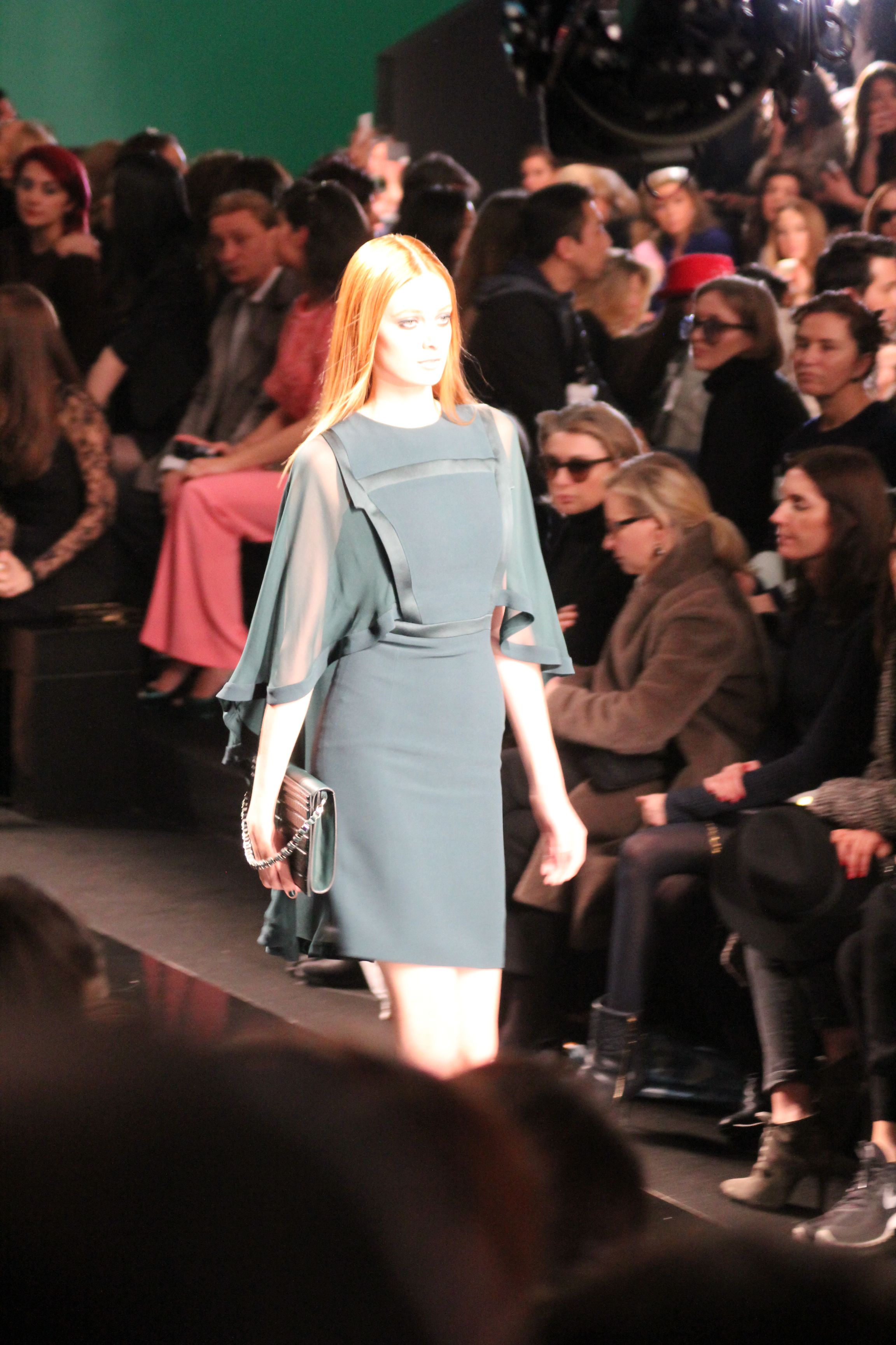 Pour cette collection automne hiver 2014-2015, Elie Saab propose un collection minimaliste, graphique et lumineuse. Inspirée d’abord par Mark Rohtko, elle est vouée comme son oeuvre à la couleur : ici rouge profond et vert empire, maître des corps, sculptent l’allure de manière envoutante. Chaque nuance est prétexte à recourir à une déclinaison de lignes asymétriques qui rappellent celles très structurées des années 50-60.