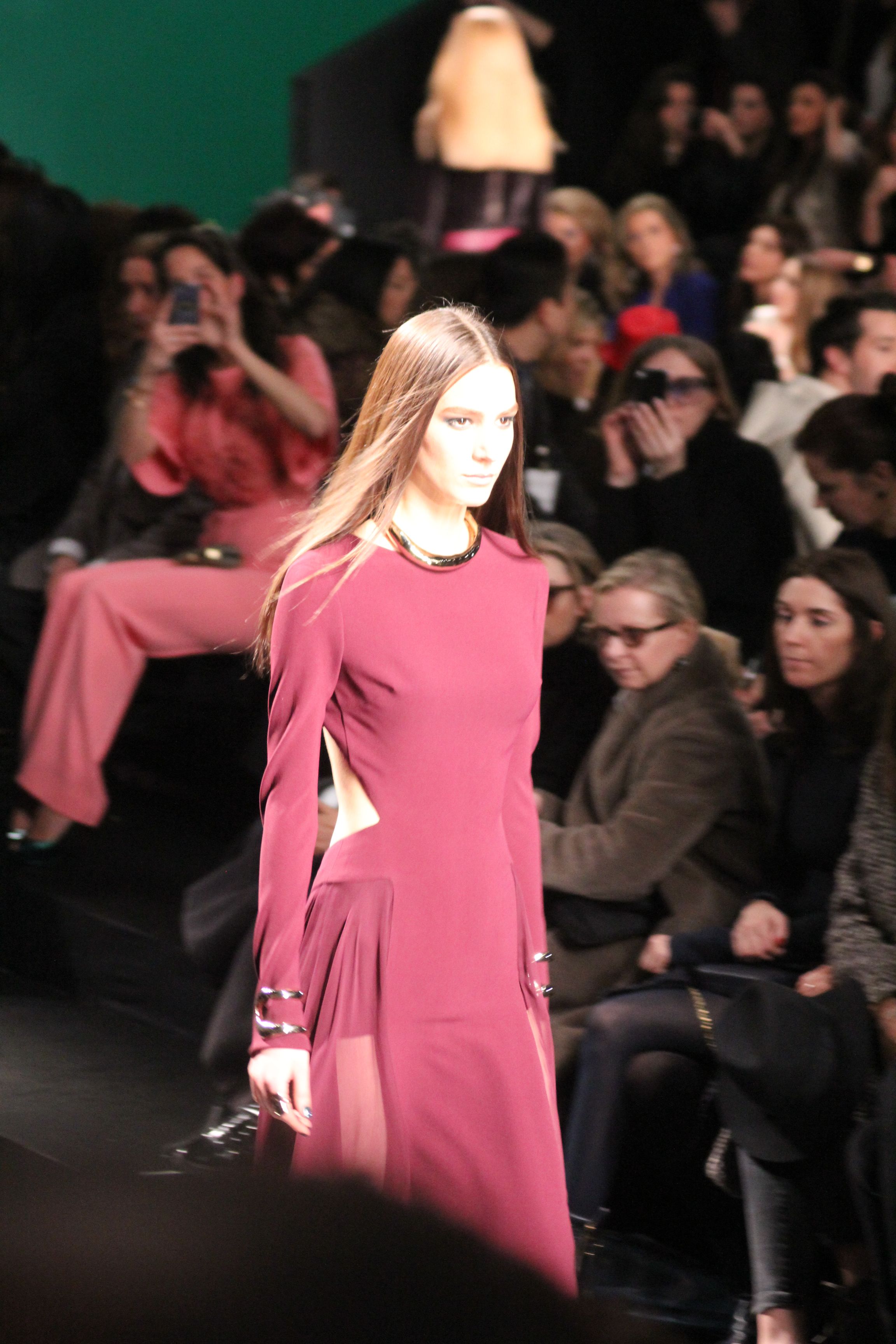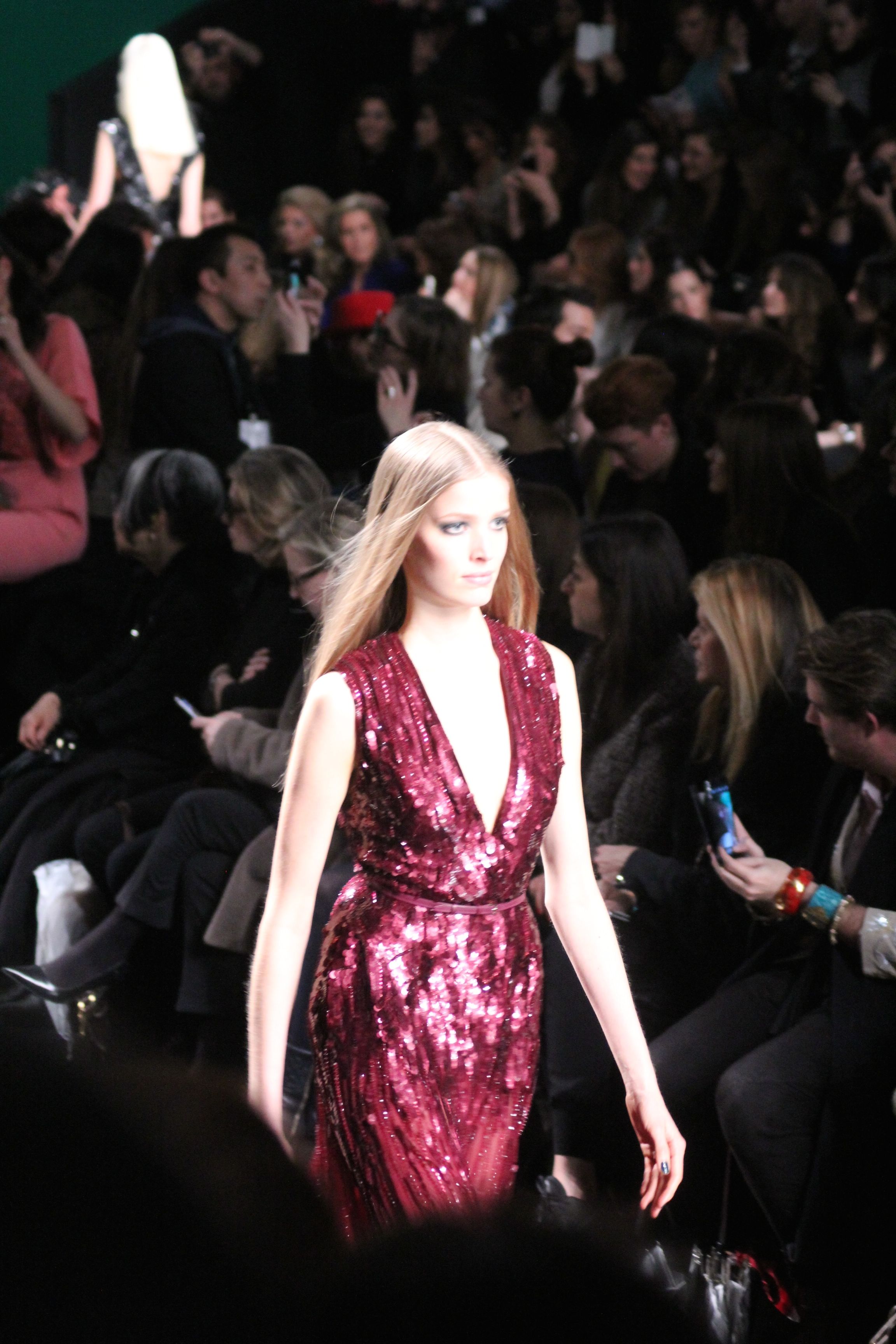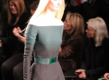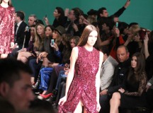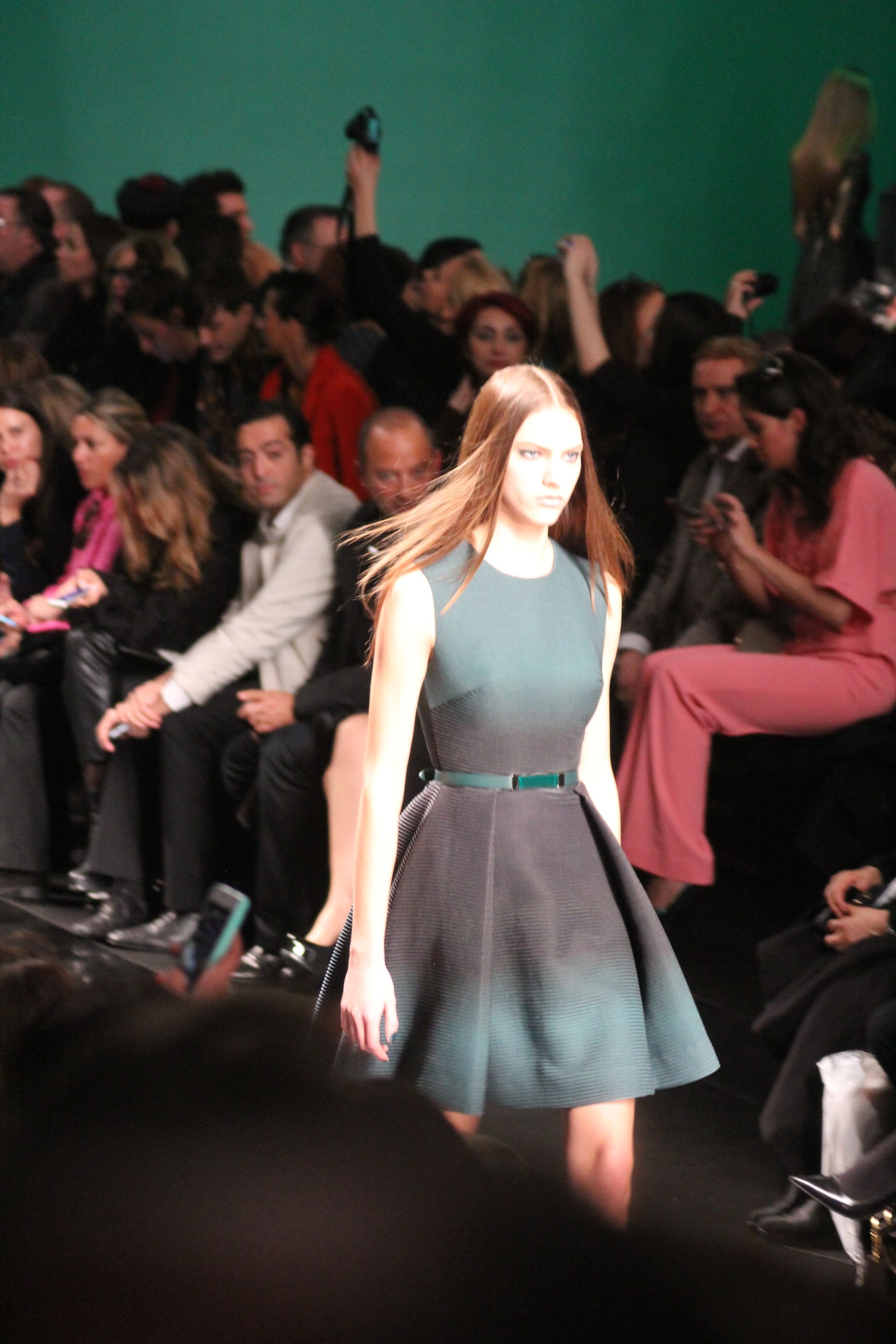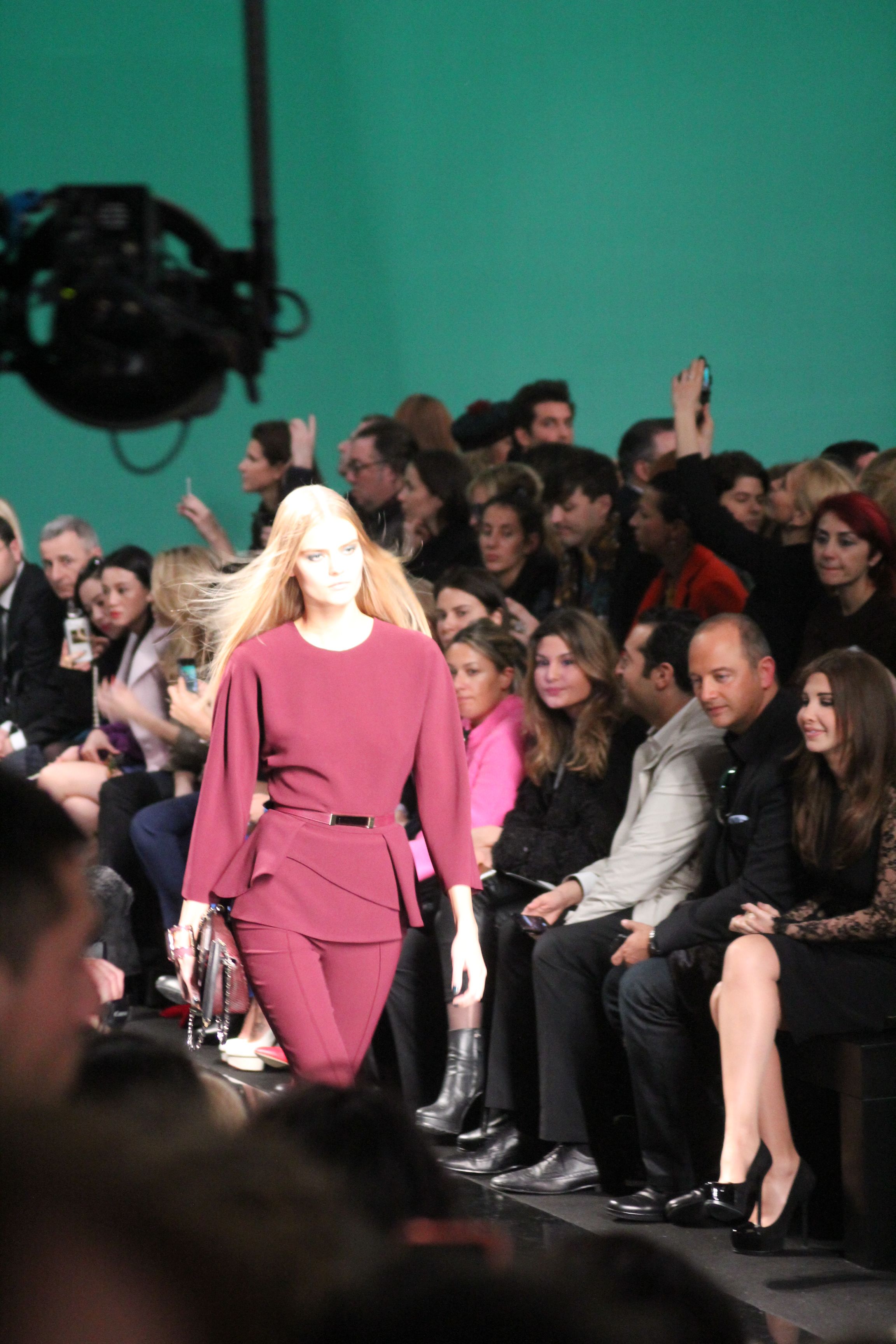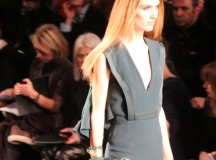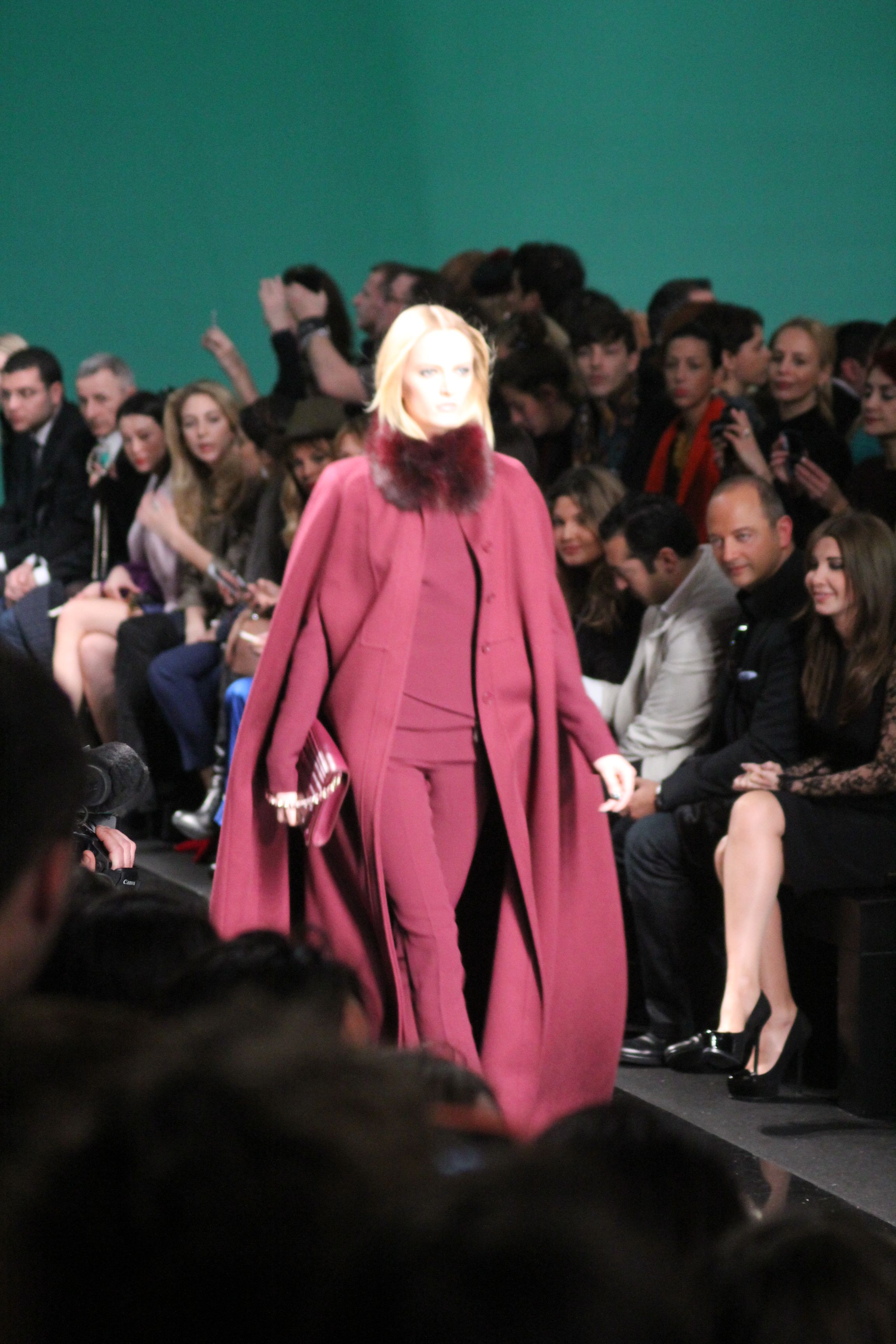 Pour cette collection automne hiver 2014-2015, Elie Saab propose un collection minimaliste, graphique et lumineuse. Inspirée d’abord par Mark Rohtko, elle est vouée comme son oeuvre à la couleur : ici rouge profond et vert empire, maître des corps, sculptent l’allure de manière envoutante. Chaque nuance est prétexte à recourir à une déclinaison de lignes asymétriques qui rappellent celles très structurées des années 50-60.