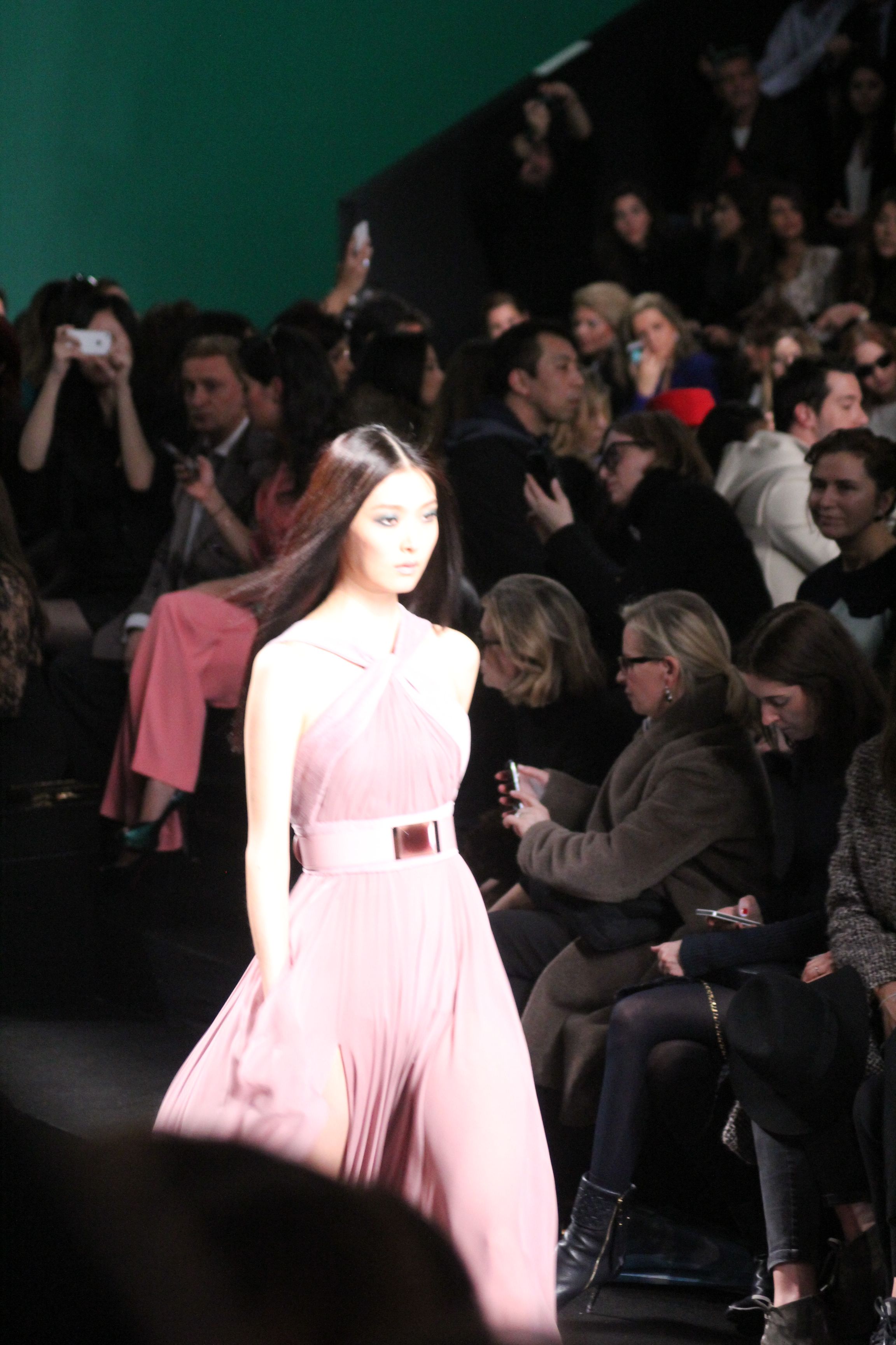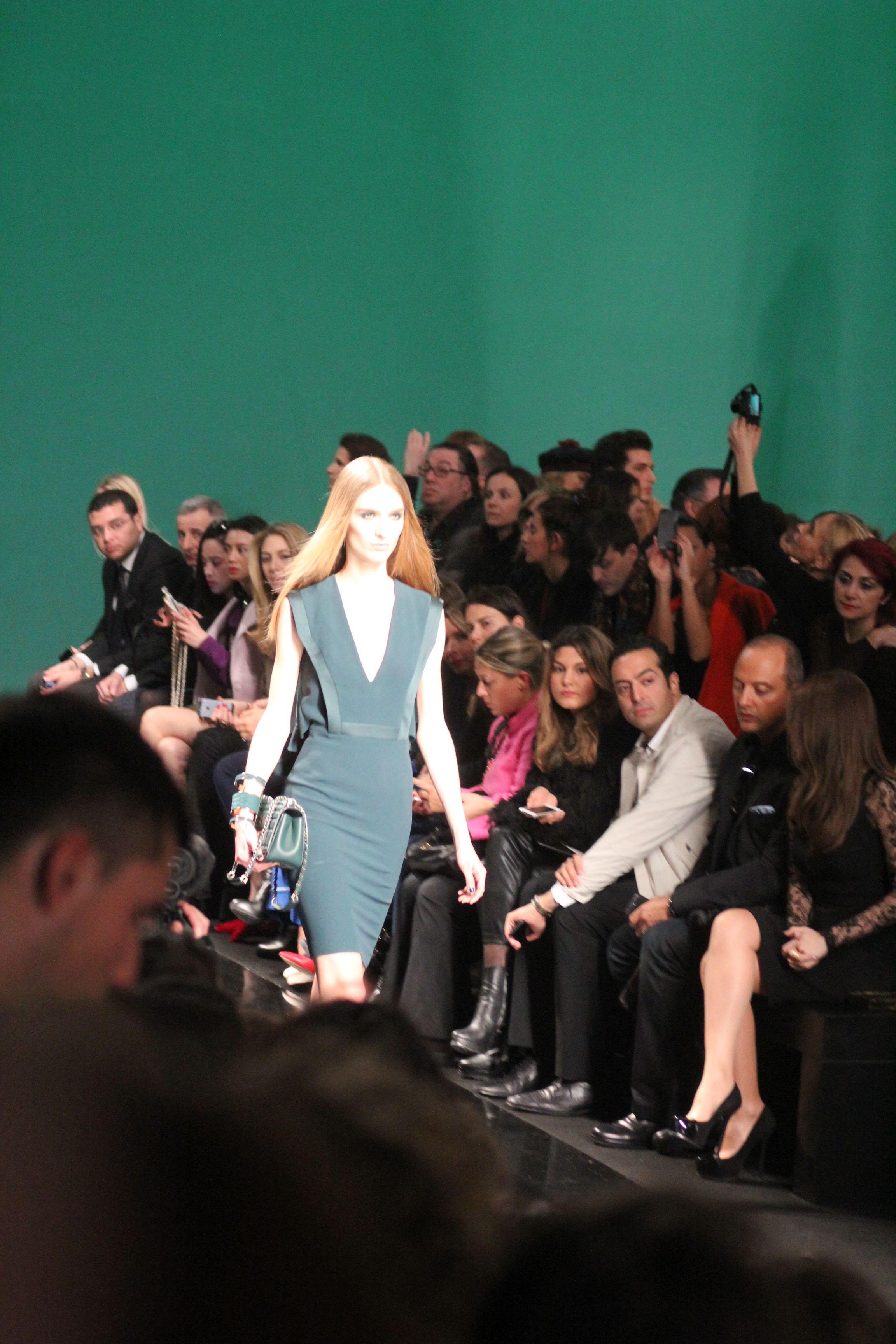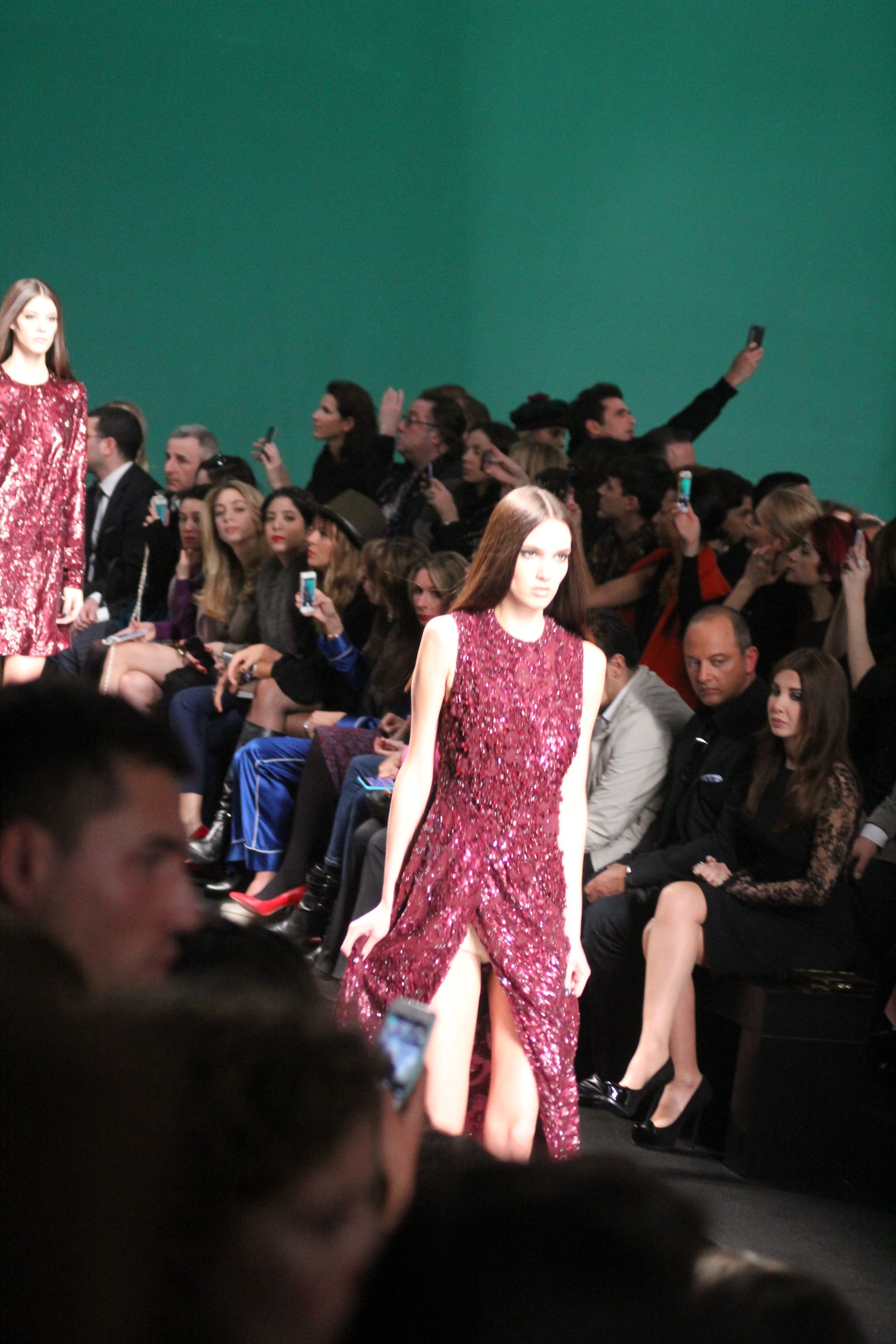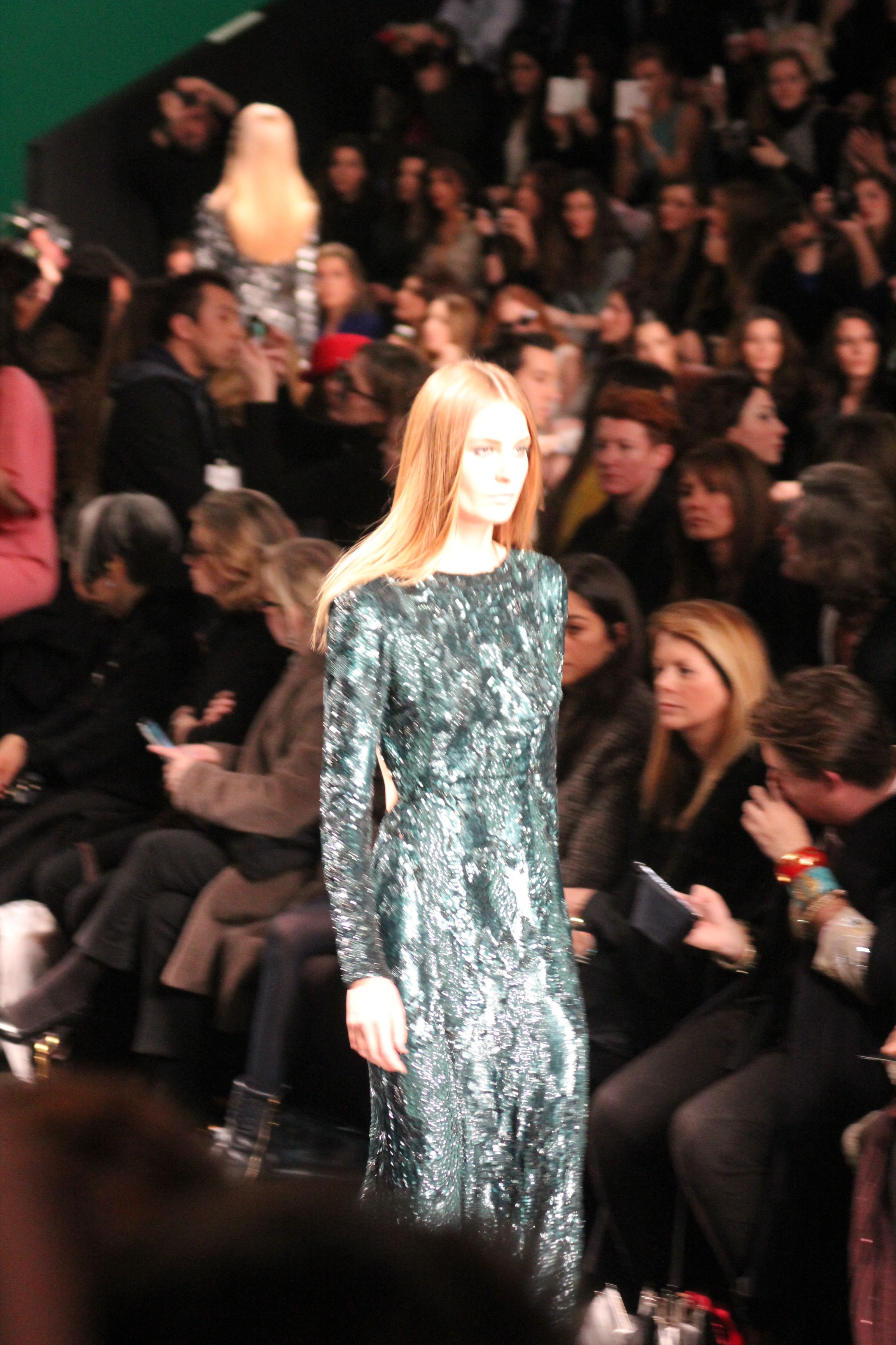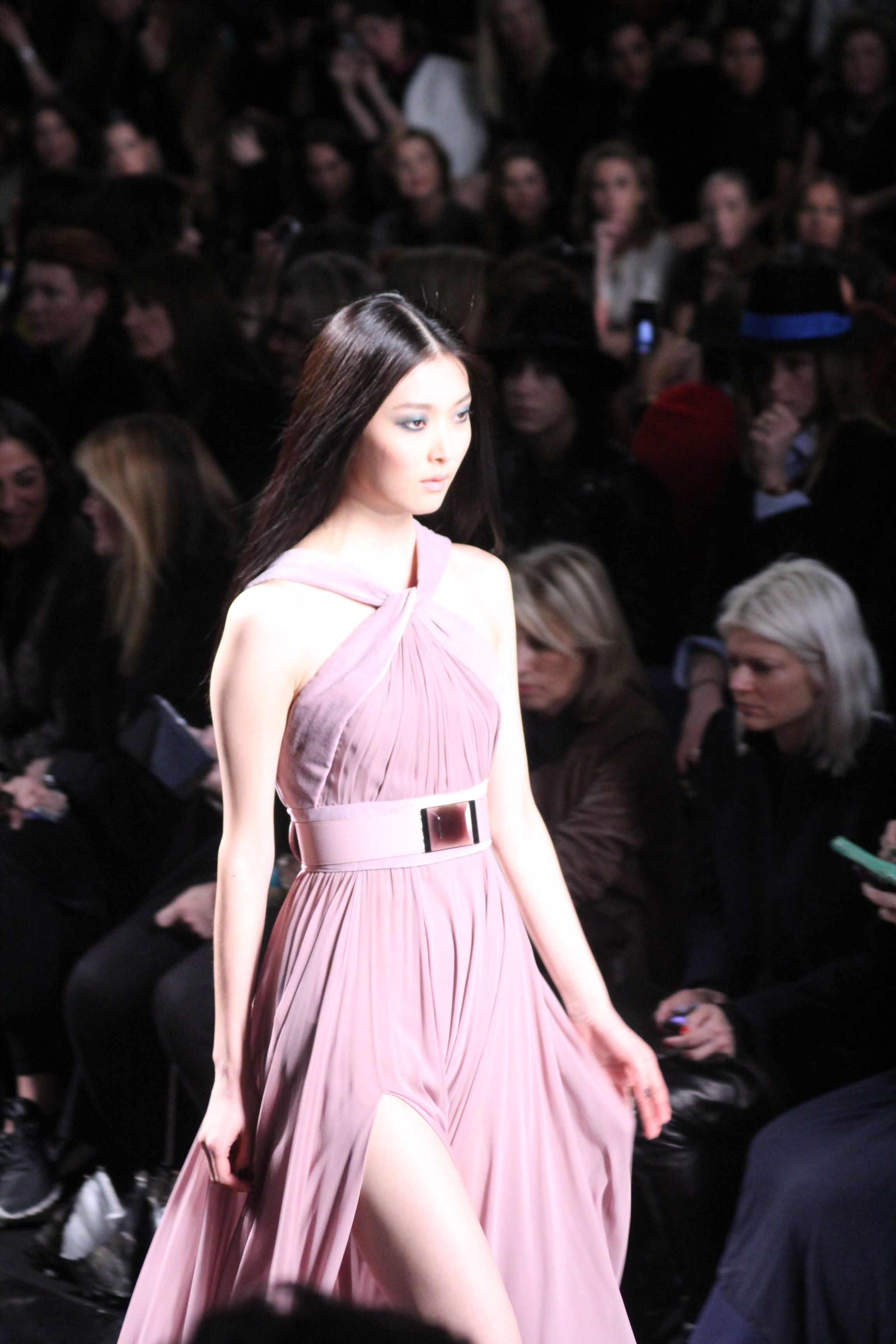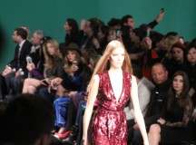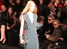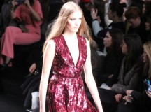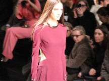 Pour cette collection automne hiver 2014-2015, Elie Saab propose un collection minimaliste, graphique et lumineuse. Inspirée d’abord par Mark Rohtko, elle est vouée comme son oeuvre à la couleur : ici rouge profond et vert empire, maître des corps, sculptent l’allure de manière envoutante. Chaque nuance est prétexte à recourir à une déclinaison de lignes asymétriques qui rappellent celles très structurées des années 50-60.
