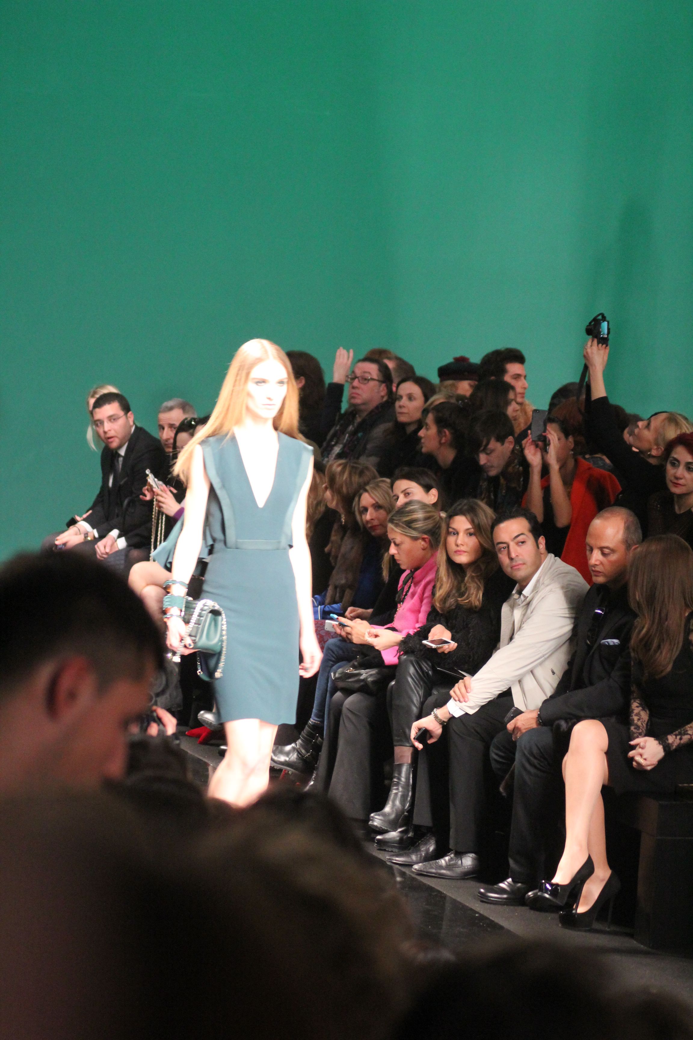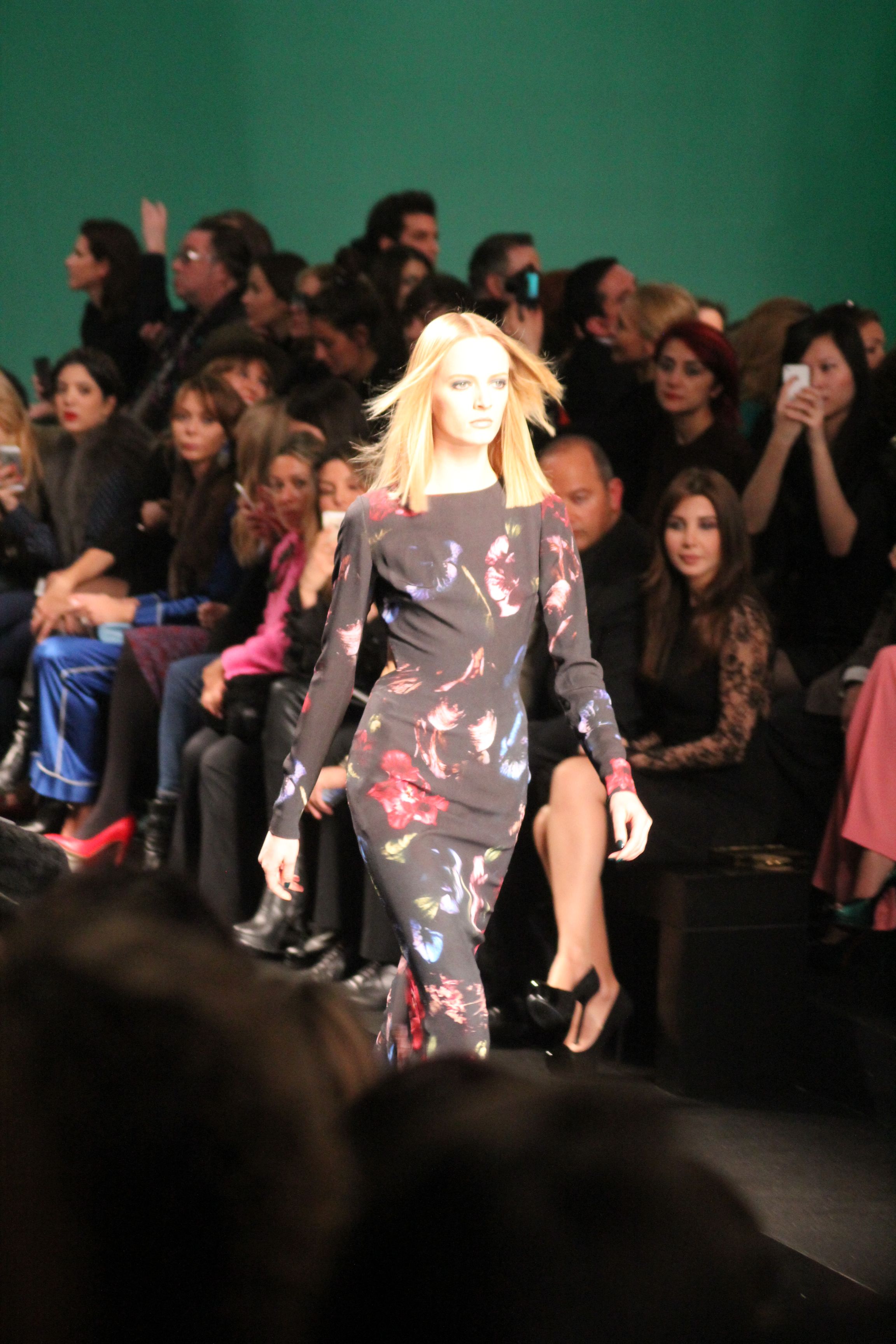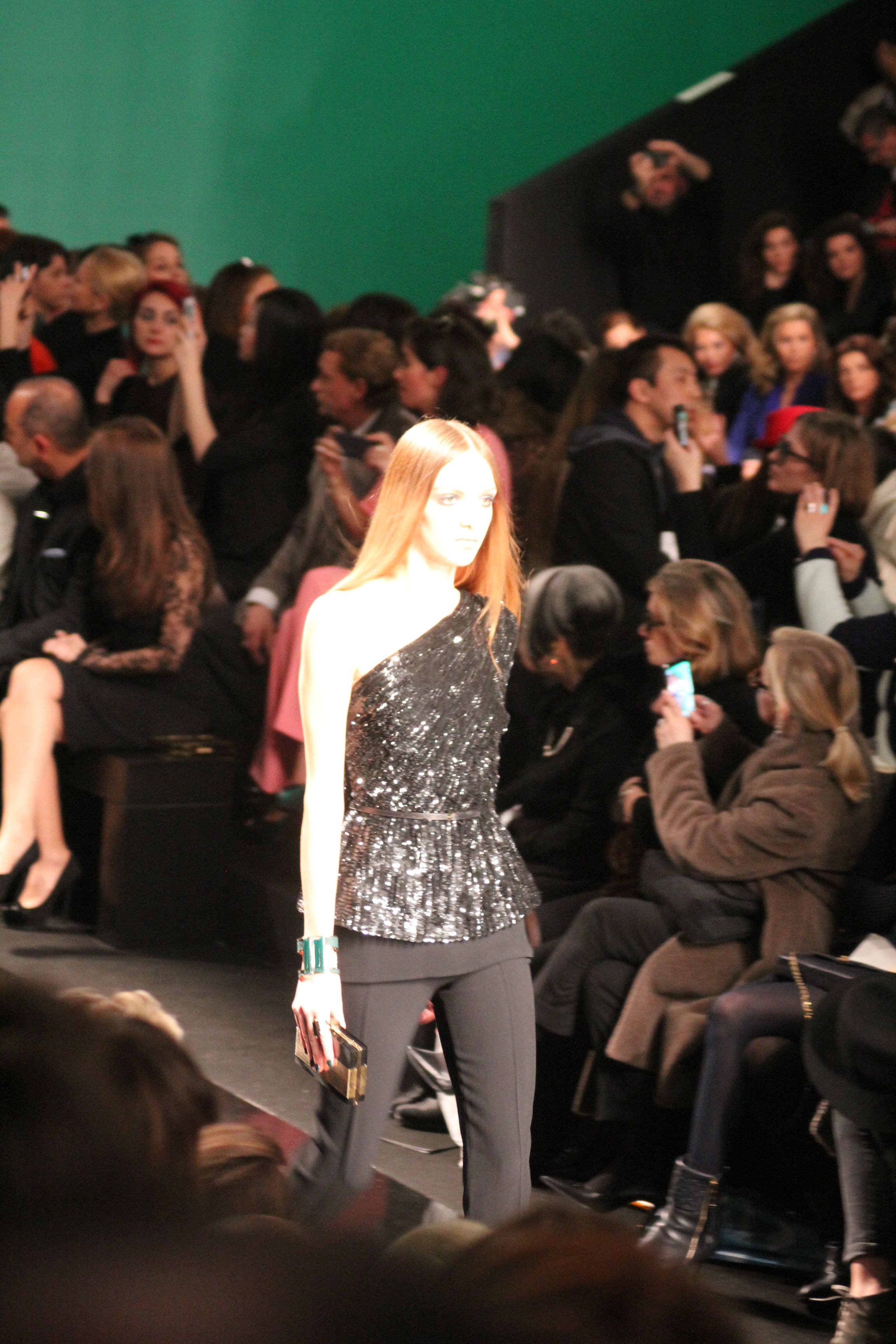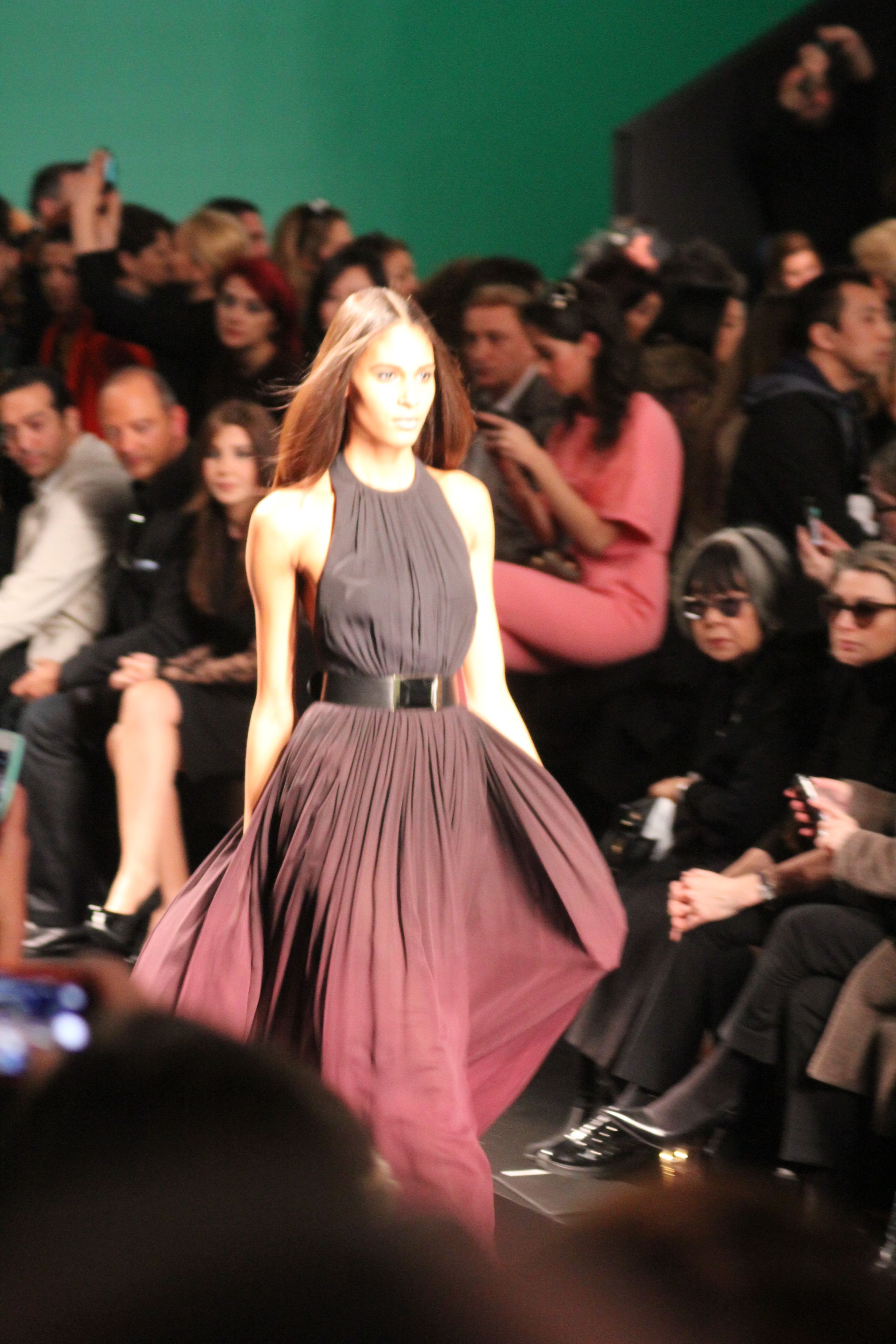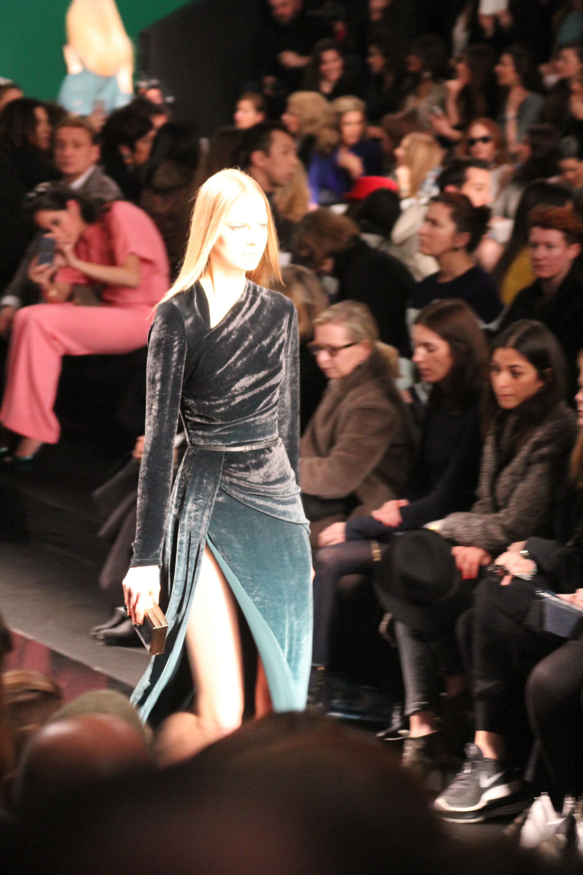 Pour cette collection automne hiver 2014-2015, Elie Saab propose un collection minimaliste, graphique et lumineuse. Inspirée d’abord par Mark Rohtko, elle est vouée comme son oeuvre à la couleur : ici rouge profond et vert empire, maître des corps, sculptent l’allure de manière envoutante. Chaque nuance est prétexte à recourir à une déclinaison de lignes asymétriques qui rappellent celles très structurées des années 50-60.