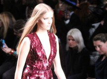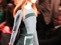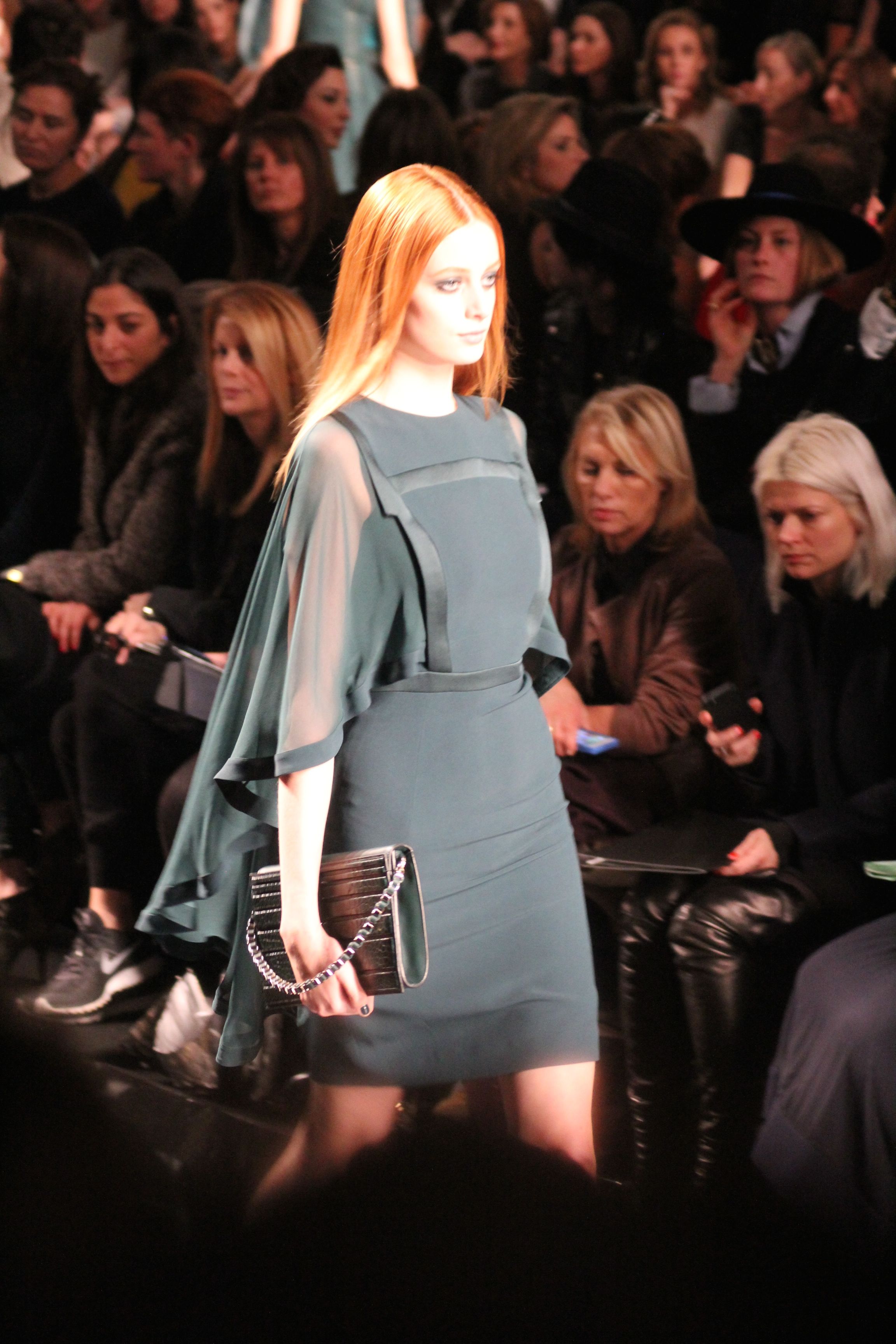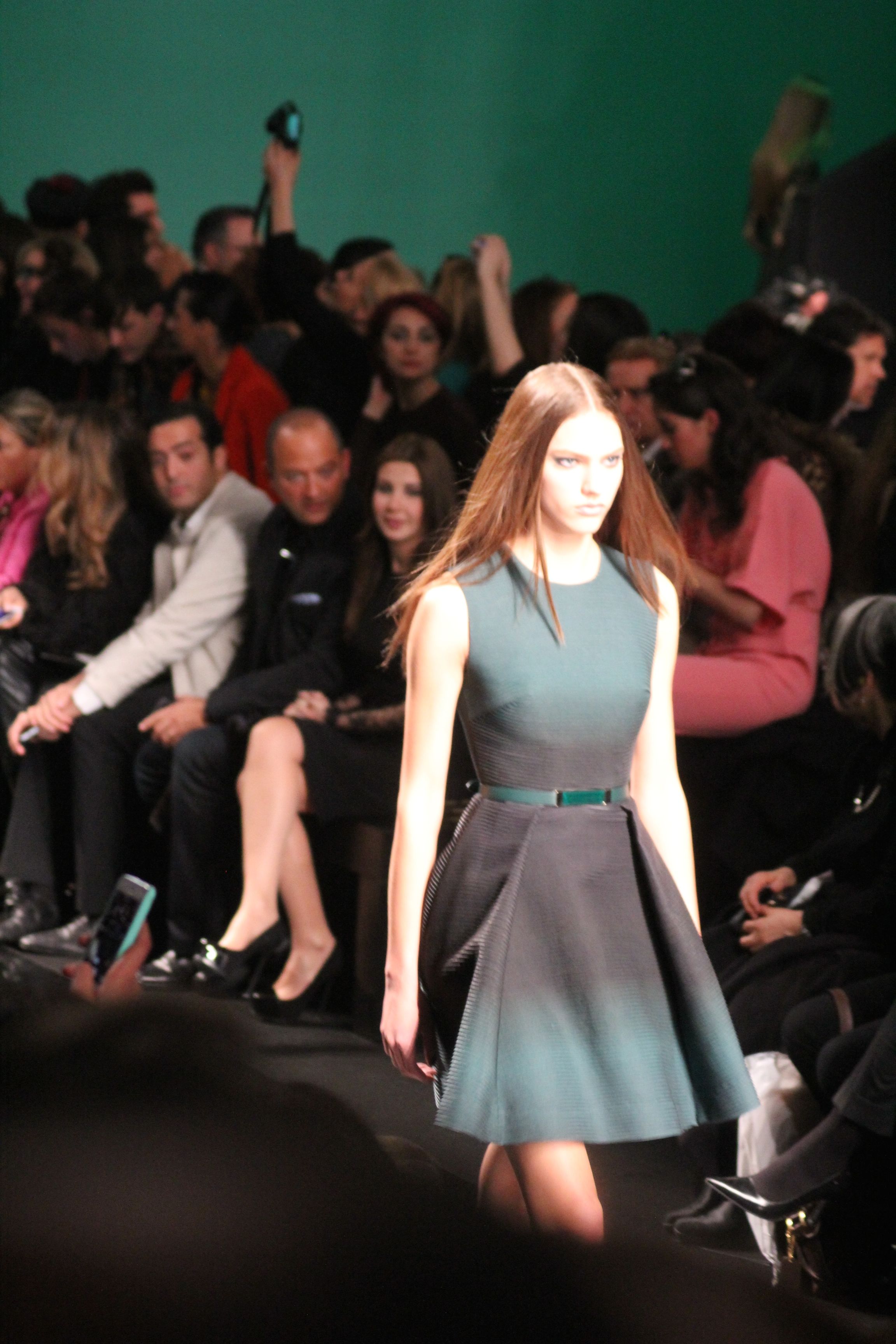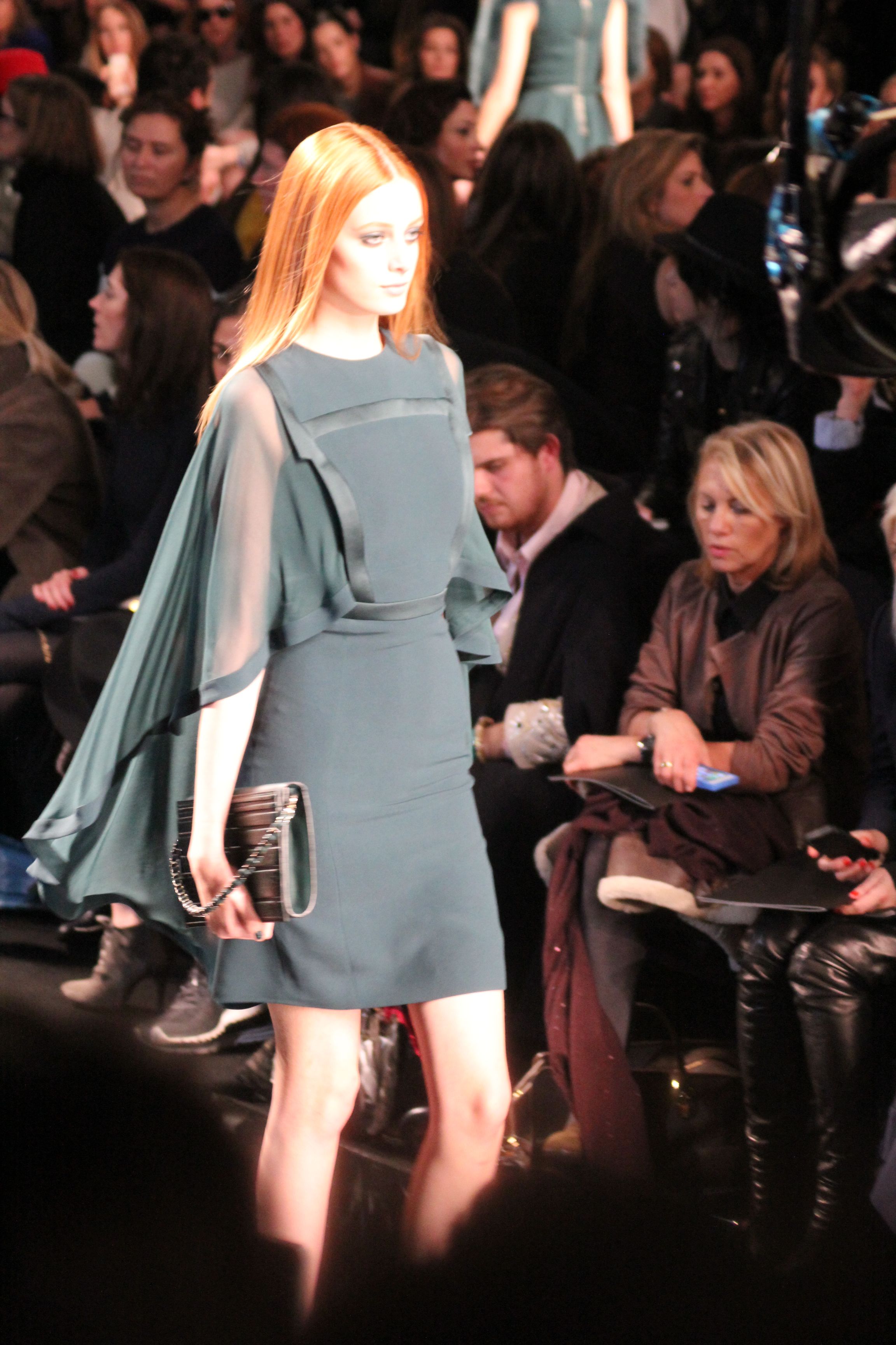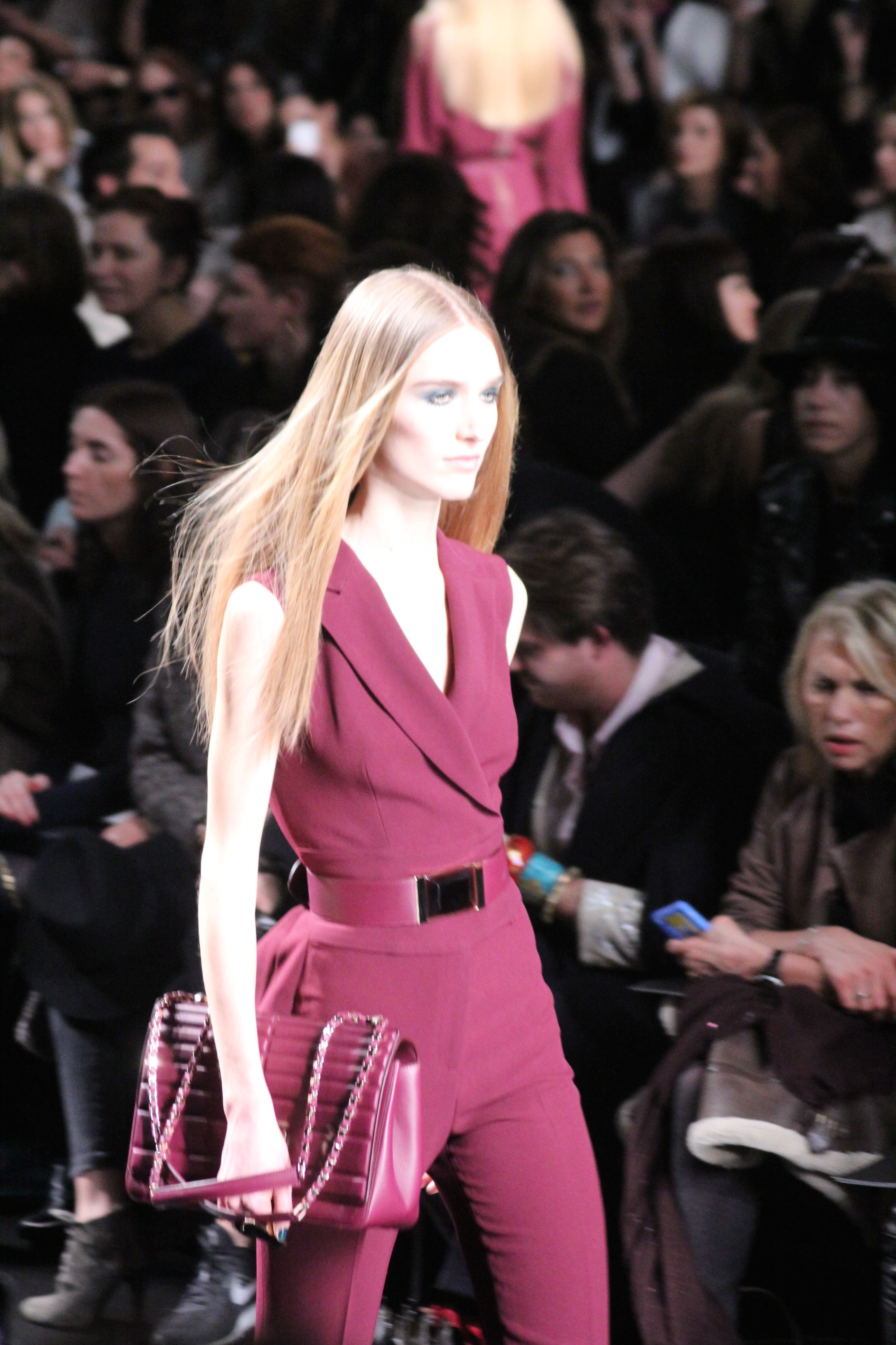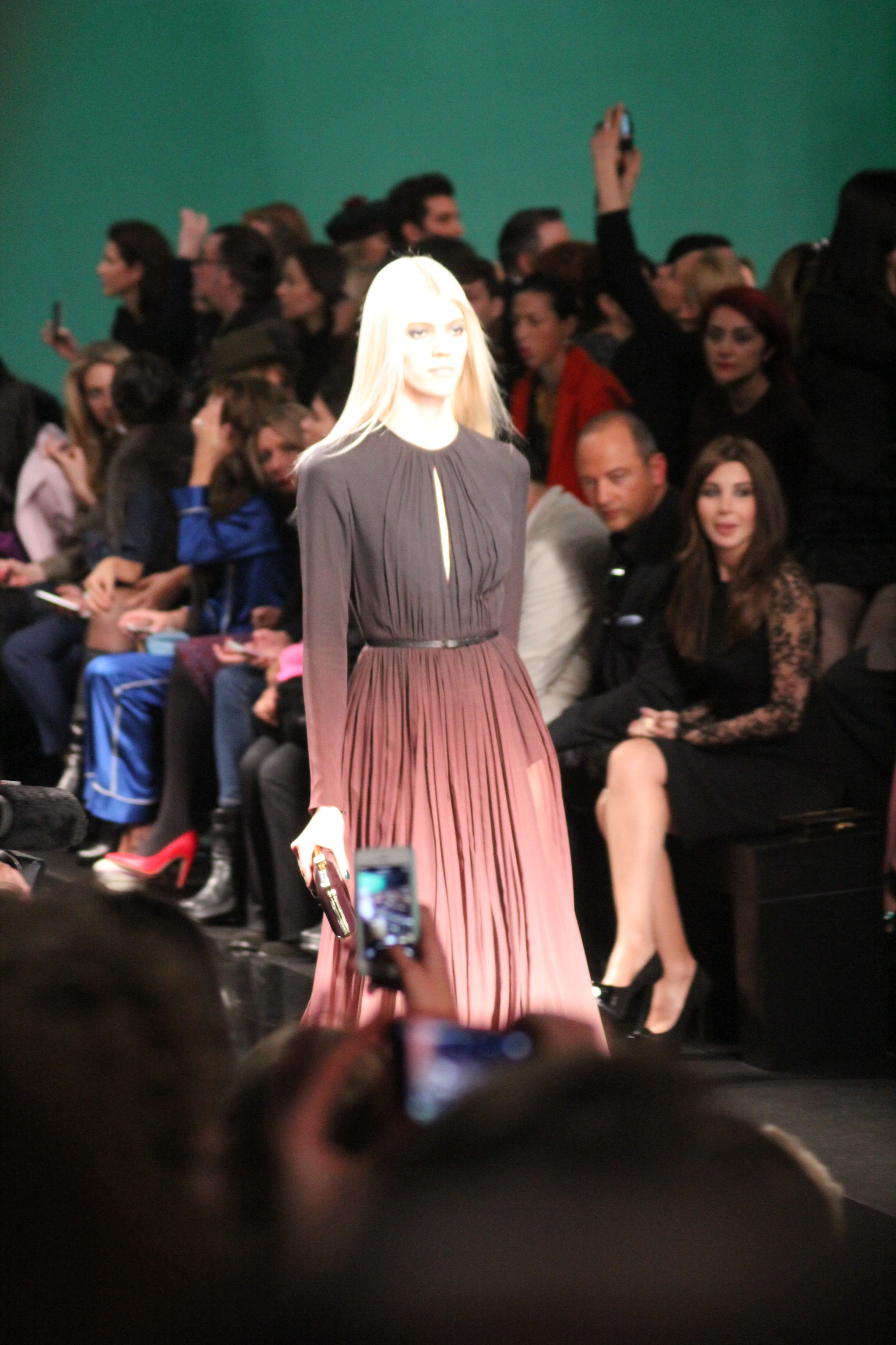 Pour cette collection automne hiver 2014-2015, Elie Saab propose un collection minimaliste, graphique et lumineuse. Inspirée d’abord par Mark Rohtko, elle est vouée comme son oeuvre à la couleur : ici rouge profond et vert empire, maître des corps, sculptent l’allure de manière envoutante. Chaque nuance est prétexte à recourir à une déclinaison de lignes asymétriques qui rappellent celles très structurées des années 50-60.