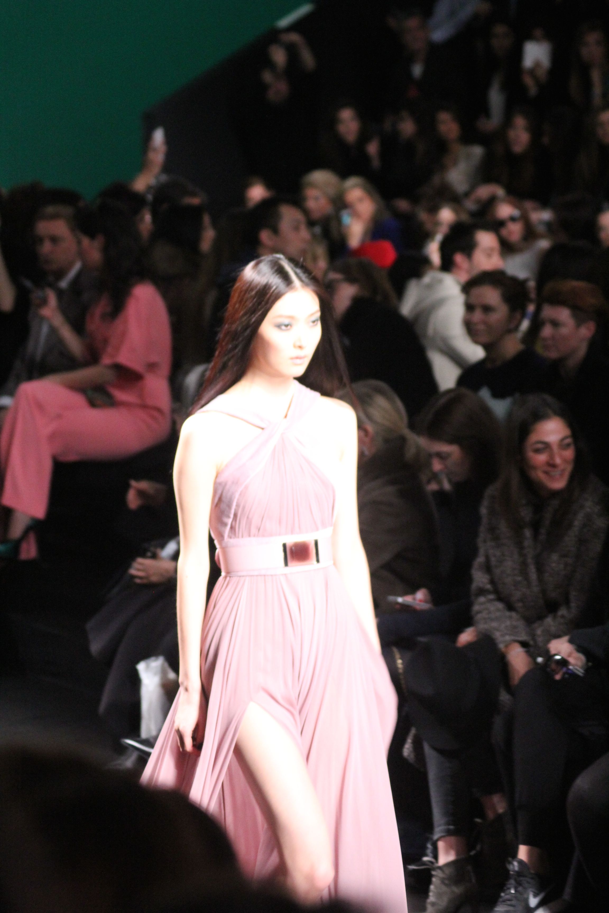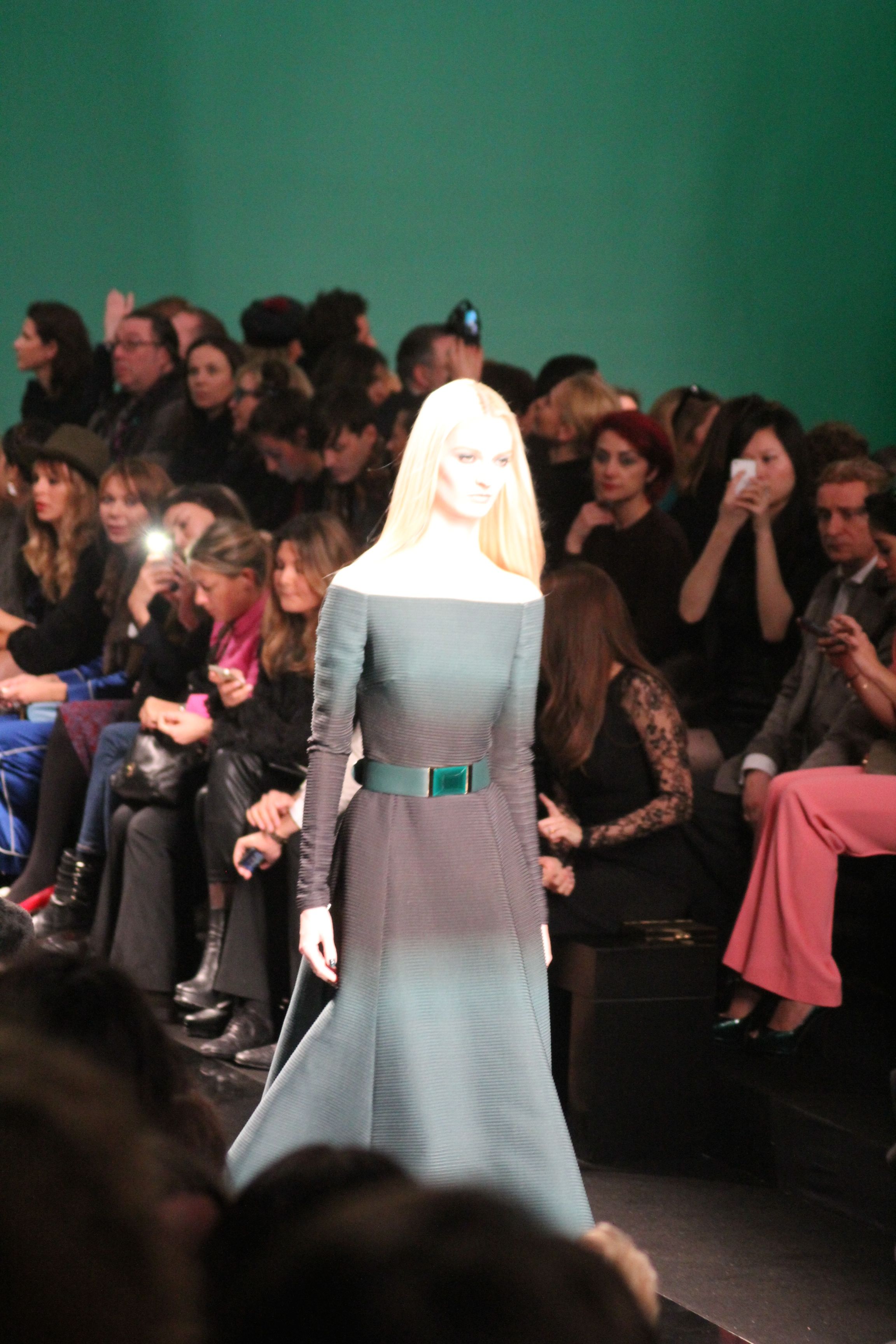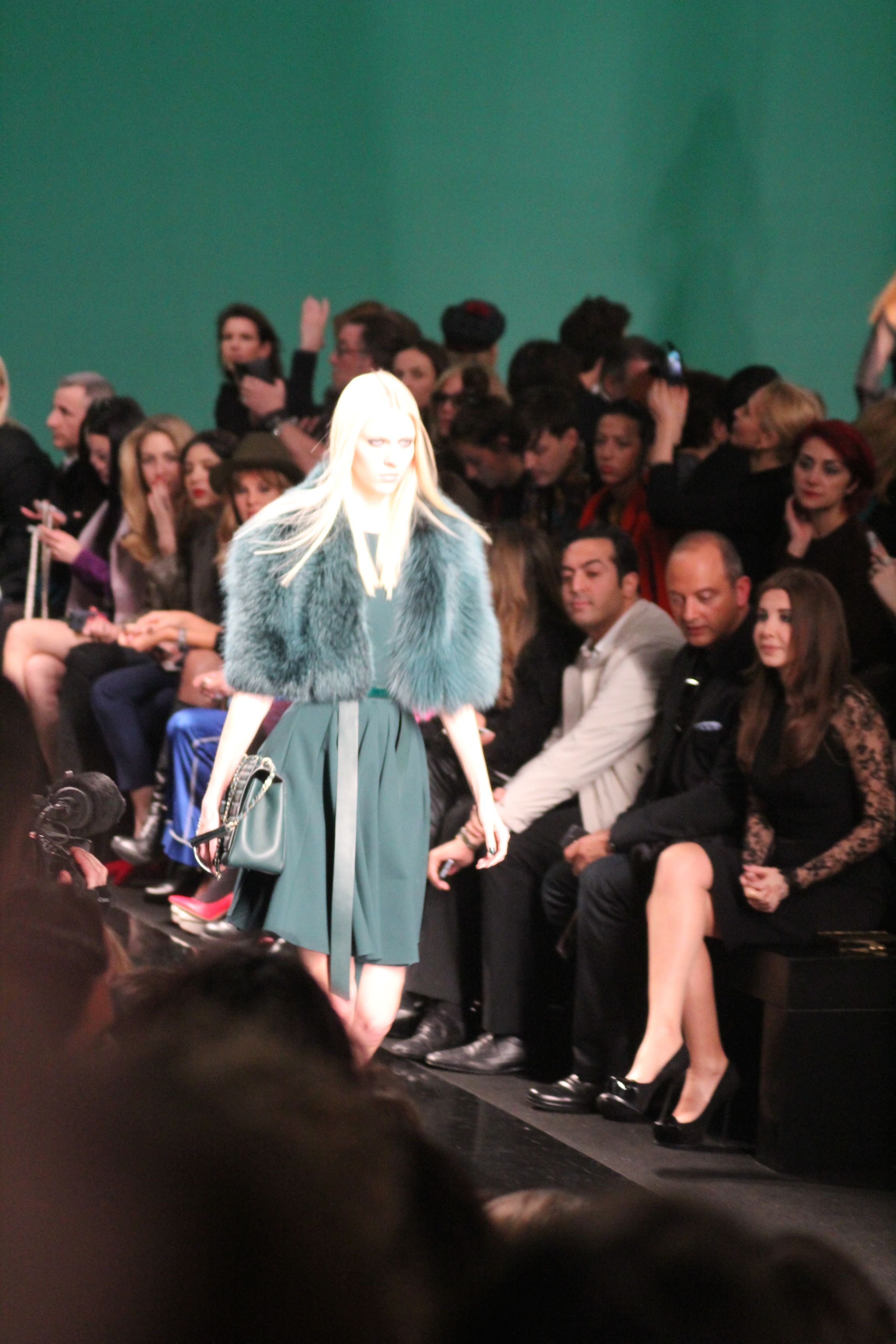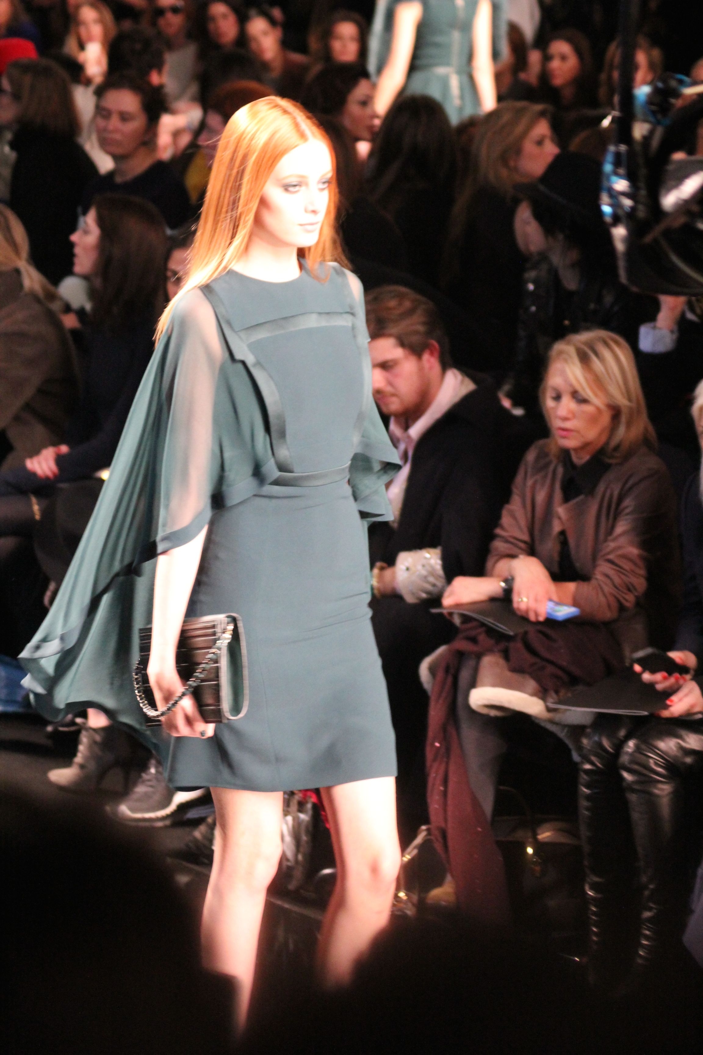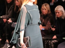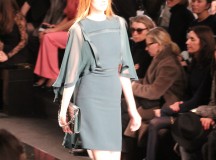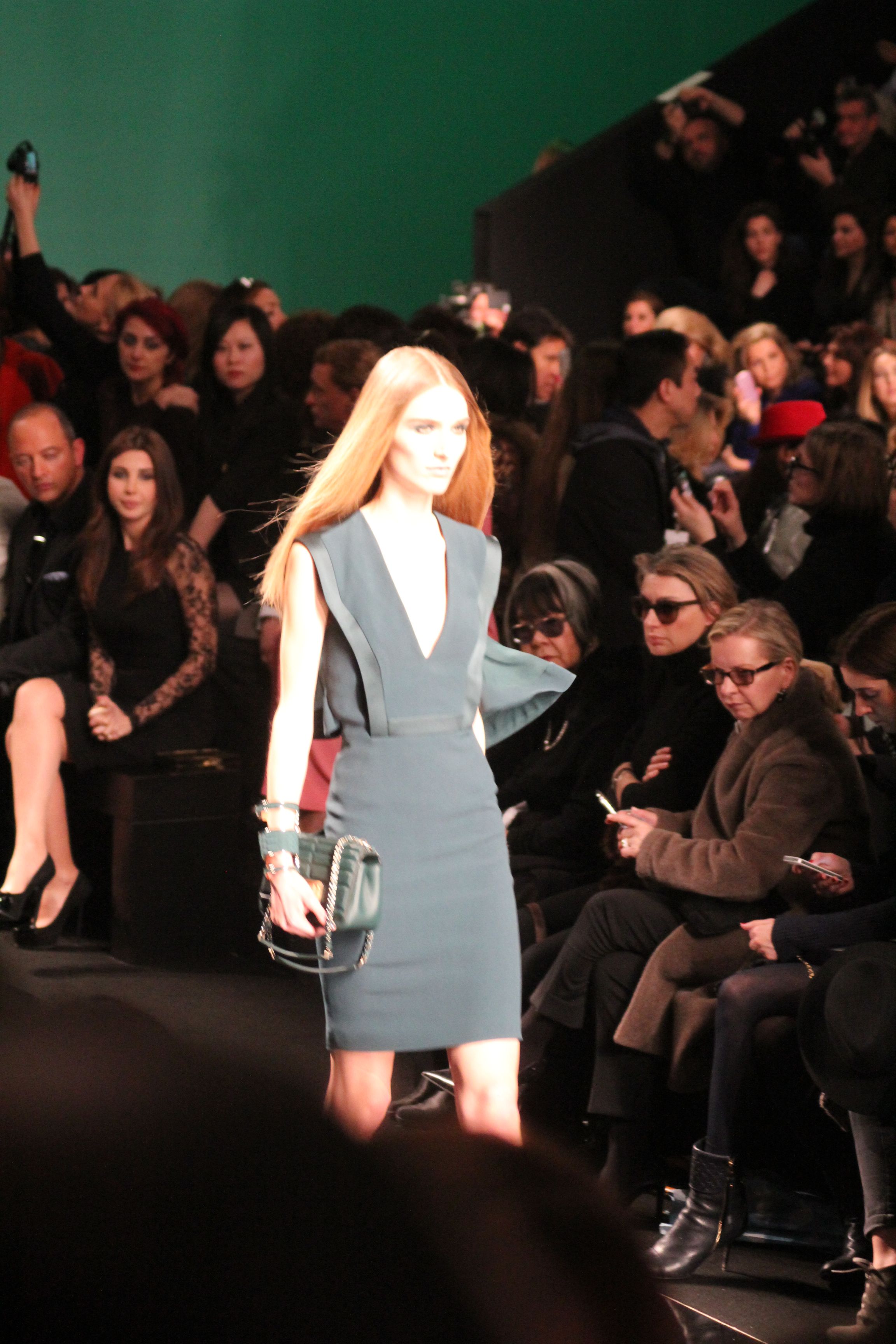 Pour cette collection automne hiver 2014-2015, Elie Saab propose un collection minimaliste, graphique et lumineuse. Inspirée d’abord par Mark Rohtko, elle est vouée comme son oeuvre à la couleur : ici rouge profond et vert empire, maître des corps, sculptent l’allure de manière envoutante. Chaque nuance est prétexte à recourir à une déclinaison de lignes asymétriques qui rappellent celles très structurées des années 50-60.