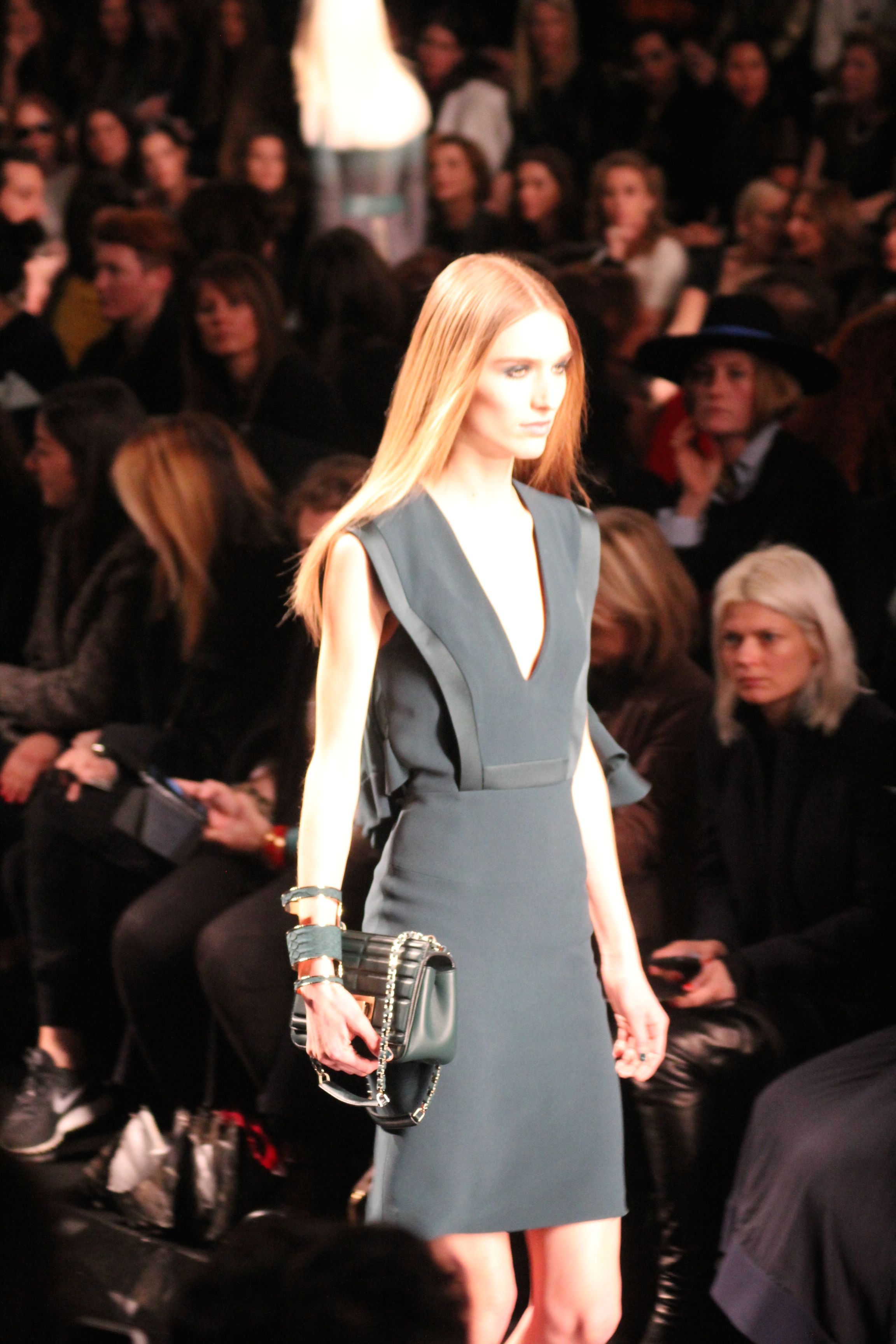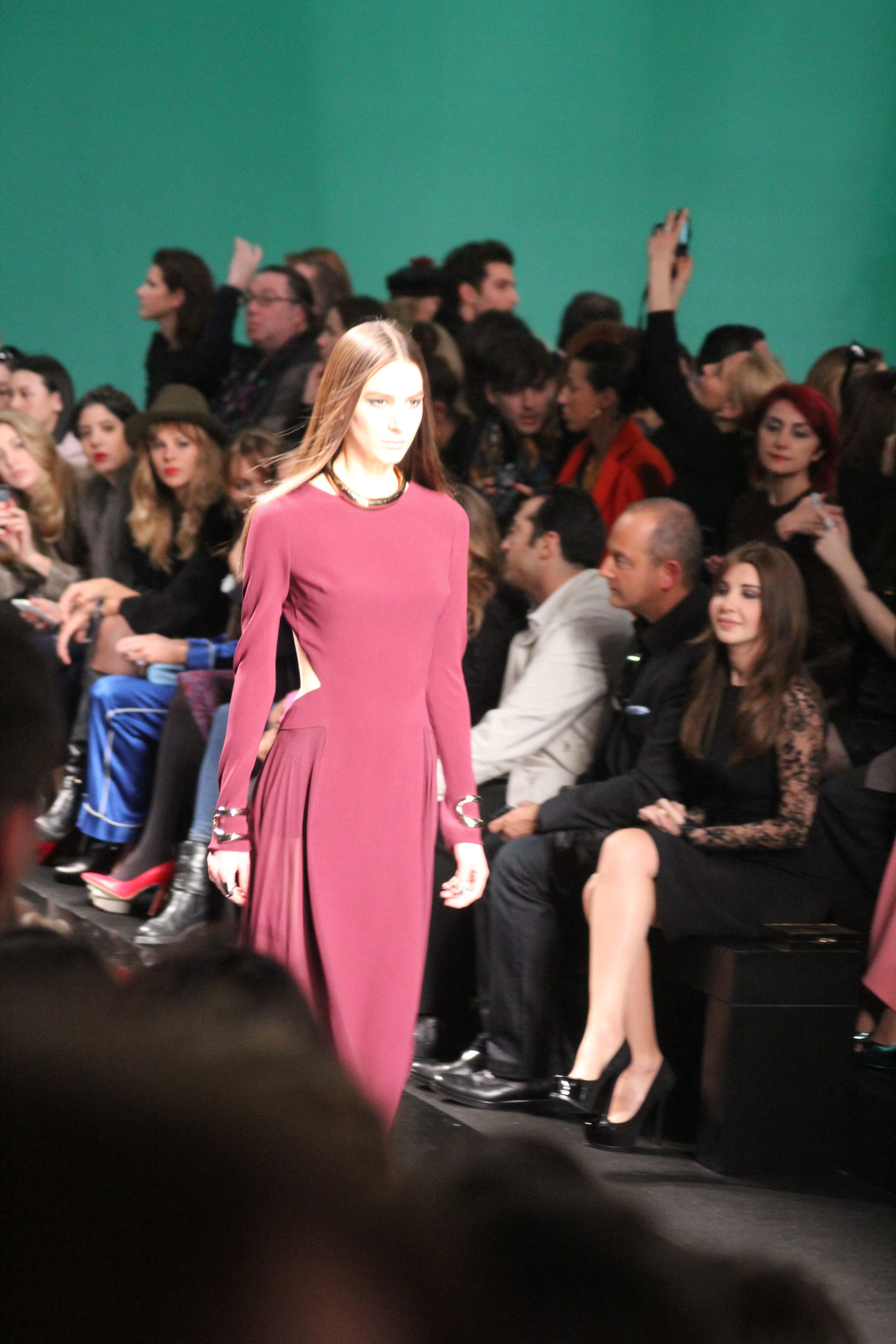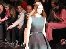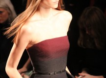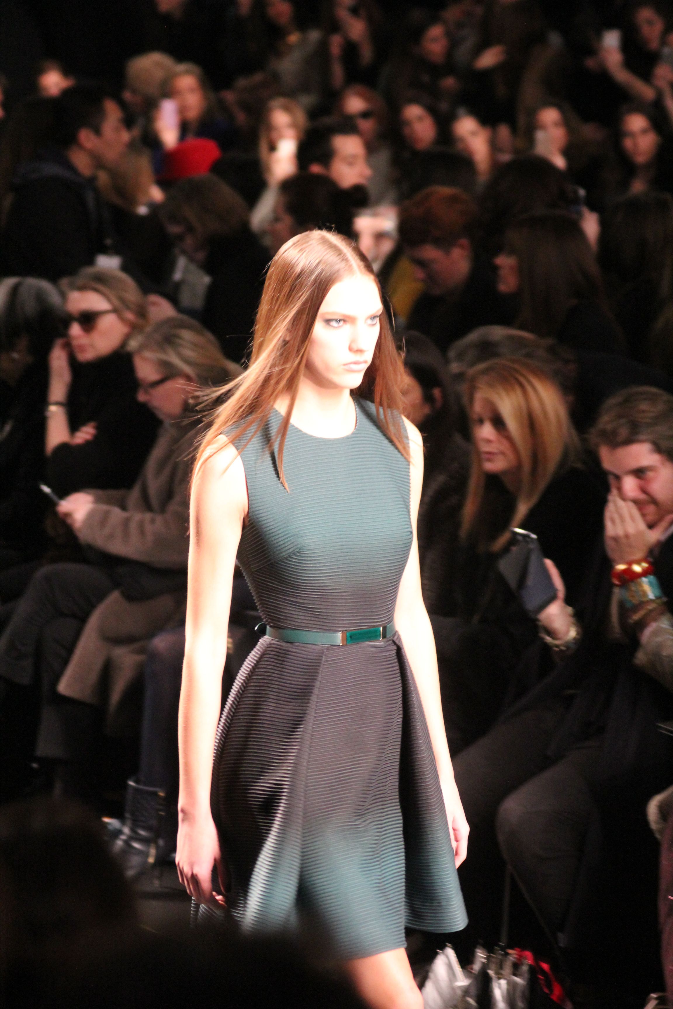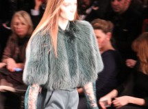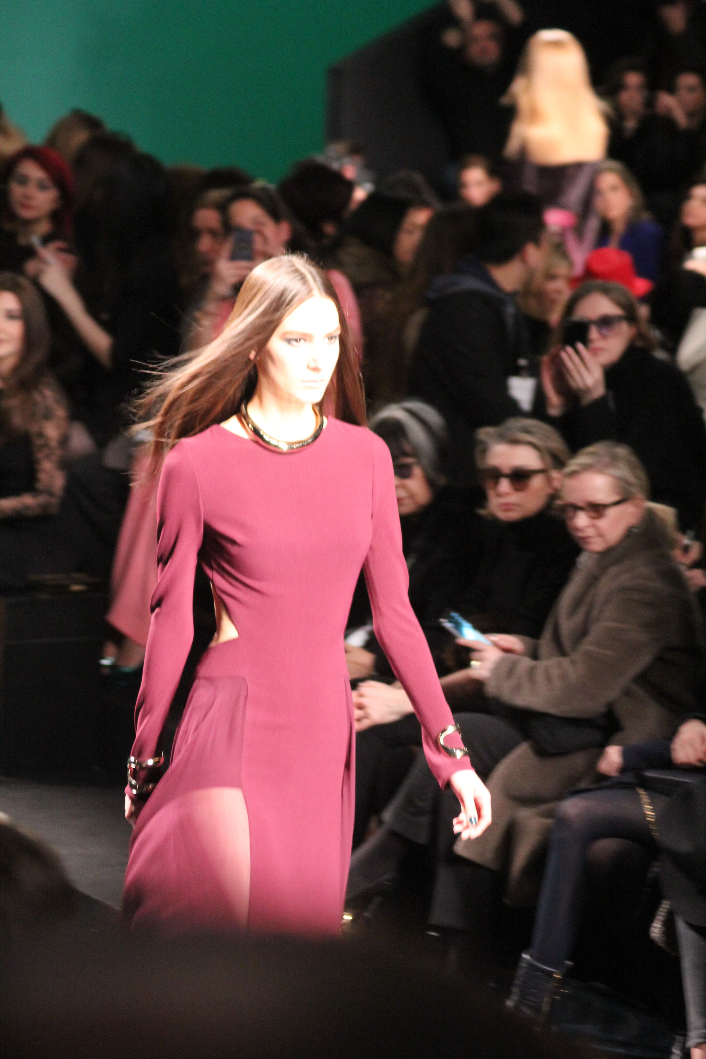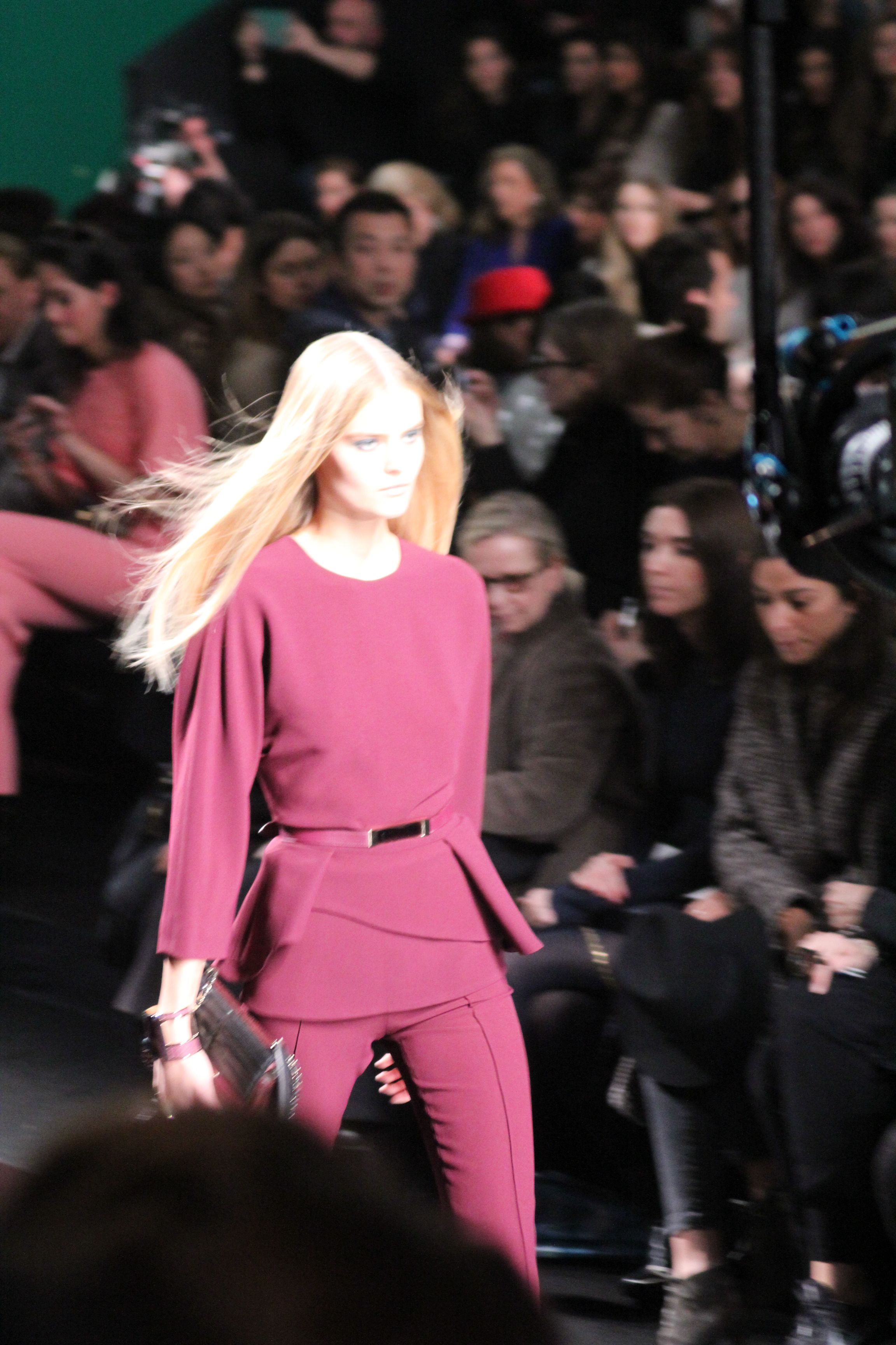 Pour cette collection automne hiver 2014-2015, Elie Saab propose un collection minimaliste, graphique et lumineuse. Inspirée d’abord par Mark Rohtko, elle est vouée comme son oeuvre à la couleur : ici rouge profond et vert empire, maître des corps, sculptent l’allure de manière envoutante. Chaque nuance est prétexte à recourir à une déclinaison de lignes asymétriques qui rappellent celles très structurées des années 50-60.