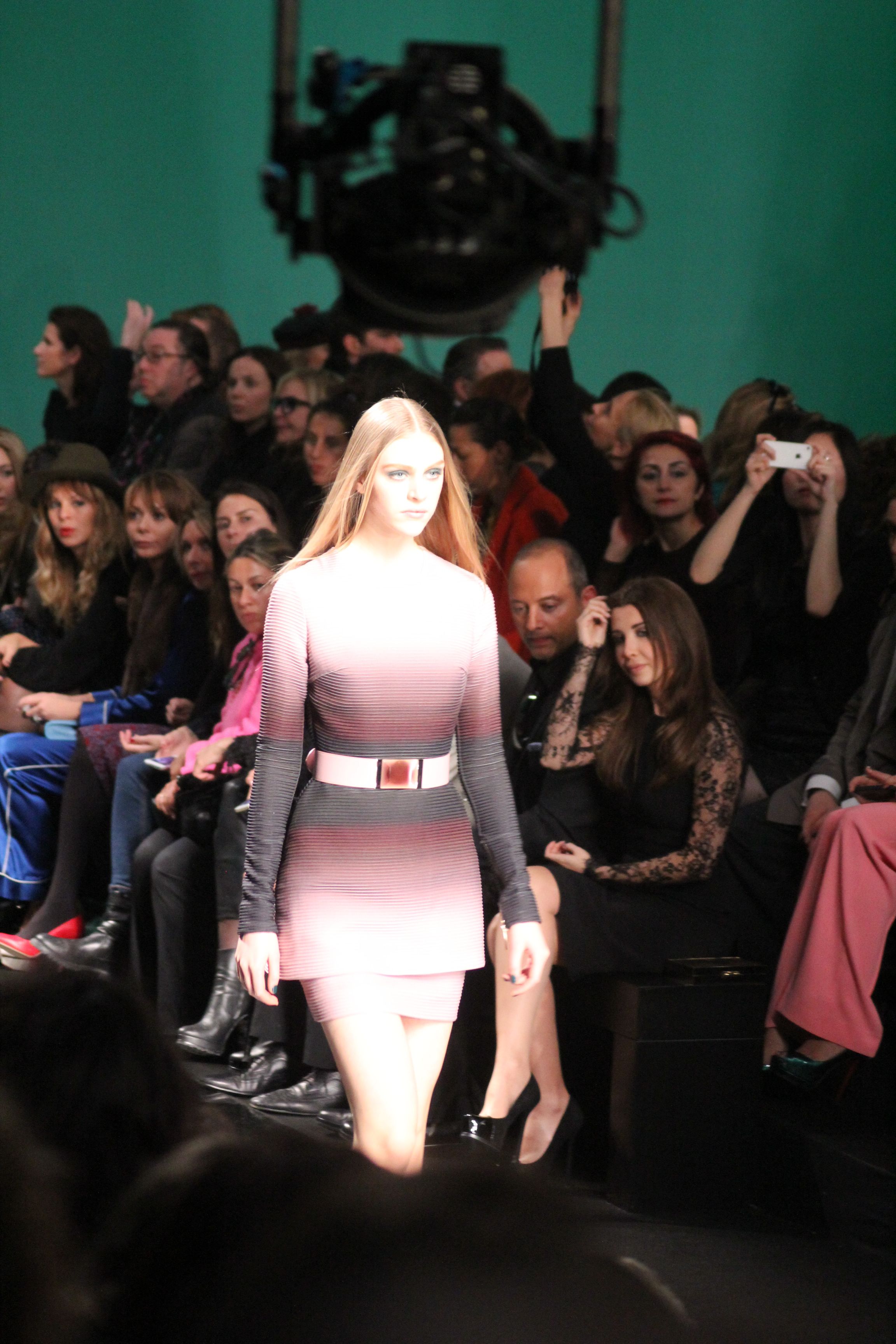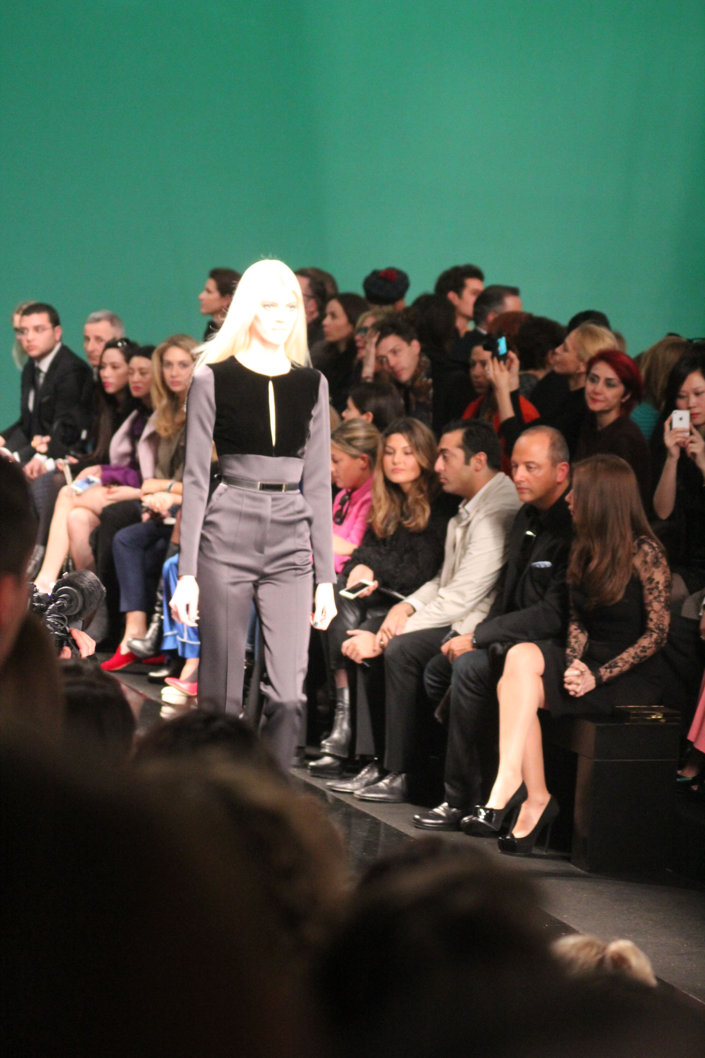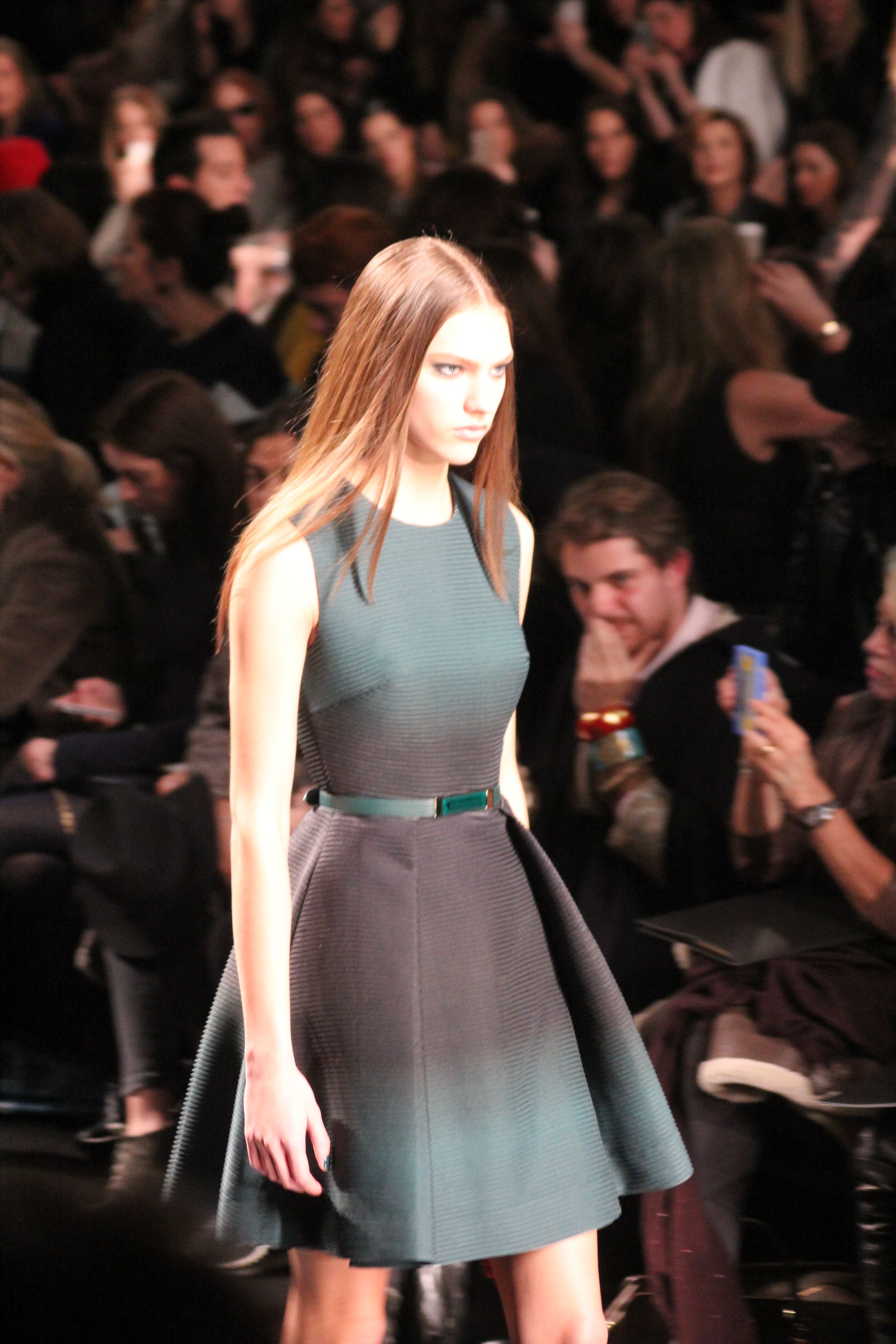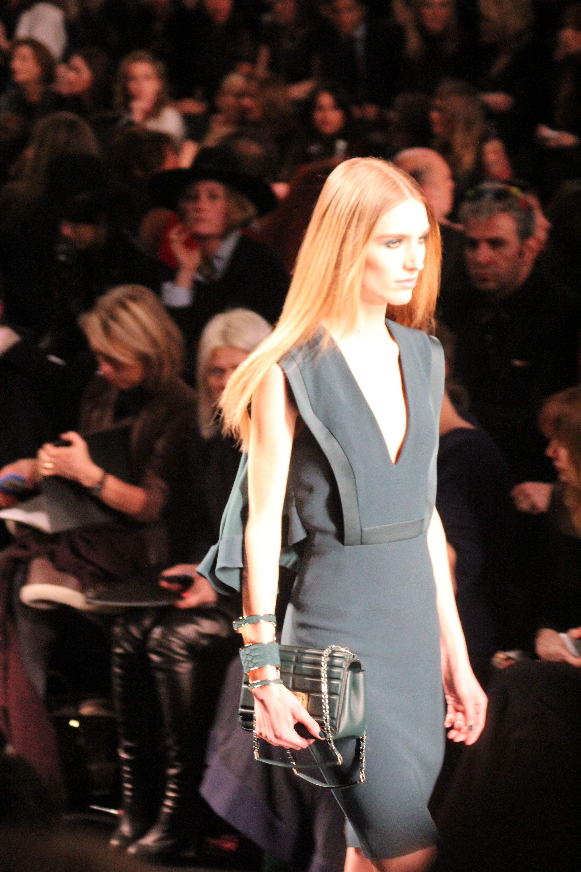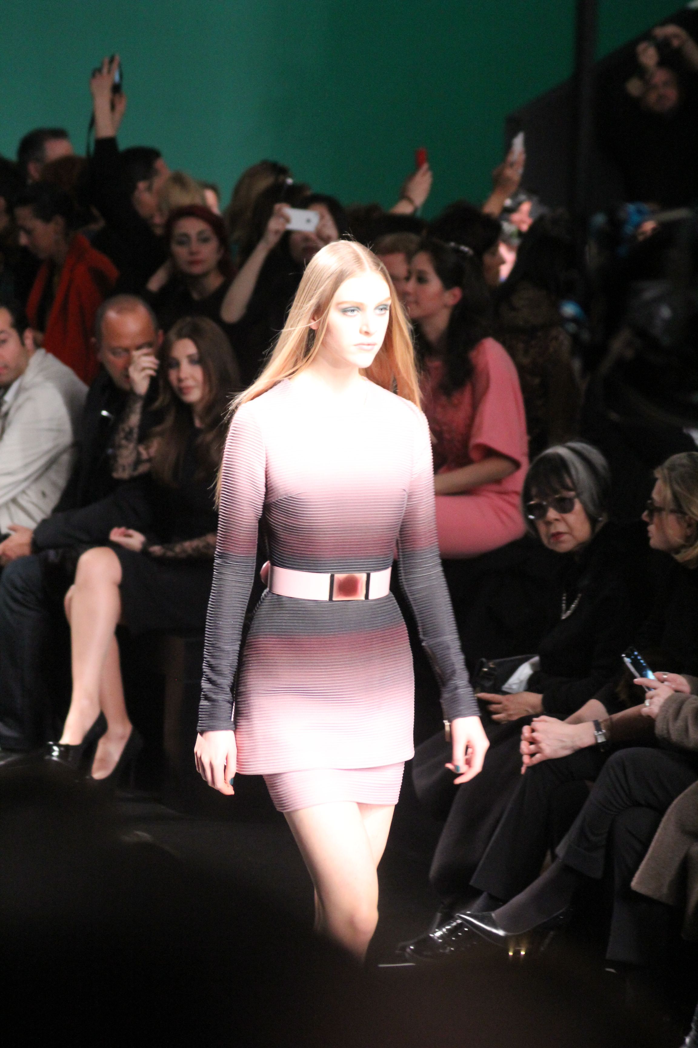 Pour cette collection automne hiver 2014-2015, Elie Saab propose un collection minimaliste, graphique et lumineuse. Inspirée d’abord par Mark Rohtko, elle est vouée comme son oeuvre à la couleur : ici rouge profond et vert empire, maître des corps, sculptent l’allure de manière envoutante. Chaque nuance est prétexte à recourir à une déclinaison de lignes asymétriques qui rappellent celles très structurées des années 50-60.