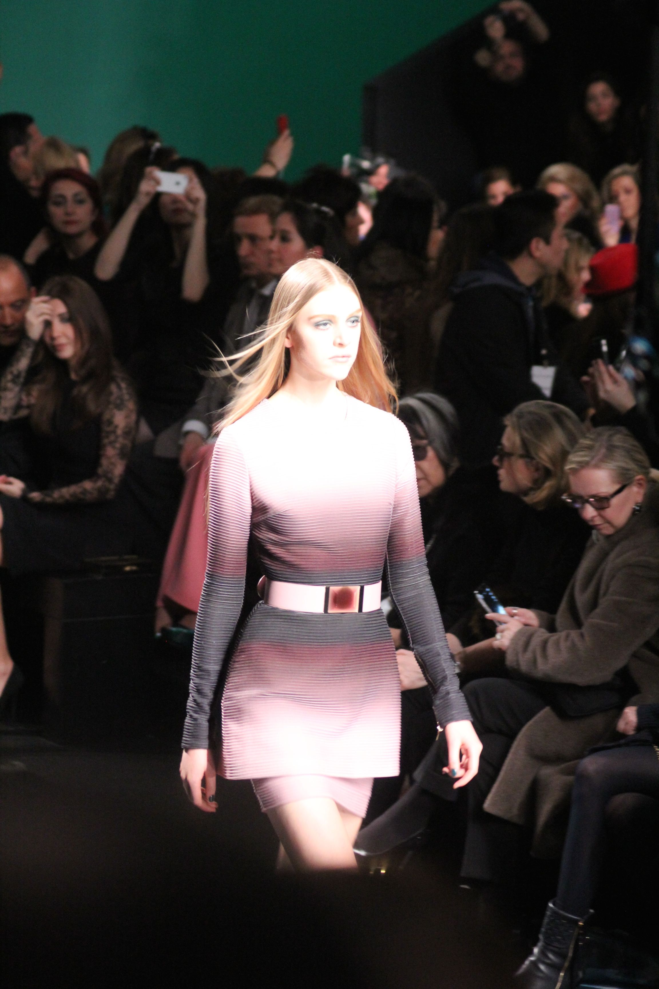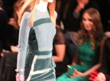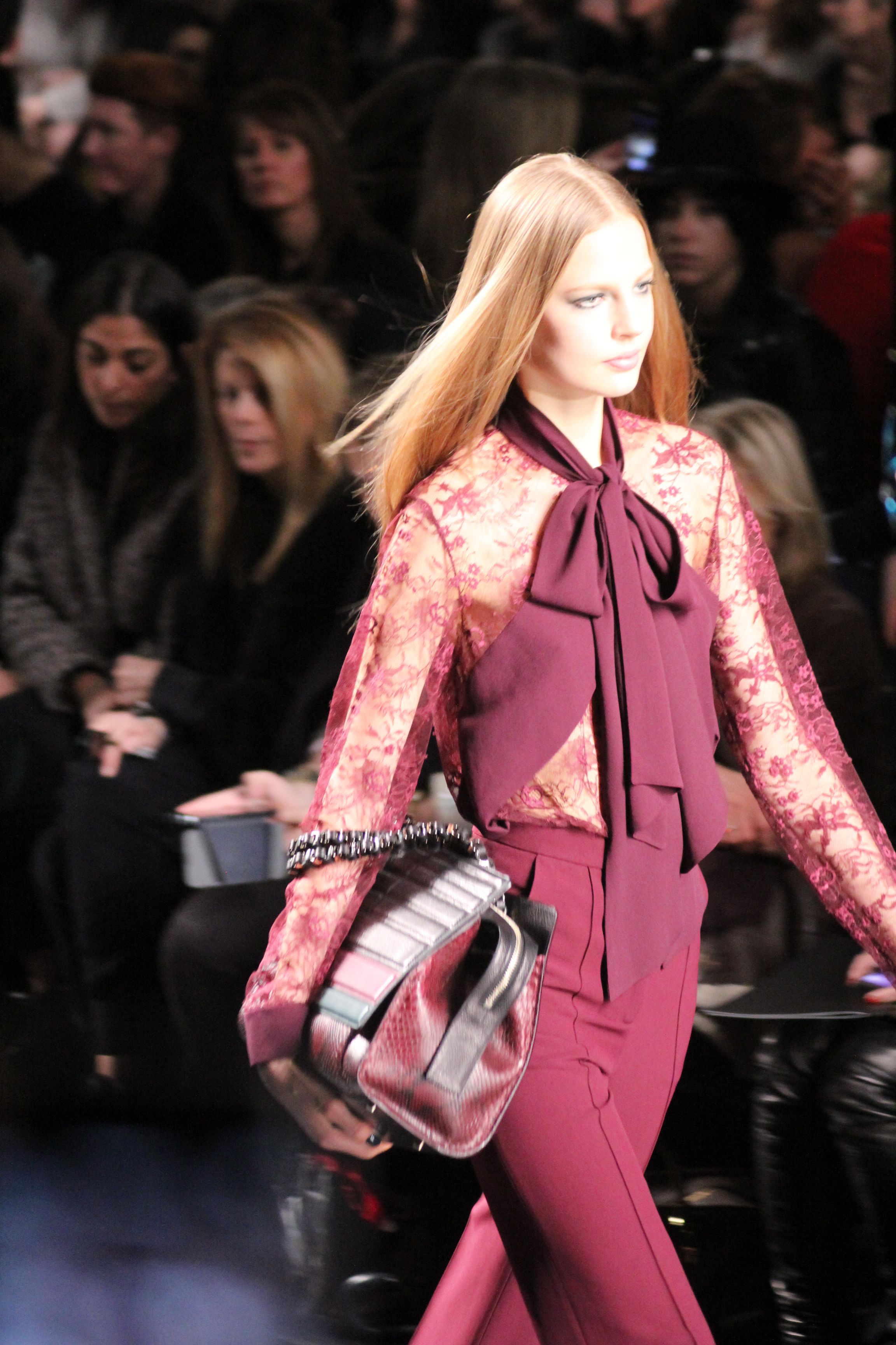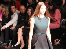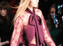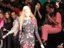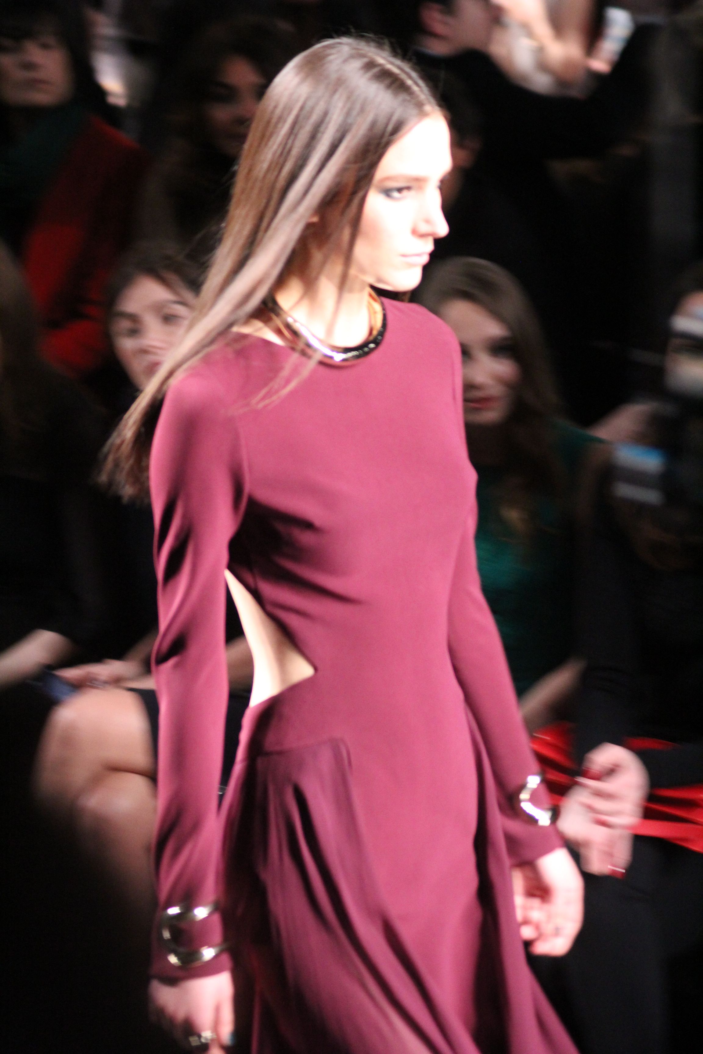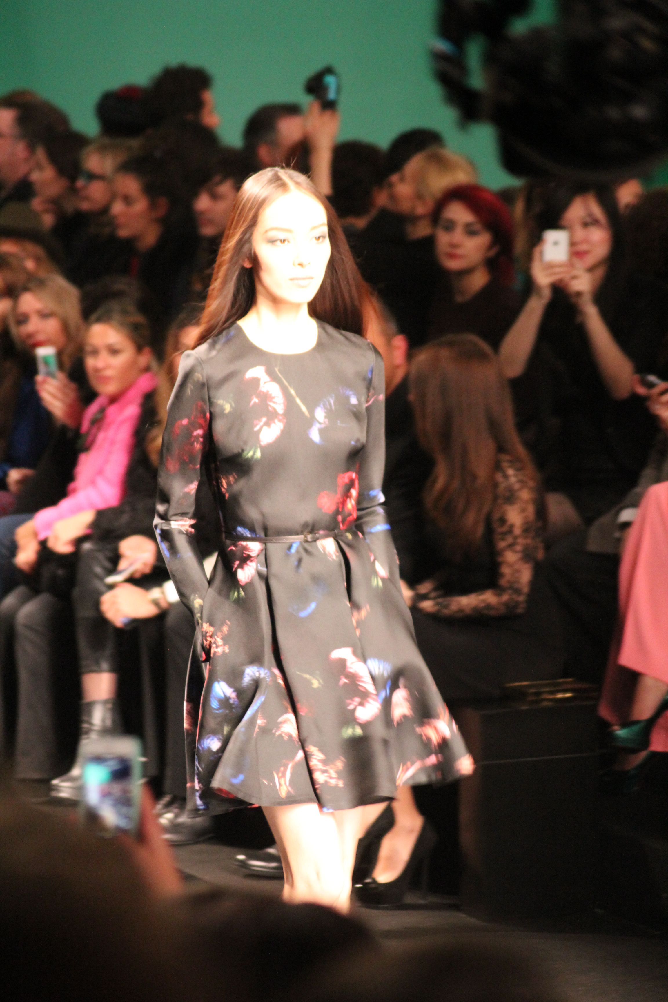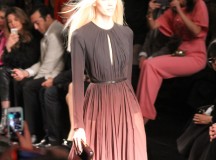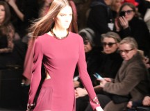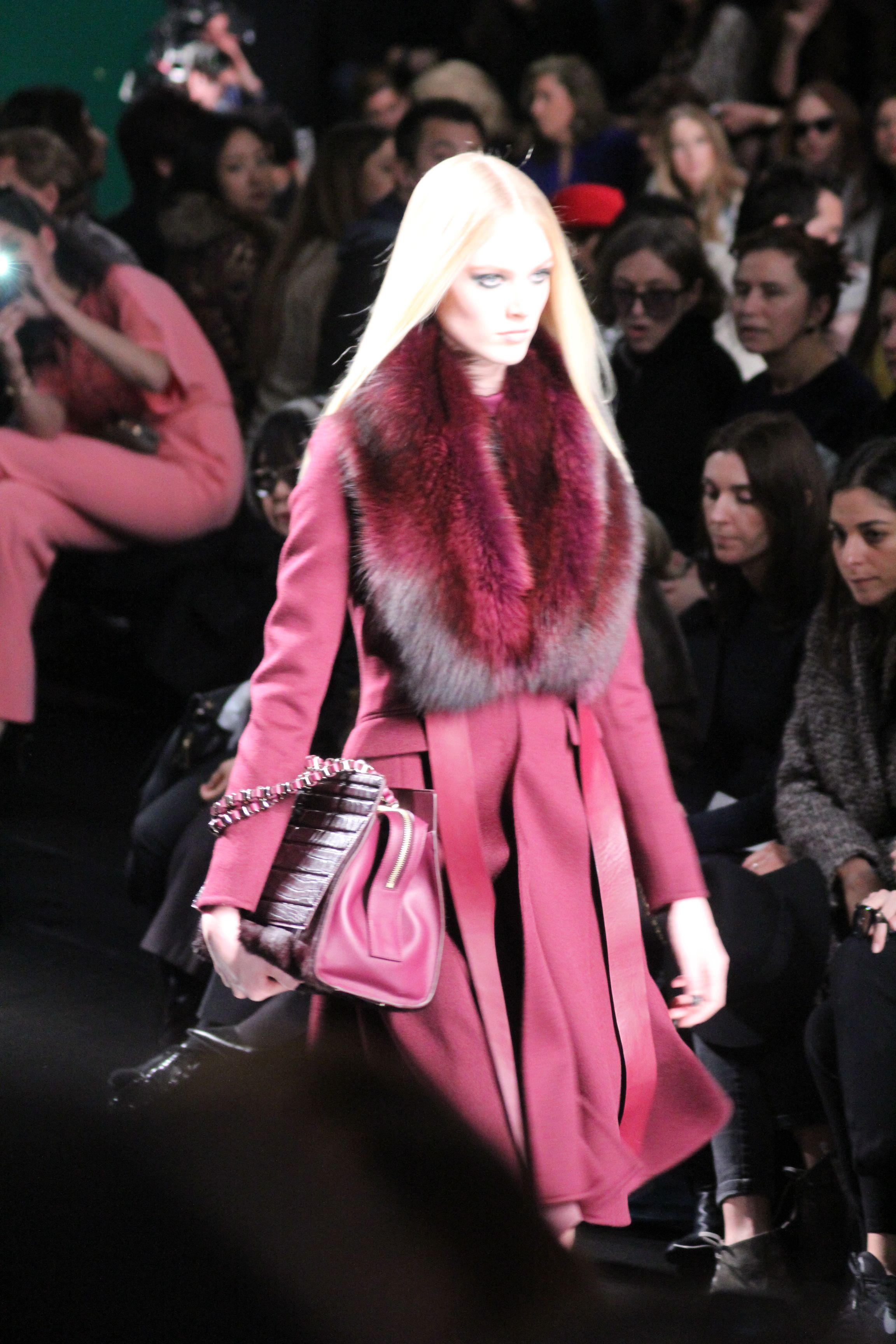 Pour cette collection automne hiver 2014-2015, Elie Saab propose un collection minimaliste, graphique et lumineuse. Inspirée d’abord par Mark Rohtko, elle est vouée comme son oeuvre à la couleur : ici rouge profond et vert empire, maître des corps, sculptent l’allure de manière envoutante. Chaque nuance est prétexte à recourir à une déclinaison de lignes asymétriques qui rappellent celles très structurées des années 50-60.