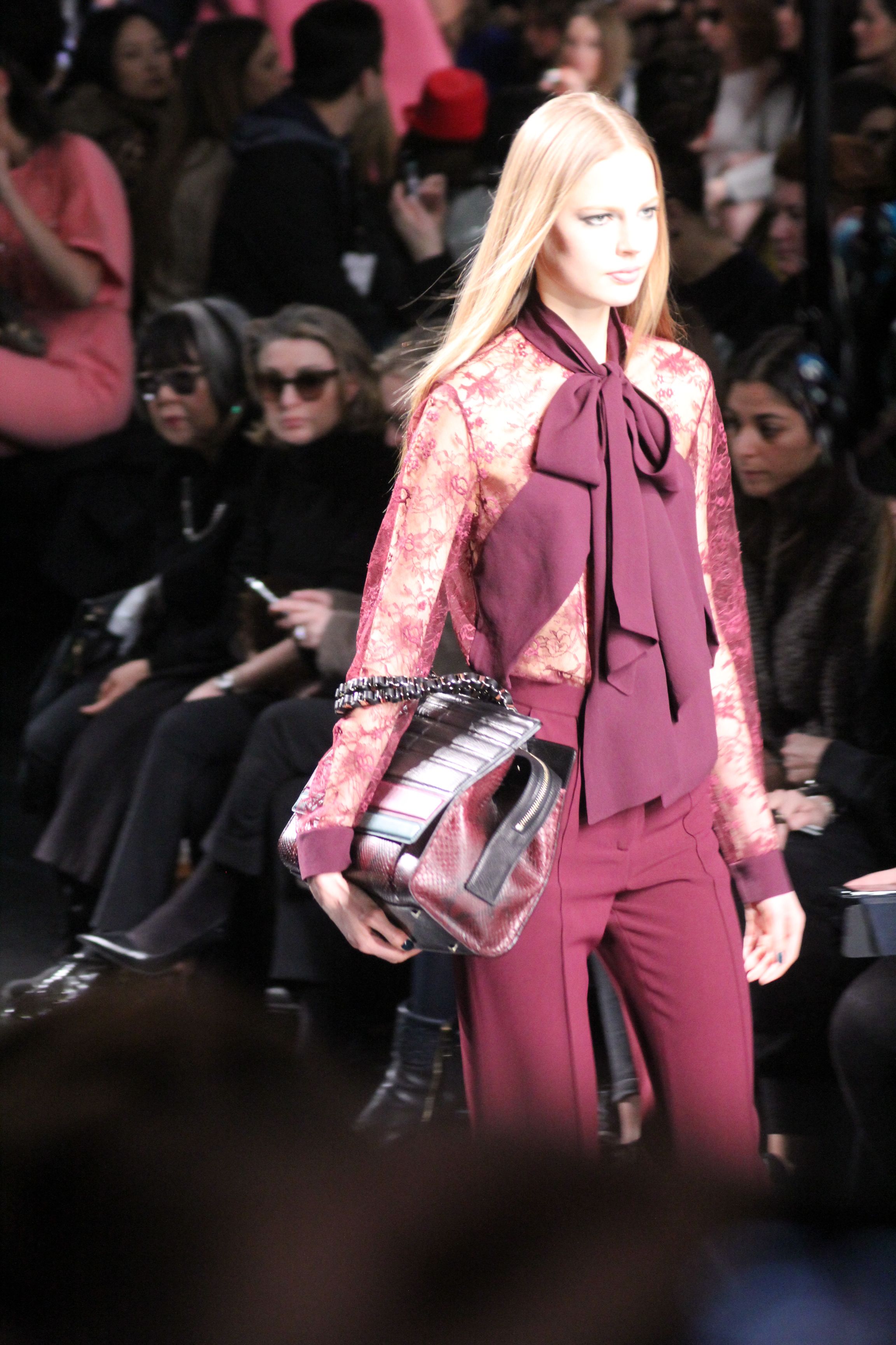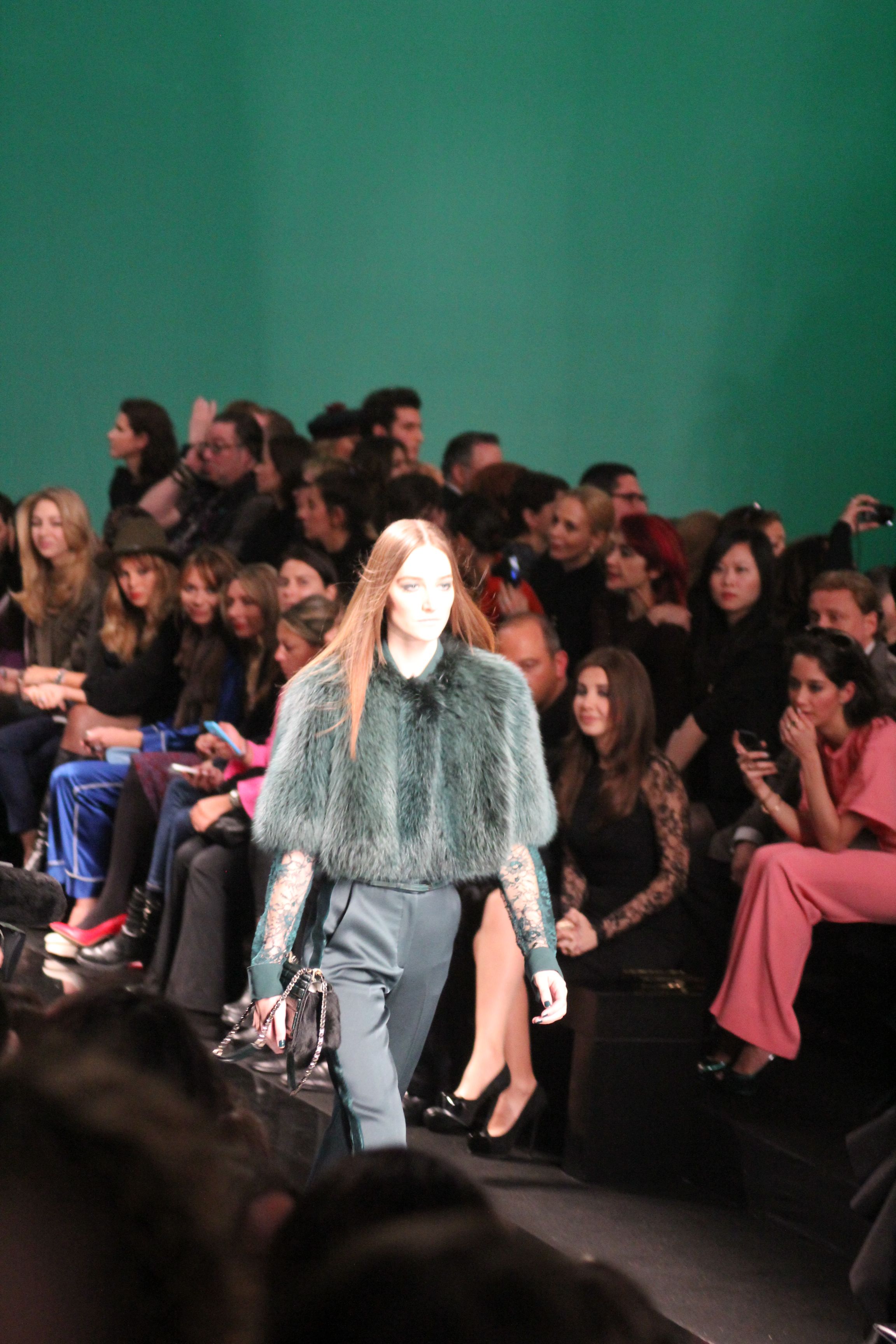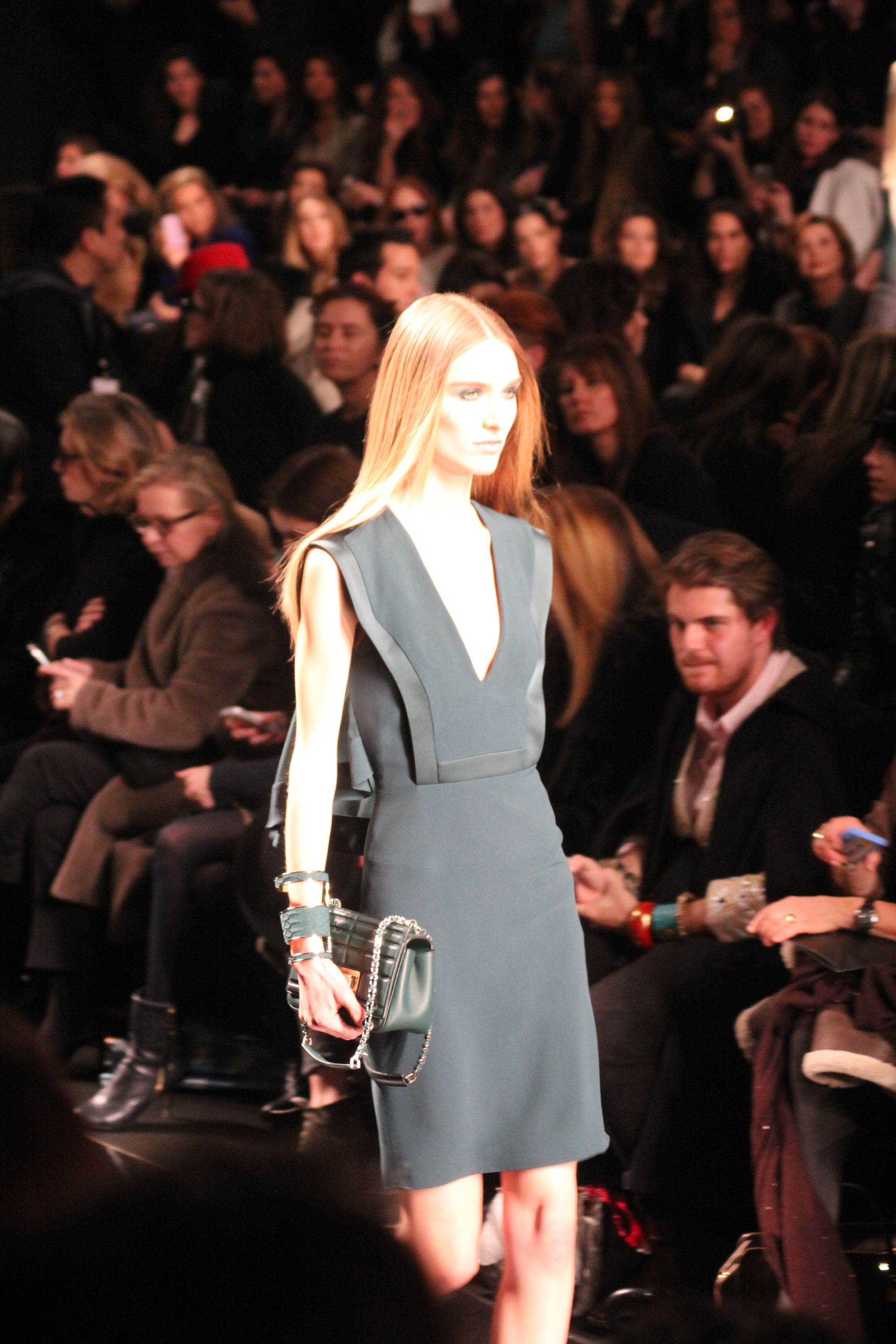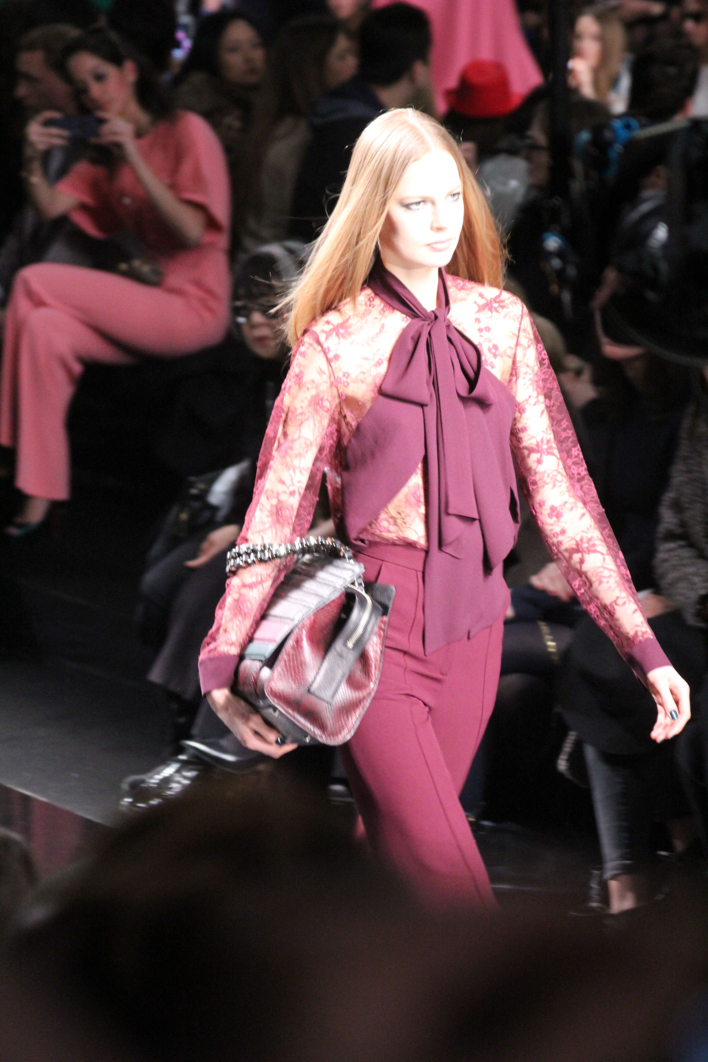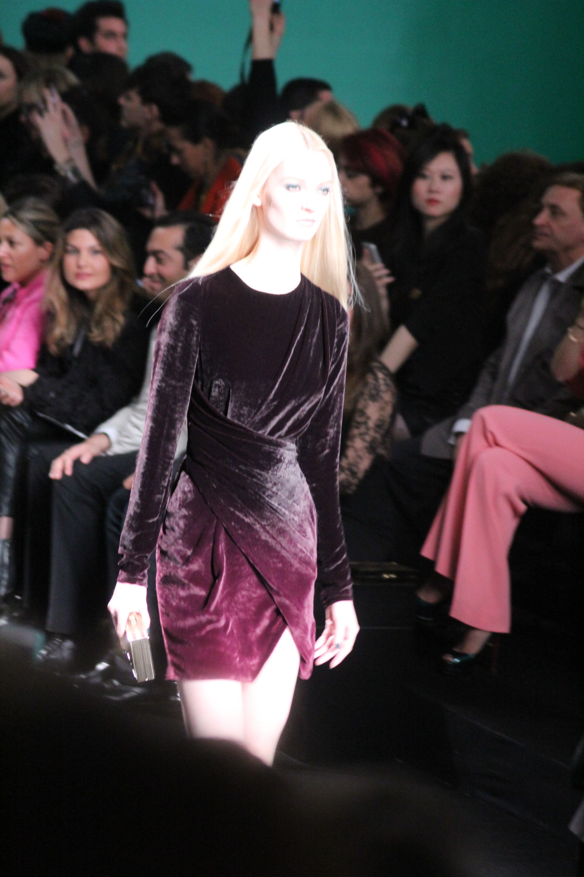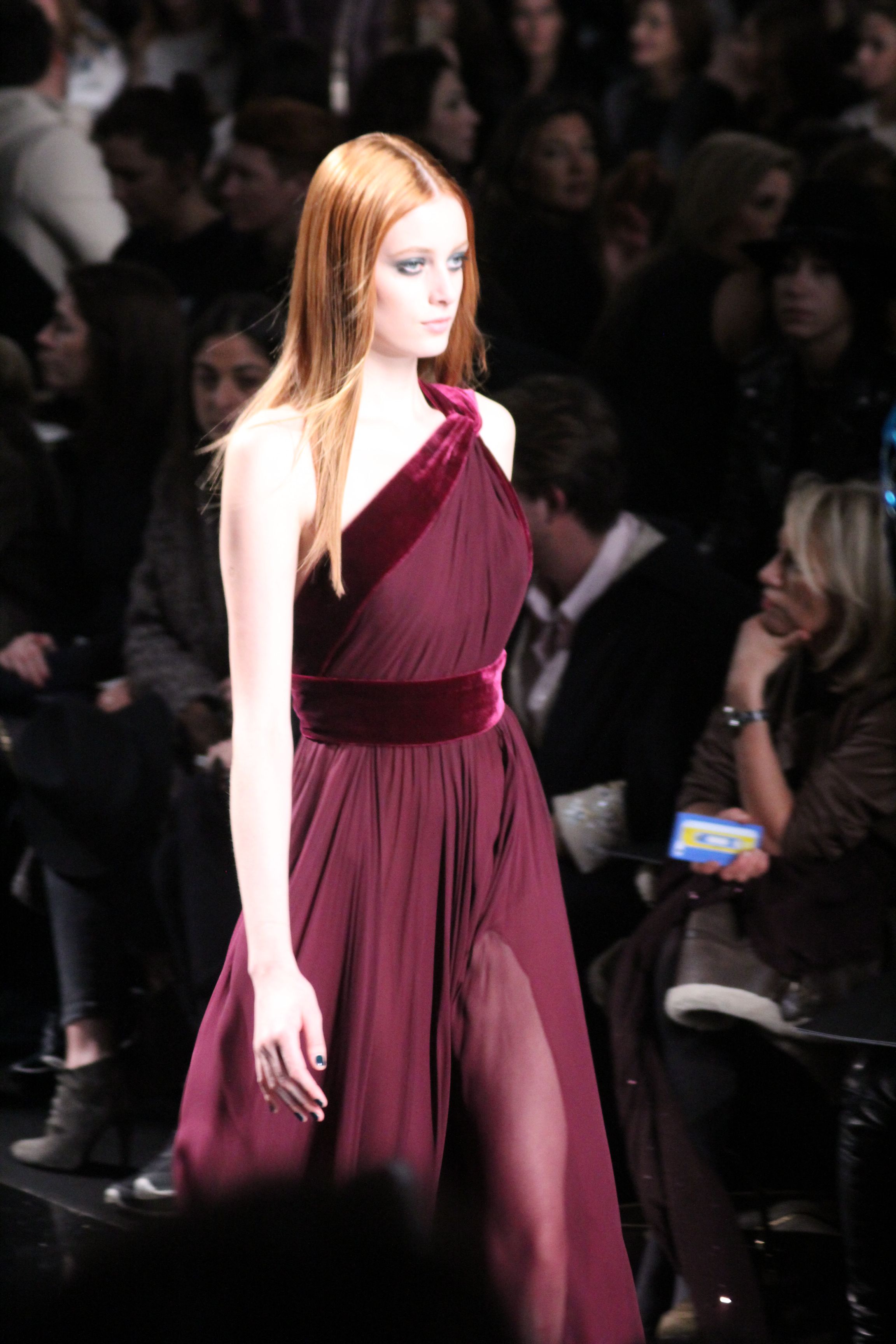 Pour cette collection automne hiver 2014-2015, Elie Saab propose un collection minimaliste, graphique et lumineuse. Inspirée d’abord par Mark Rohtko, elle est vouée comme son oeuvre à la couleur : ici rouge profond et vert empire, maître des corps, sculptent l’allure de manière envoutante. Chaque nuance est prétexte à recourir à une déclinaison de lignes asymétriques qui rappellent celles très structurées des années 50-60.