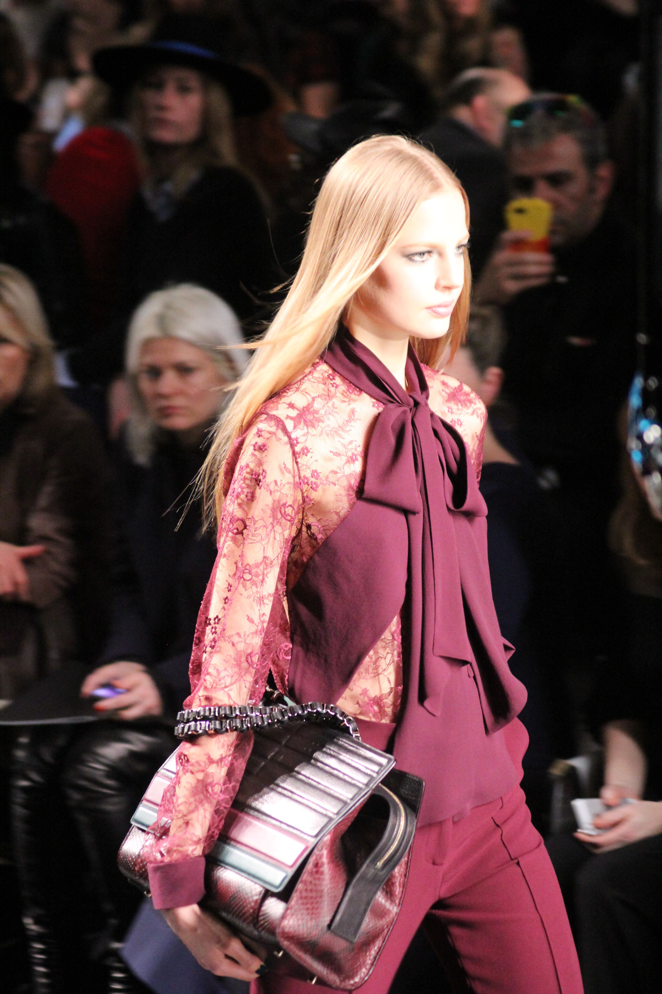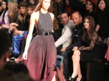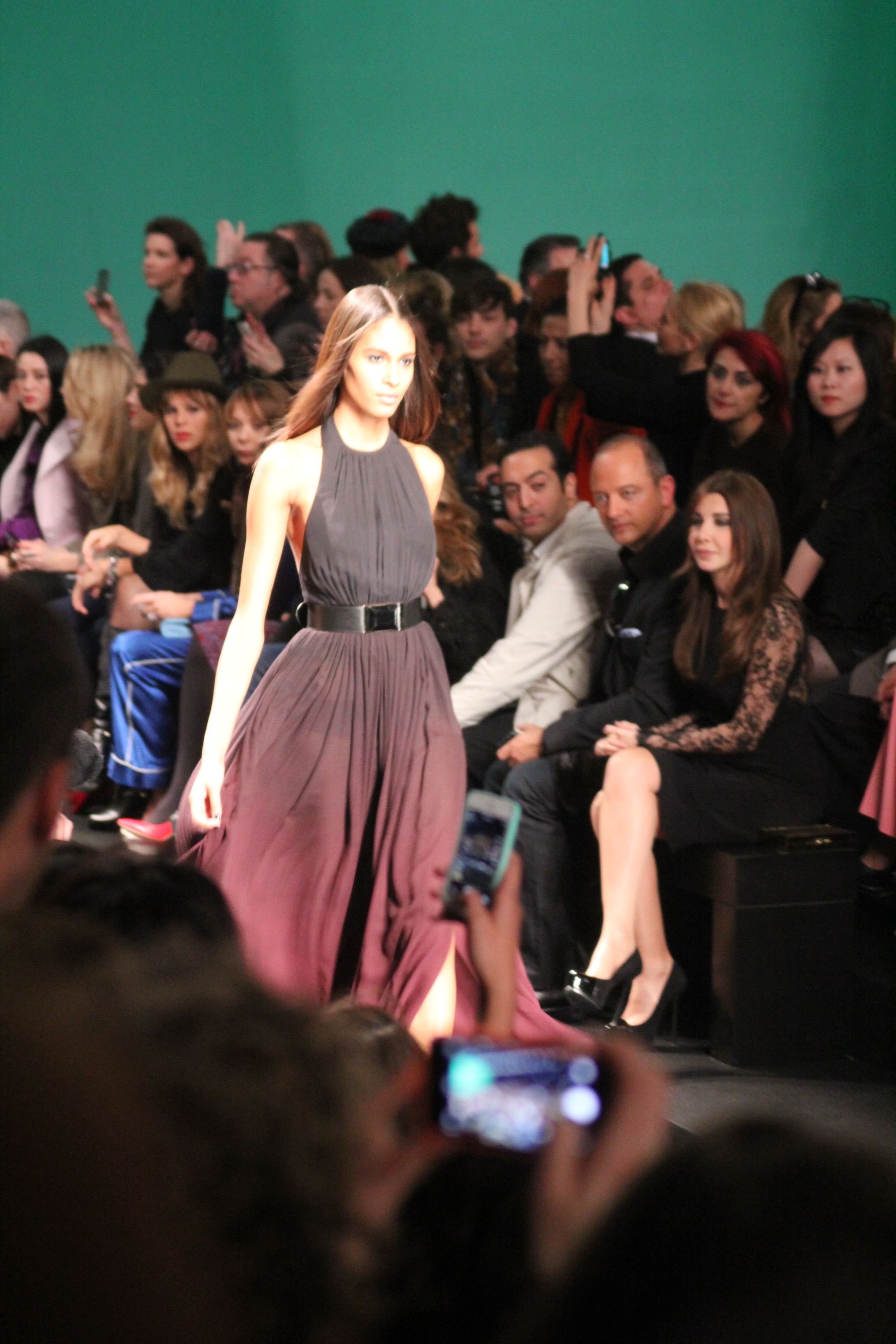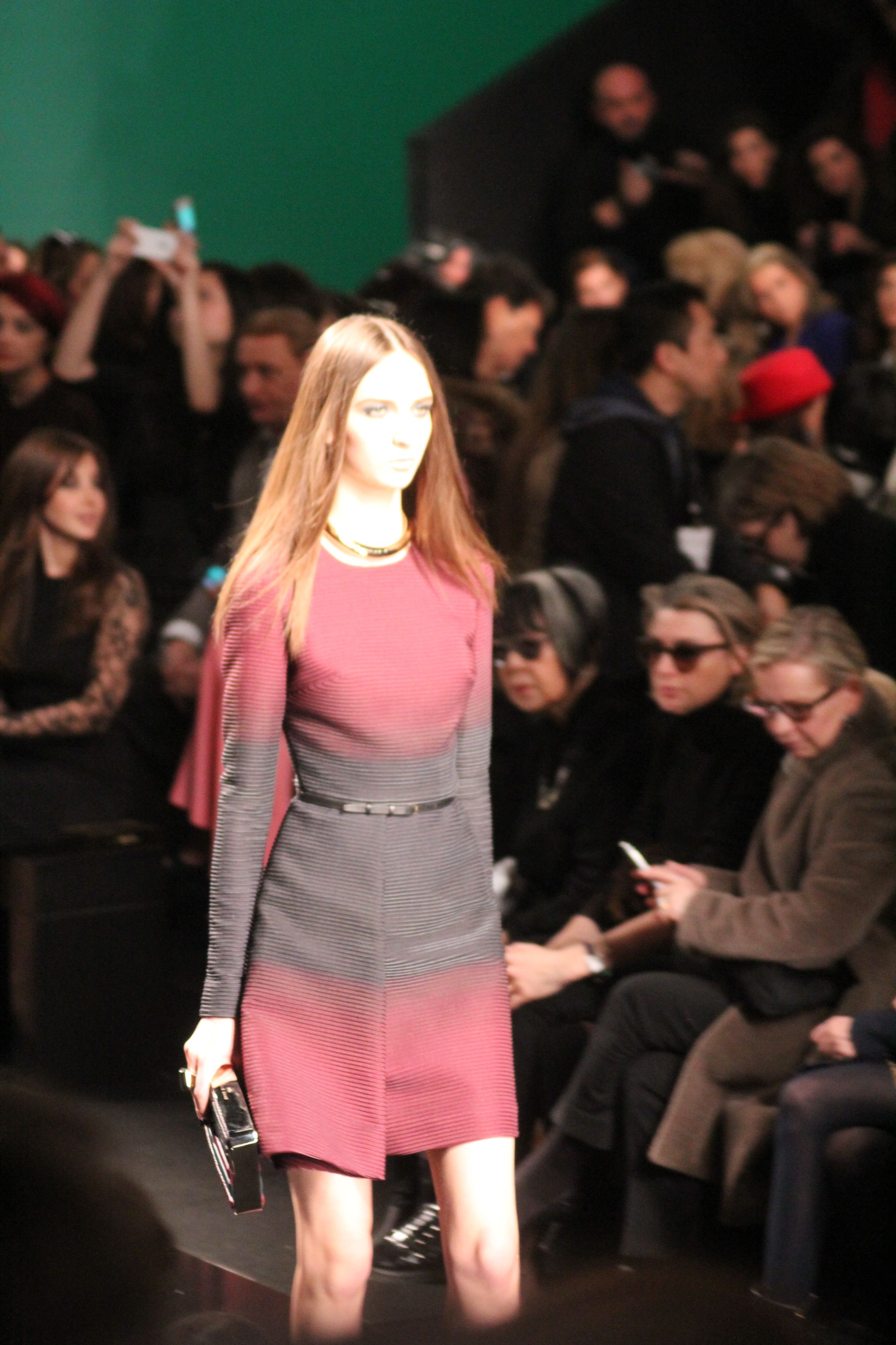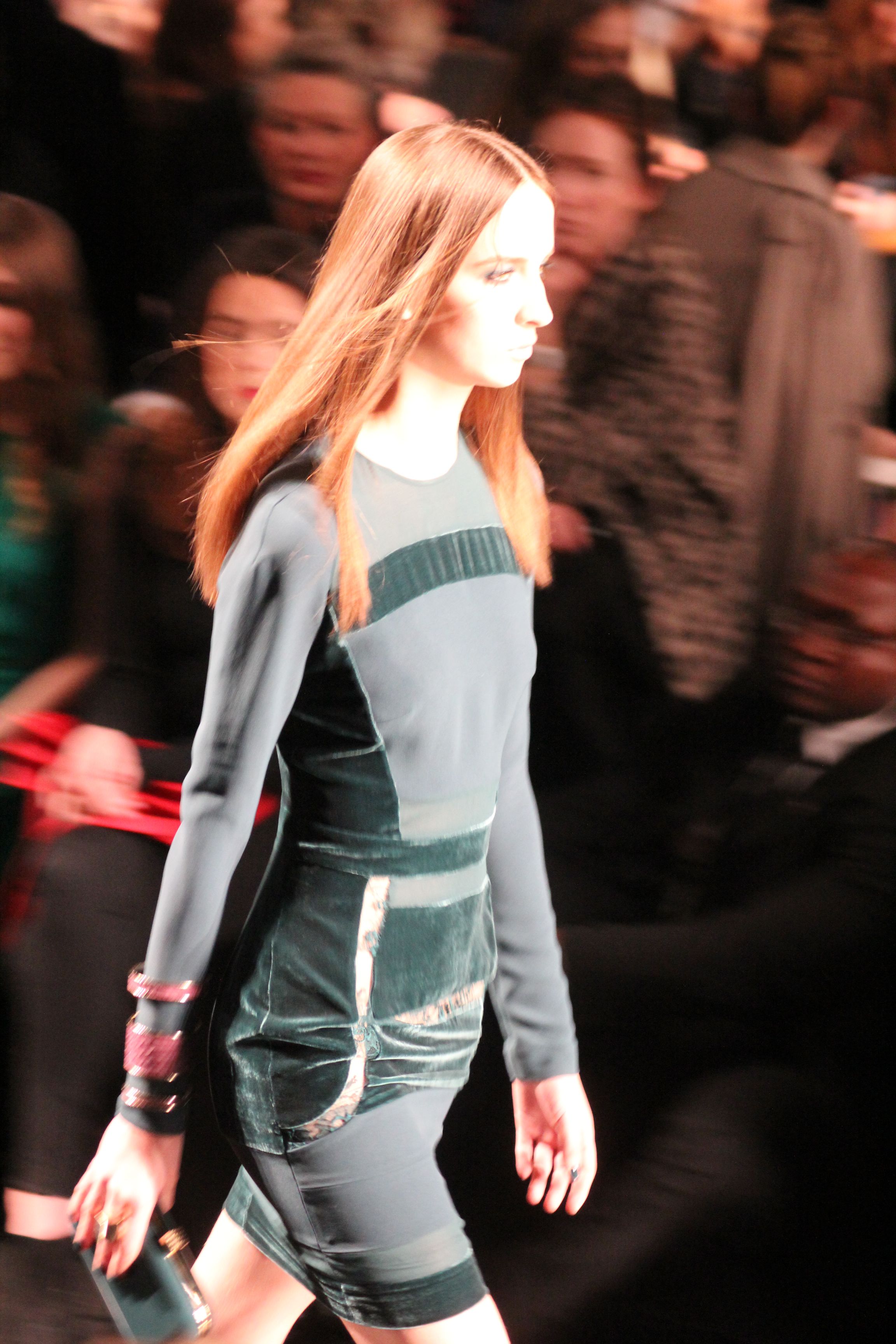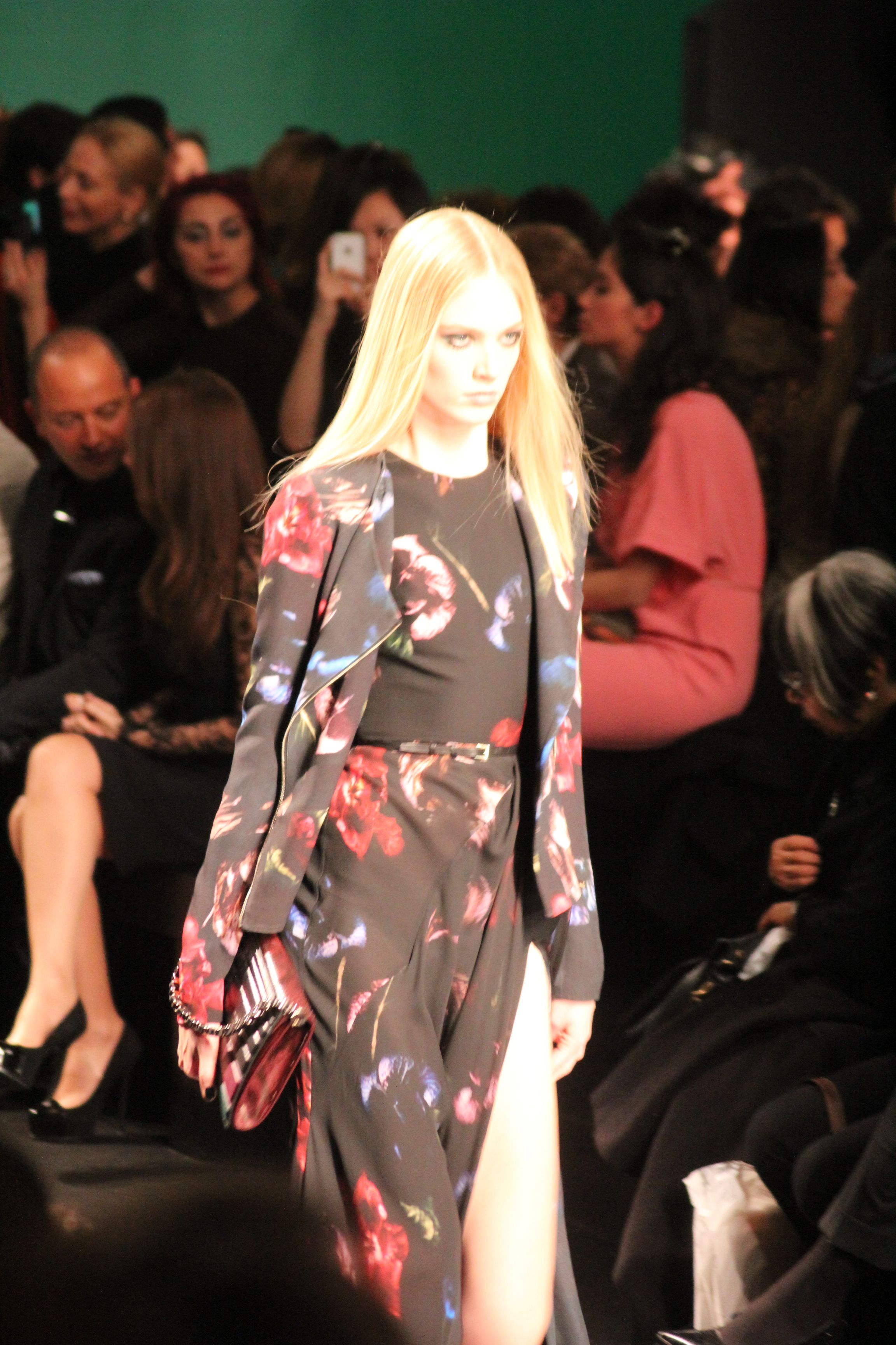 Pour cette collection automne hiver 2014-2015, Elie Saab propose un collection minimaliste, graphique et lumineuse. Inspirée d’abord par Mark Rohtko, elle est vouée comme son oeuvre à la couleur : ici rouge profond et vert empire, maître des corps, sculptent l’allure de manière envoutante. Chaque nuance est prétexte à recourir à une déclinaison de lignes asymétriques qui rappellent celles très structurées des années 50-60.