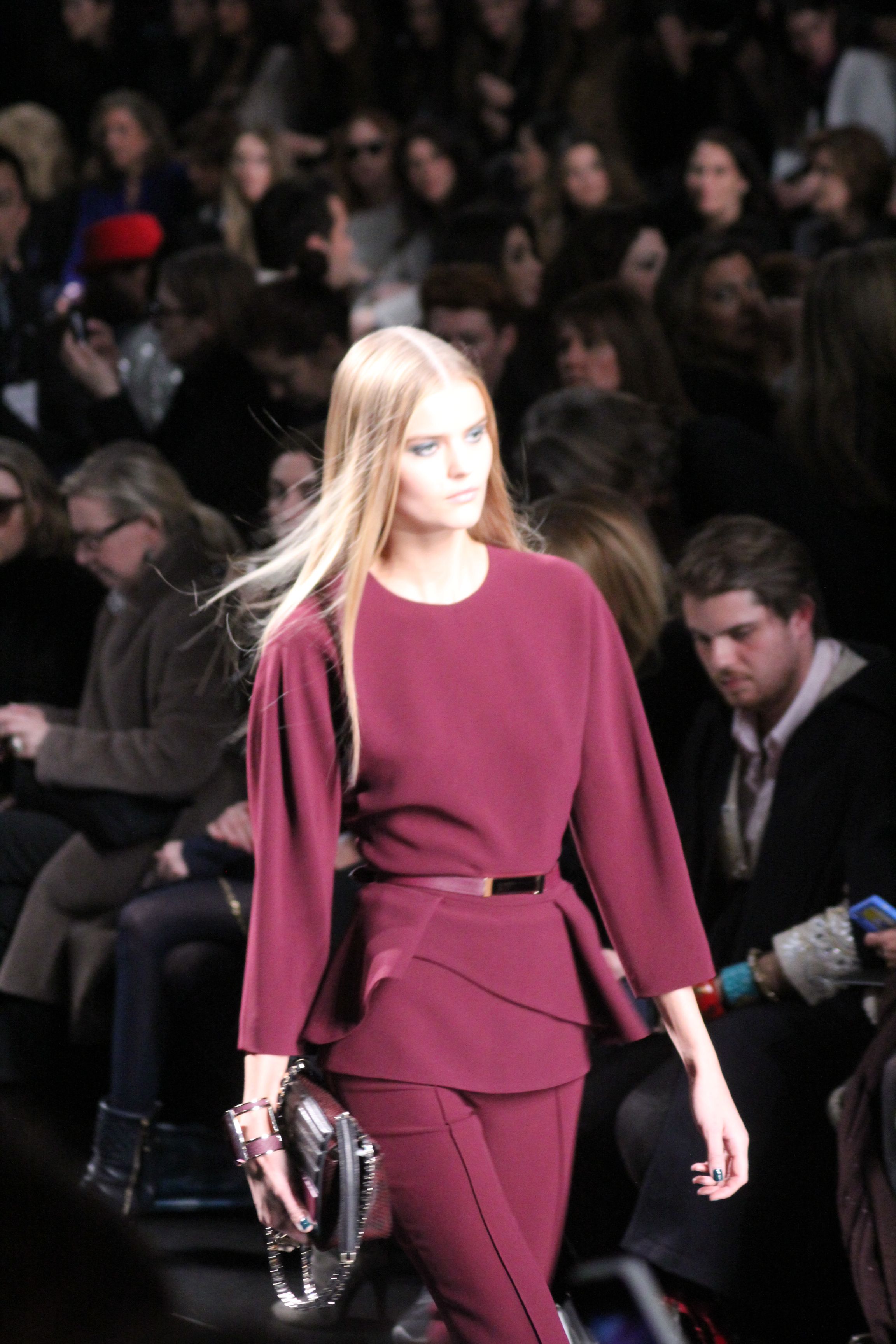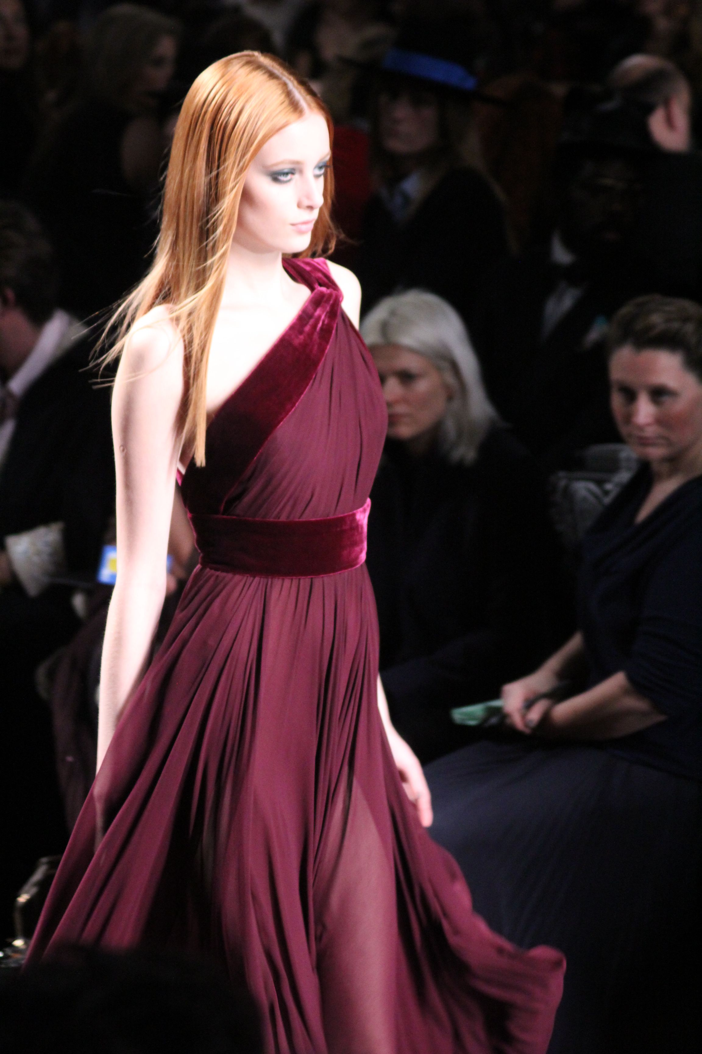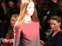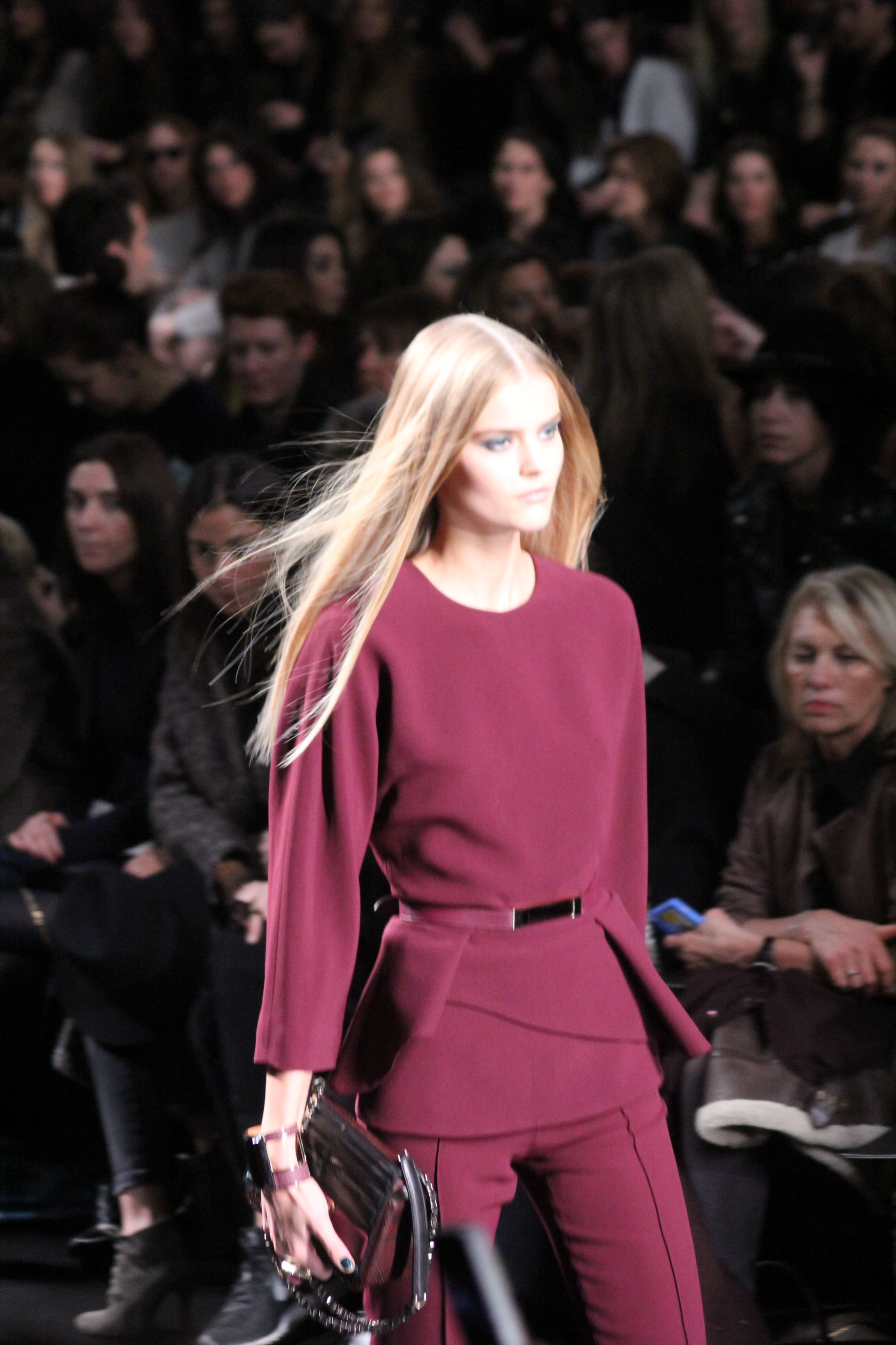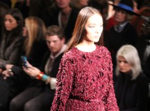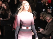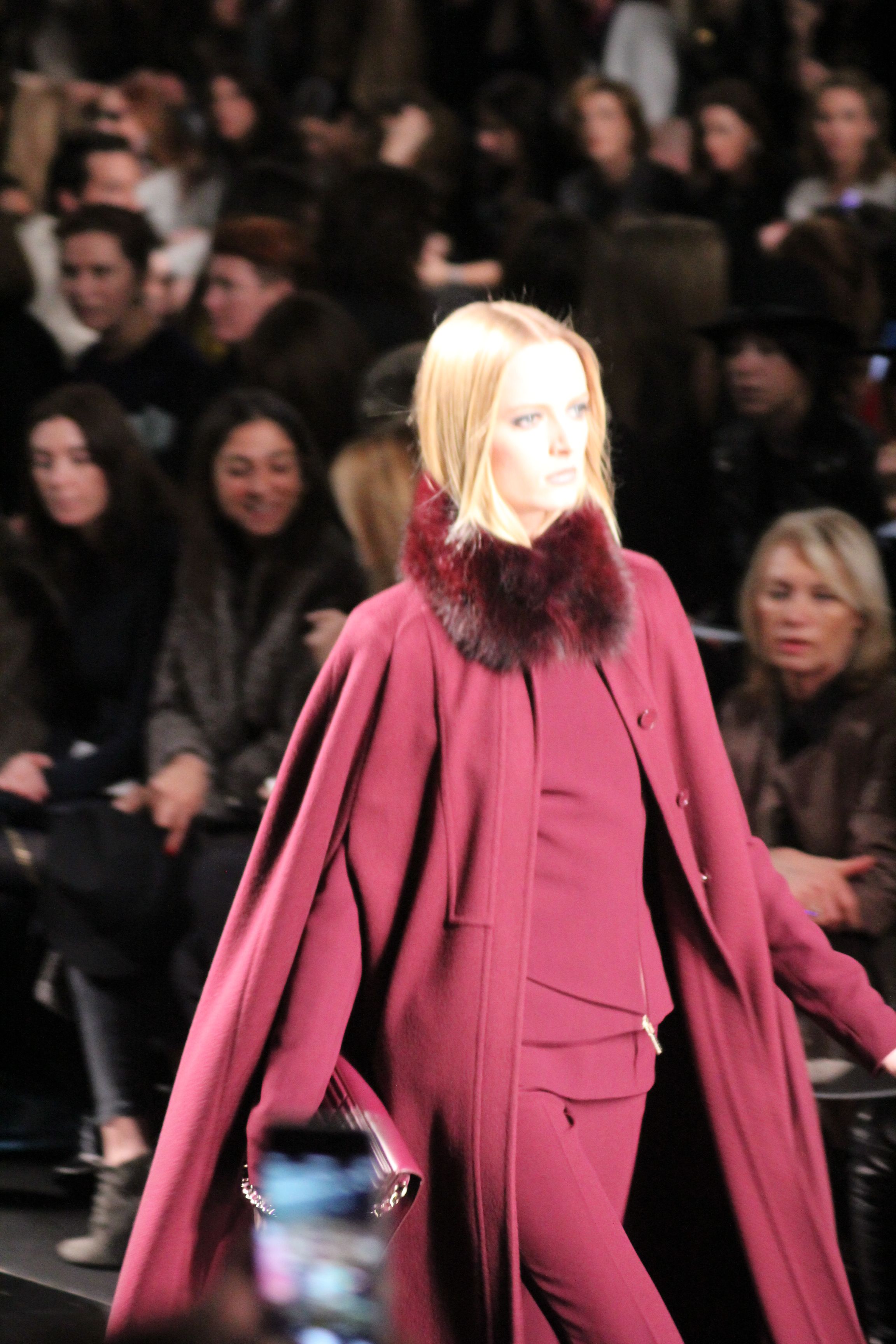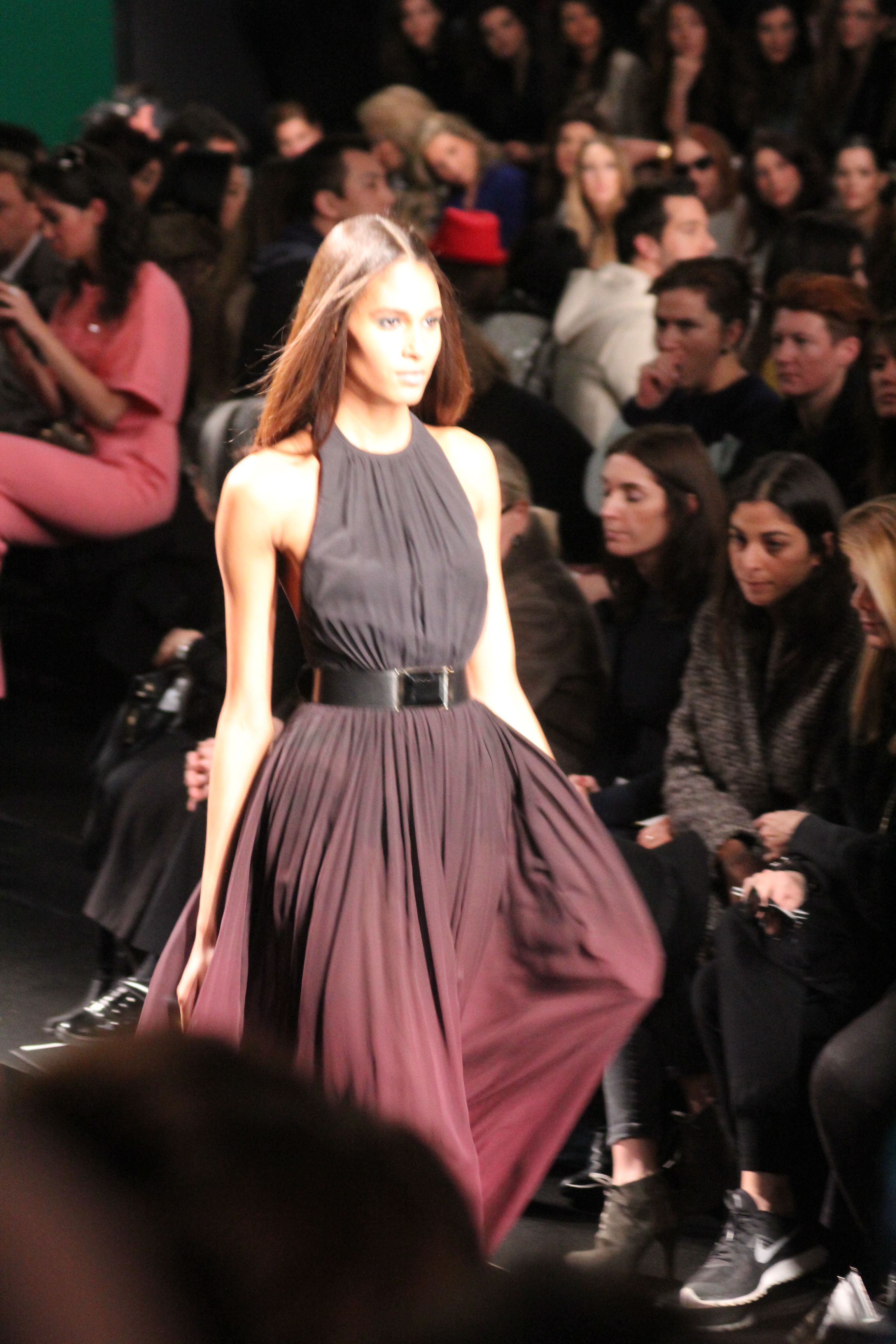 Pour cette collection automne hiver 2014-2015, Elie Saab propose un collection minimaliste, graphique et lumineuse. Inspirée d’abord par Mark Rohtko, elle est vouée comme son oeuvre à la couleur : ici rouge profond et vert empire, maître des corps, sculptent l’allure de manière envoutante. Chaque nuance est prétexte à recourir à une déclinaison de lignes asymétriques qui rappellent celles très structurées des années 50-60.