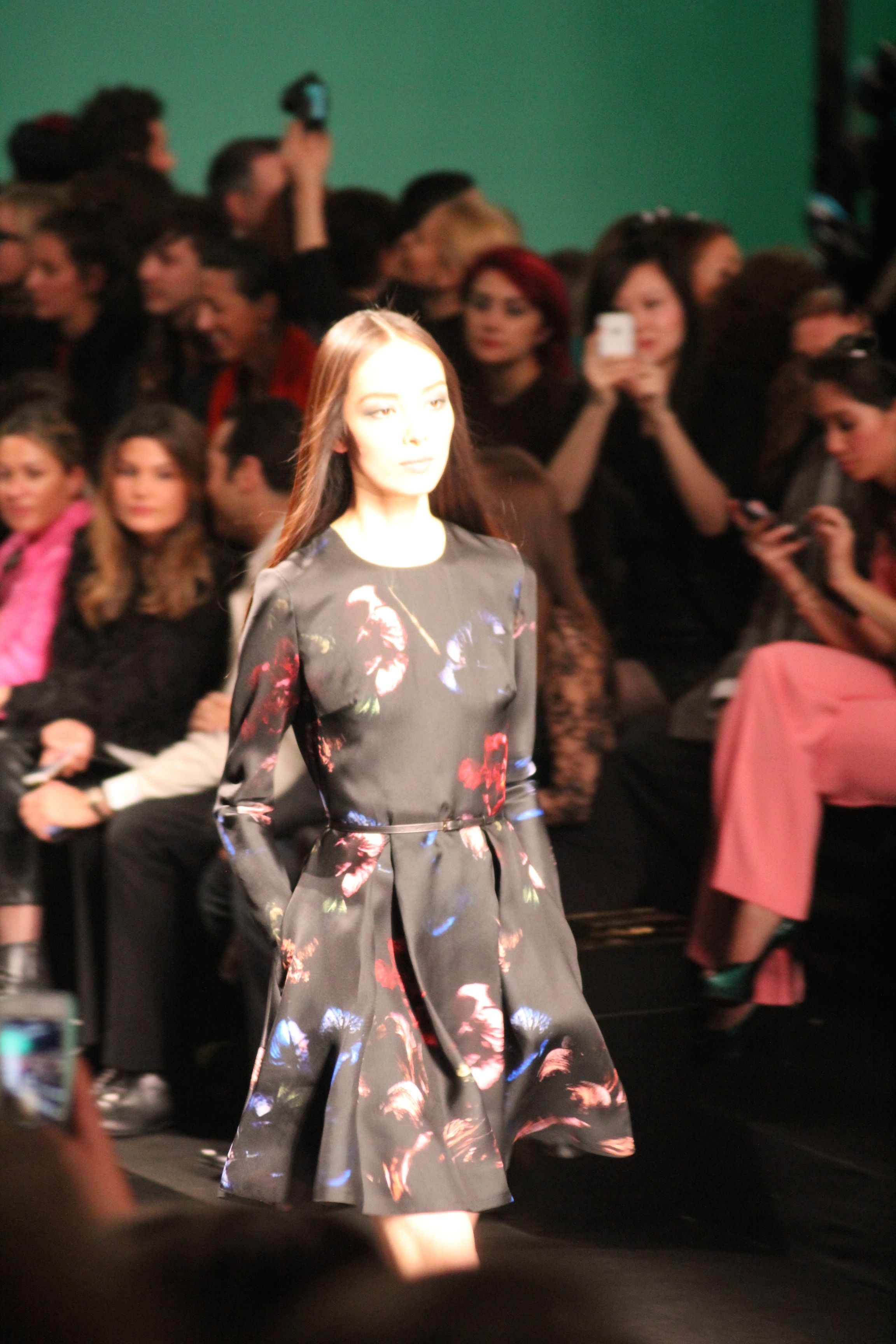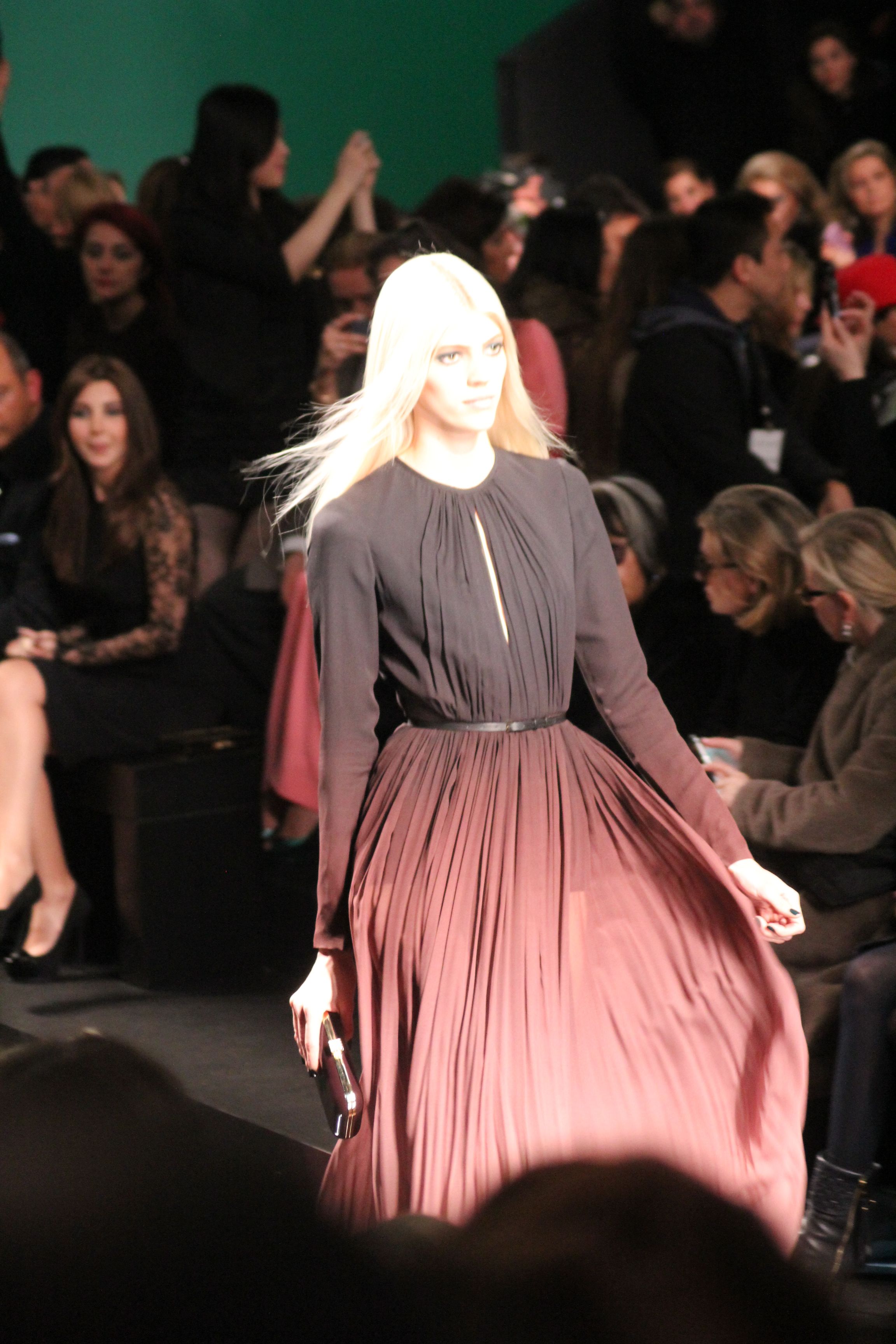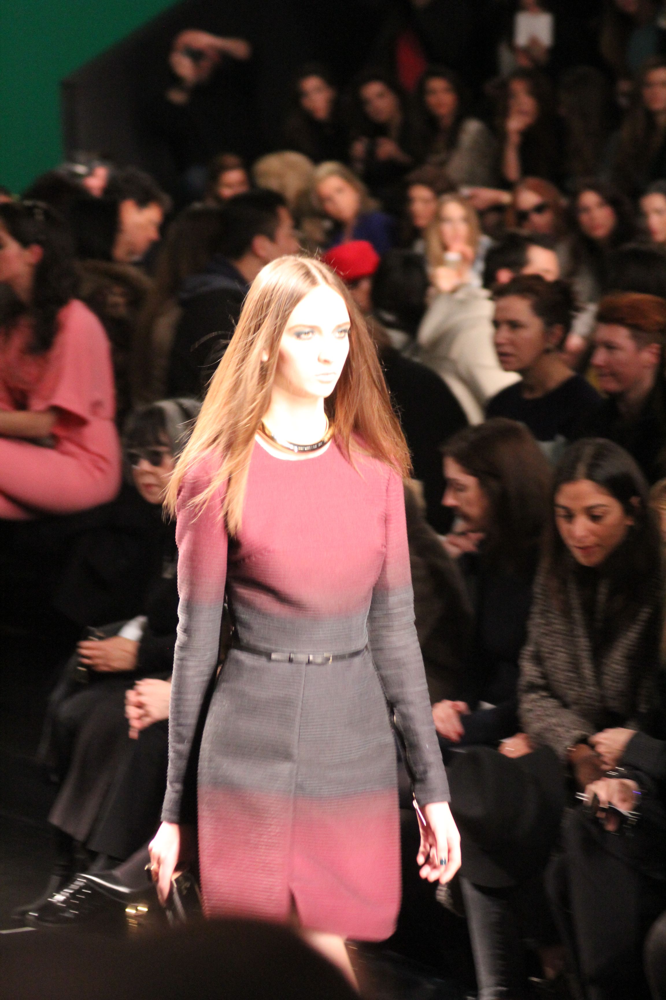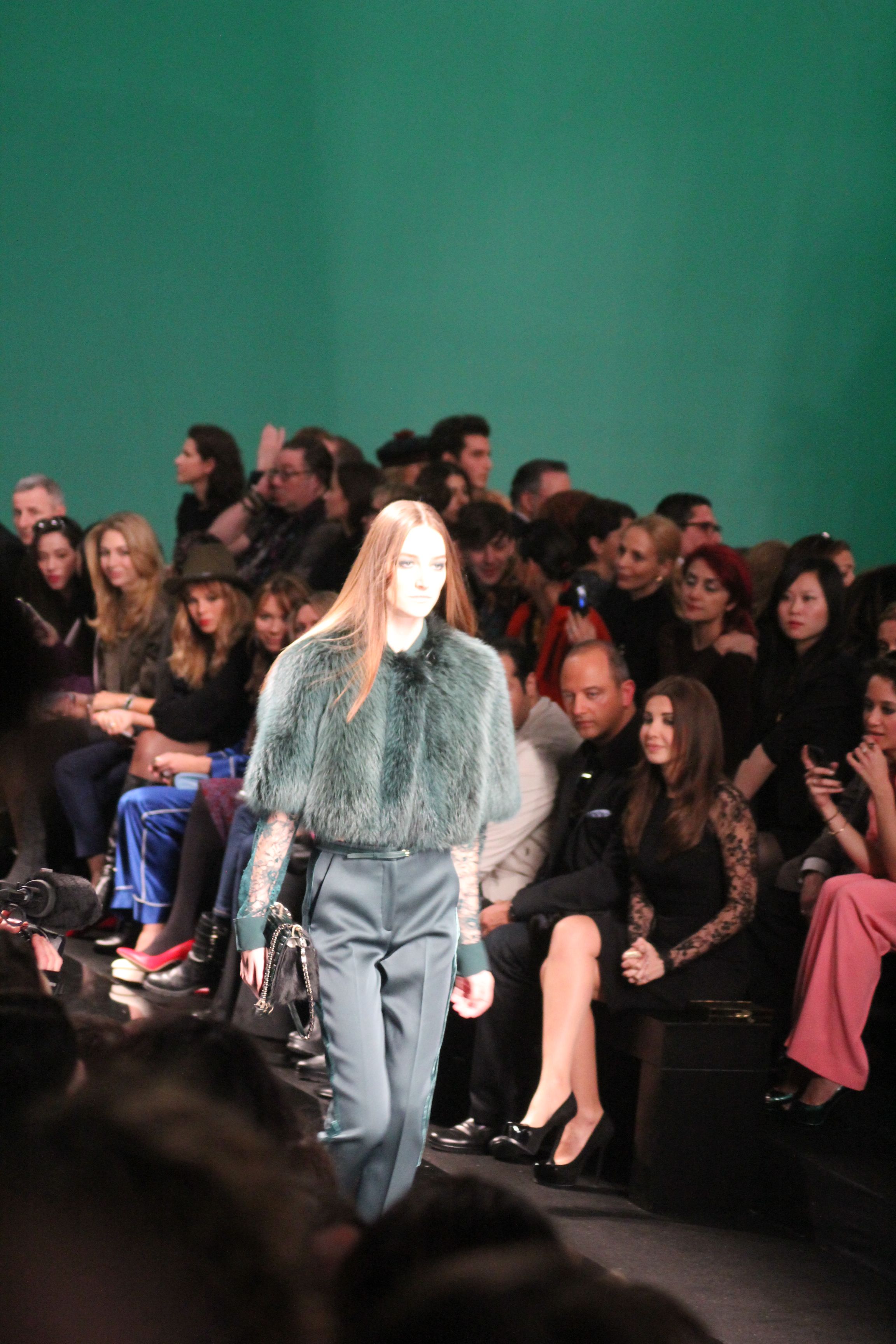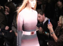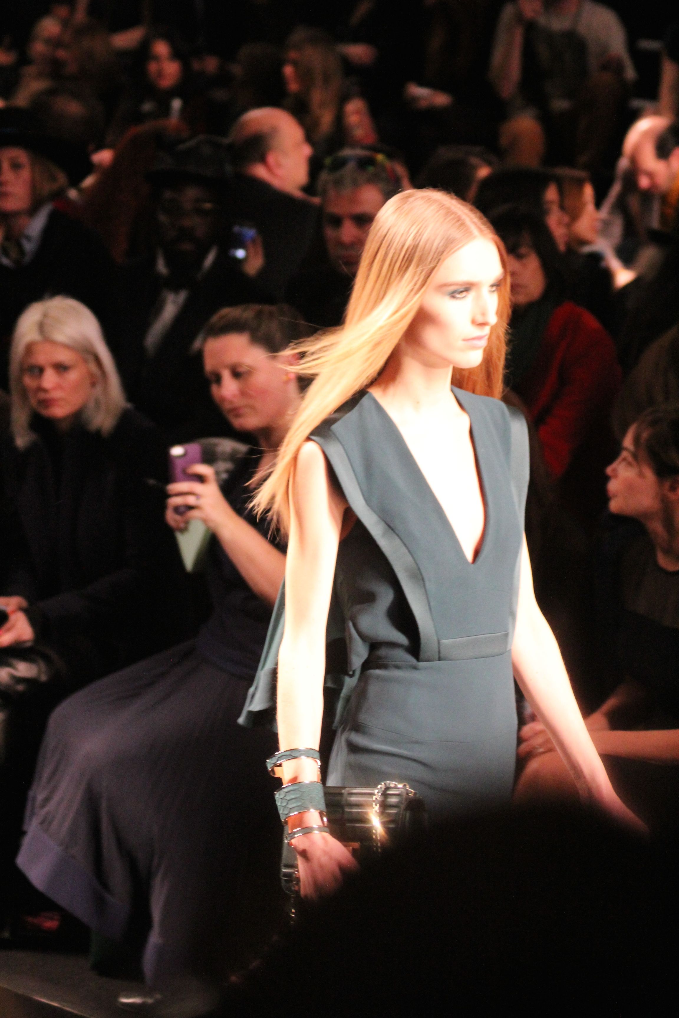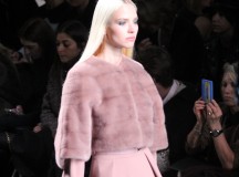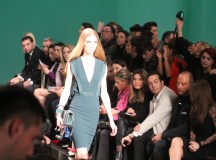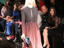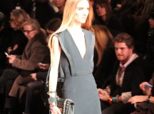 Pour cette collection automne hiver 2014-2015, Elie Saab propose un collection minimaliste, graphique et lumineuse. Inspirée d’abord par Mark Rohtko, elle est vouée comme son oeuvre à la couleur : ici rouge profond et vert empire, maître des corps, sculptent l’allure de manière envoutante. Chaque nuance est prétexte à recourir à une déclinaison de lignes asymétriques qui rappellent celles très structurées des années 50-60.