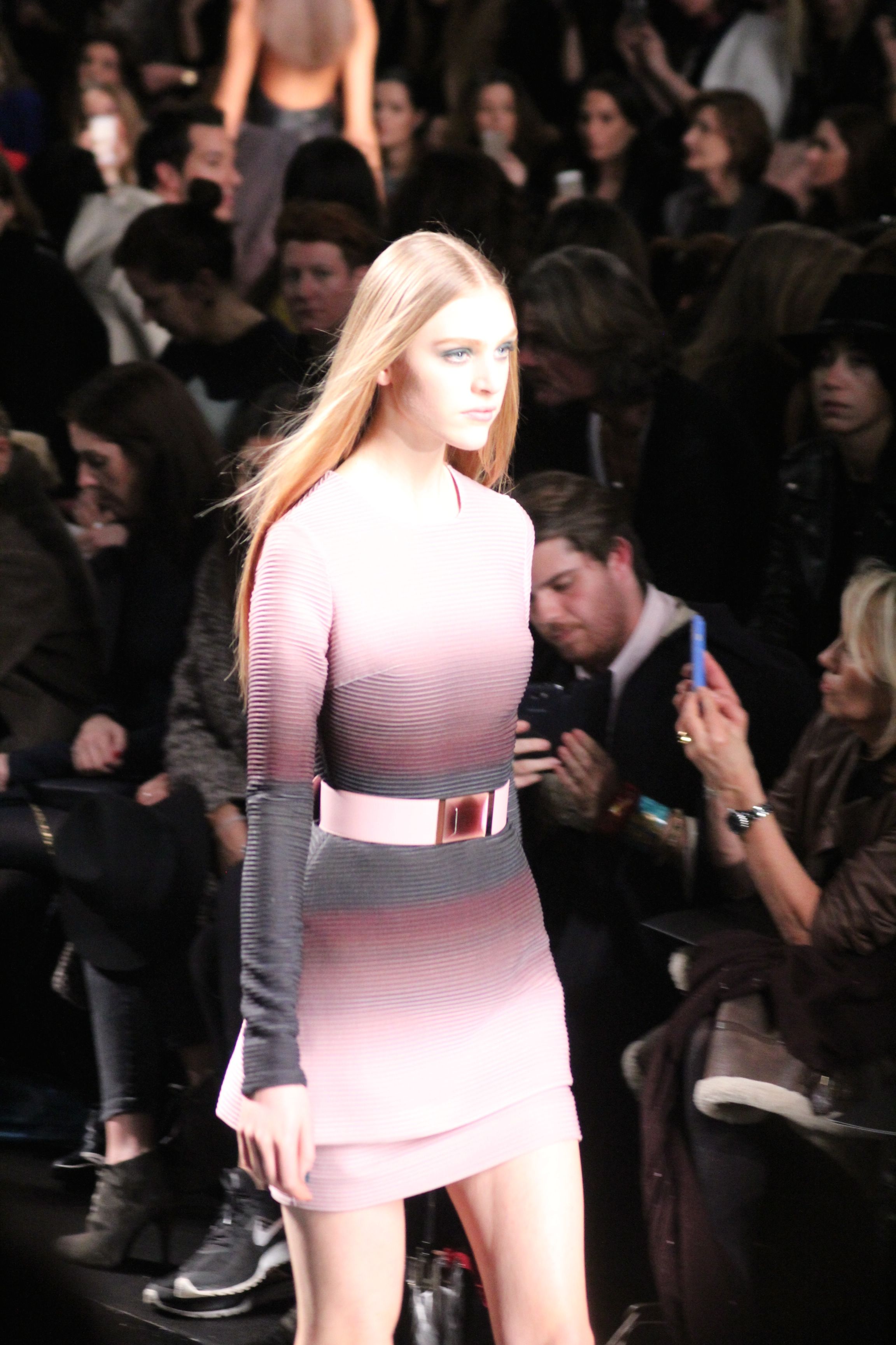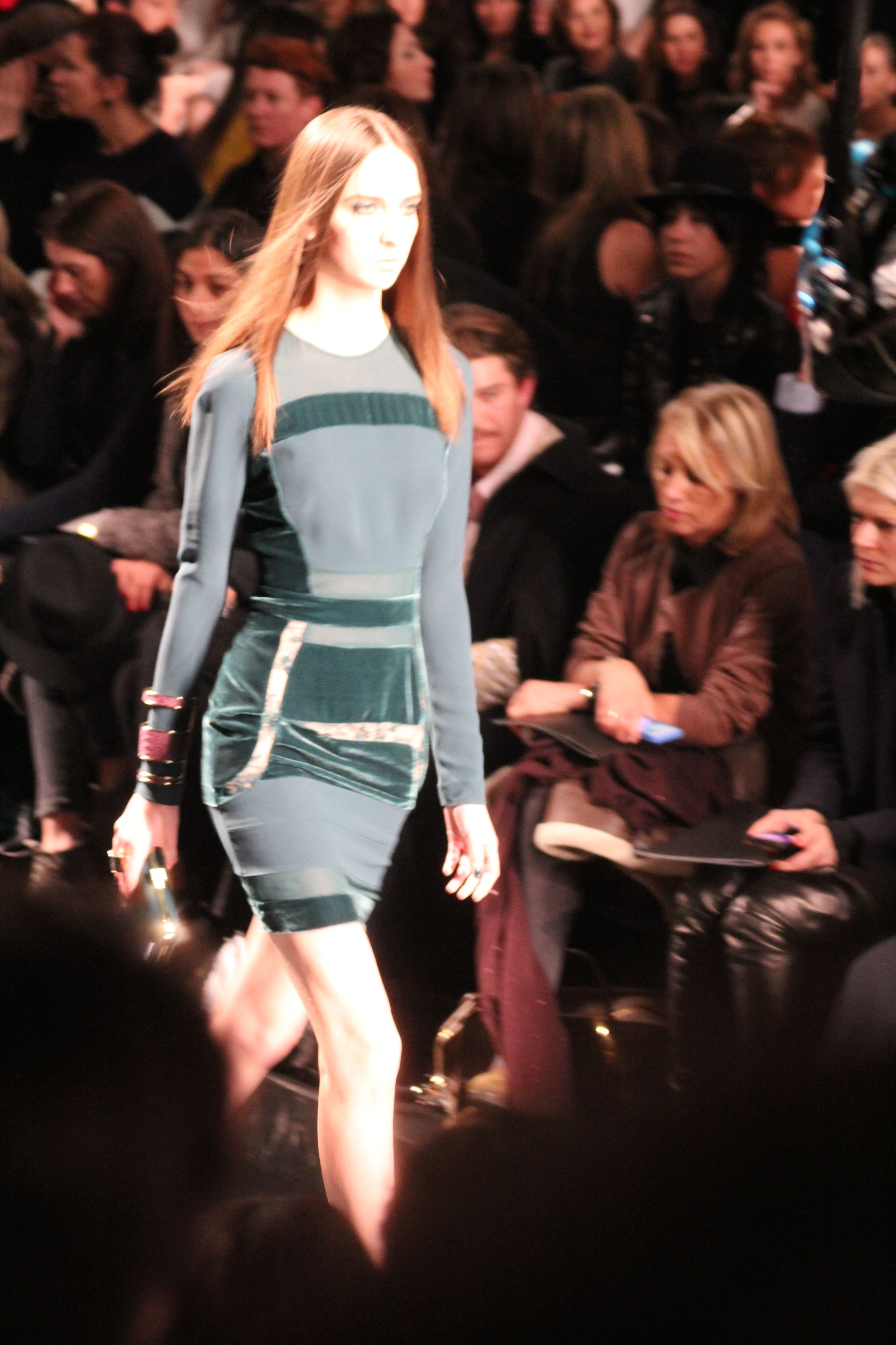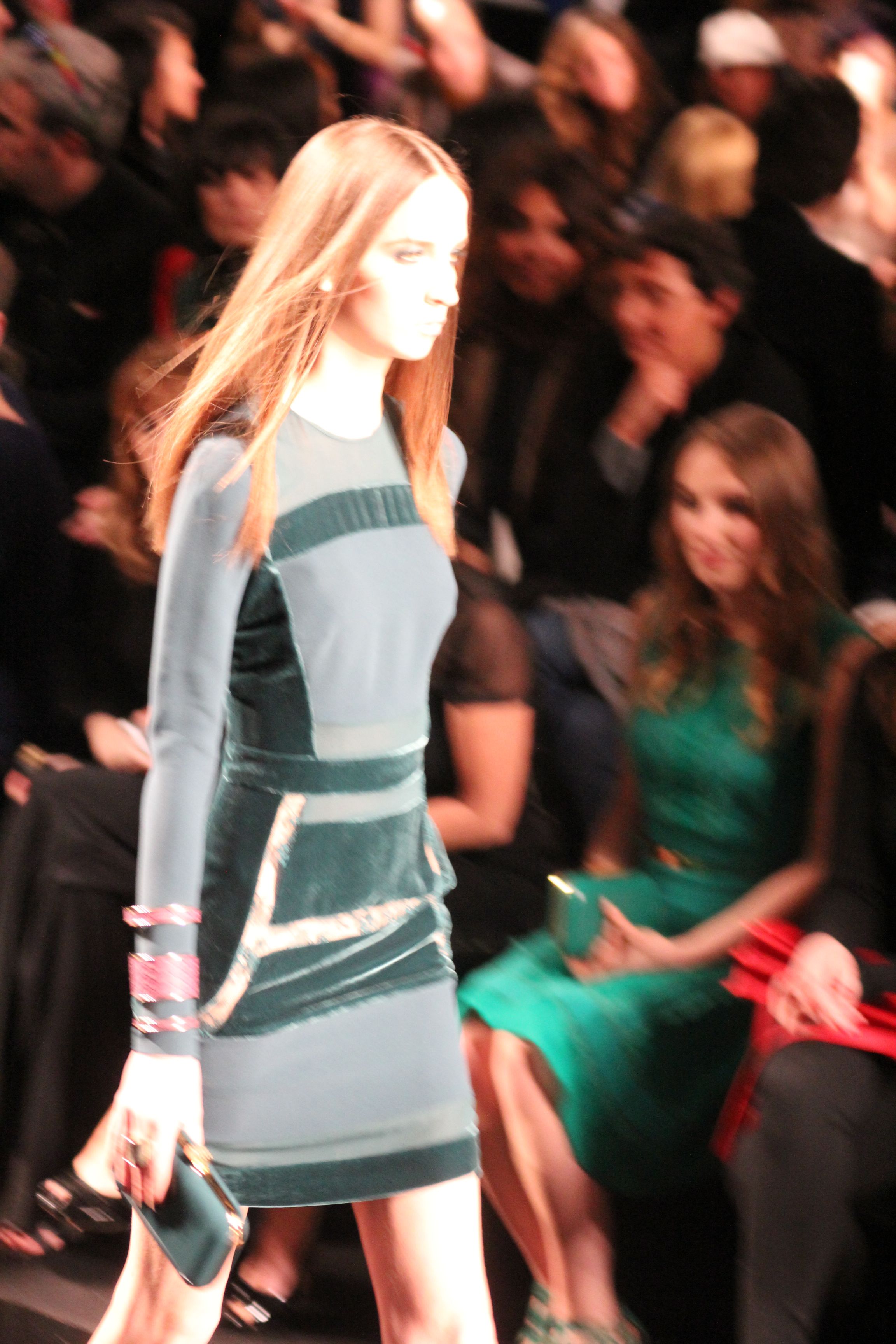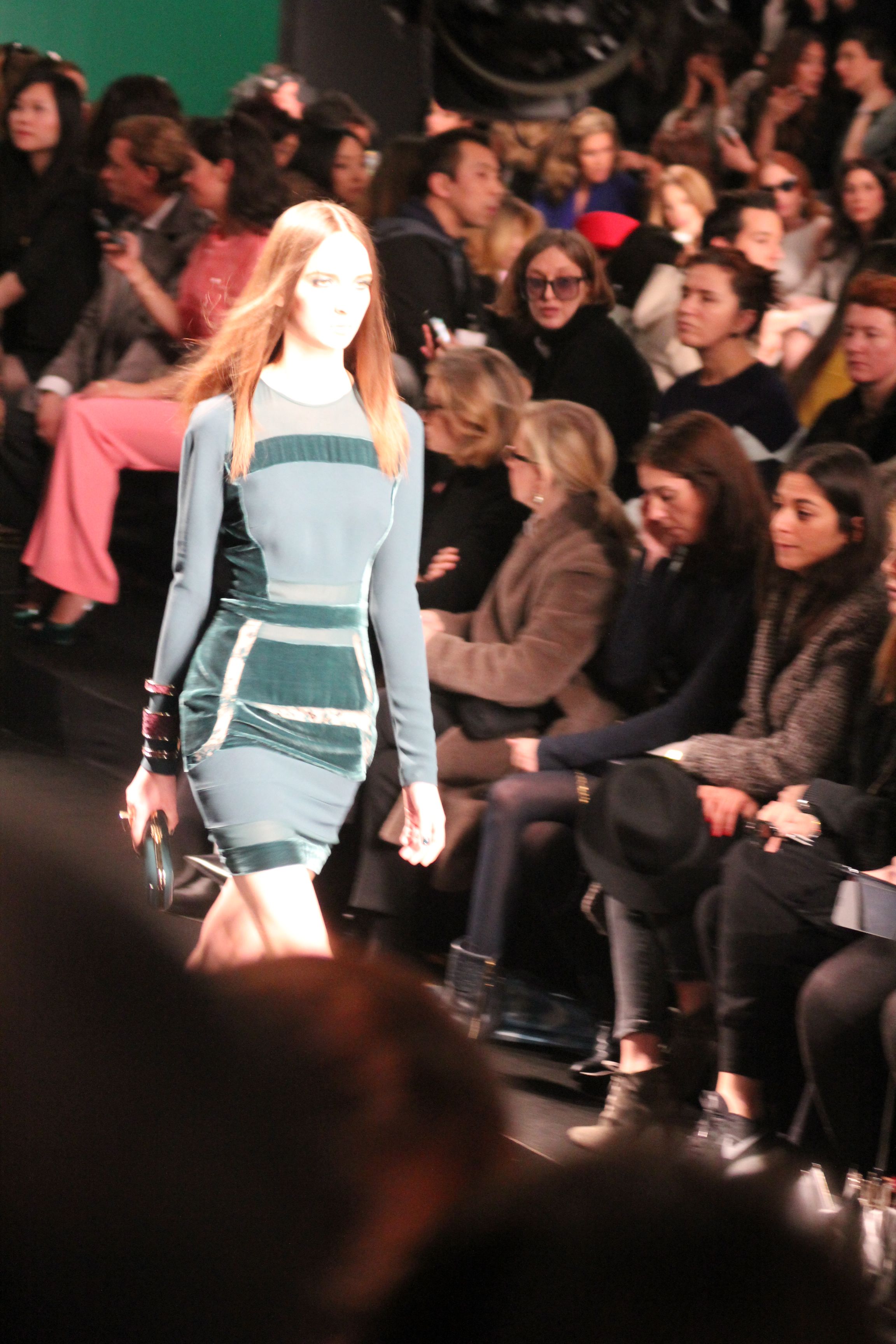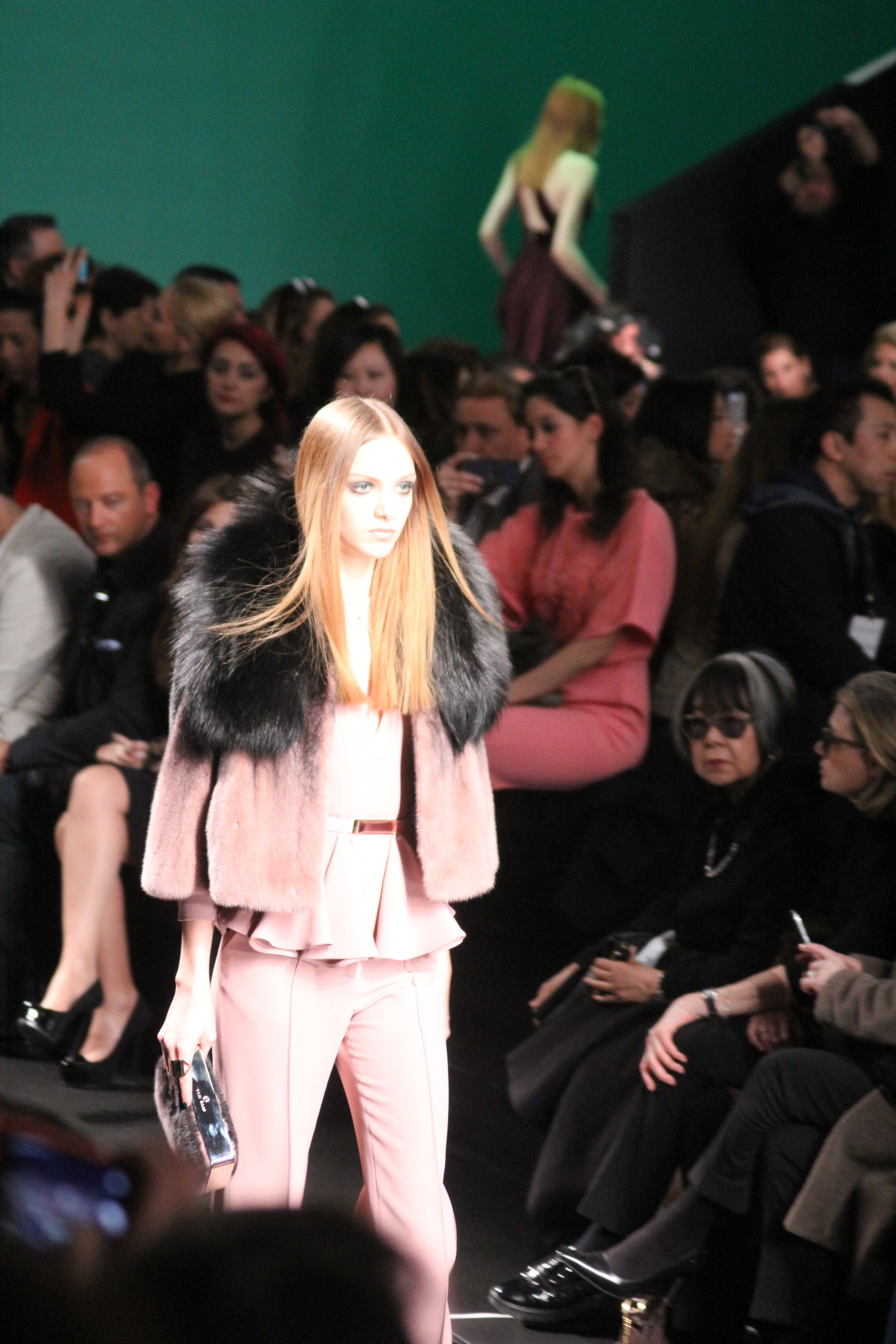 Pour cette collection automne hiver 2014-2015, Elie Saab propose un collection minimaliste, graphique et lumineuse. Inspirée d’abord par Mark Rohtko, elle est vouée comme son oeuvre à la couleur : ici rouge profond et vert empire, maître des corps, sculptent l’allure de manière envoutante. Chaque nuance est prétexte à recourir à une déclinaison de lignes asymétriques qui rappellent celles très structurées des années 50-60.