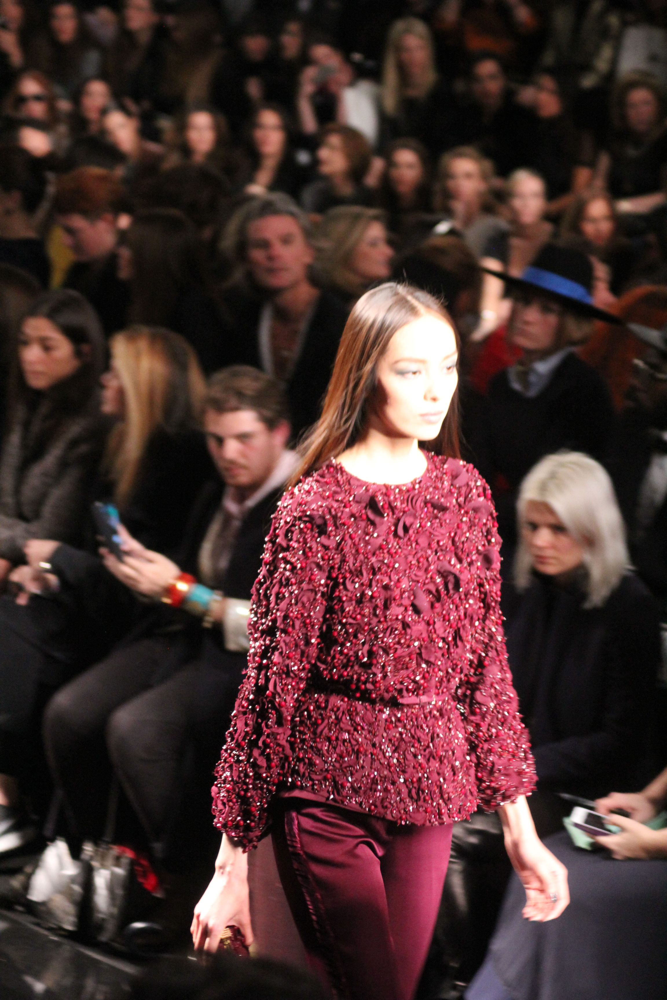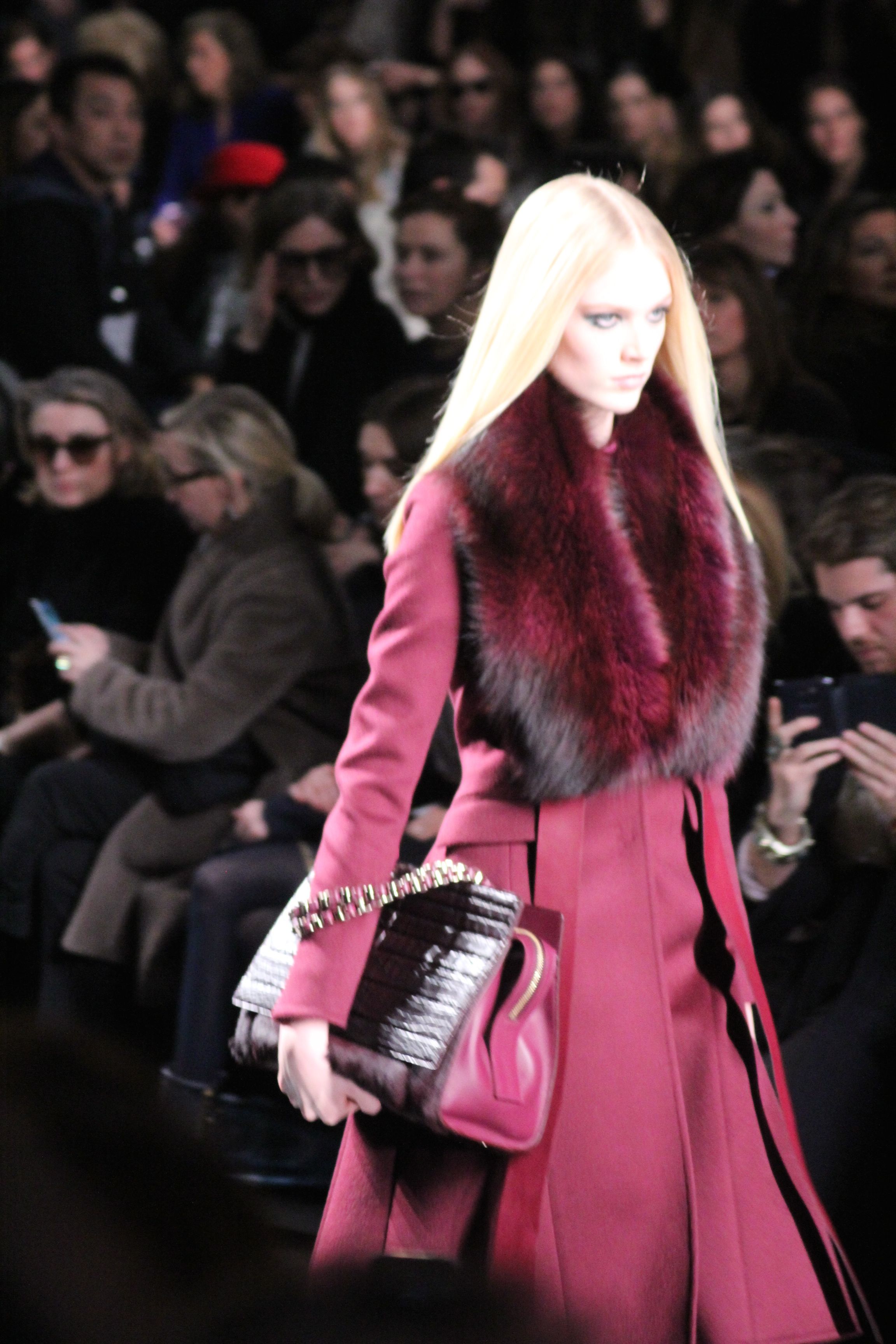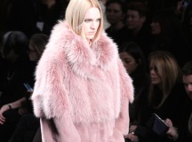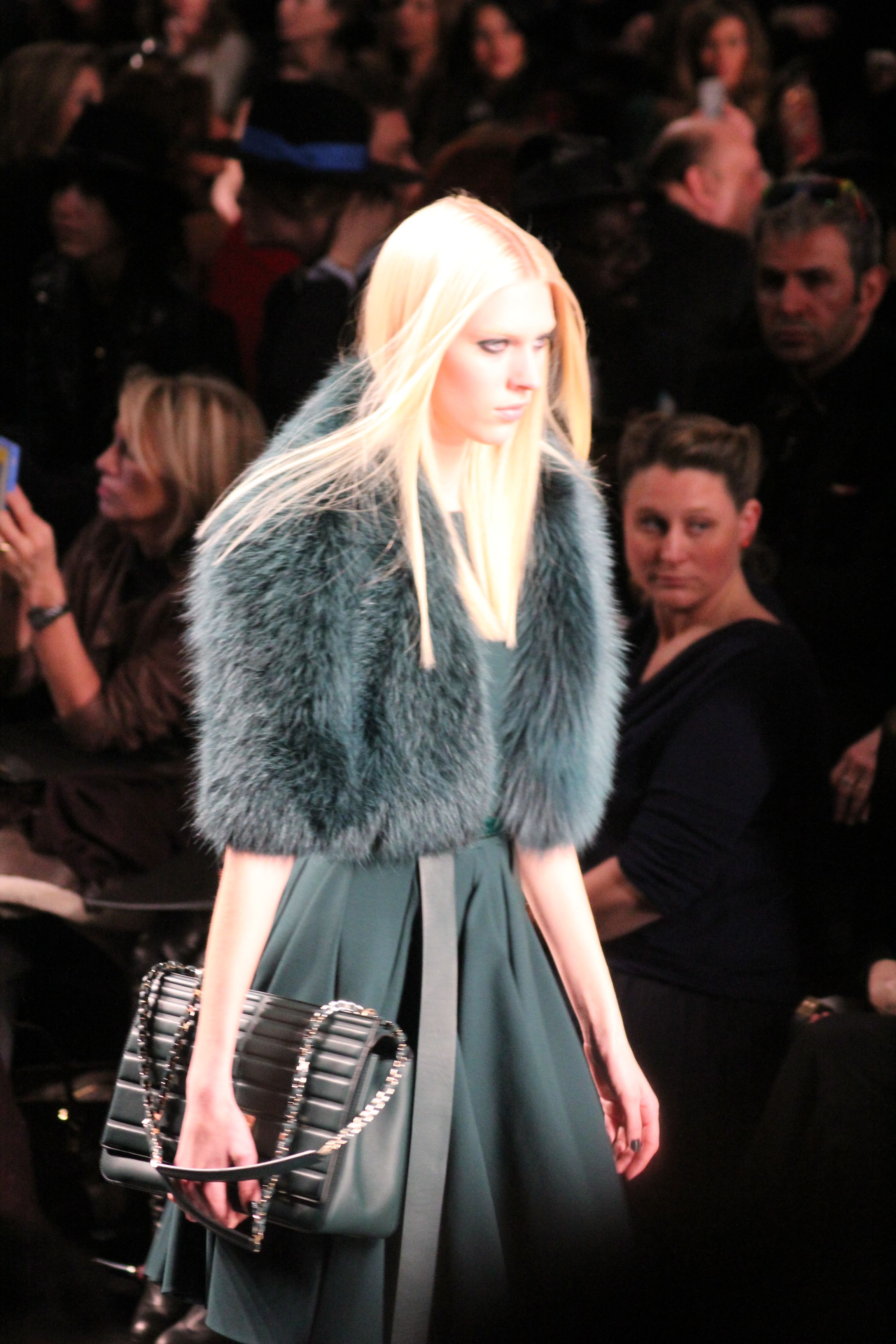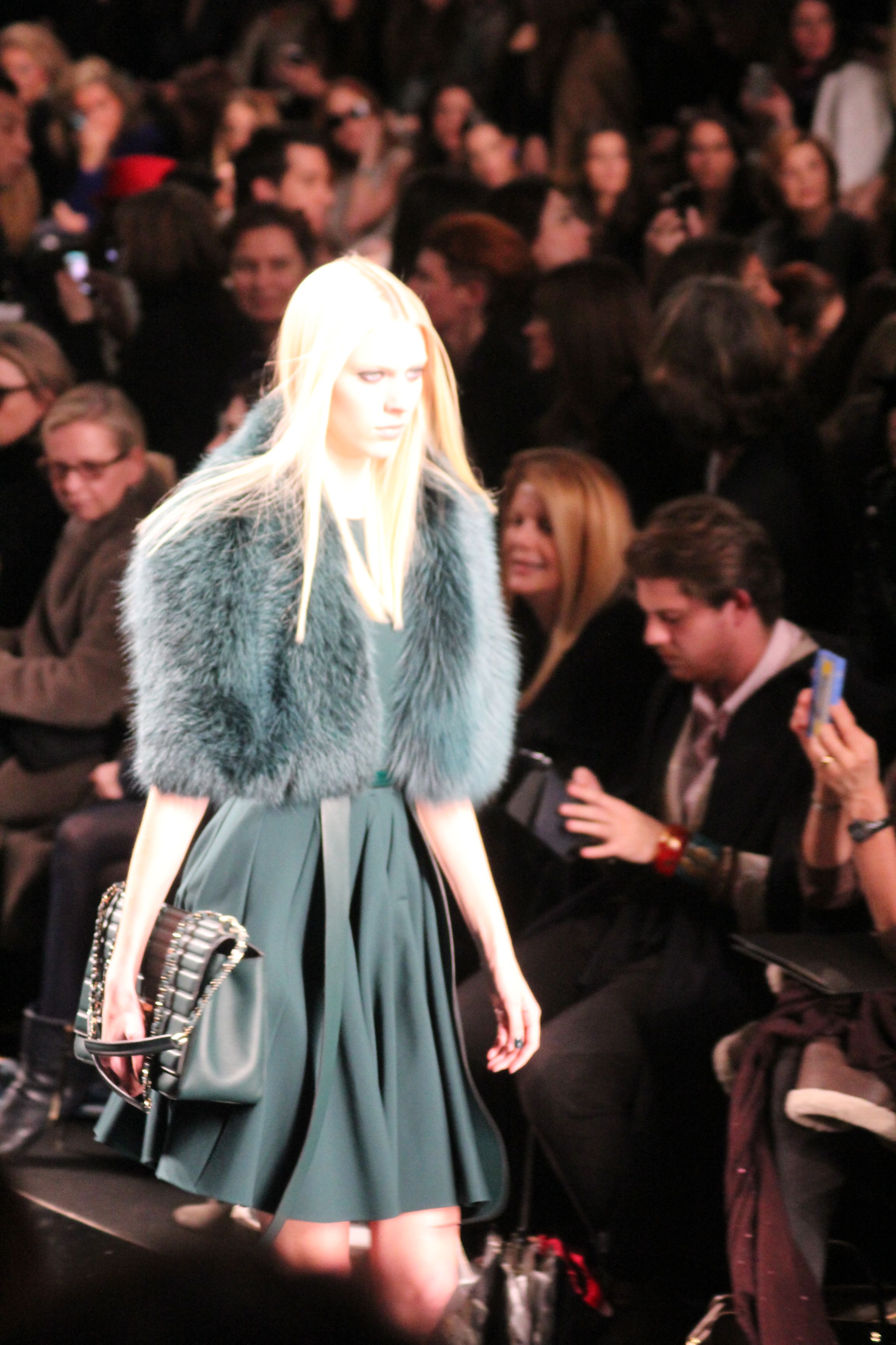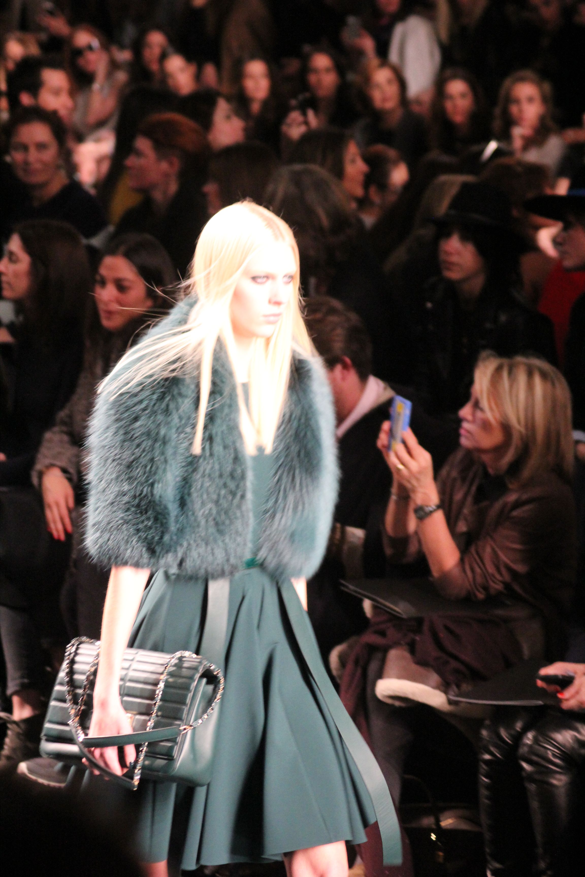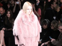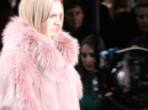 Dégradés ton sur ton, les silhouettes évoluent dans des jeux de matières précieuses : ici, un manteau en fourrure diapré et structuré se dessine de manière élégante et sensuelle. Là, un jeu de paillettes brodées parsème et illumine une robe vertigineuse.