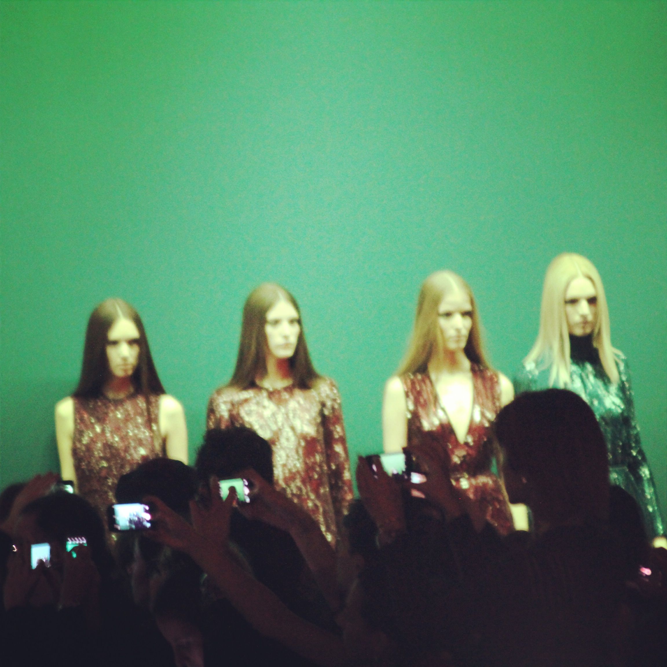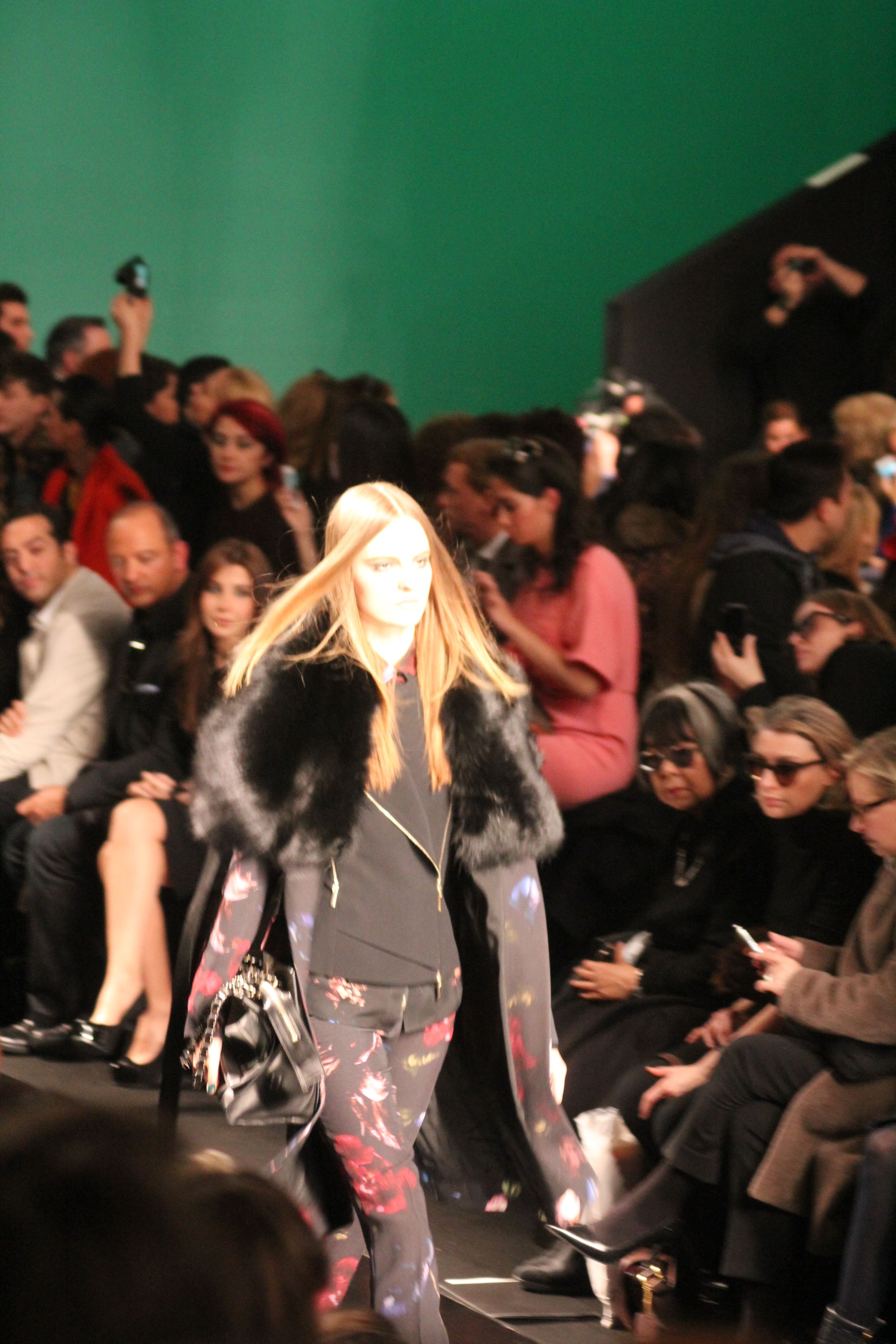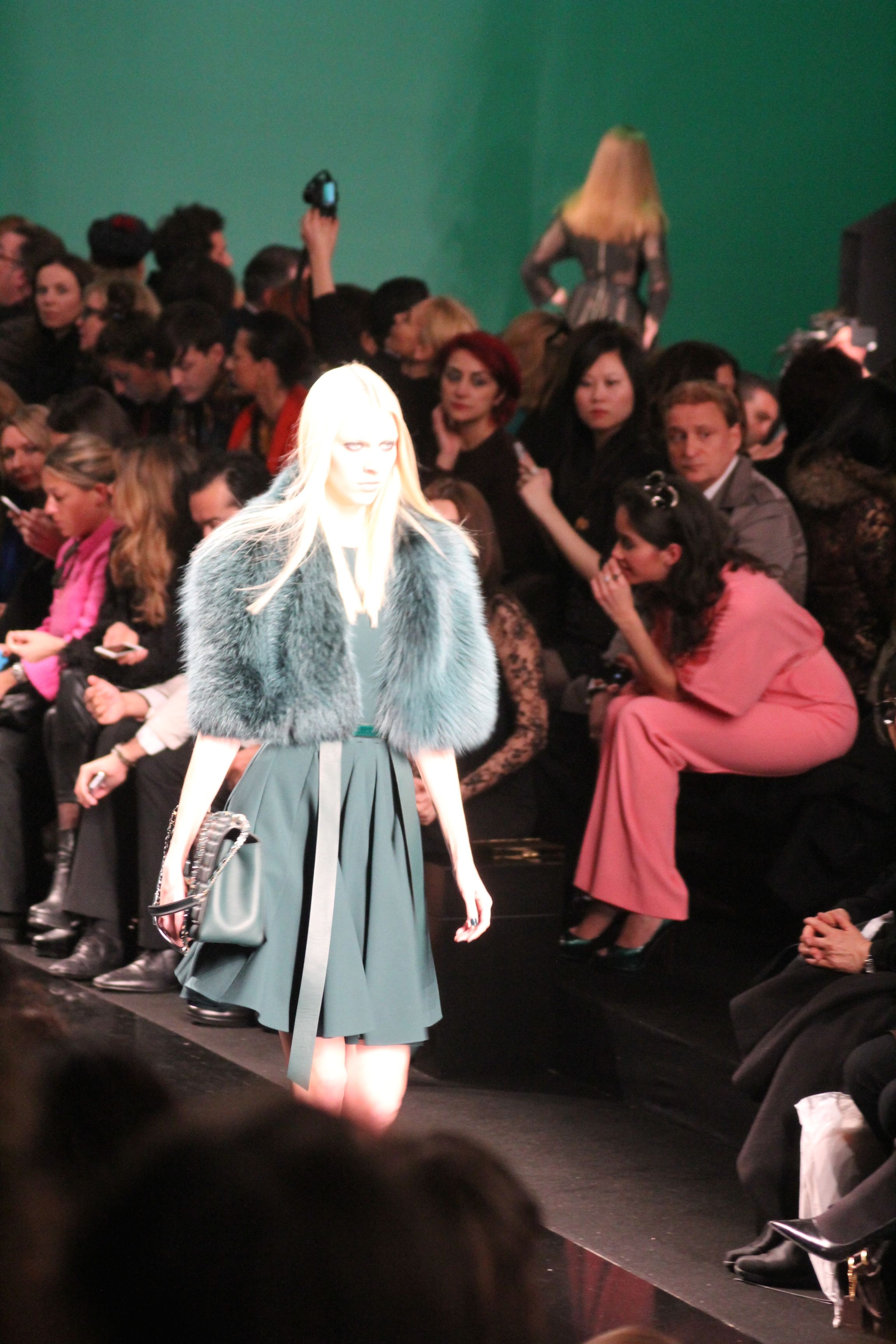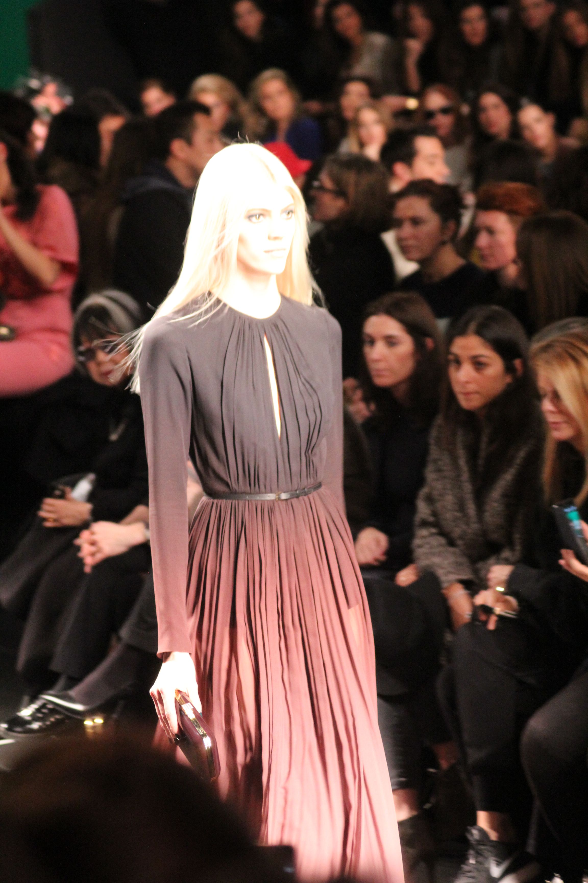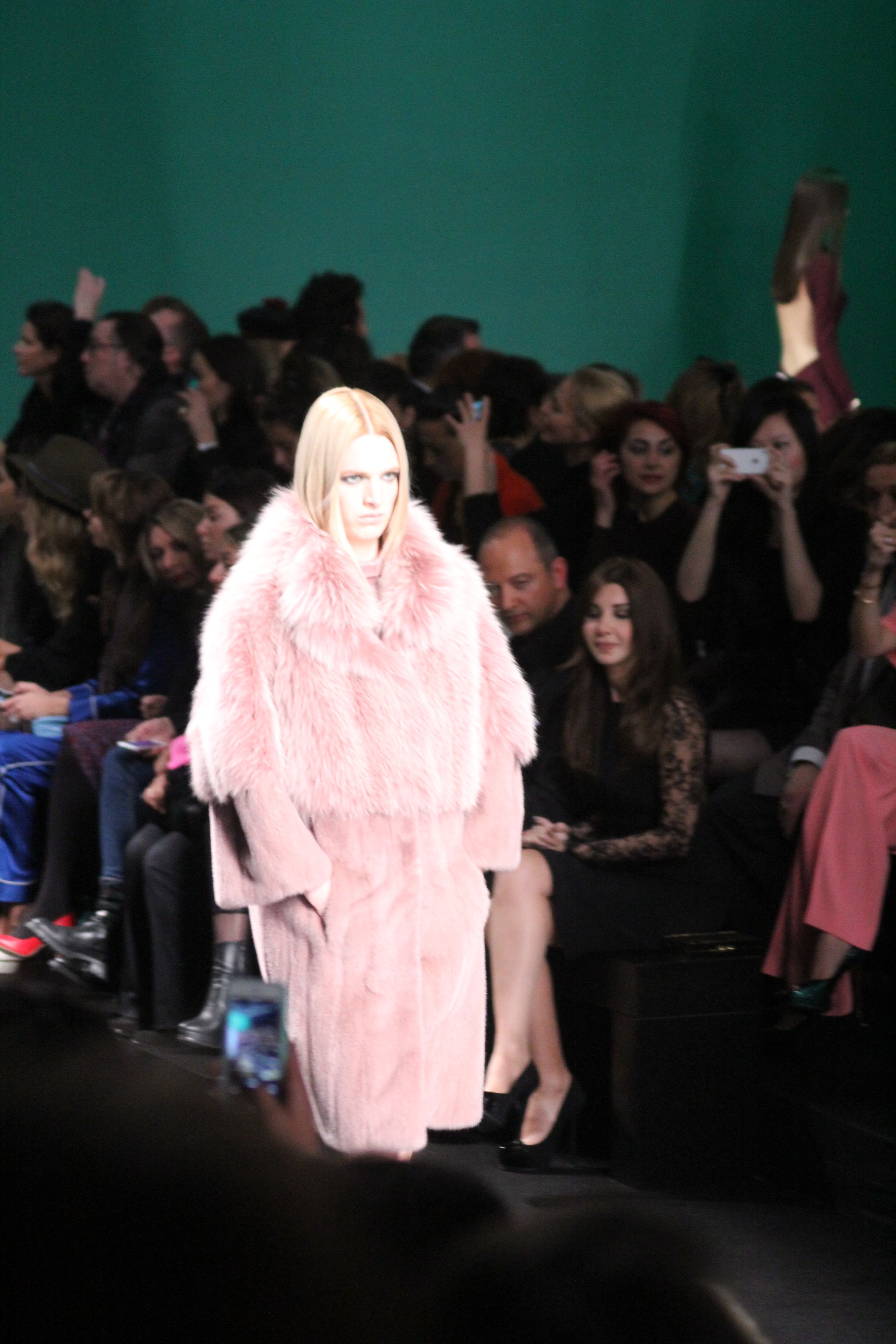 Dégradés ton sur ton, les silhouettes évoluent dans des jeux de matières précieuses : ici, un manteau en fourrure diapré et structuré se dessine de manière élégante et sensuelle. Là, un jeu de paillettes brodées parsème et illumine une robe vertigineuse.