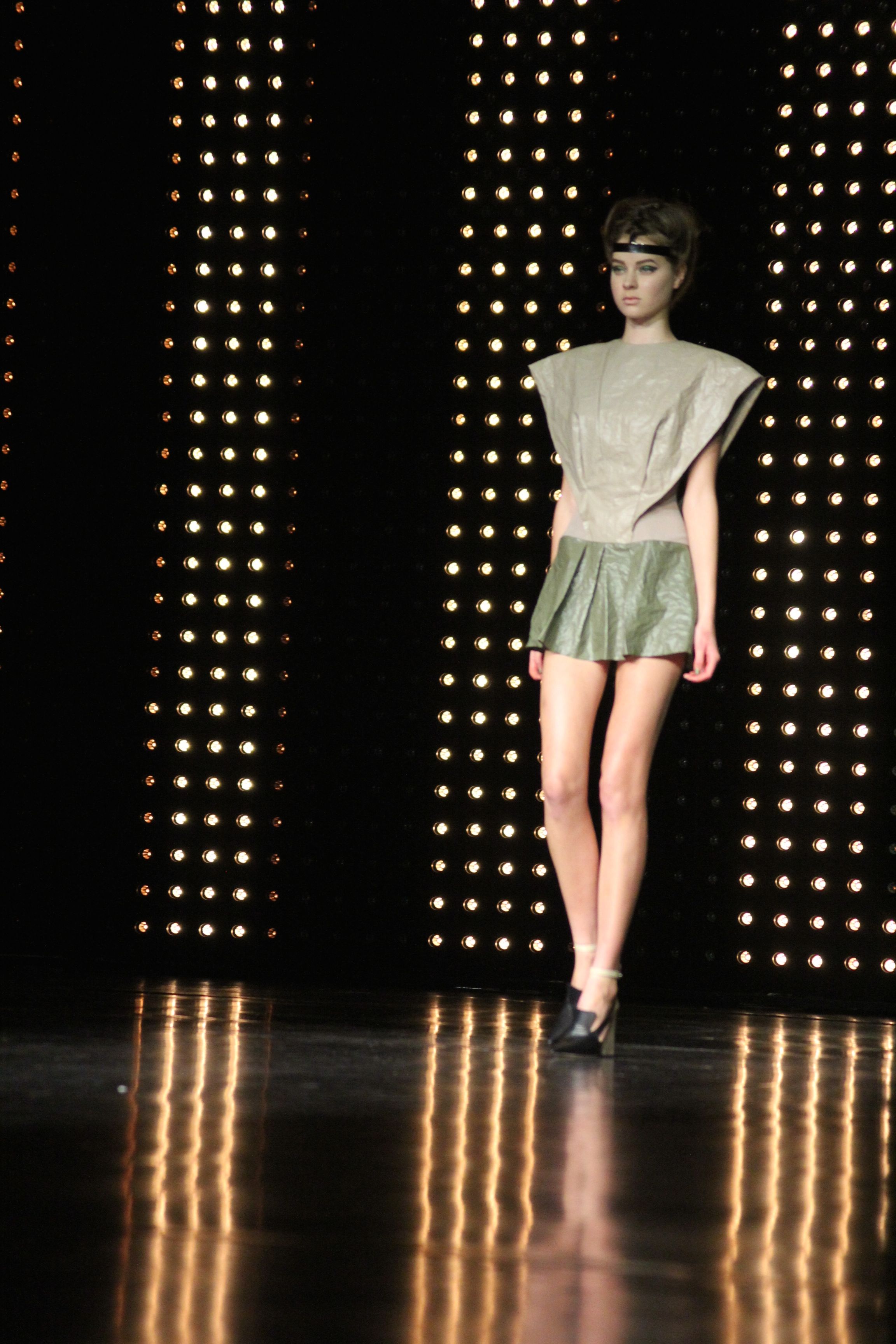 La silhouette est protégée dans des pièces aux  formes arrondies rappelant la mousse des arbres, l’écorce et même l’armure des insectes, leur cocon. Solides et rigides, les pièces sont structurées et offrent des volumes nouveaux où la féminité est à la fois protégée et exacerbée.