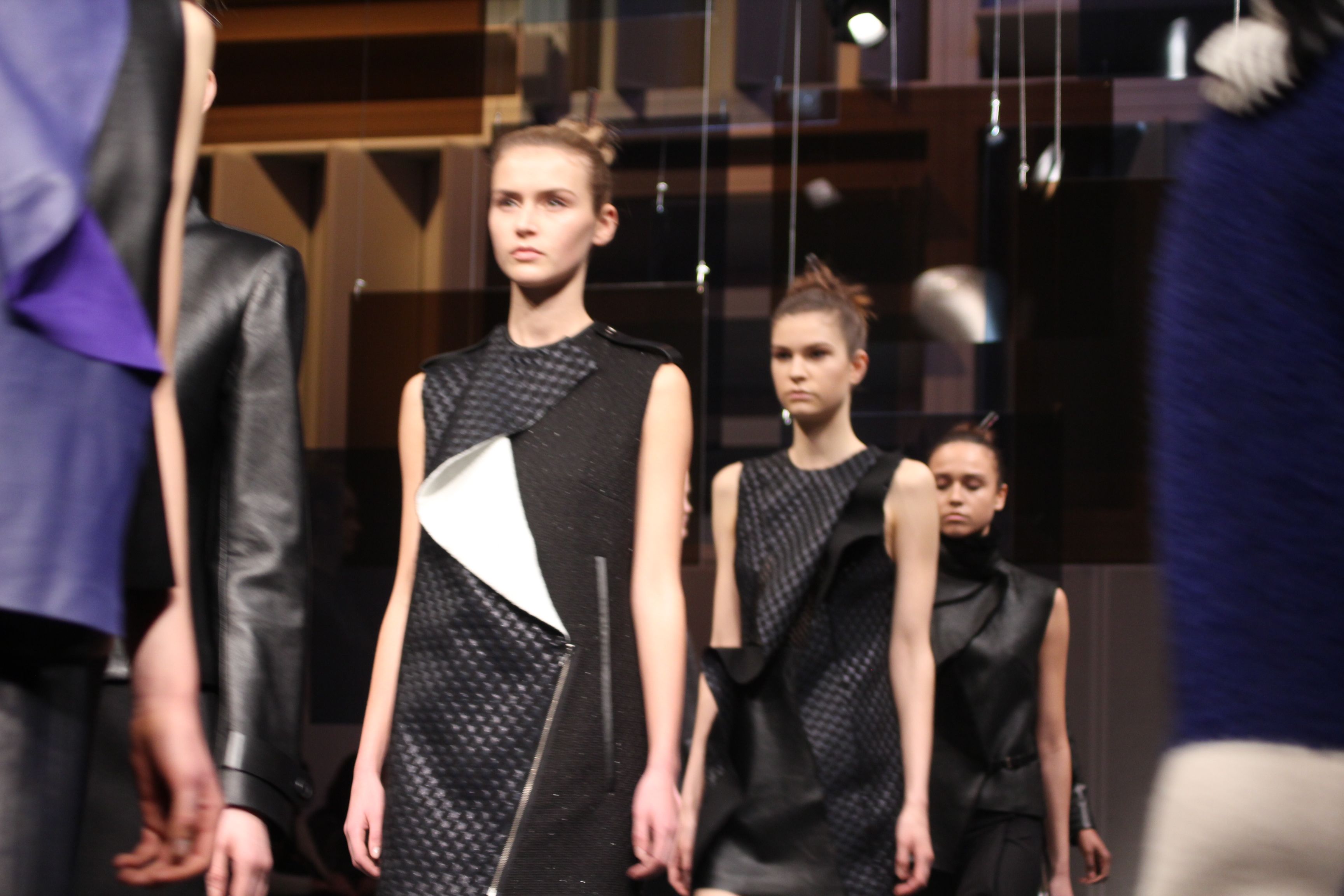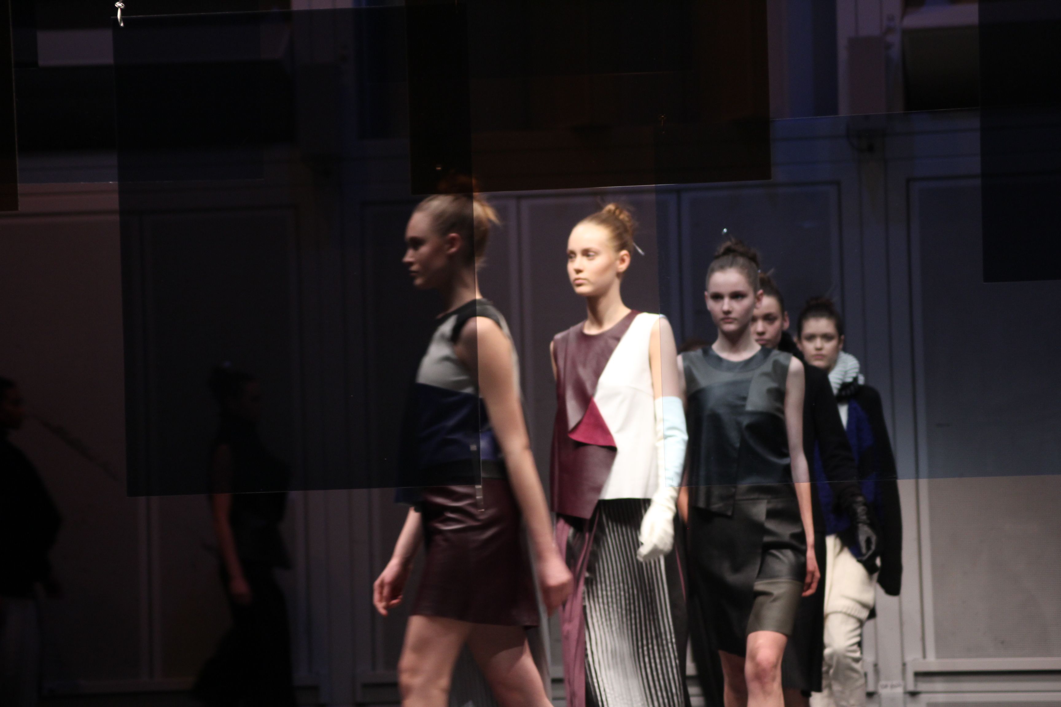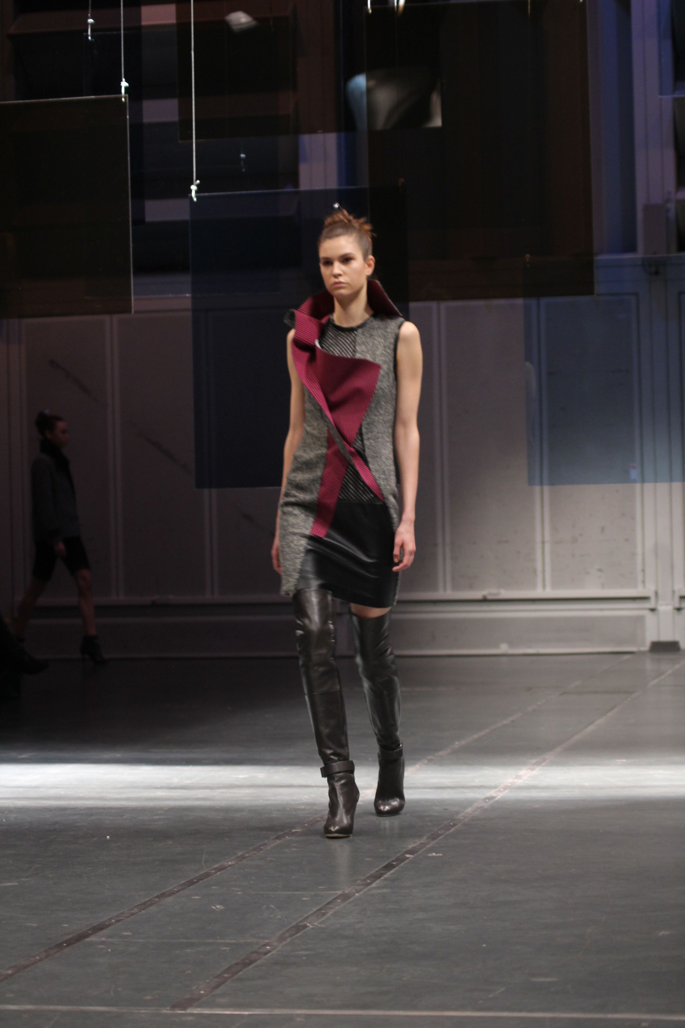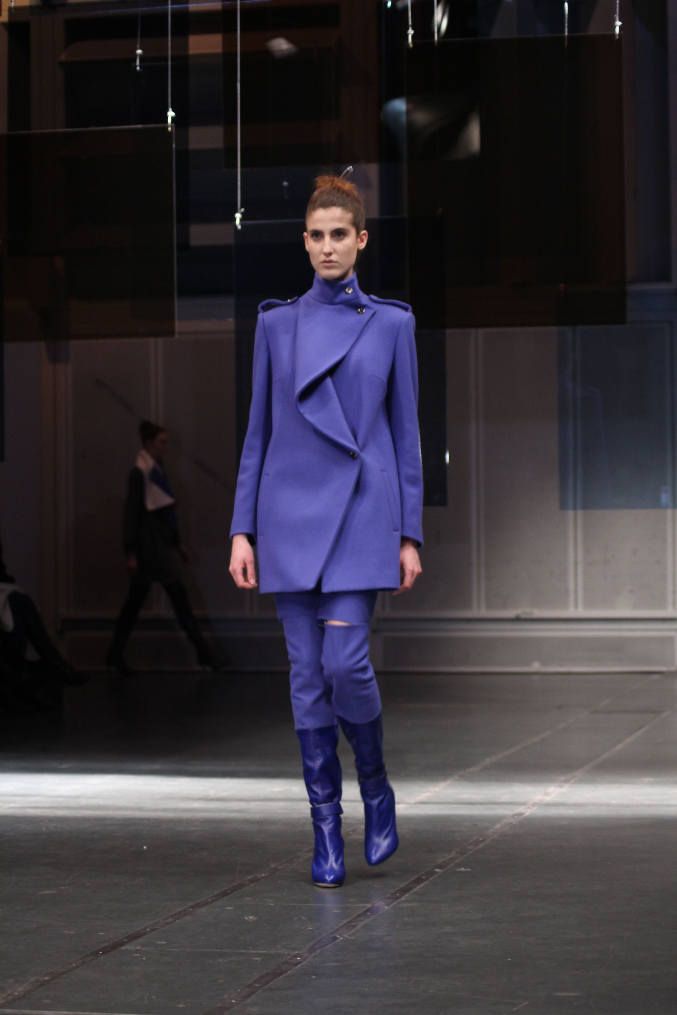 Luis Buchinho est un architecte du vêtement, un spécialiste de la coupe et de la silhouette. Pour cette collection automne hiver 2014-2015, il devient illusionniste. Inspiré de l’univers de Georges Rousse ( peintre et photographe). Une approche non littérale de son travail, qui joue avec les idées de distorsion, d’occupation et qui crée de nouvelles réalités en utilisant celles déjà existantes.