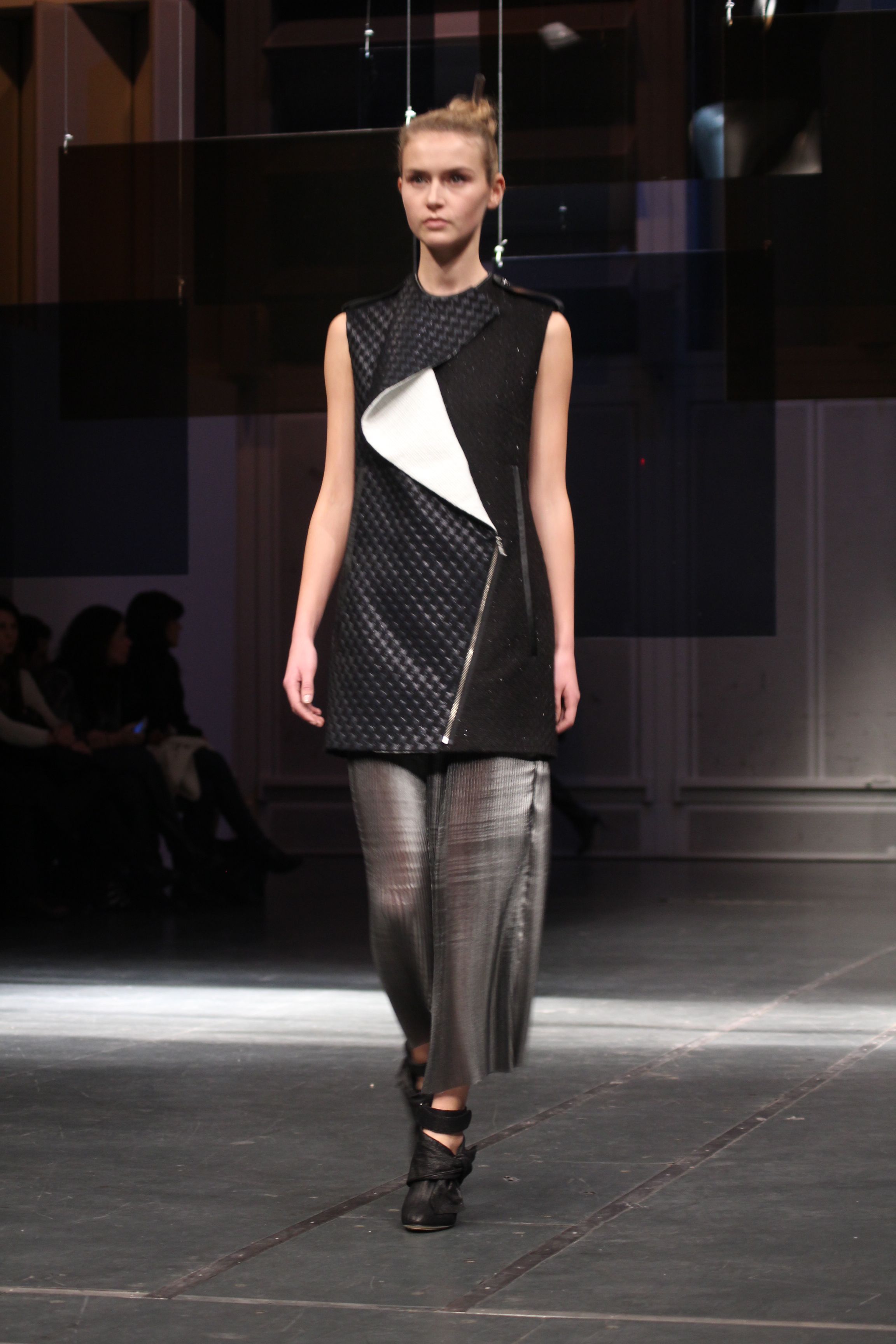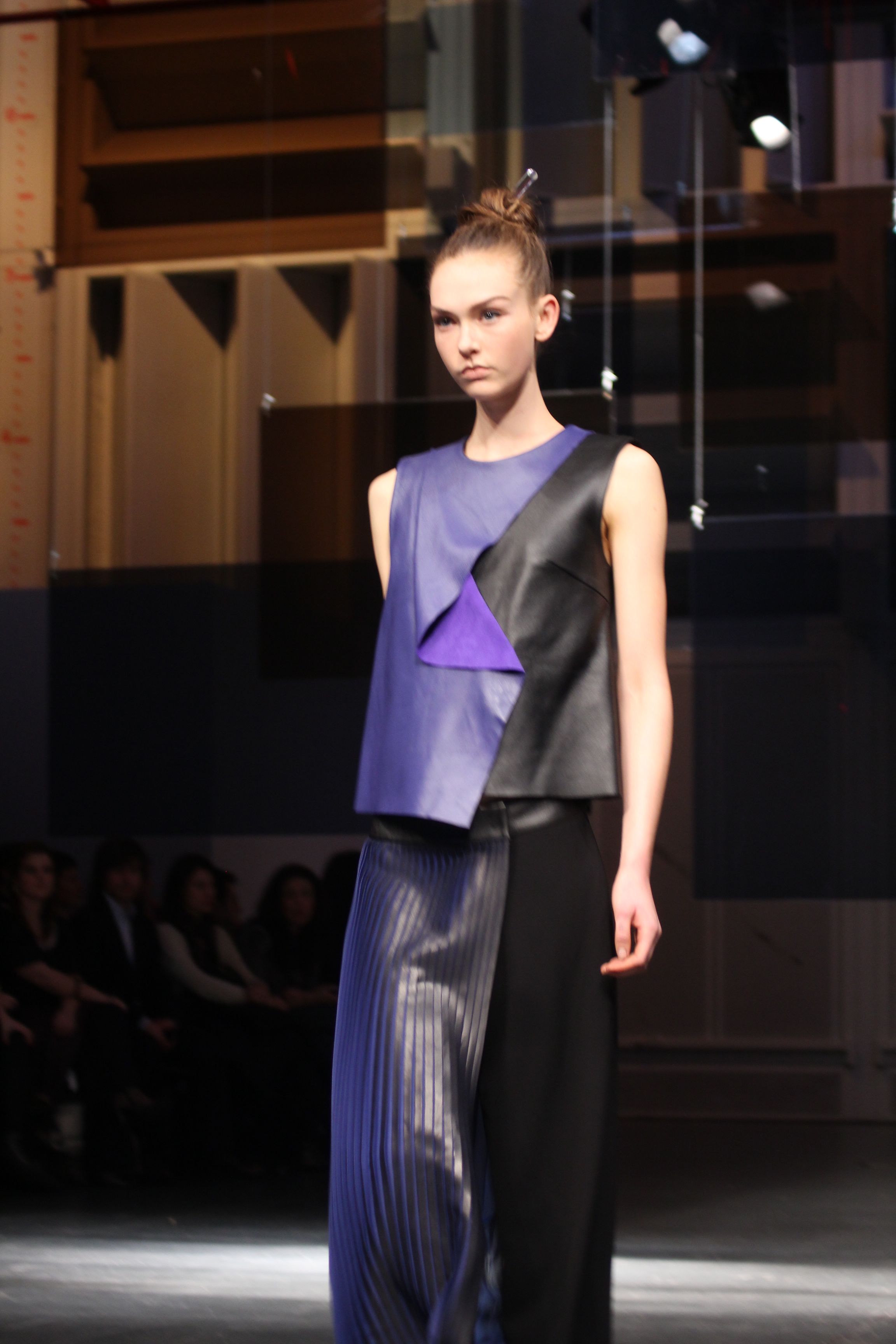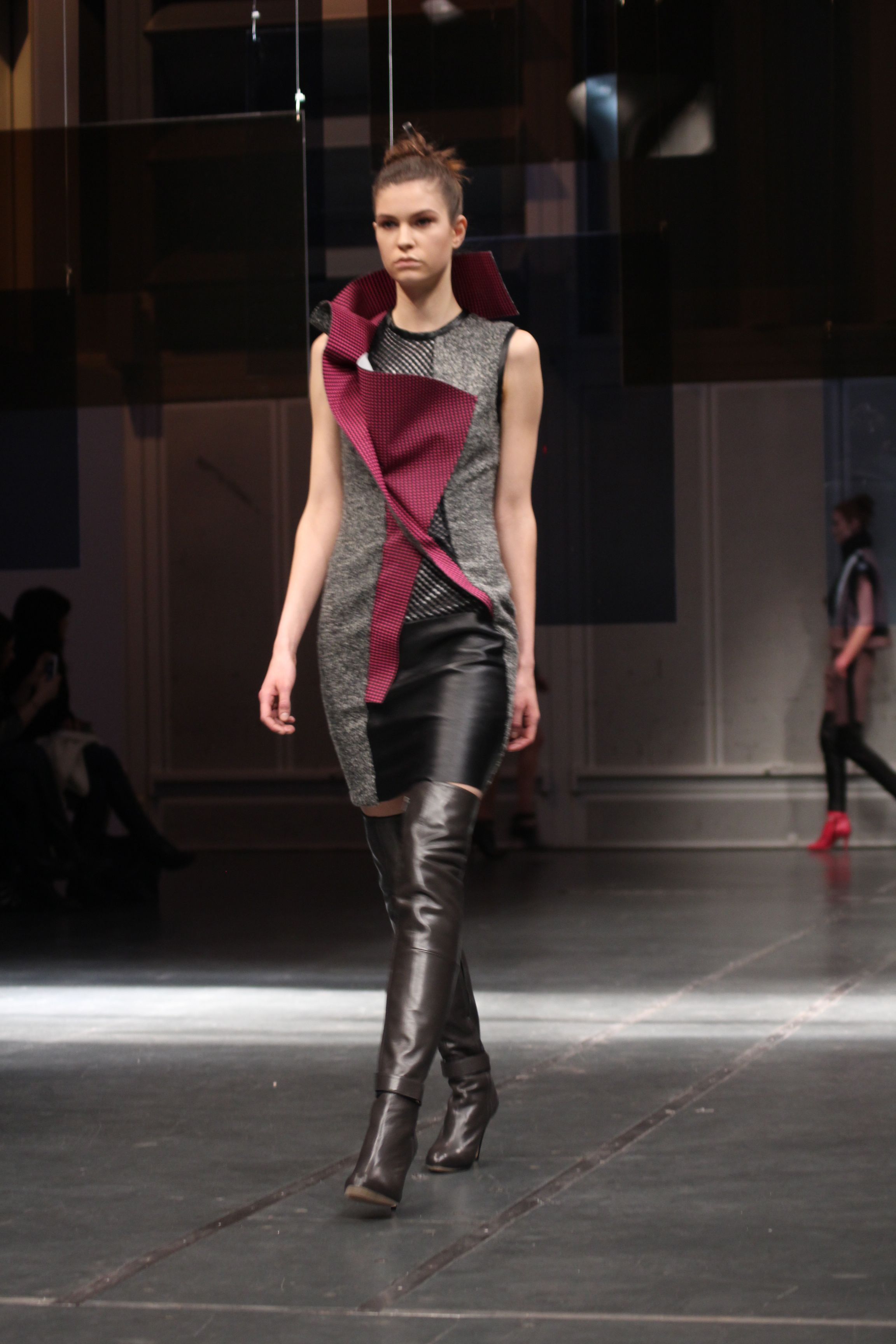 Réelle construction architecturale, les matières s’entremêlent avec les couleurs formant un pièce unique tout en étant pluriel. Le fond noir permettra de mettre en relief ce travail qui voguera de la deuxième à la troisième dimension au fil des modèles. La construction d’une silhouette dans la silhouette. Fidèle à son ADN, les femmes au caractère fort et affirme seront mises en valeur dans cette collection à la croisée des genres.