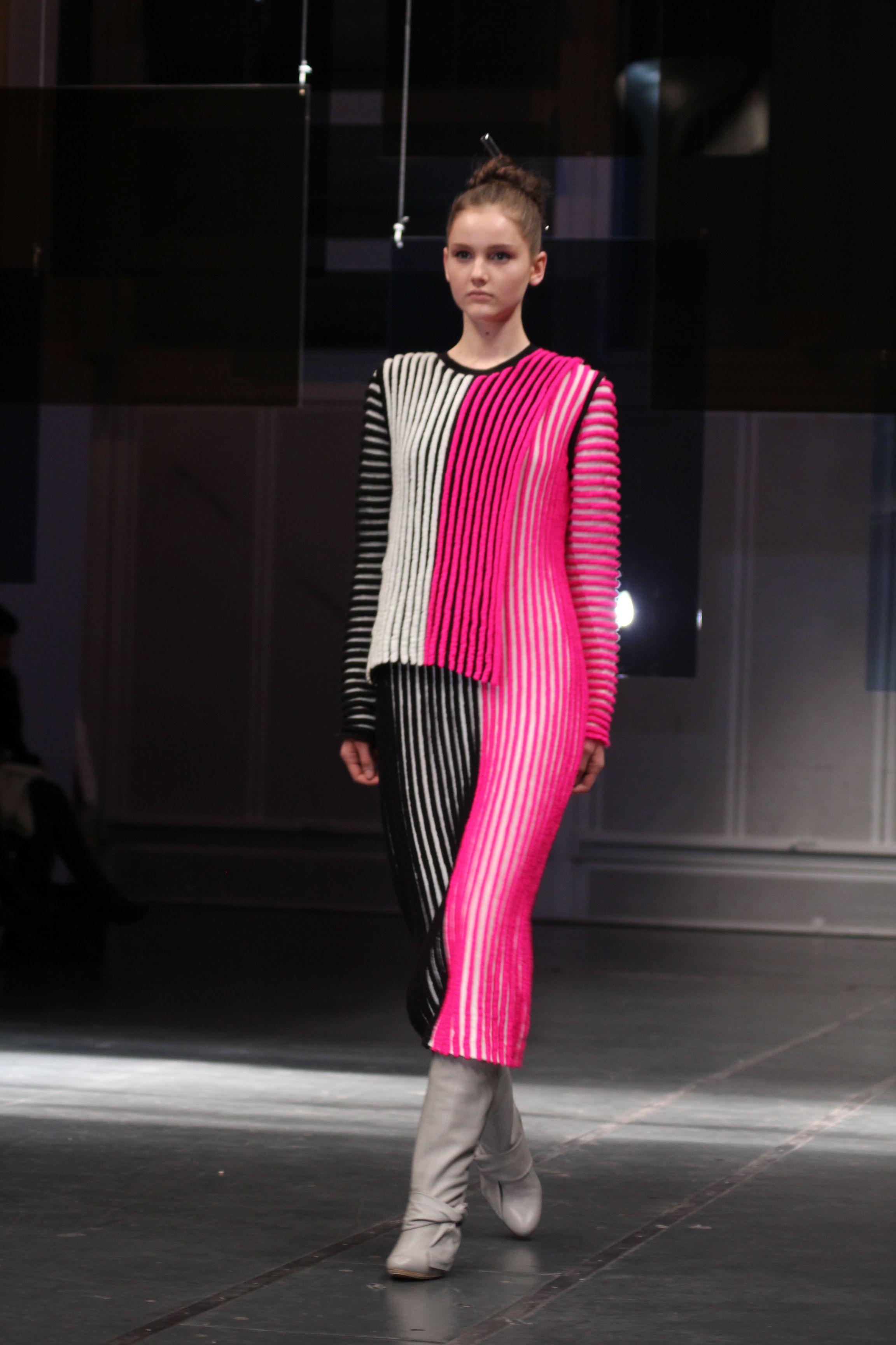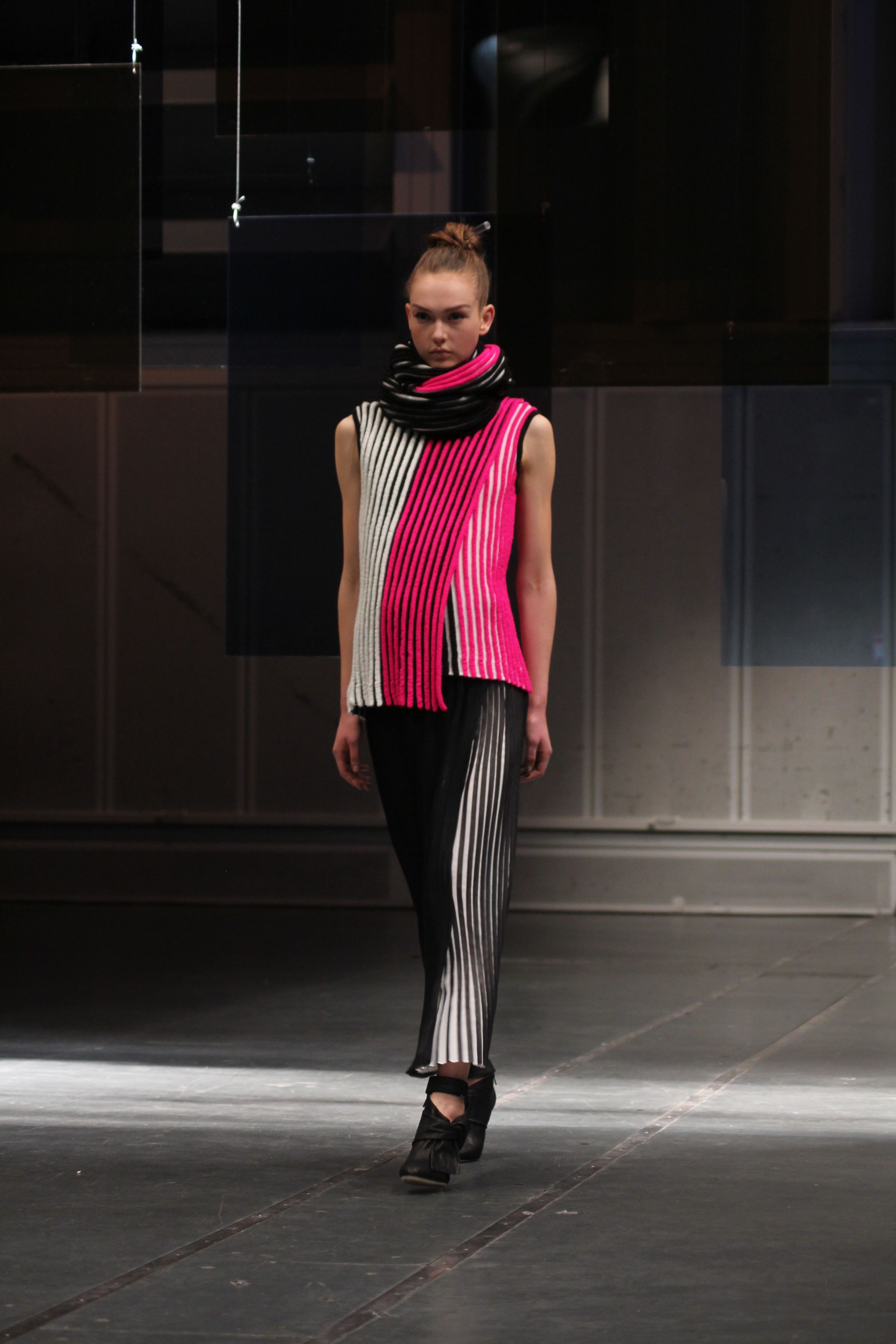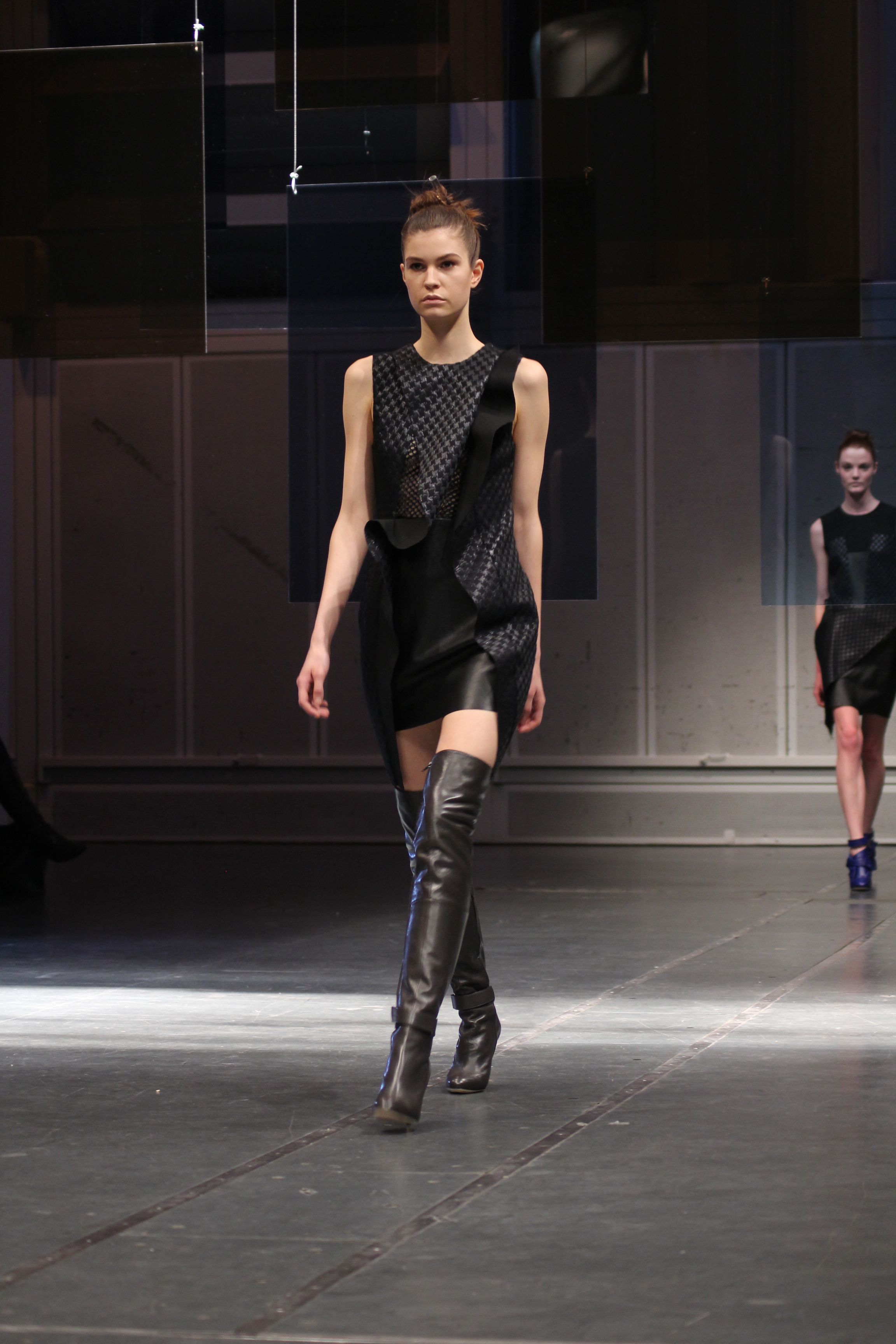 Réelle construction architecturale, les matières s’entremêlent avec les couleurs formant un pièce unique tout en étant pluriel. Le fond noir permettra de mettre en relief ce travail qui voguera de la deuxième à la troisième dimension au fil des modèles. La construction d’une silhouette dans la silhouette. Fidèle à son ADN, les femmes au caractère fort et affirme seront mises en valeur dans cette collection à la croisée des genres.