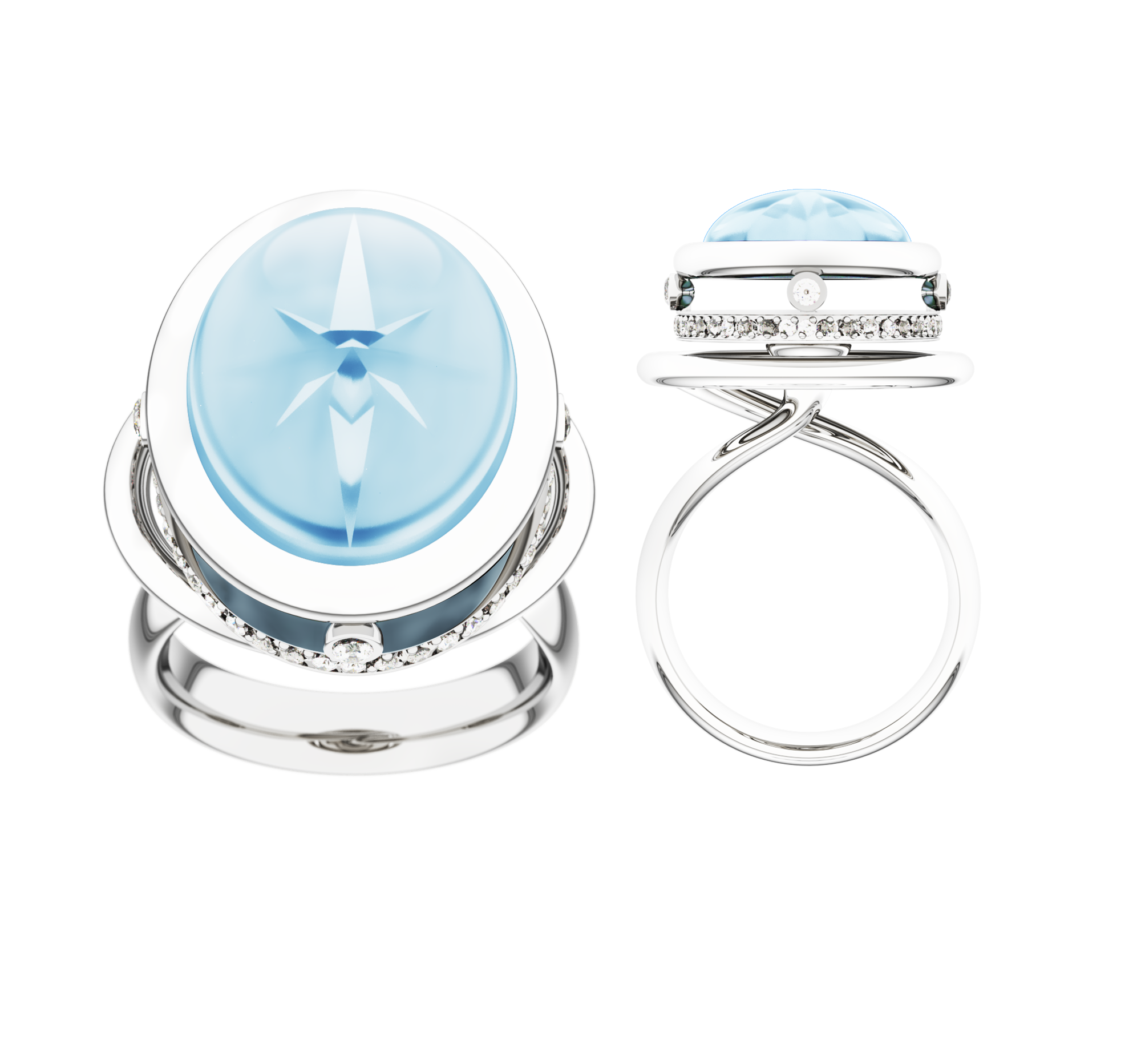Lorsque l’idée germe, je la visualise, elle prend forme, je la travaille et retravaille elle devient obsessionnelle, dans une deuxième phase je la réalise en 3D, puis elle devient cire et fonte, les pierres sont taillées lorsqu’il le faut. Nous échangeons sur les détails techniques avec l’atelier qui m’accompagne. C’est un véritable plaisir de cheminer avec Nathalie qui orchestre l’atelier. Entre nous c’est un coup de foudre professionnel. Elle collabore avec les grandes maisons et en même temps reste fidèle à quelques créatrices. J’ai beau faire ce métier depuis quelques années maintenant, à chaque étape de la réalisation, à chaque nouvelle pièce, je suis fascinée par la somme de talents qu’il faut pour que ces petits objets rayonnent en exprimant le concept tout en témoignant de l’excellence du savoir-faire français, qu’il s’agisse du montage et de la finition ou encore de la taille de pierres, et du serti. Car le montage, le poli, le serti, la retaille d’une pierre peuvent totalement trahir l’idée s’ils ne sont pas exécutés de main de maître. Ils m’épatent à chaque étape de la réalisation.
