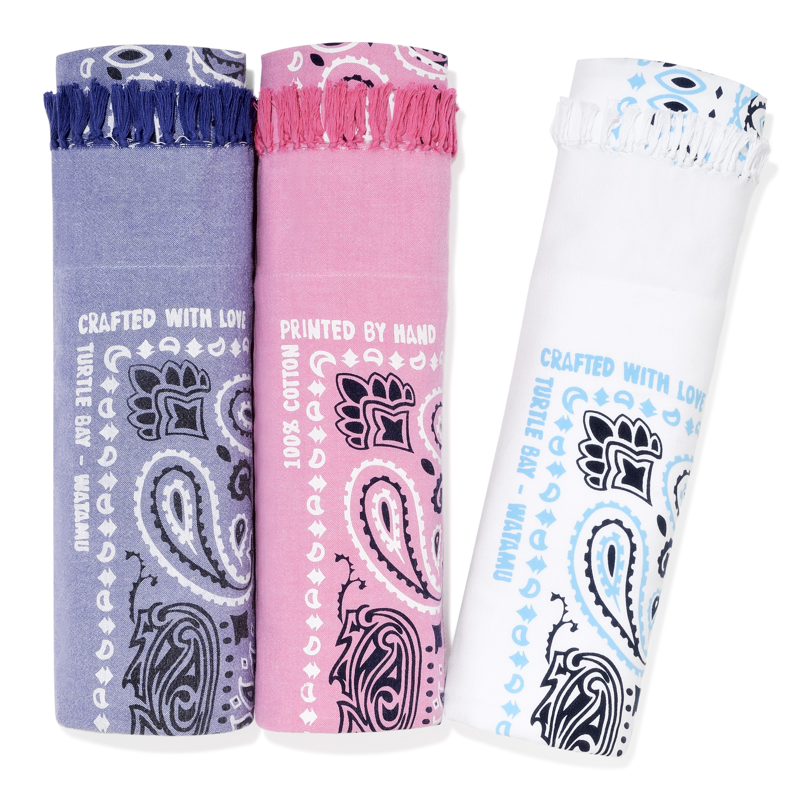 Long Beach roule - Alaskan Blue Paisley Bandana - Compo Liberty. Flamingo. White Paisley Bandana - Flamingo Pink  Hammam - Compo Marina. Liberty. Summer Hammam - Compo Pool. Summer. Marina Hammam - Pool Green