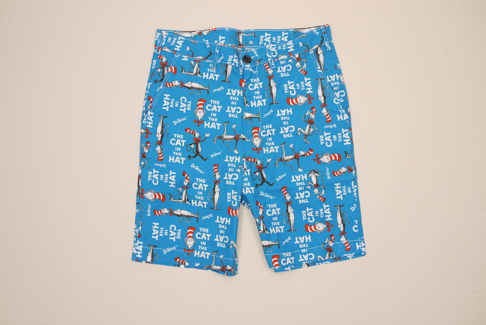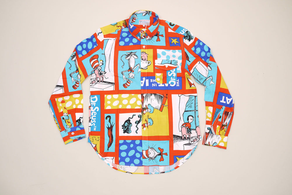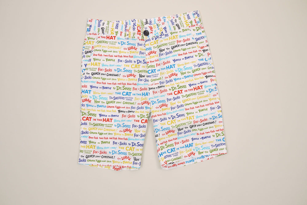 La première collection de THSC utilise des imprimés iconiques, affichant une notion de nostalgie d’enfance ludique sur des chemises et shorts d’été avec une coupe classique. Avec un focus sur une icône de bandes dessinées différente pour chaque collection, pour cet Eté, THSC utilise le travail artistique excentrique de l’icône américain Dr Suess’s et ses personnages.