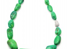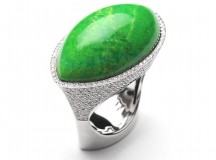 D’un vert éclatant, la turquoise verte est sublimée par les ateliers de Henri J Sillam grâce à un subtil pavage de diamants.