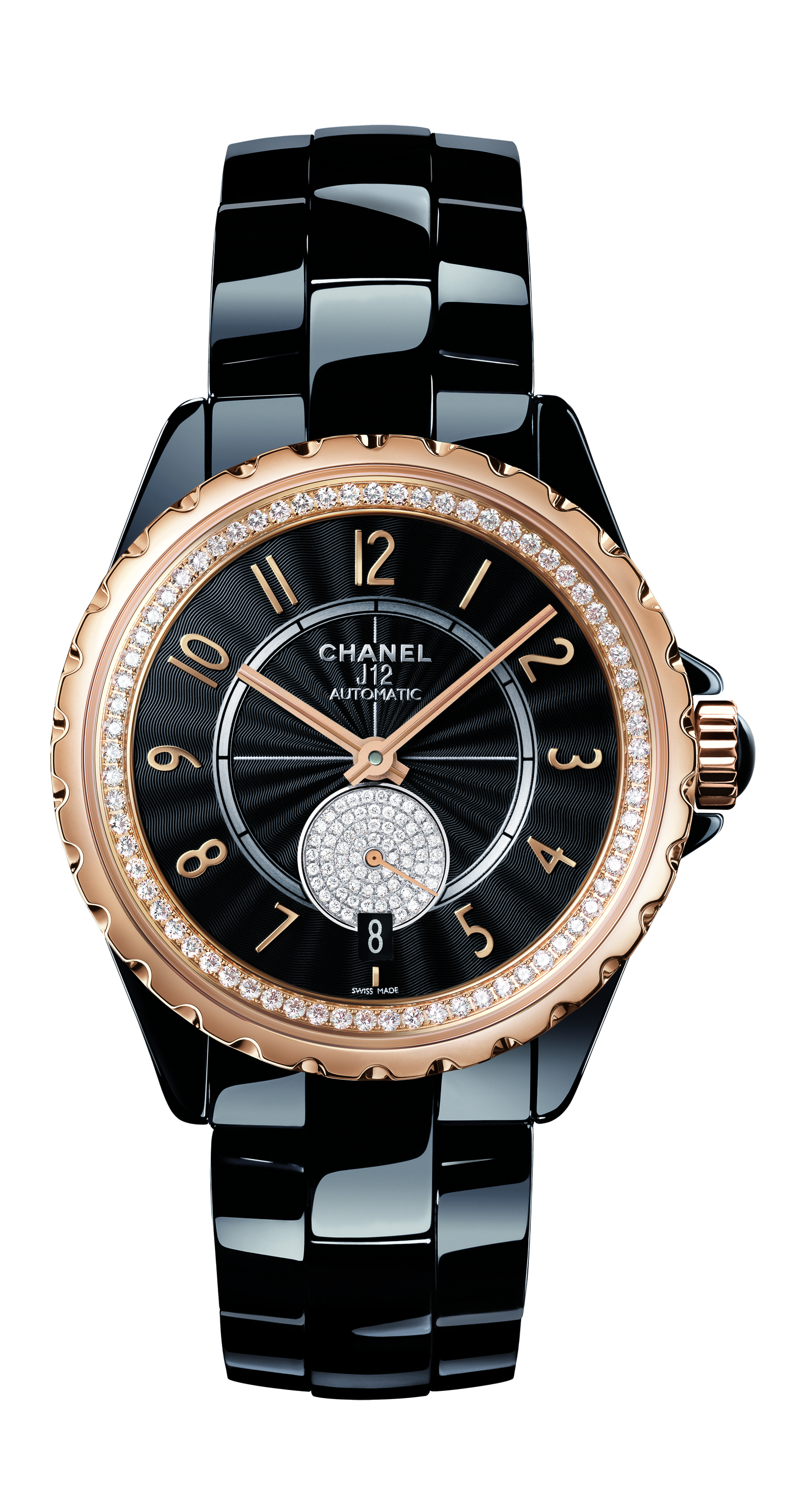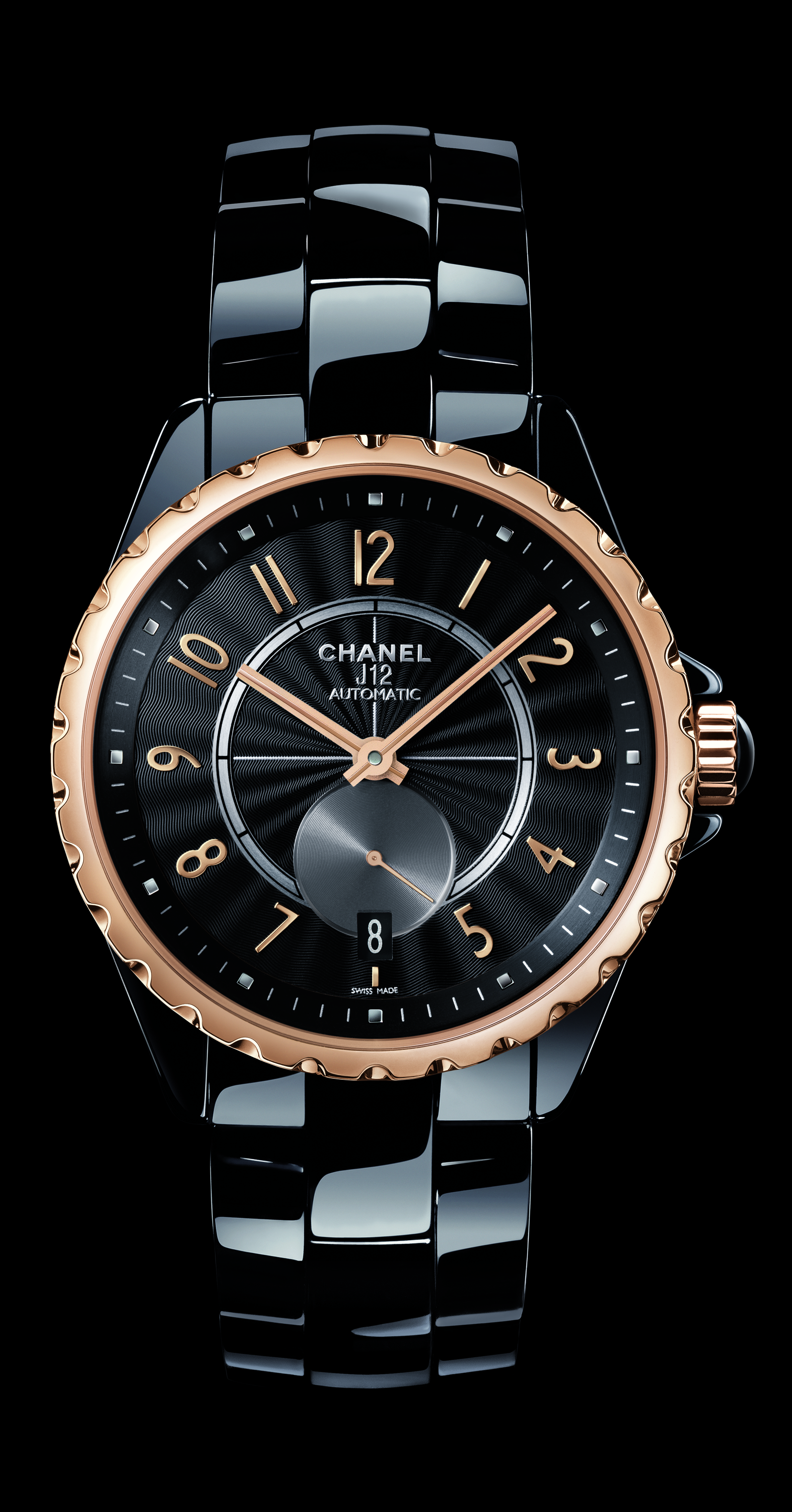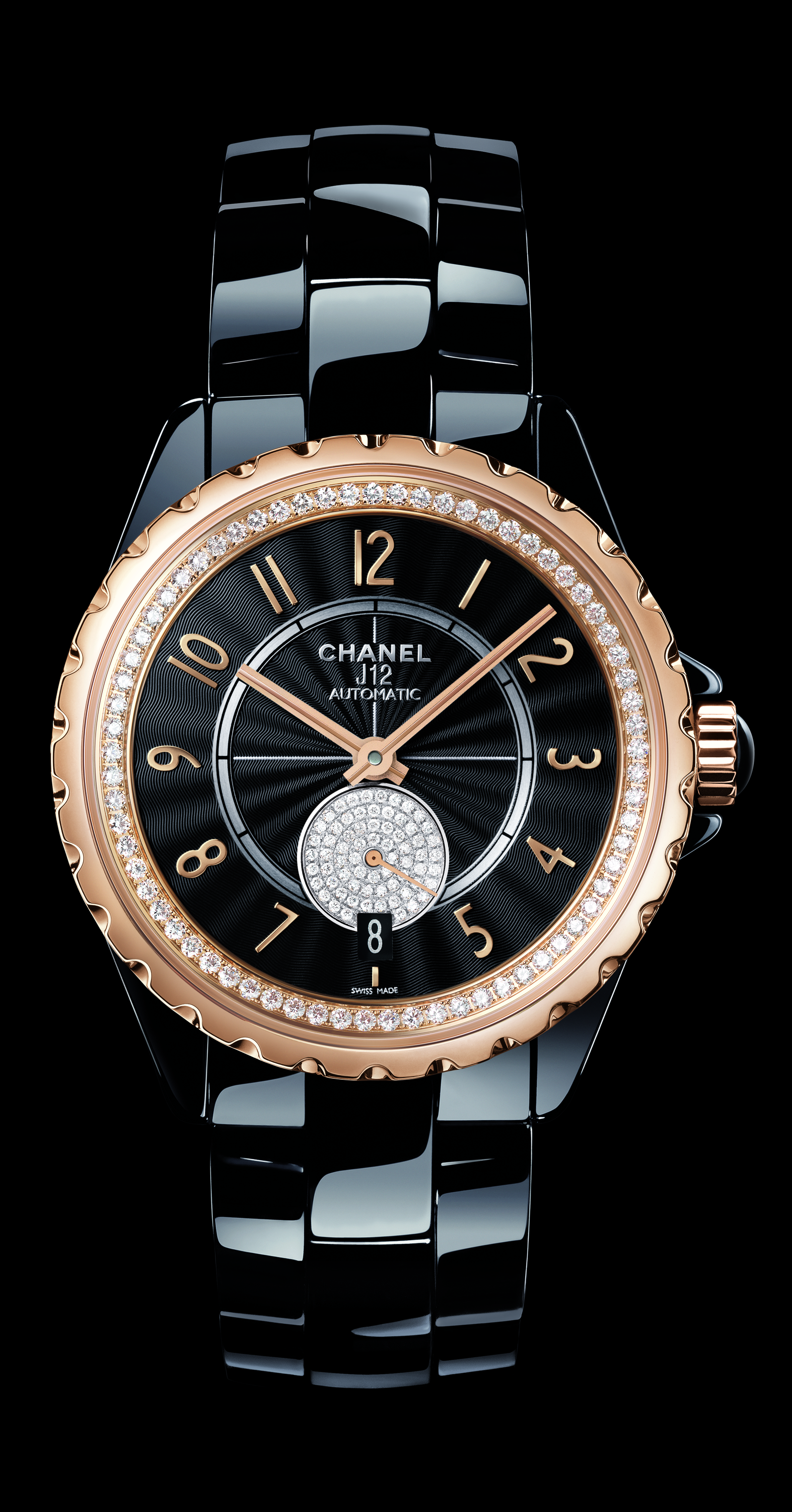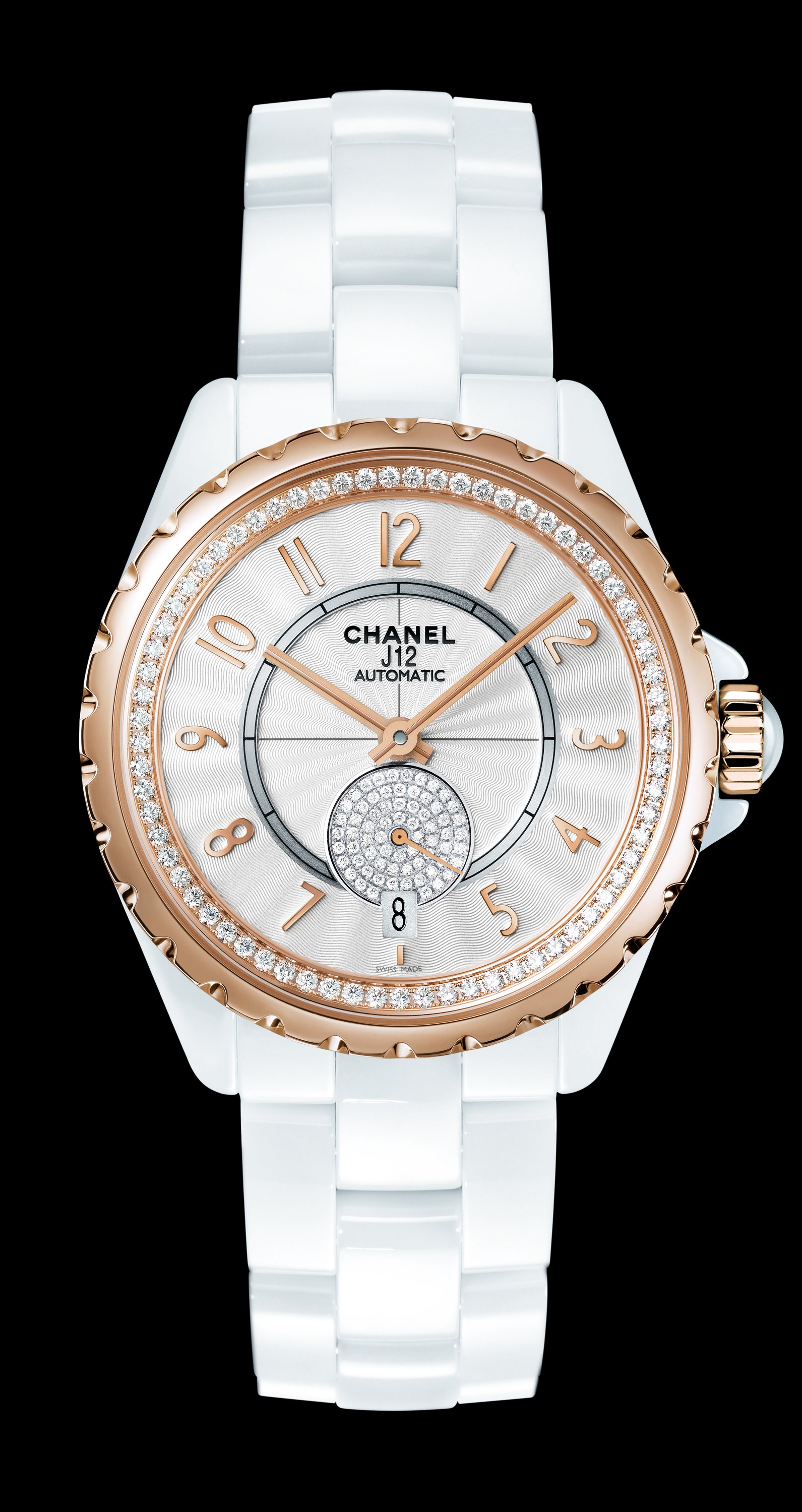 Cette Montre J12-365, en céramique high-tech noire ou blanche, acier ou OR BEIGE, une nouvelle couleur d’or 18 carats obtenue par un alliage exclusif CHANEL sera serti ou non de diamants. Le cadran guilloché,noir ou opalin. Et le mouvement mécanique à remontage automatique. Réserve de marche de 42 heures. Fonctions : heures, minutes, secondes, date. Etanchéité : 100 mètres. Diamètre : 36,5 mm.