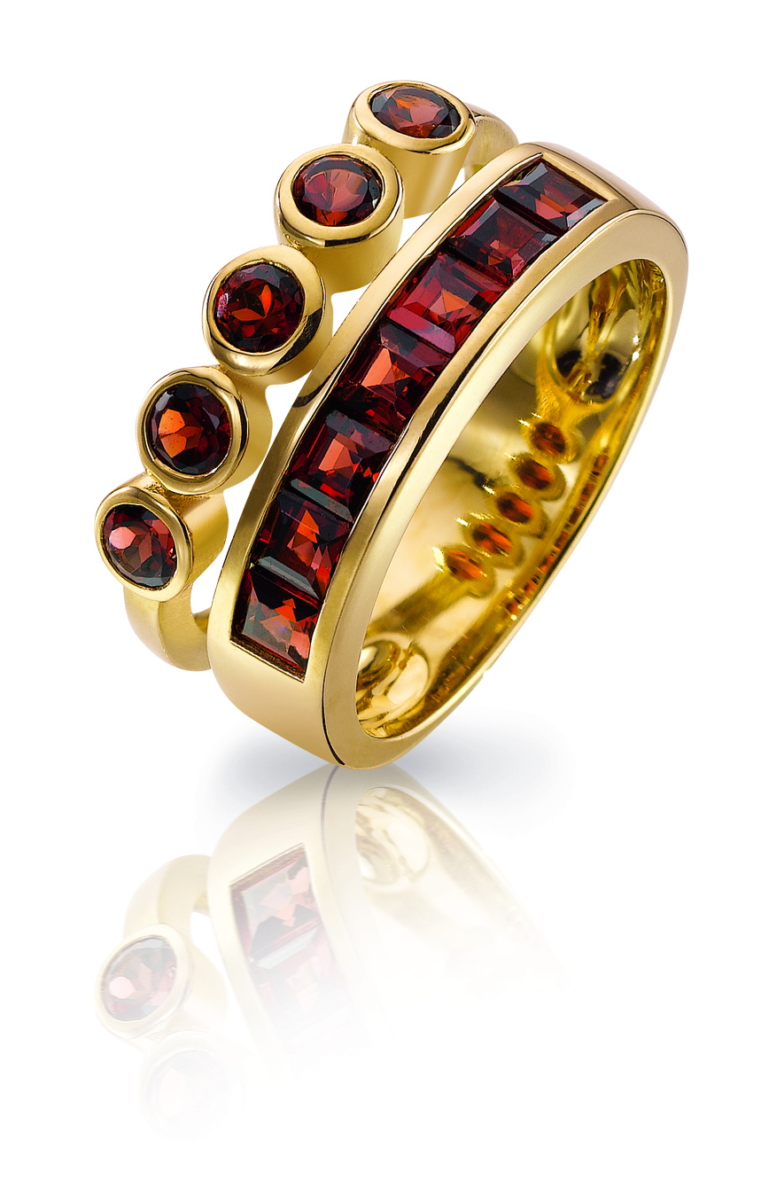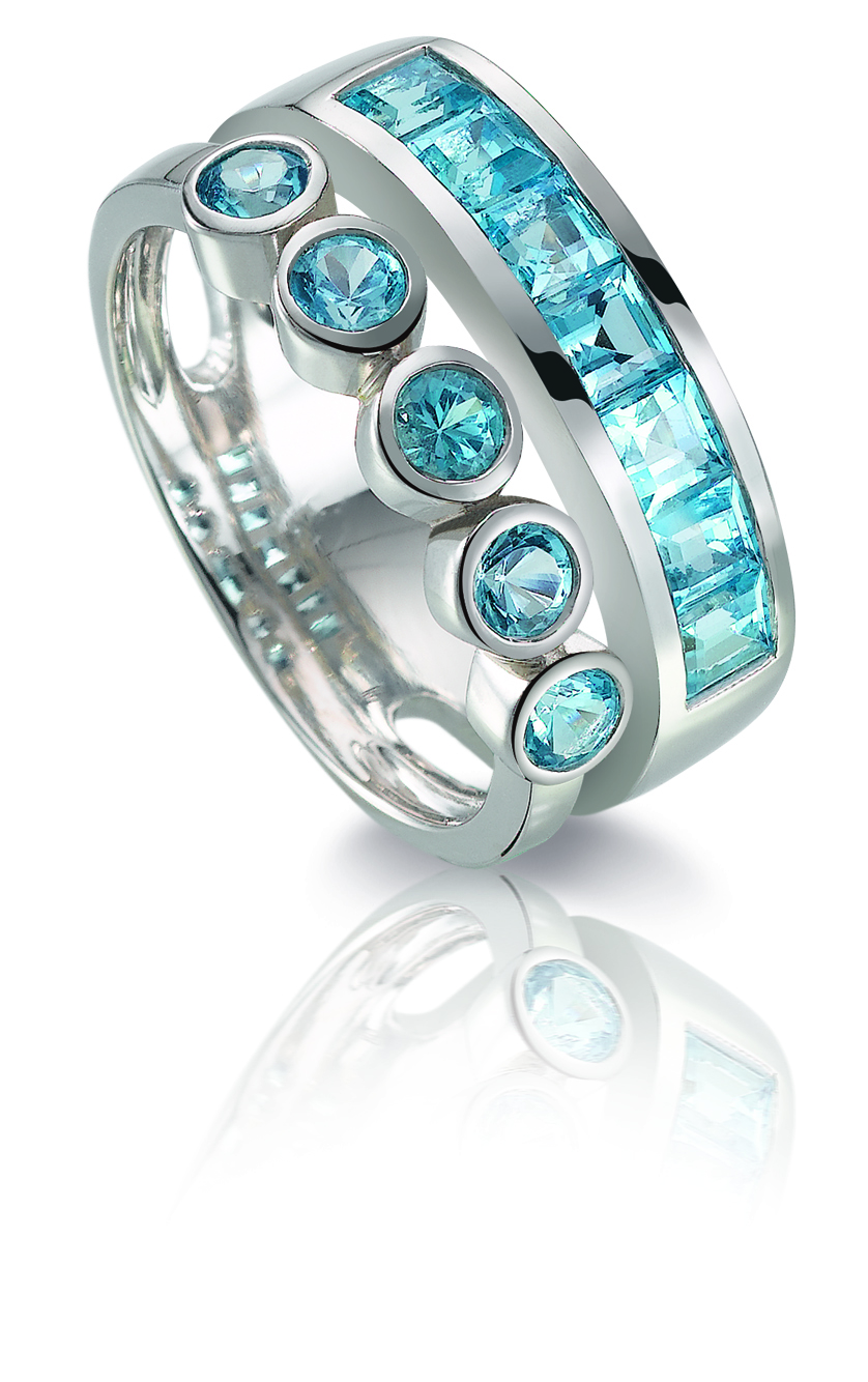 Soulignées par l’éclat de l’or blanc ou jaune, ces bagues arborent un double anneau mettant en lumière le chatoiement sensuel des pierres. Assurément modernes, ces créations offrent une partition dynamique aux formes géométriques captivantes du plus bel effet.